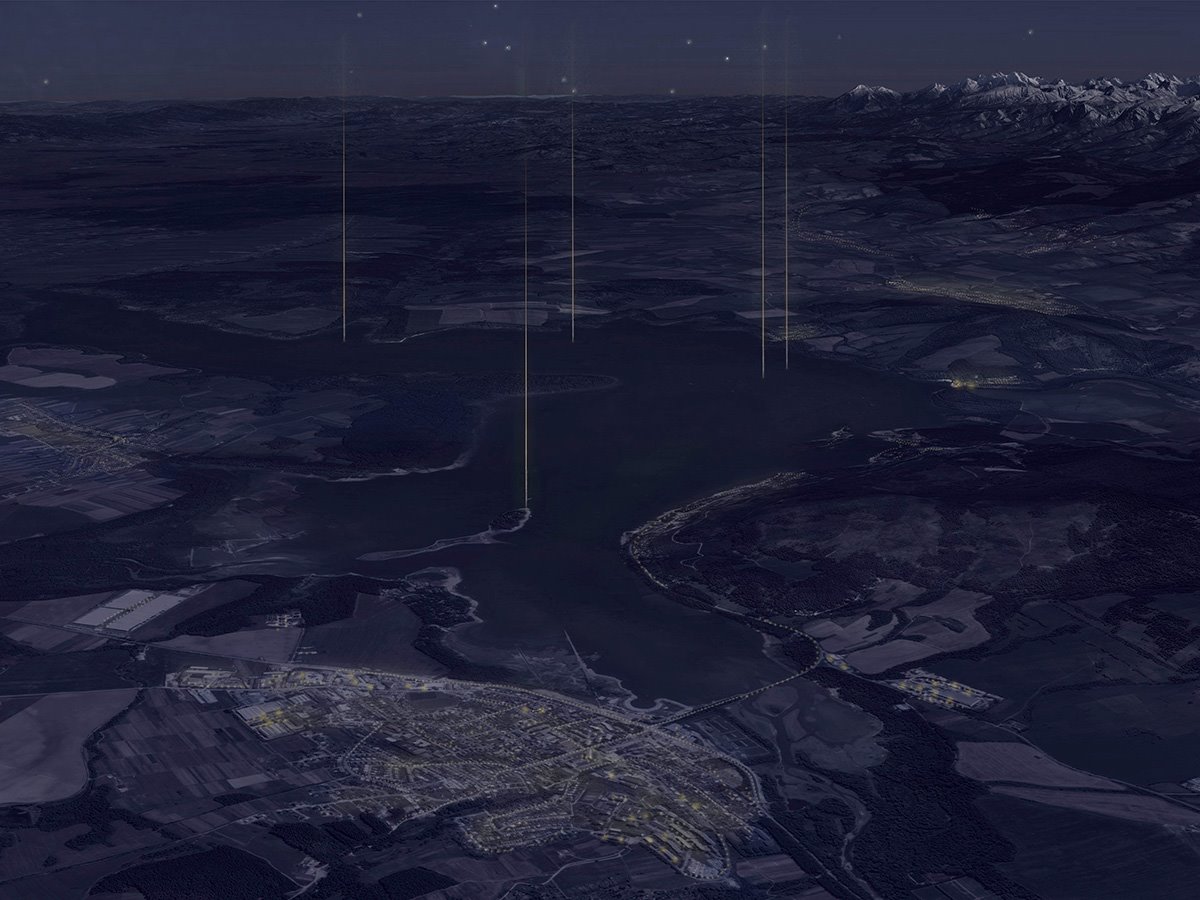 5 svetiel svietiacich priamo do nebies, ako symbol piatich zaniknutých obcí, nesúci odkaz trpkej histórie, duší zosnulých aj nádeje do budúcnosti. Práve tí, zasiahnutí odsunom kvôli výstavbe vodného diela a tí, ktorí pri výstavbe stratili najbližších, či pre pozostalých, ktorí vo vodách Oravskej priehrady prišli o príbuzných, bude memoriál symbolom úcty, rešpektu a pokory. V neposlednom rade svetlo môže byť chápané ako paralela k výrobe elektrickej energie a výstavbe priehrady, ktorá je prínosom pre celý región. V návrhu pracujeme s odkazom na kultúrnu historickú krajinu, ktorá stavbou priehrady zanikla.5 svetiel je situovaných na miestach bývalých obcí, 4 svetlá plávajú na vodnej hladine, posledné z nich je umiestené na Slanickom ostrove. Svetlá plávajú na štruktúre tvarovo odkazujúcej na strechy kostolných veží zatopených obcí. 5 svetiel je viditeľných z ďalekého okolia, nakoľko svietia do výšky takmer sto metrov. Každý z Námestova a okolitých obcí môže vidieť prítomnosť memoriálu ako súčasť krajiny, miesta, času. Počas dňa je badať reflexie svetla na vodnej hladine. Reflexné body, ktoré pútajú pozornosť.