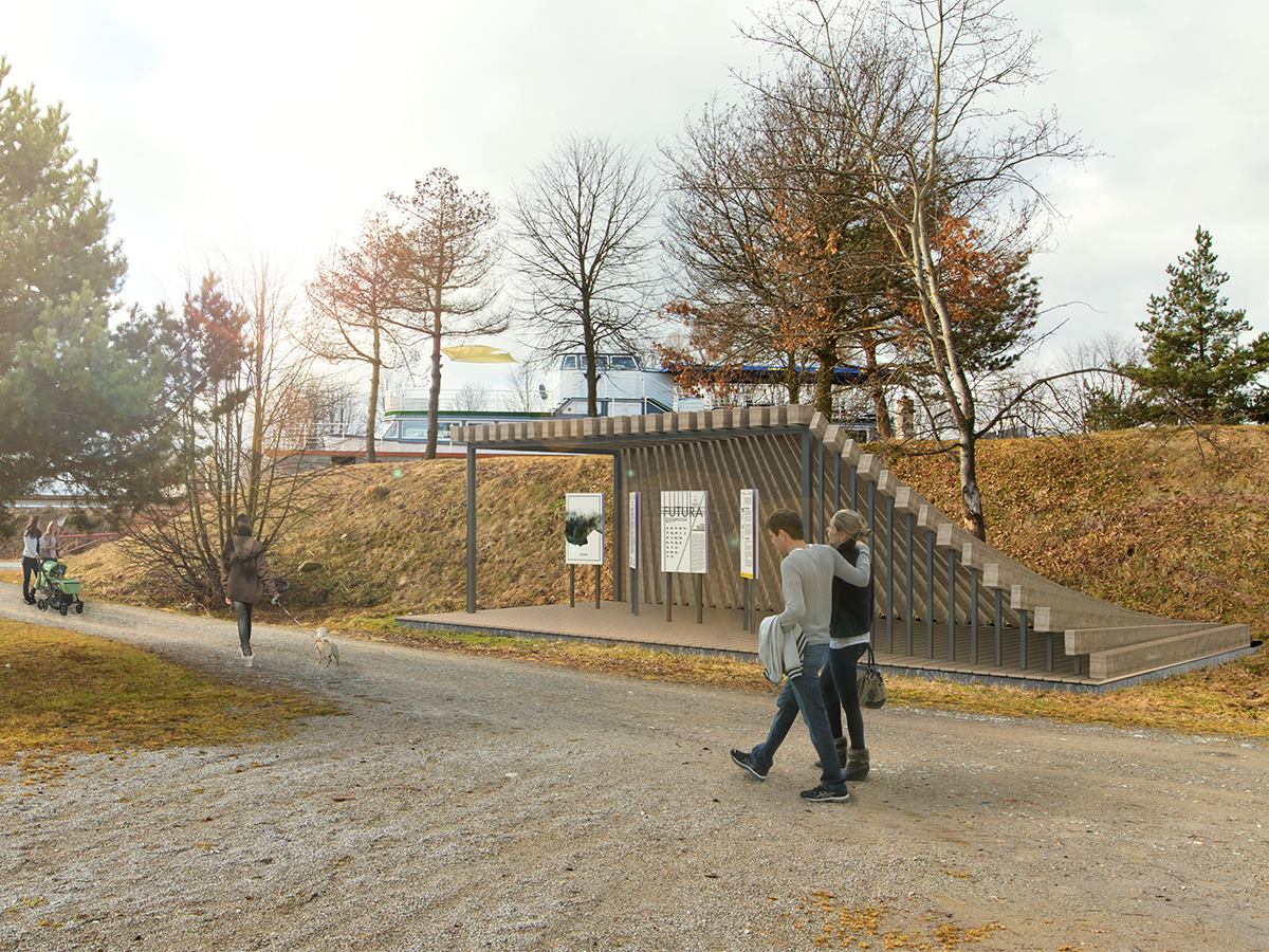 Koncept návrhu sa zakladá na pozornej štúdii okolia. Pevná štruktúra a použité drevené materiály poukazujú na kultúrny odkaz Oravy, pričom postupný prechod do zvlneného tvaru je reakciou na organickosť priehrady. Forma stavby je teda podnietená priehradou a priestor, ktorý vytvára je určený ako spomienka na ľudí, ktorí vo vodách Oravskej priehrady zahynuli. Samotná kompozícia stavby zároveň slúži ako odkaz na rodiny, ktoré museli kvôli výstavbe priehrady opustiť svoje domovy.