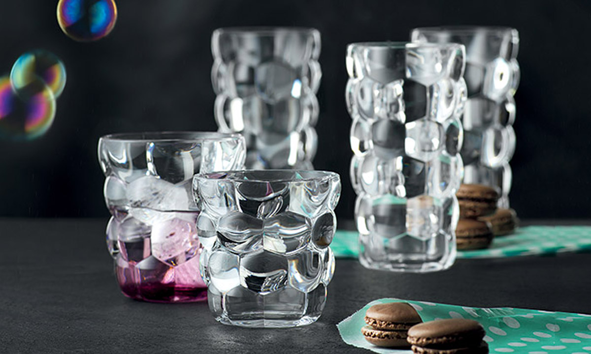 Kolekcia nápojového skla pre nemeckú skláreň Nachtmann je inšpirovaná mydlovými bublinkami a ich krehkosťou. Design je postavený na parametrickom modeli, ktorý vytvára povrch skla prienikom guľových výsekov. Vzniká tak sklo vizuálne zaujímavé a príjemné do ruky. To všetko za dostupnú cenu vďaka veľkoobratovej produkcii nemeckého velikána Nachtmann.