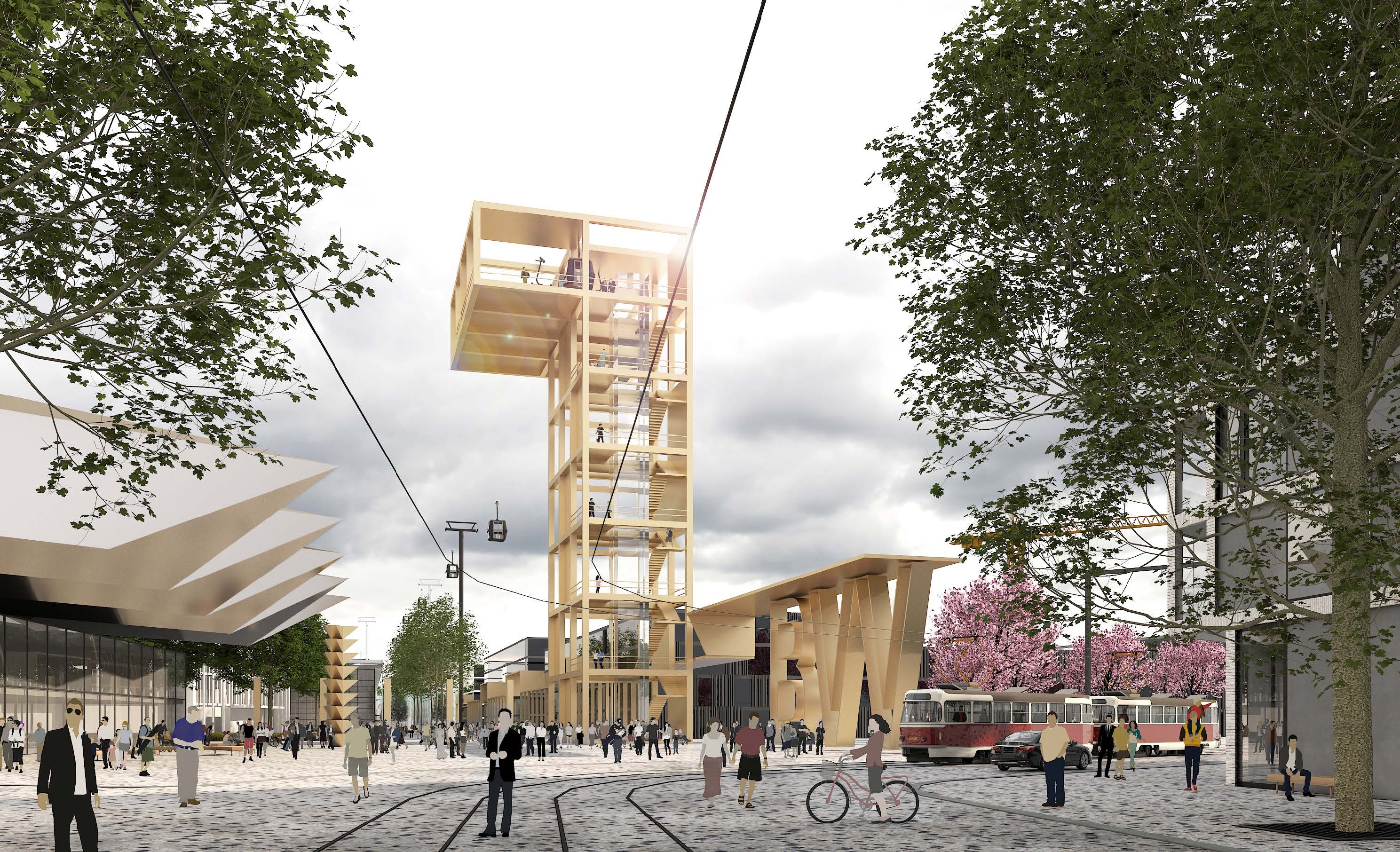Krátky popis návrhu: Proměna výstaviště v moderní městskou část. Svoboda pohybu: prostupností územím, severojižní a východozápadní propojení, prorůstání bytové a smíšené zástavby do území. Místa setkávání: otevření východní části areálu výstaviště městu, zapojení předprostoru pavilonu A do veřejného prostoru, nový park u Bauerova zámečku. Zdravé město: doplnění zeleně v parterech a obnova bulvárů, zelené střechy, zeleň na fasádách, zadržení vody v území, kontinuita se stávající rostlou strukturou města. Aktivní obyvatelé: zapojení nábřeží Svratky a využití potenciálu řeky...