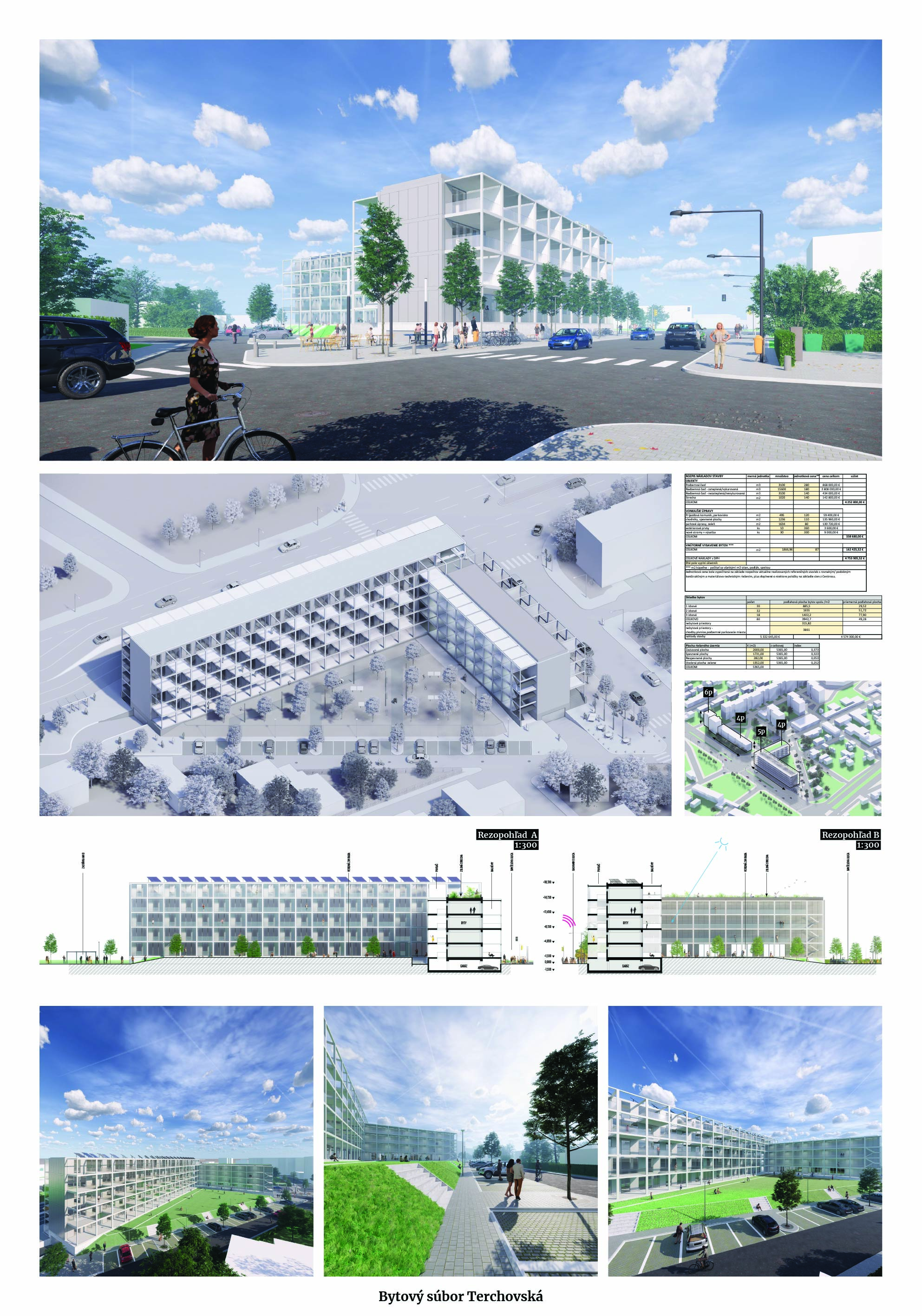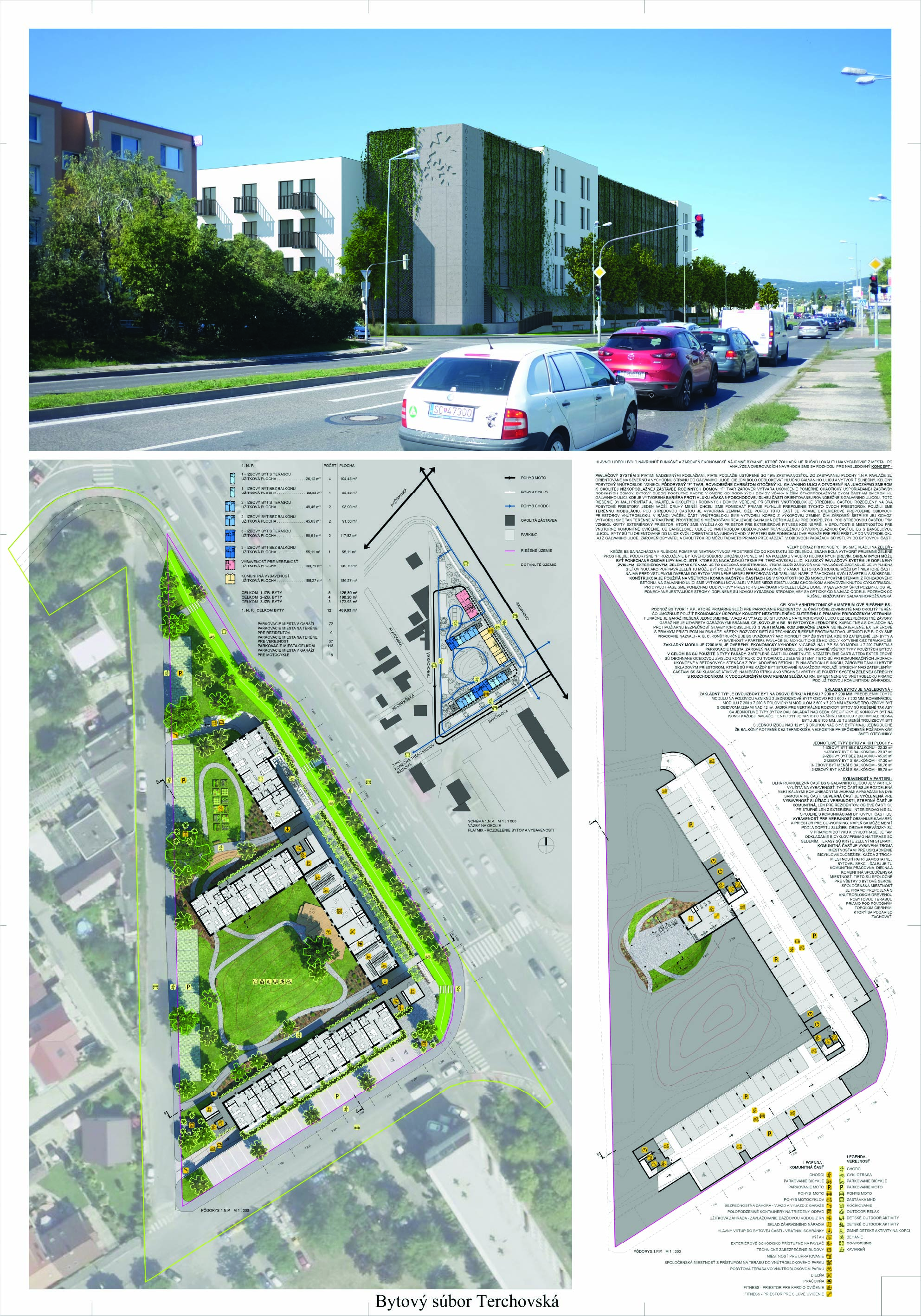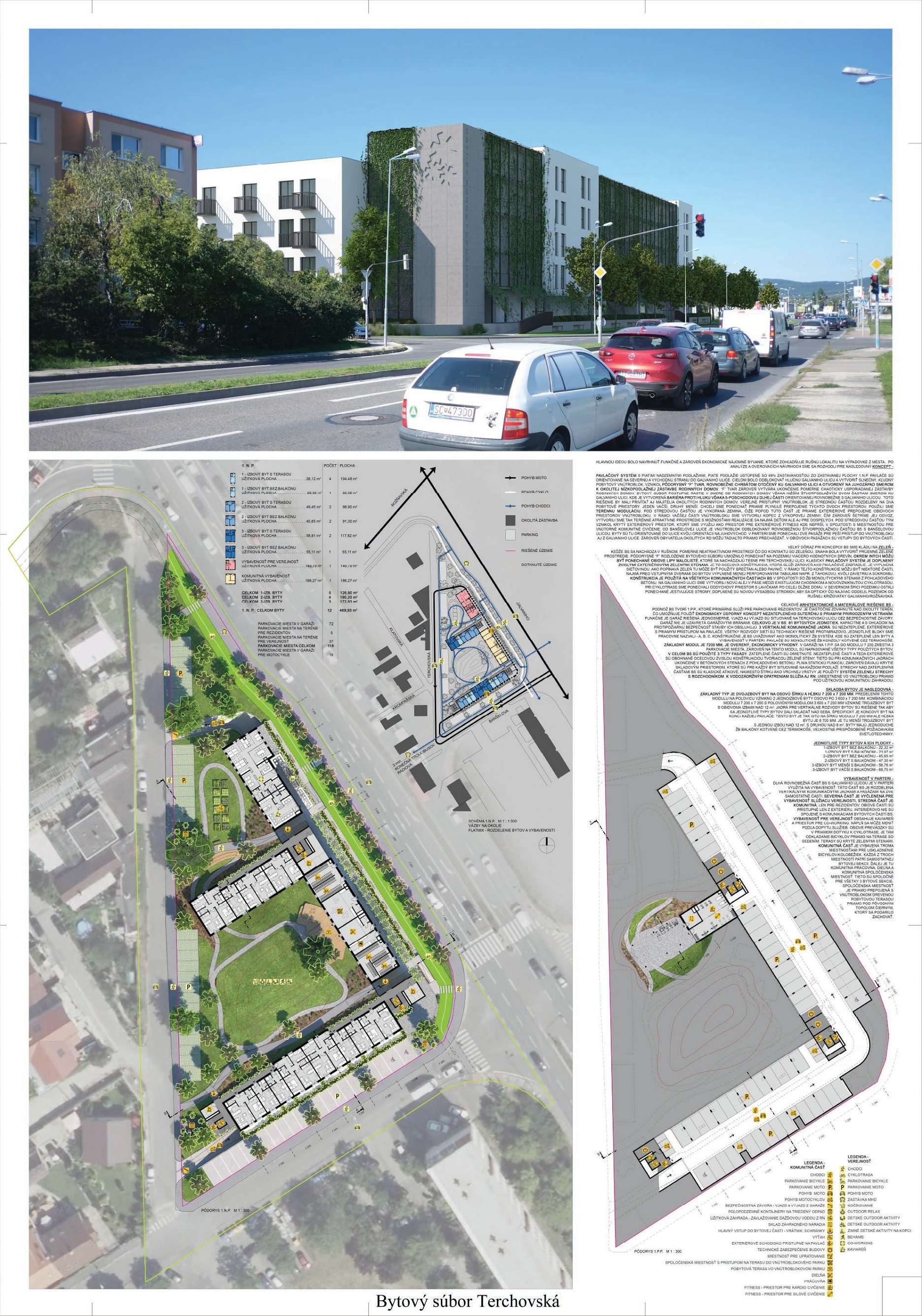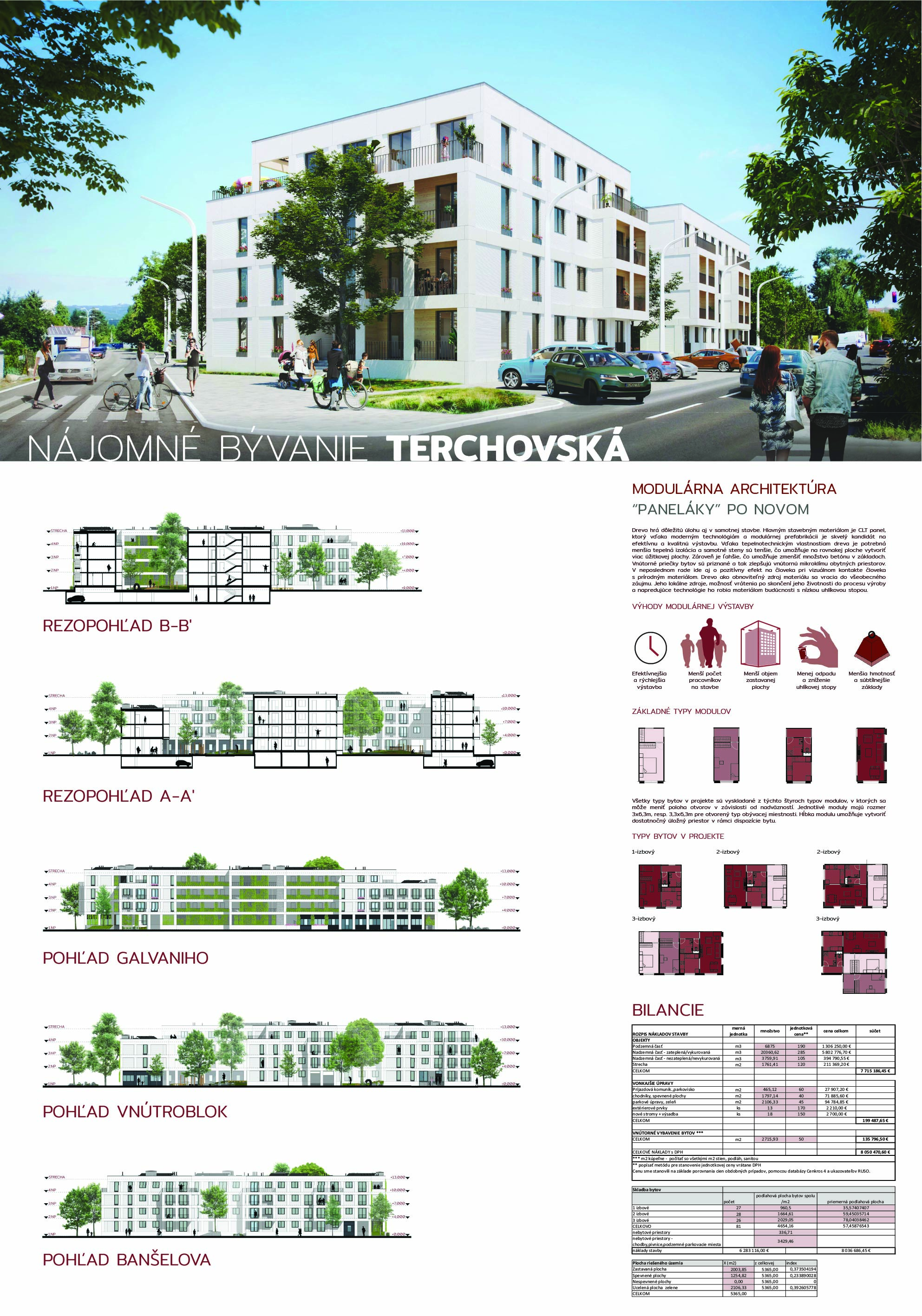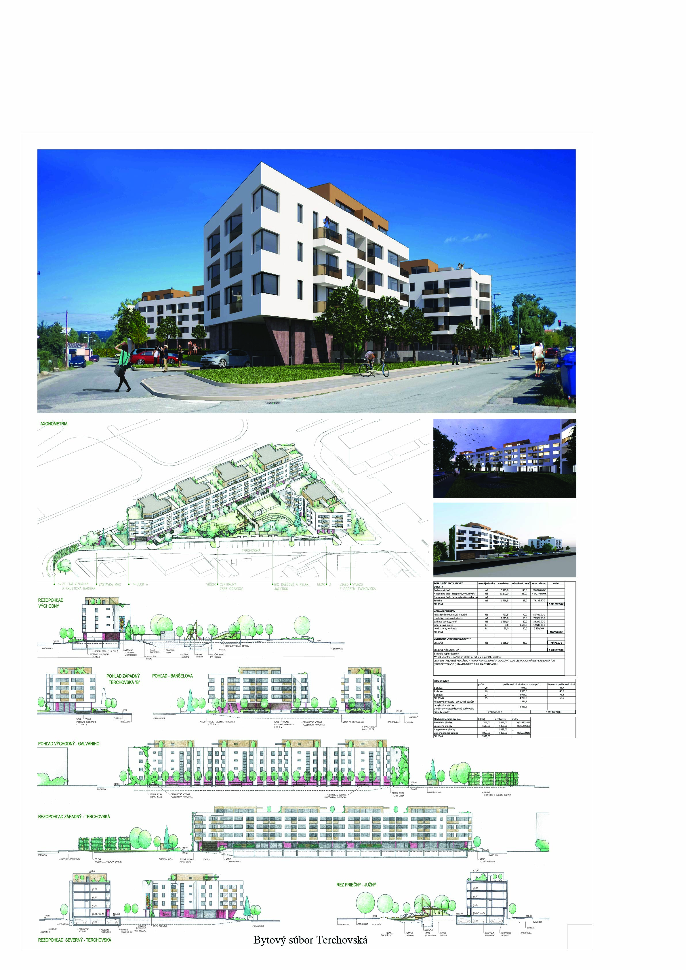 Pri víťaznom návrhu vyzdvihujeme predovšetkým vynikajúce urbanistické riešenie a citlivé začlenenie do územia. Bariérový pavlačový dom odtieňuje hluk z Galvaniho ulice a logicky dopĺňa rad štvorpodlažných panelových domov. Zároveň sa však ku koridoru Galvaniho ulice nestavia chrbtom, keď na oboch priečeliach autori umiestnili priestory vybavenosti. Správnosť tohto rozhodnutia potvrdzuje aj úprava a zvládnutie čelného priestoru pri križovatke Rožňavská - Galvaniho ulica. Skupina menších domov v západnej časti pozemku reaguje na mierku priľahlej zástavby a vytvára tak priepustné poloverejné priestory, ktoré nadväzujú na obdobné priestory medzi panelovými bytovými domami na juhovýchodnej strane Banšelovej ulice. Autori navyše vhodne umiestňujú vjazd do podzemnej halovej garáže do Banšelovej ulice, čím odľahčujú dynamickú dopravu v Terchovskej ulici a potvrdzujú jej status vedľajšej ukľudnenej slepej ulice.