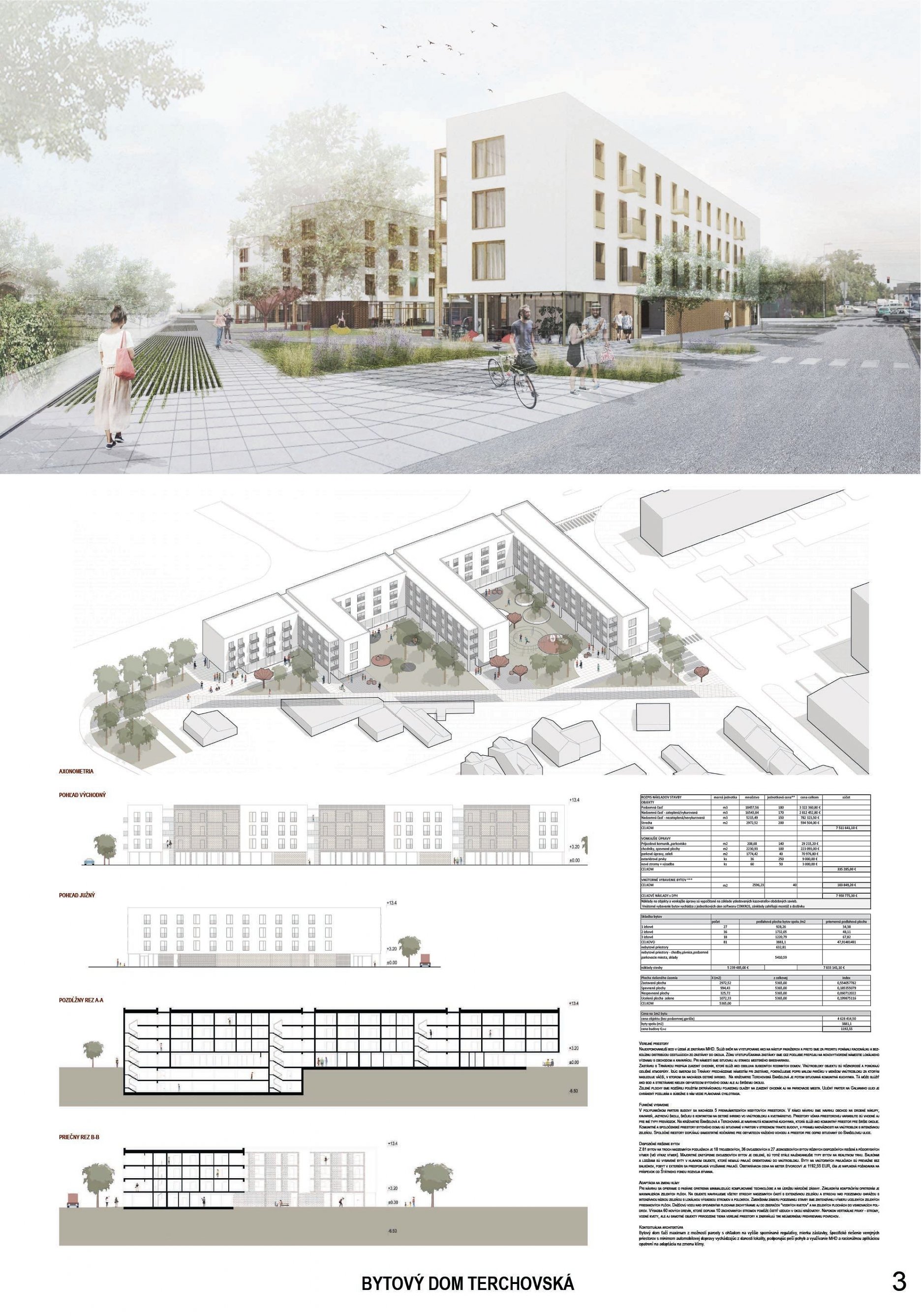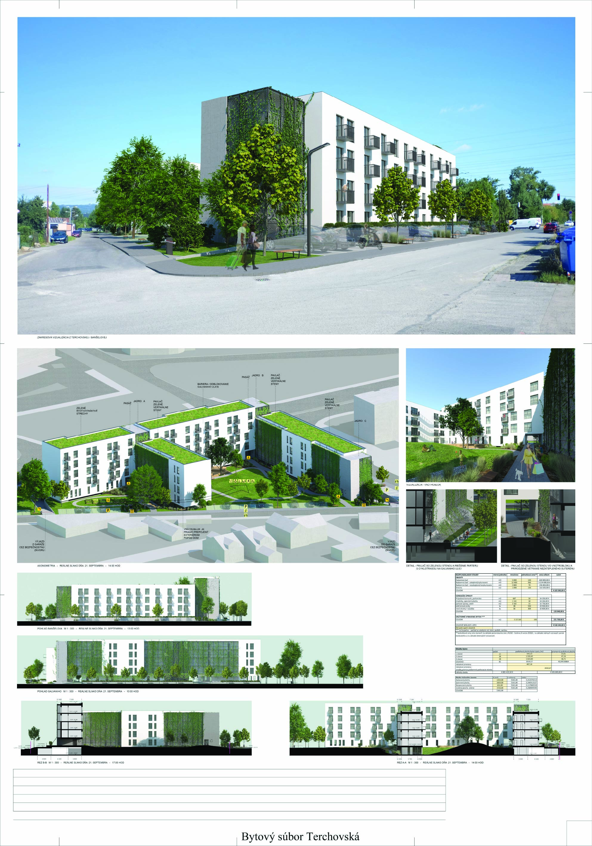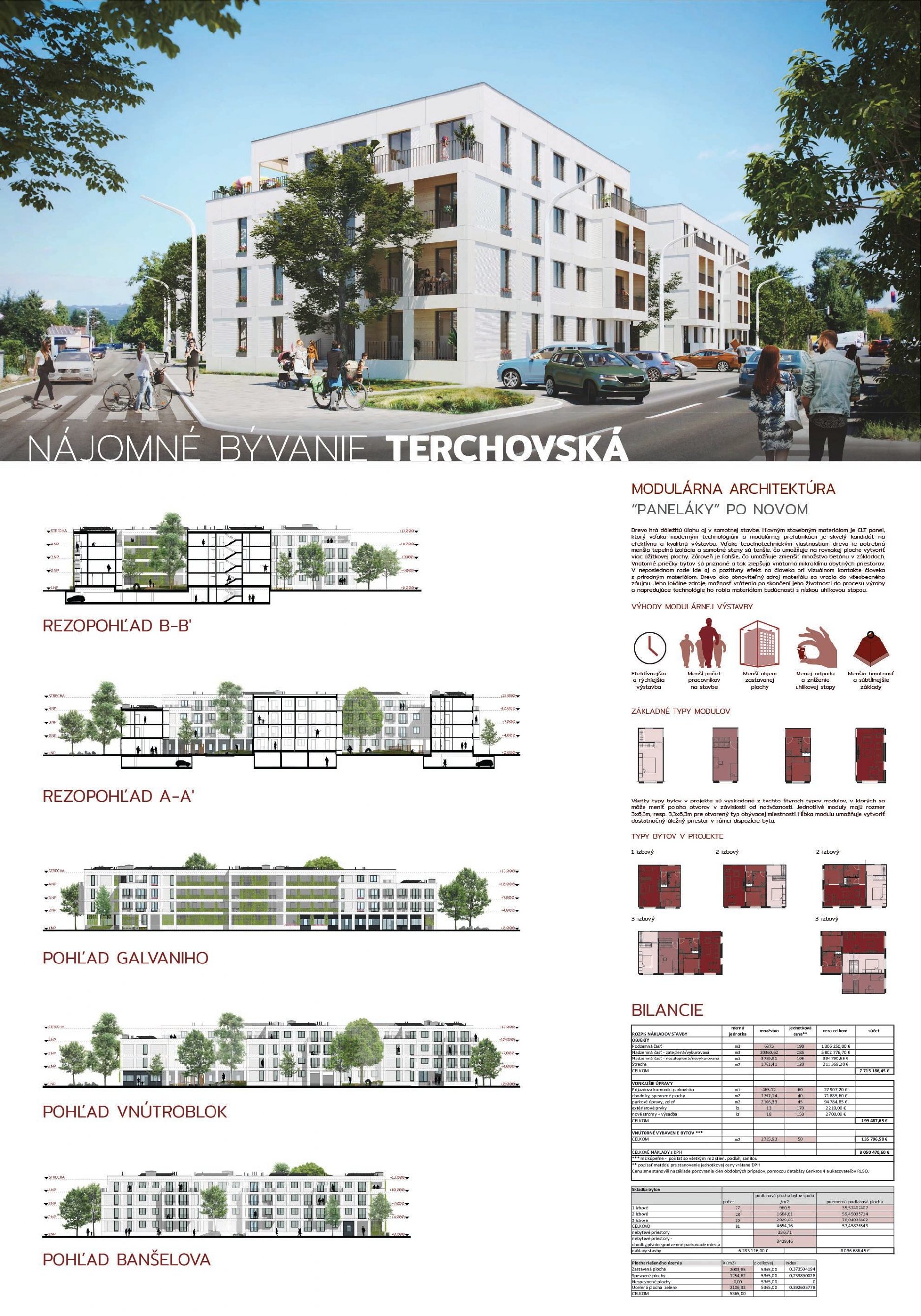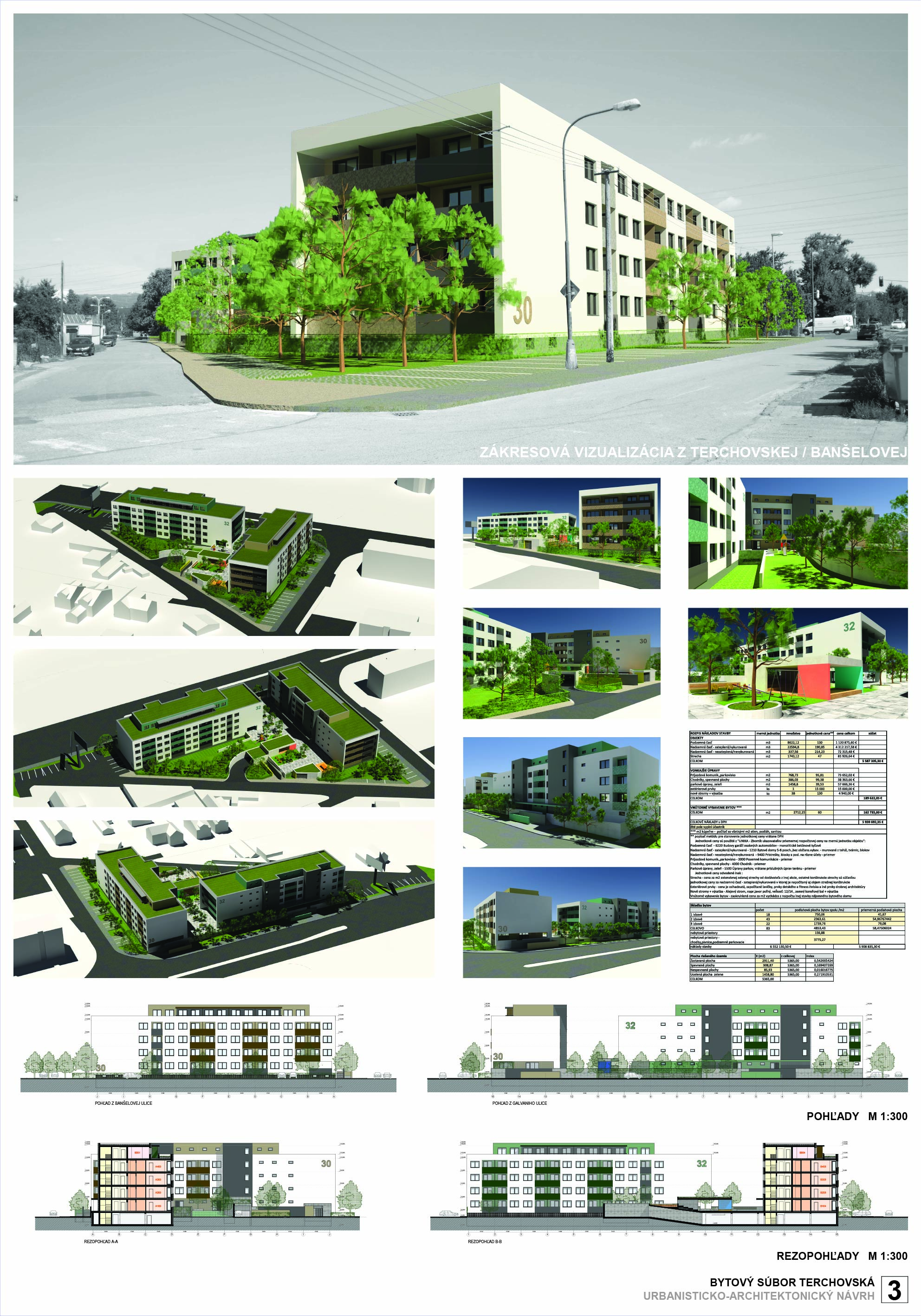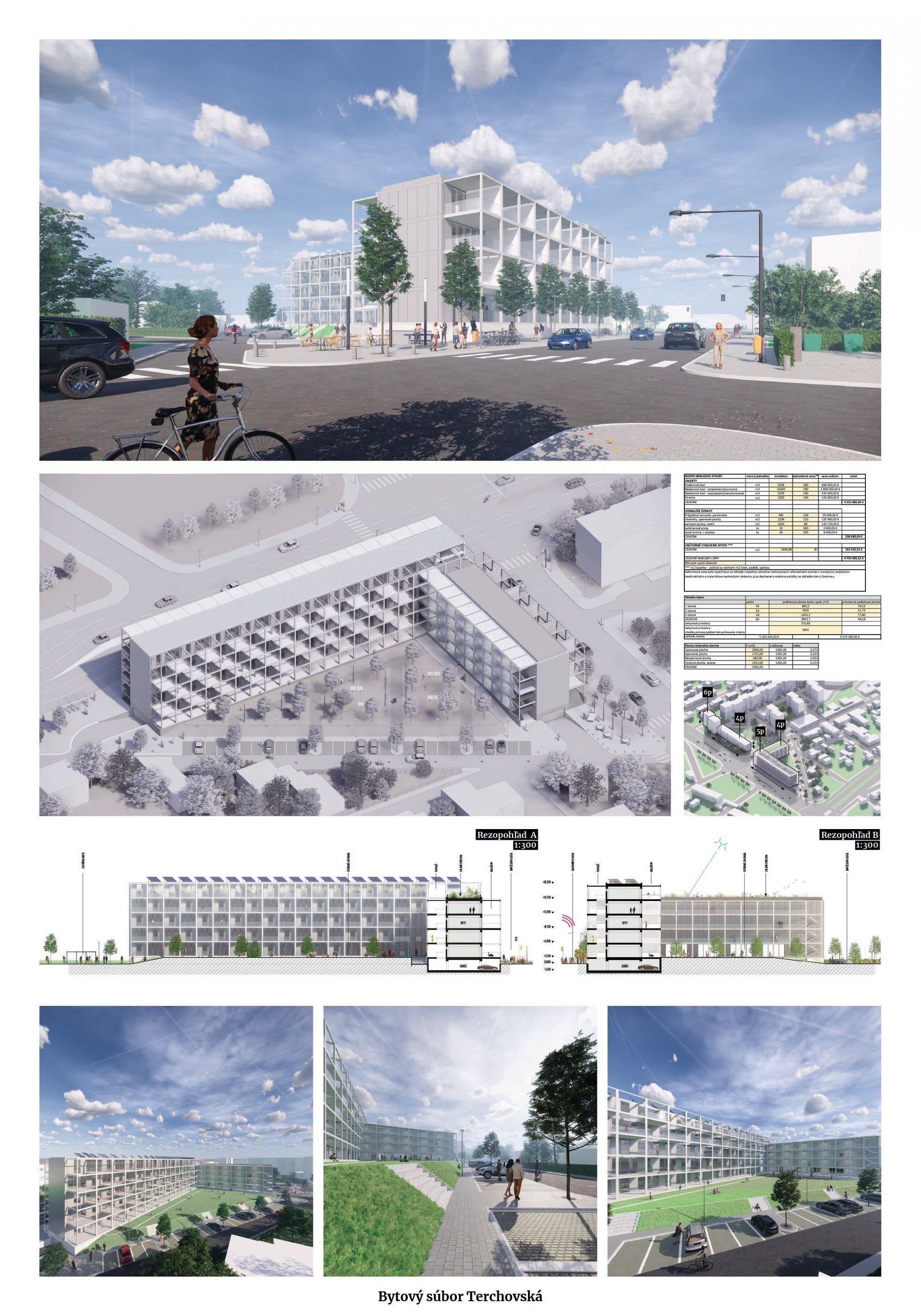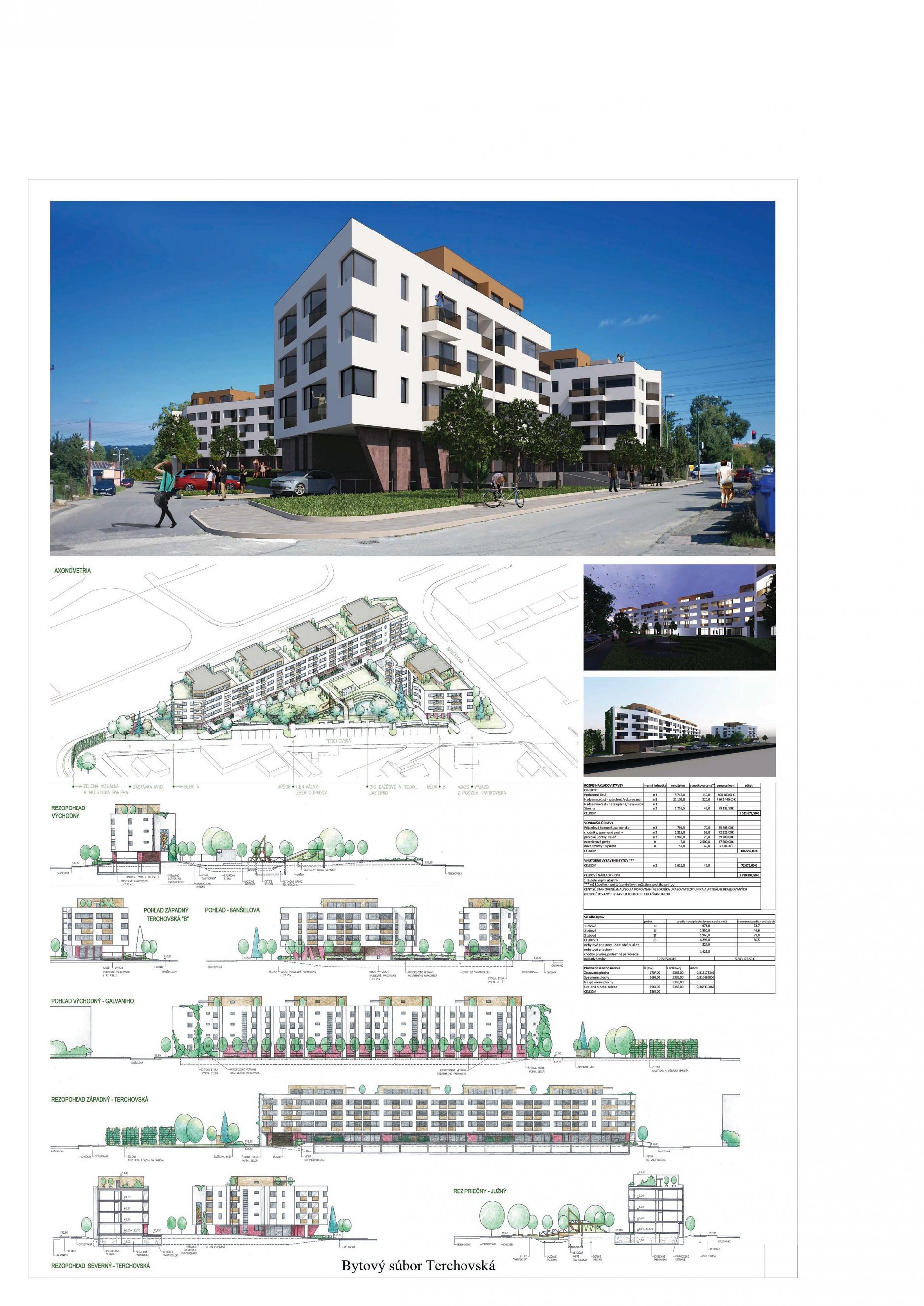 Pri víťaznom návrhu vyzdvihujeme predovšetkým vynikajúce urbanistické riešenie a citlivé začlenenie do územia. Bariérový pavlačový dom odtieňuje hluk z Galvaniho ulice a logicky dopĺňa rad štvorpodlažných panelových domov. Zároveň sa však ku koridoru Galvaniho ulice nestavia chrbtom, keď na oboch priečeliach autori umiestnili priestory vybavenosti. Správnosť tohto rozhodnutia potvrdzuje aj úprava a zvládnutie čelného priestoru pri križovatke Rožňavská - Galvaniho ulica. Skupina menších domov v západnej časti pozemku reaguje na mierku priľahlej zástavby a vytvára tak priepustné poloverejné priestory, ktoré nadväzujú na obdobné priestory medzi panelovými bytovými domami na juhovýchodnej strane Banšelovej ulice. Autori navyše vhodne umiestňujú vjazd do podzemnej halovej garáže do Banšelovej ulice, čím odľahčujú dynamickú dopravu v Terchovskej ulici a potvrdzujú jej status vedľajšej ukľudnenej slepej ulice.