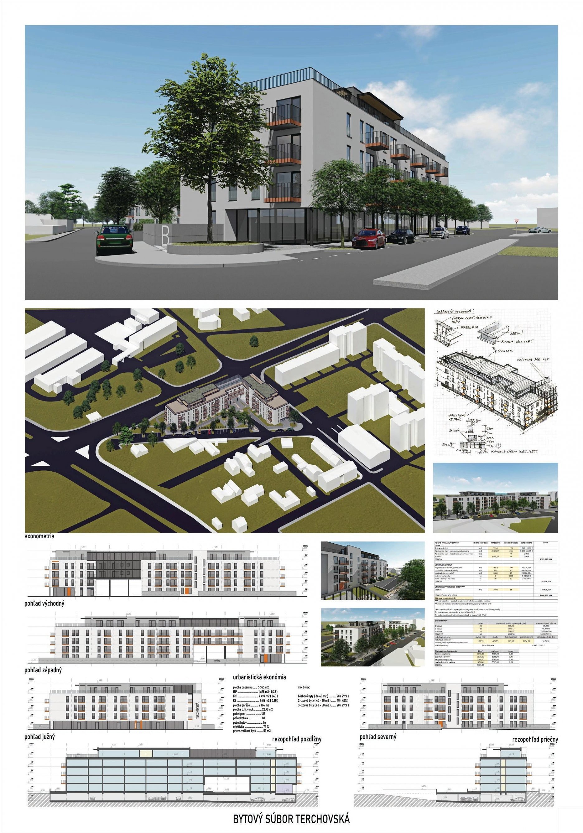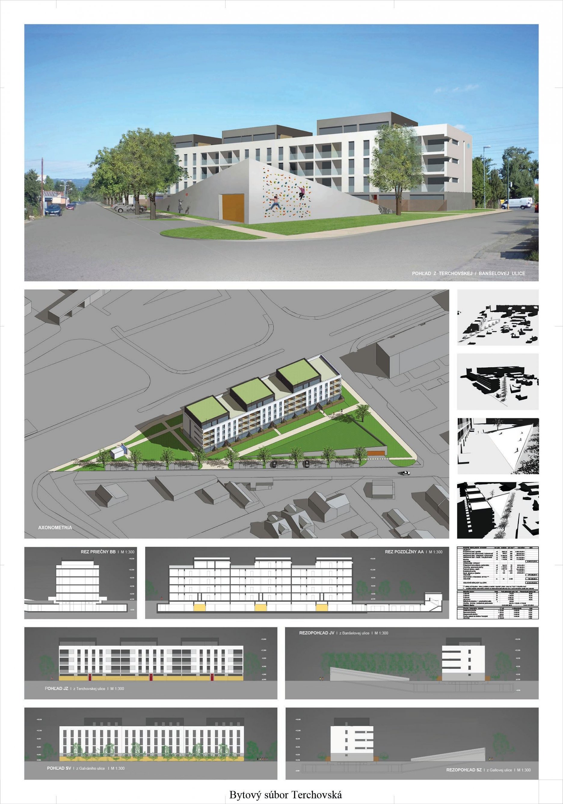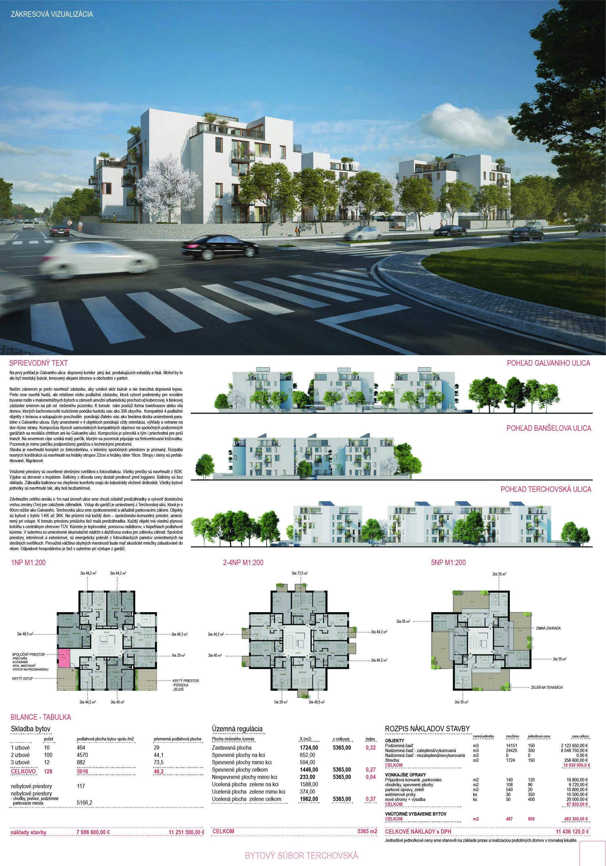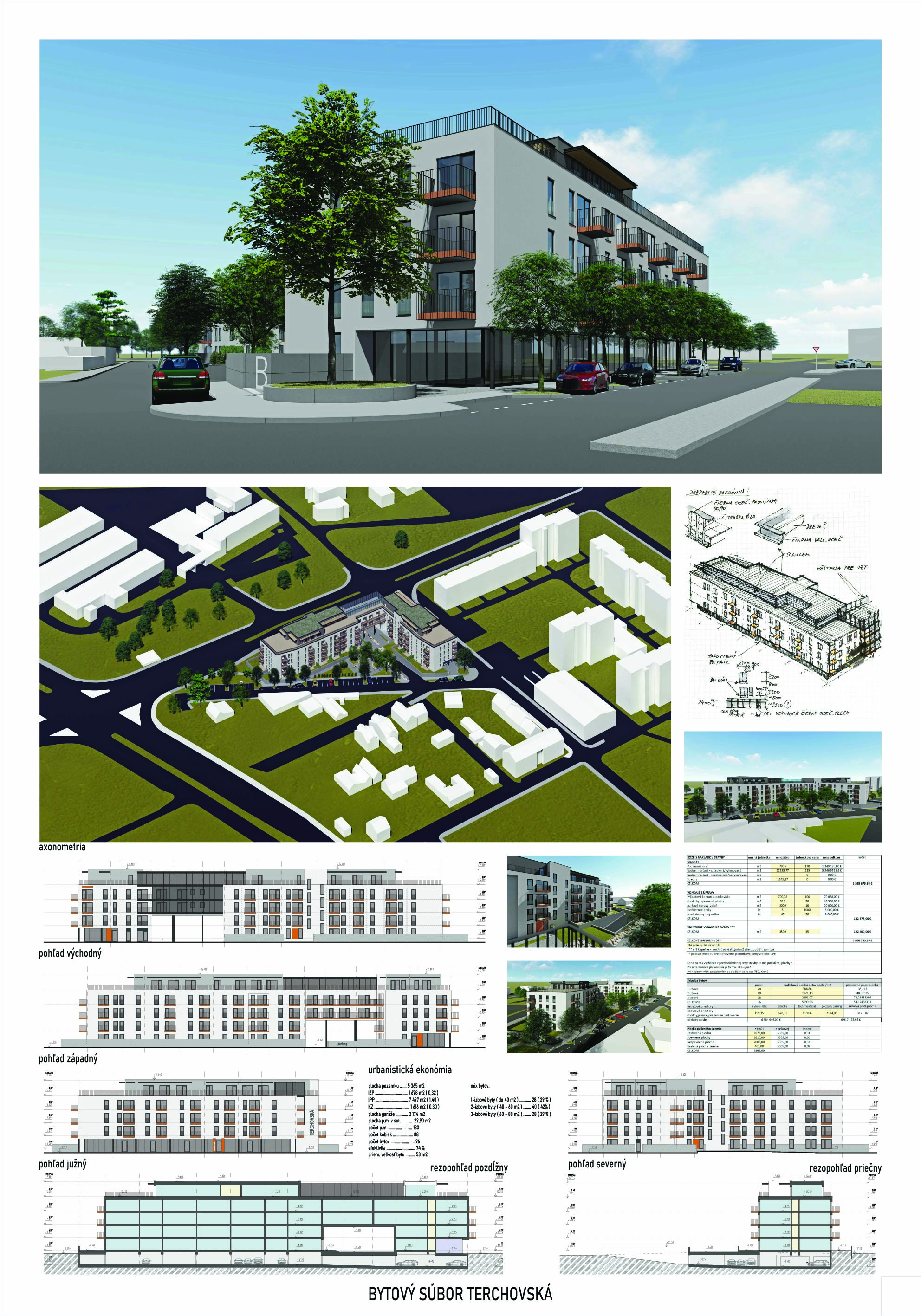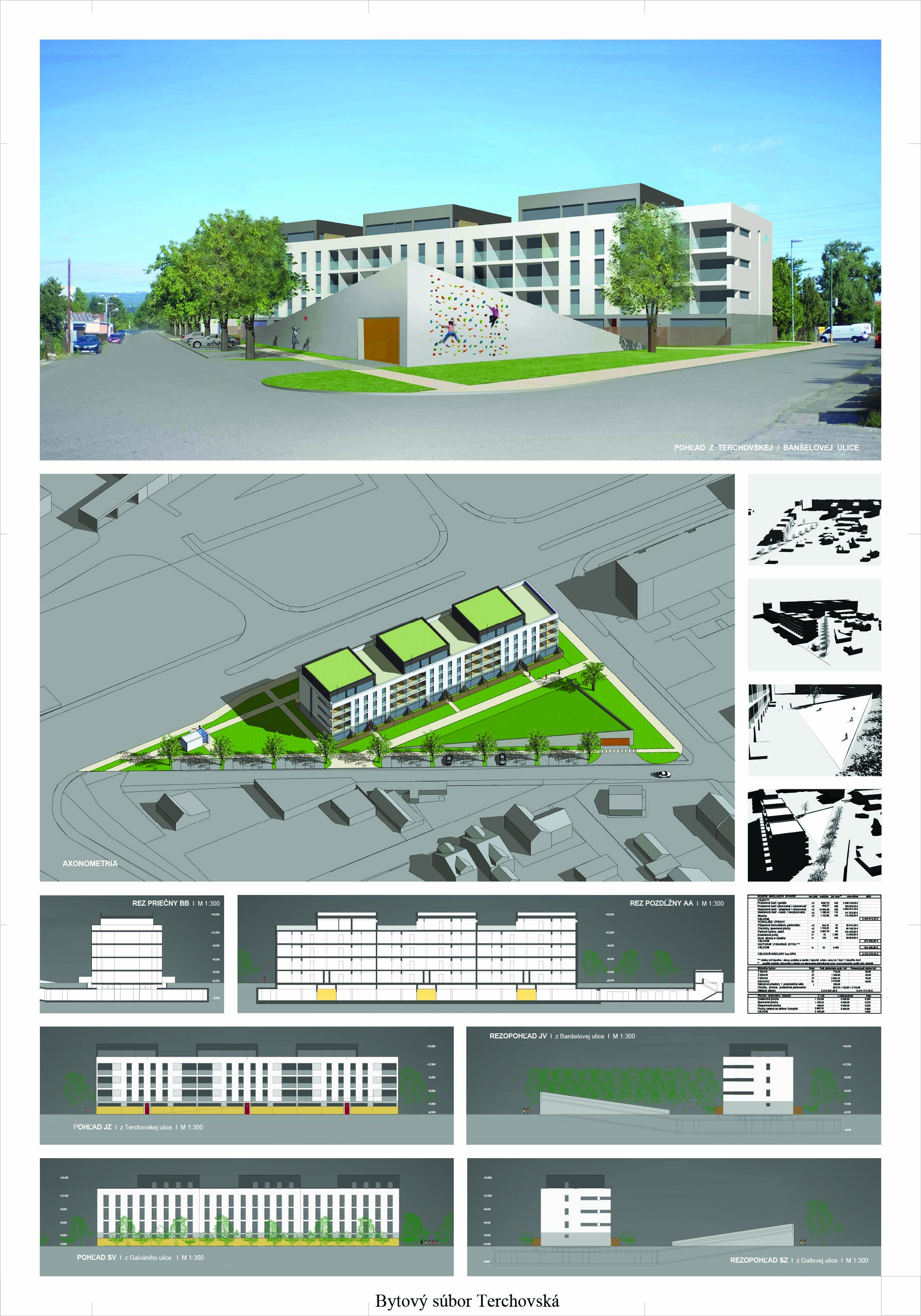 Pri víťaznom návrhu vyzdvihujeme predovšetkým vynikajúce urbanistické riešenie a citlivé začlenenie do územia. Bariérový pavlačový dom odtieňuje hluk z Galvaniho ulice a logicky dopĺňa rad štvorpodlažných panelových domov. Zároveň sa však ku koridoru Galvaniho ulice nestavia chrbtom, keď na oboch priečeliach autori umiestnili priestory vybavenosti. Správnosť tohto rozhodnutia potvrdzuje aj úprava a zvládnutie čelného priestoru pri križovatke Rožňavská - Galvaniho ulica. Skupina menších domov v západnej časti pozemku reaguje na mierku priľahlej zástavby a vytvára tak priepustné poloverejné priestory, ktoré nadväzujú na obdobné priestory medzi panelovými bytovými domami na juhovýchodnej strane Banšelovej ulice. Autori navyše vhodne umiestňujú vjazd do podzemnej halovej garáže do Banšelovej ulice, čím odľahčujú dynamickú dopravu v Terchovskej ulici a potvrdzujú jej status vedľajšej ukľudnenej slepej ulice.