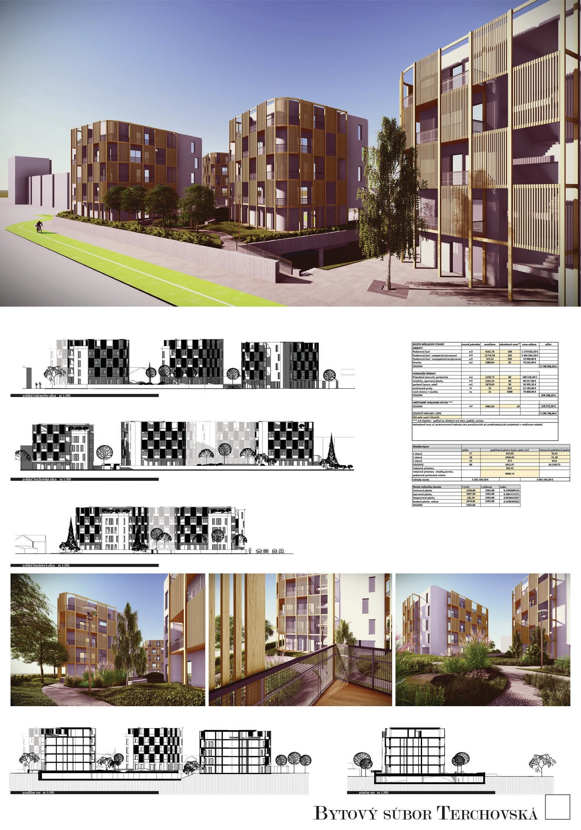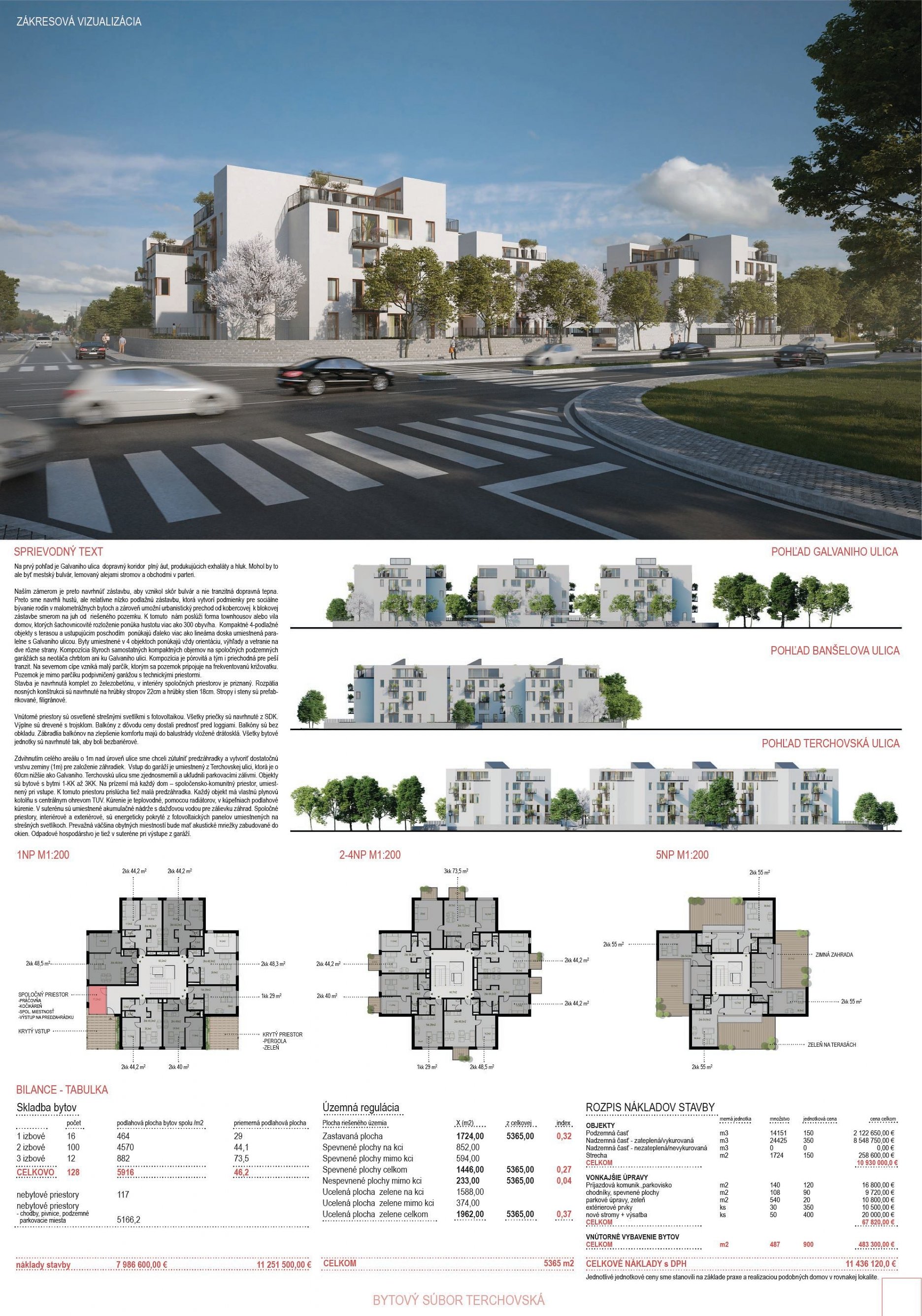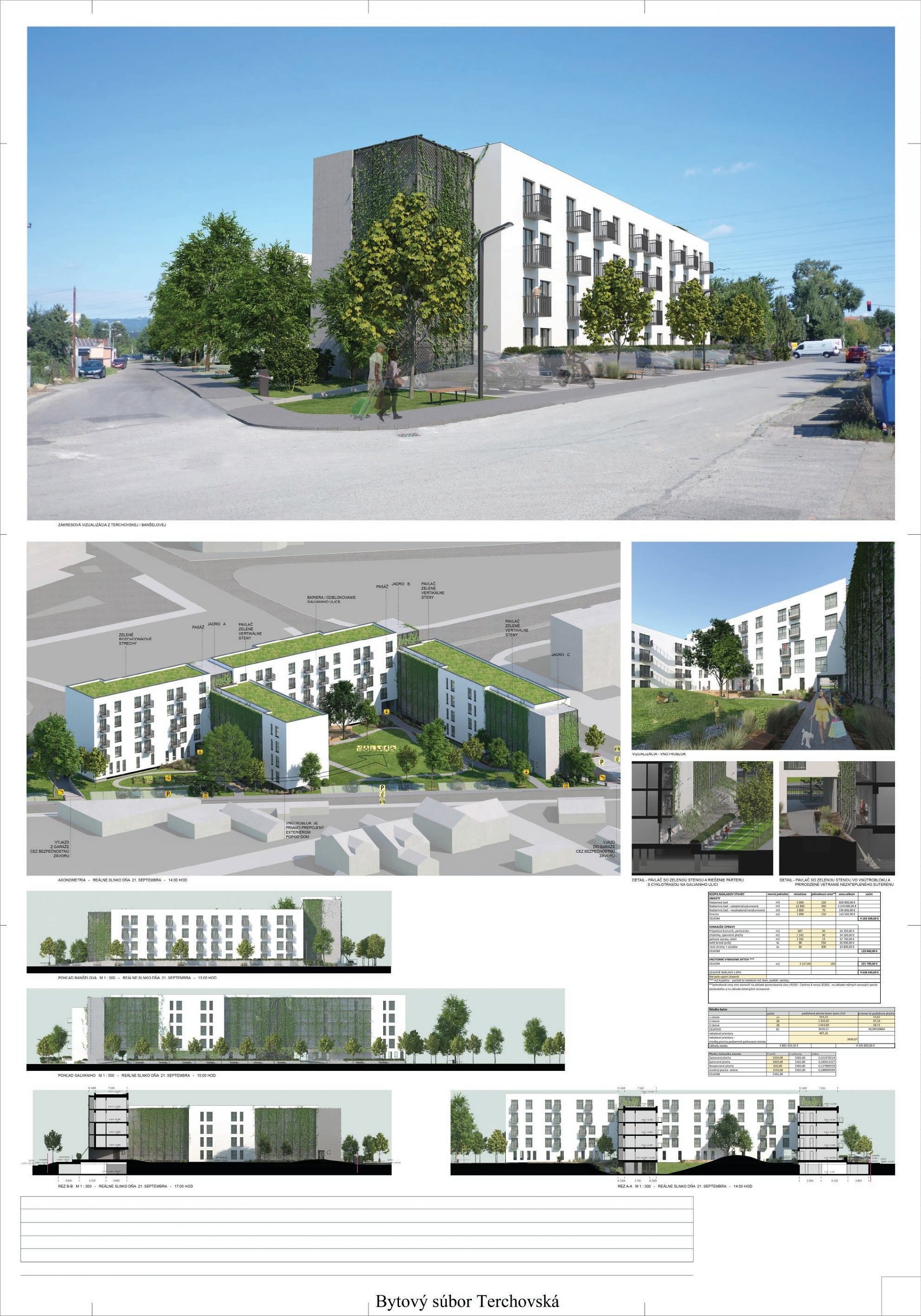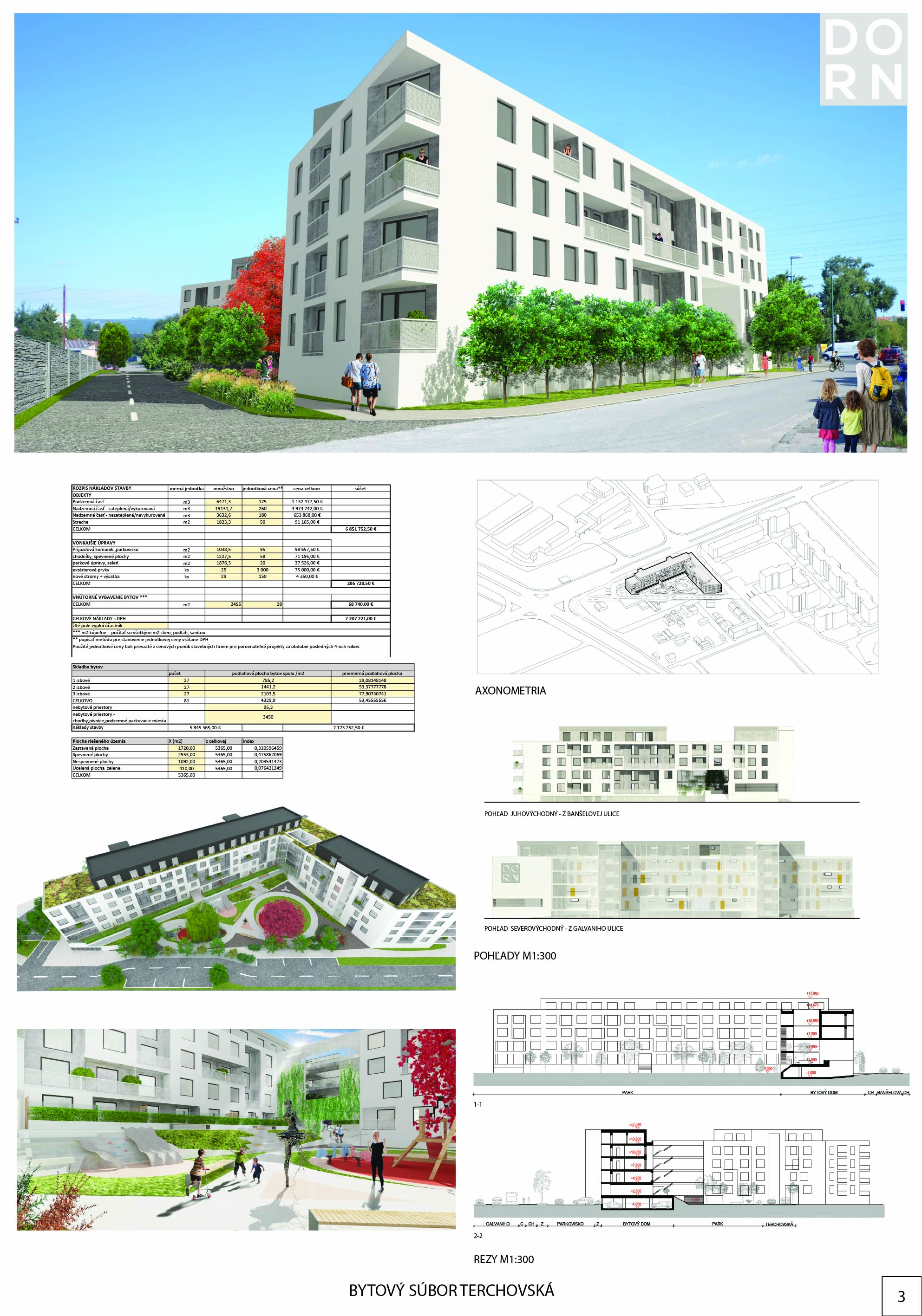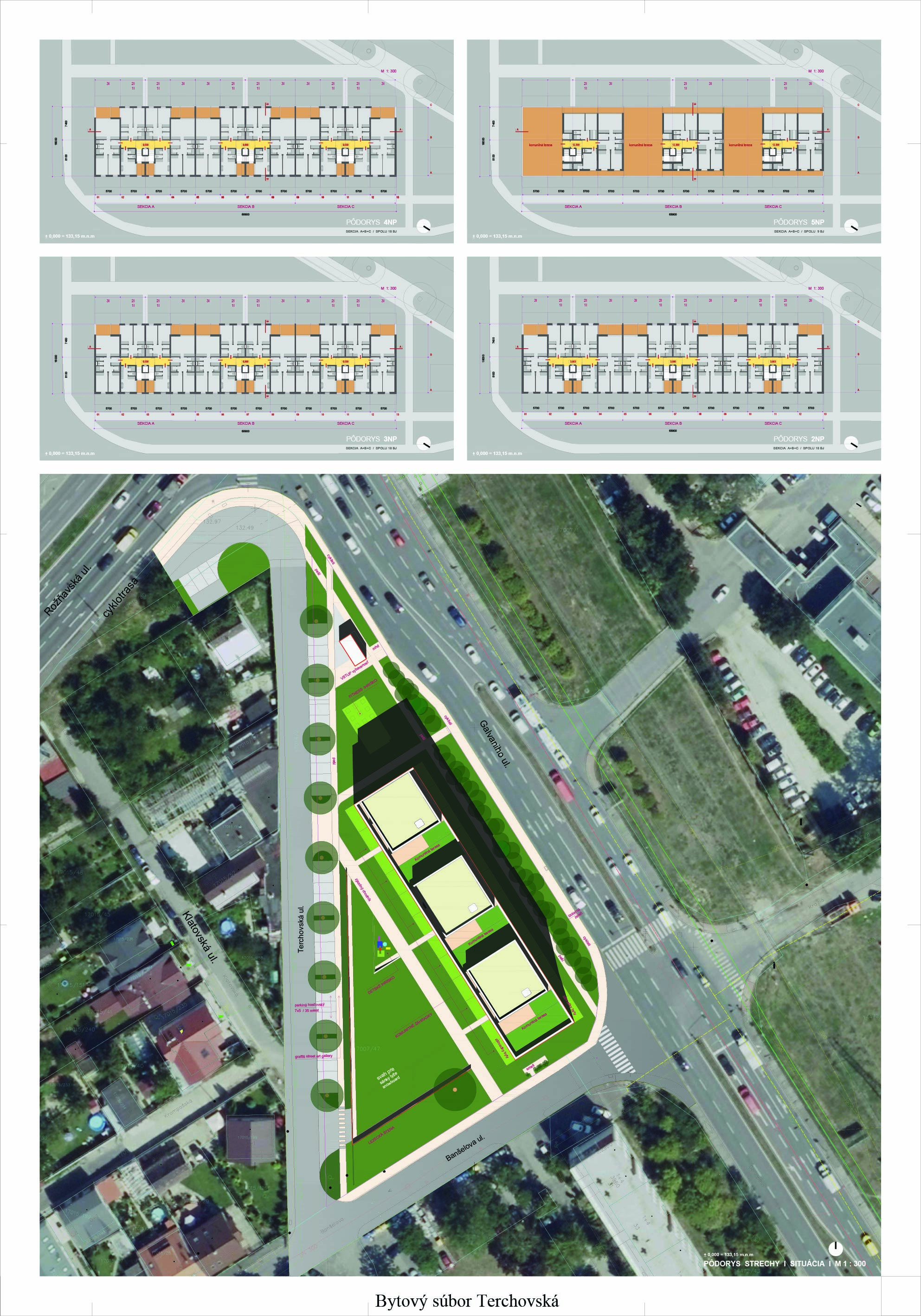 Pri víťaznom návrhu vyzdvihujeme predovšetkým vynikajúce urbanistické riešenie a citlivé začlenenie do územia. Bariérový pavlačový dom odtieňuje hluk z Galvaniho ulice a logicky dopĺňa rad štvorpodlažných panelových domov. Zároveň sa však ku koridoru Galvaniho ulice nestavia chrbtom, keď na oboch priečeliach autori umiestnili priestory vybavenosti. Správnosť tohto rozhodnutia potvrdzuje aj úprava a zvládnutie čelného priestoru pri križovatke Rožňavská - Galvaniho ulica. Skupina menších domov v západnej časti pozemku reaguje na mierku priľahlej zástavby a vytvára tak priepustné poloverejné priestory, ktoré nadväzujú na obdobné priestory medzi panelovými bytovými domami na juhovýchodnej strane Banšelovej ulice. Autori navyše vhodne umiestňujú vjazd do podzemnej halovej garáže do Banšelovej ulice, čím odľahčujú dynamickú dopravu v Terchovskej ulici a potvrdzujú jej status vedľajšej ukľudnenej slepej ulice.