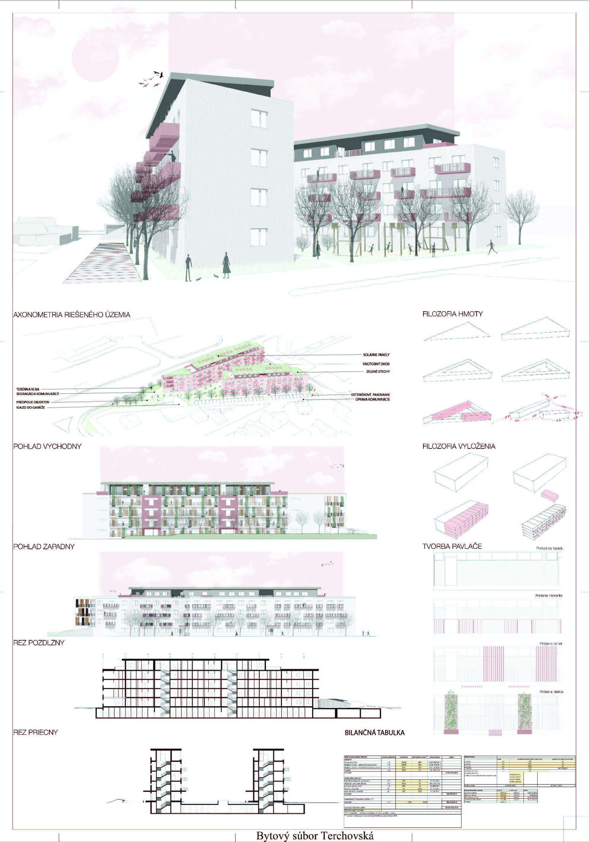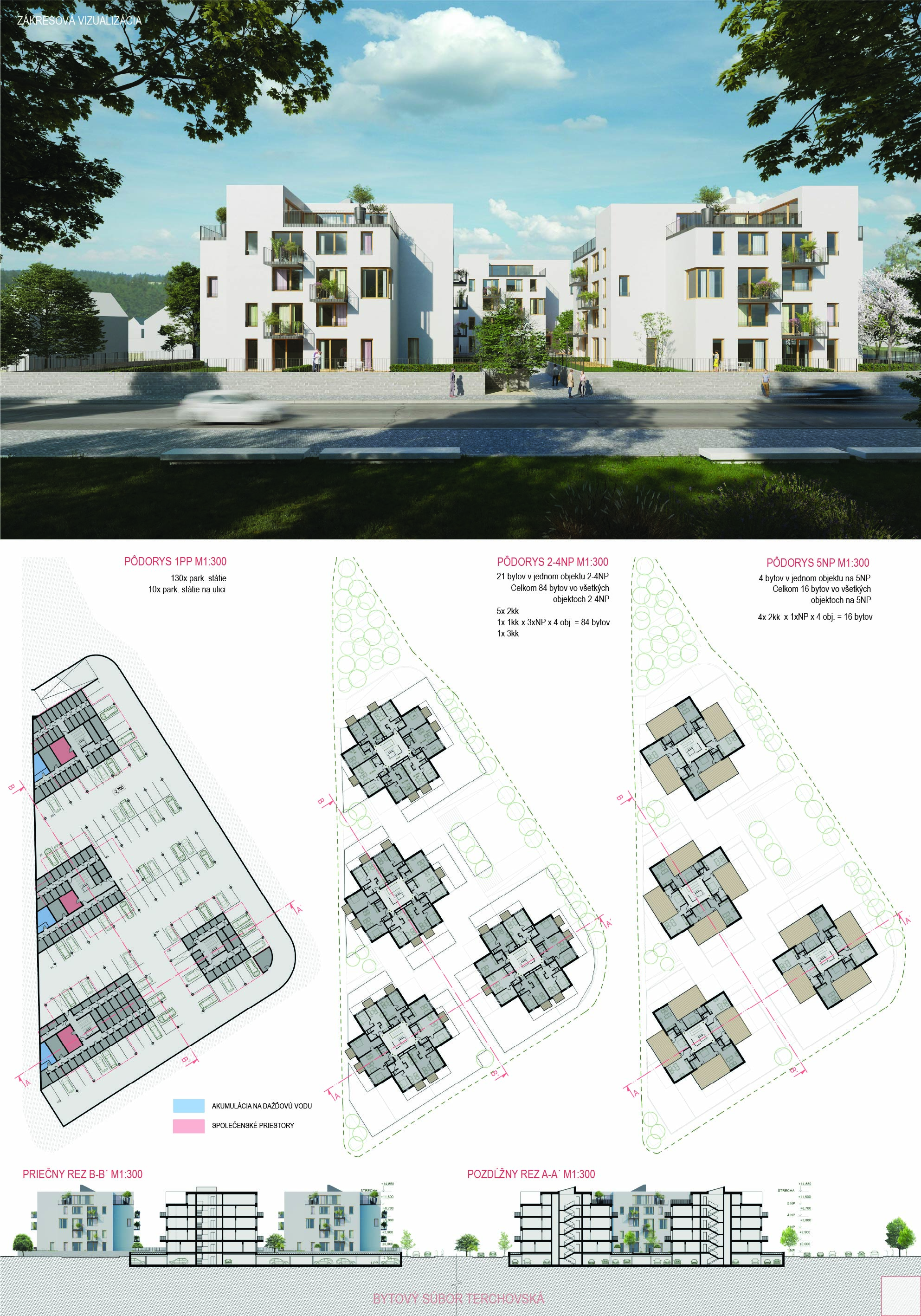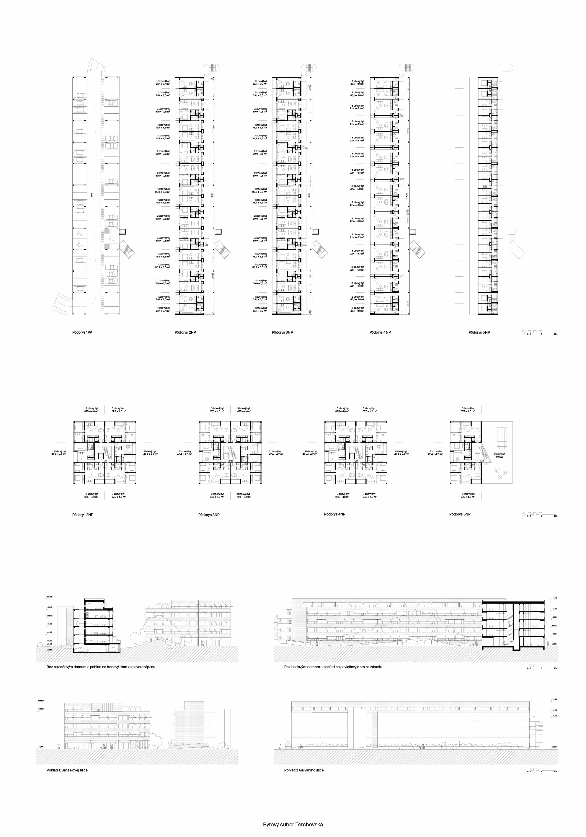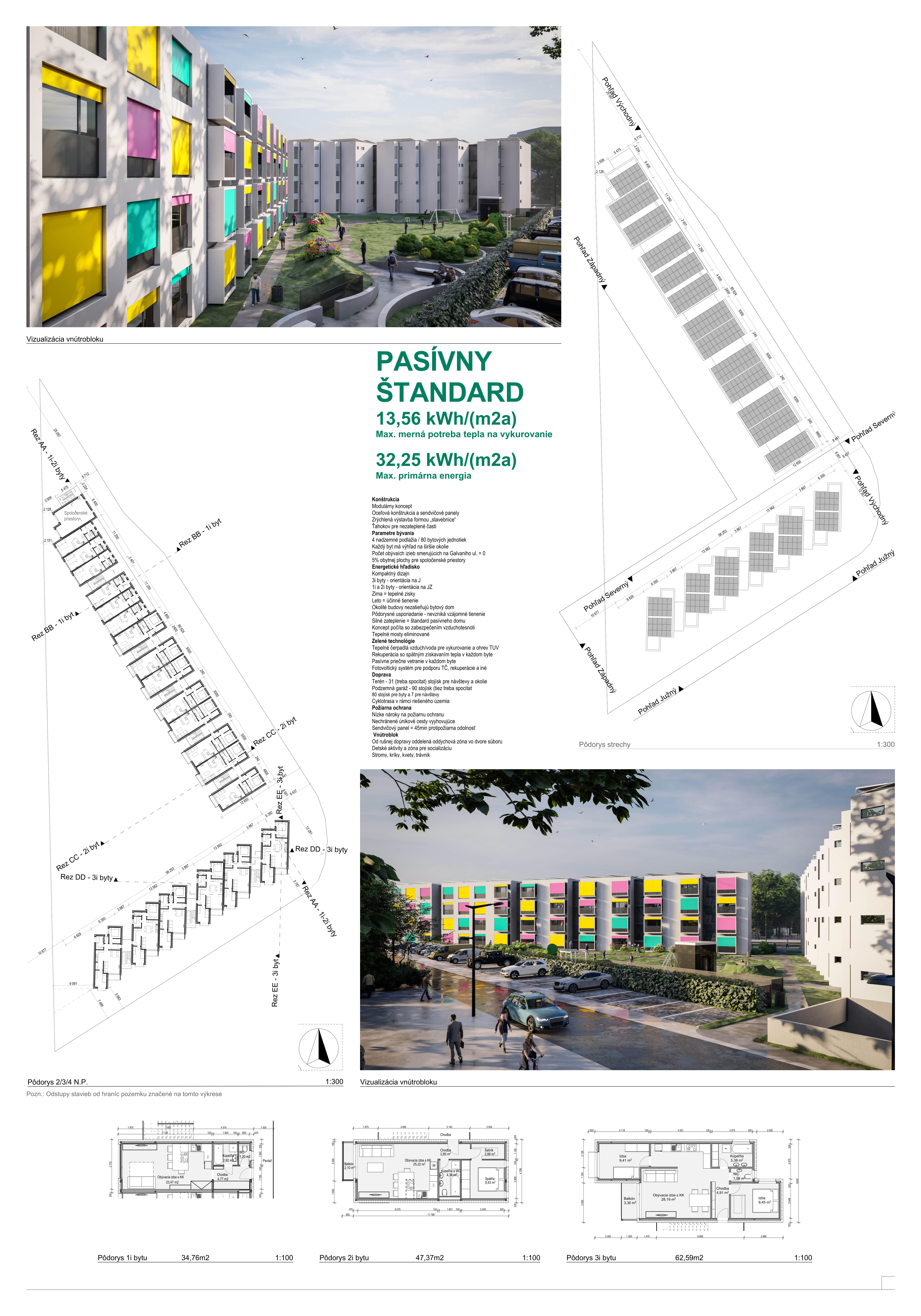 Samotné domy sú lapidárne tak v konštrukčnom, ako aj v dispozičnom riešení, čo považujeme za správne. Popri splnení požadovaných parametrov navrhnutých bytov ponúka riešenie vhodných spoločných a komunitných priestorov.