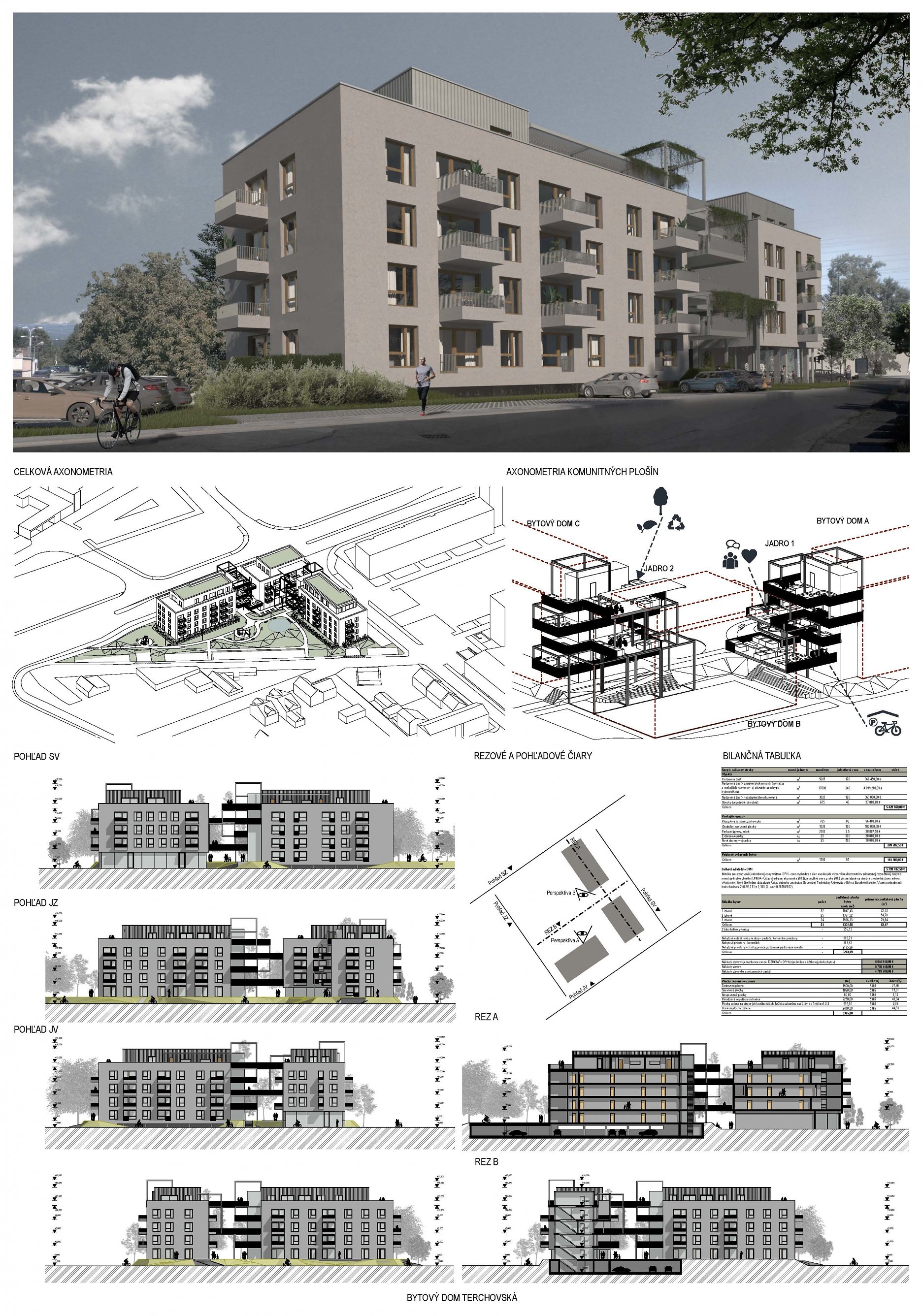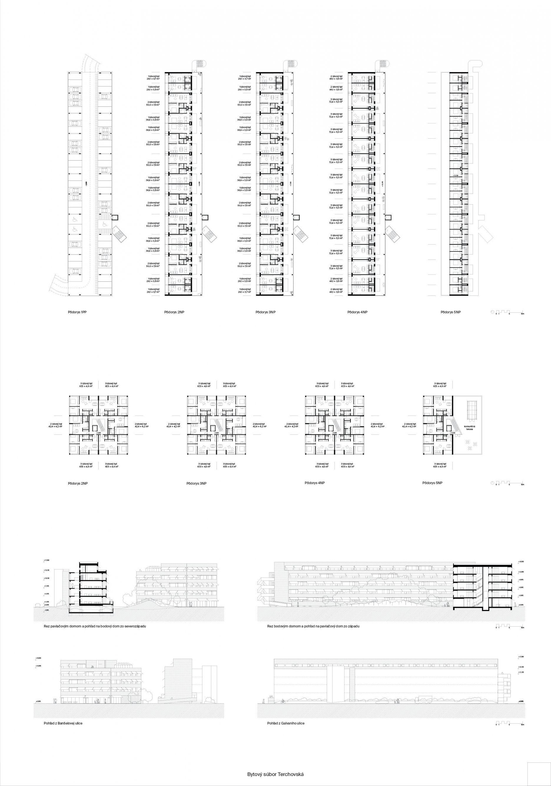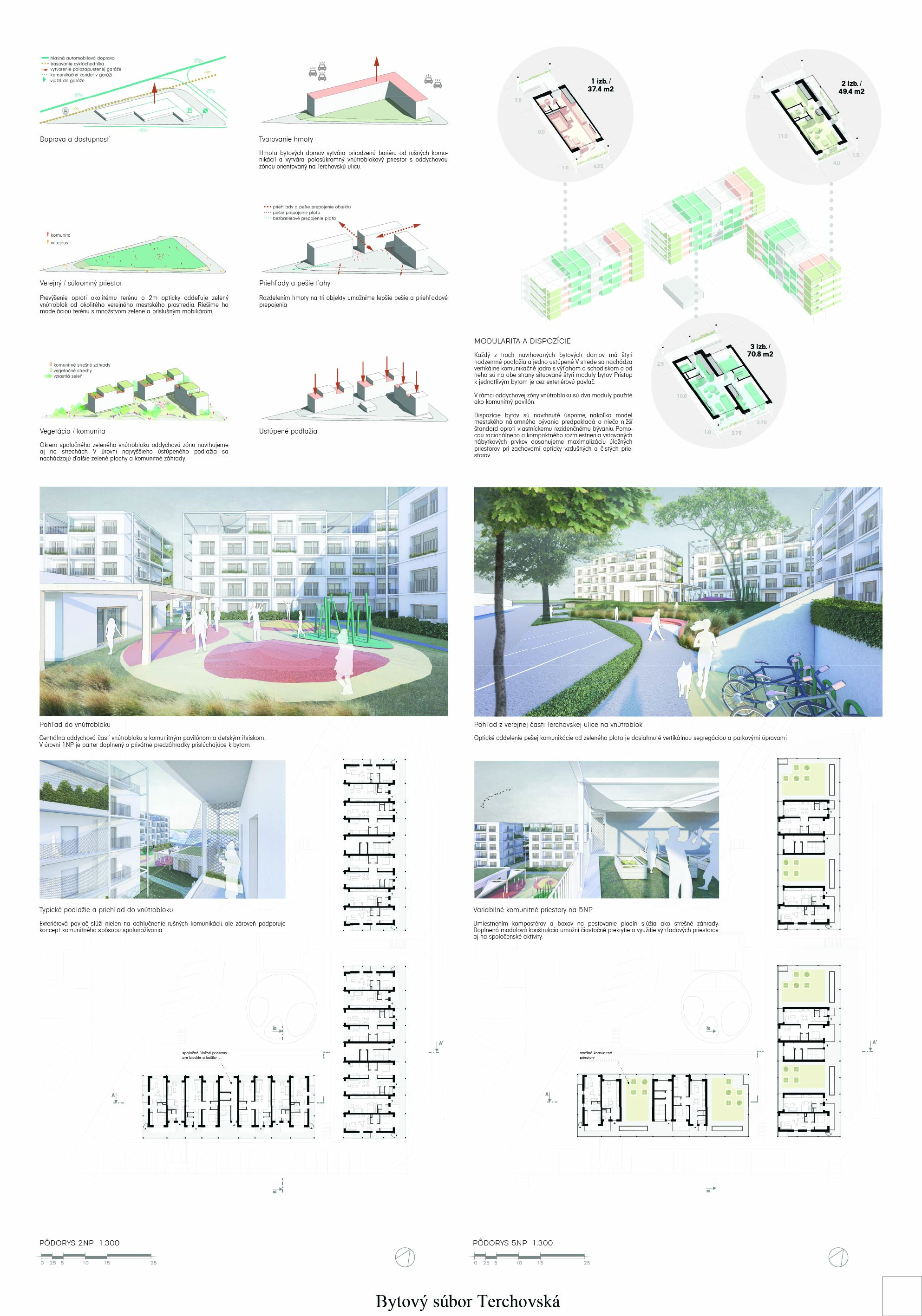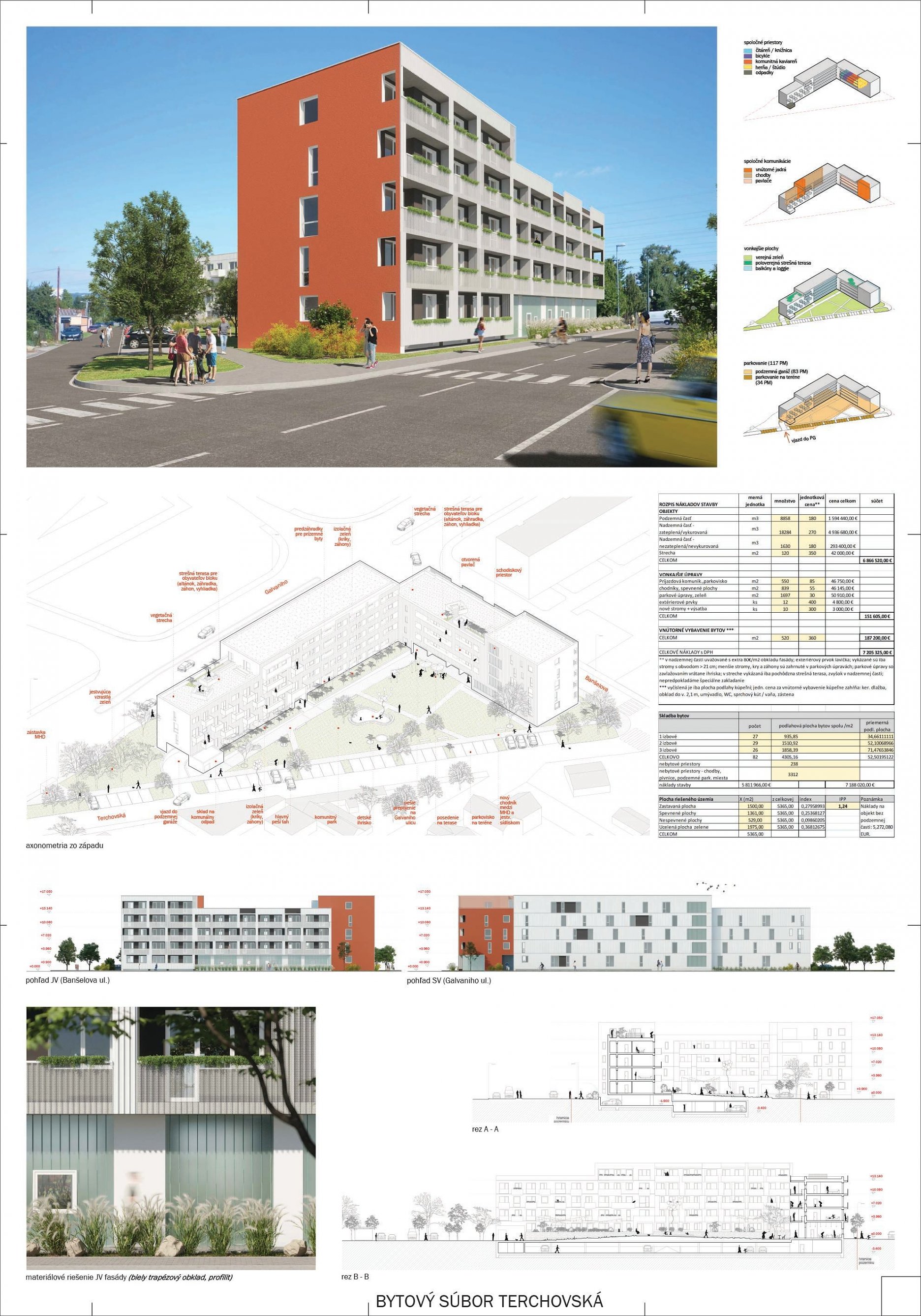 Samotné domy sú lapidárne tak v konštrukčnom, ako aj v dispozičnom riešení, čo považujeme za správne. Popri splnení požadovaných parametrov navrhnutých bytov ponúka riešenie vhodných spoločných a komunitných priestorov.