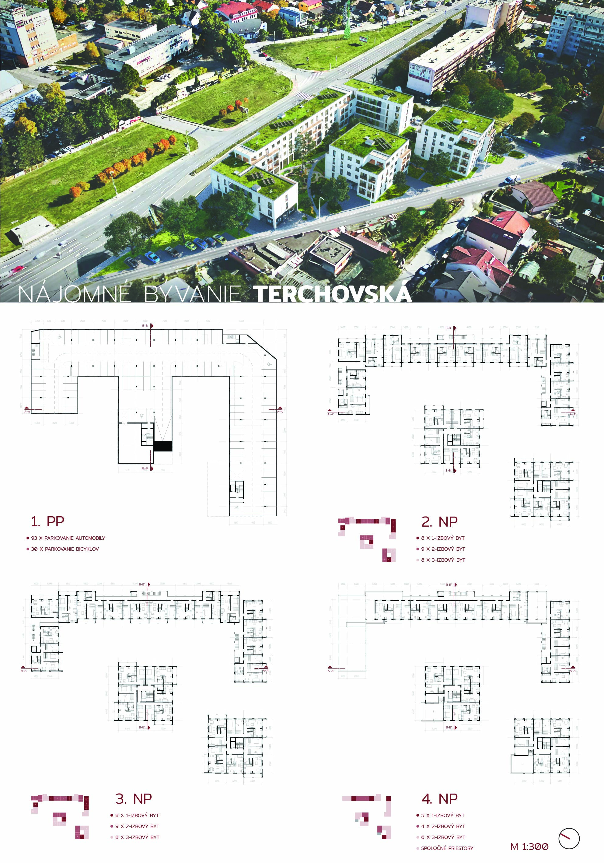 Dispozičné riešenie domov je veľmi racionálne, vrátane riešenia podzemného parkoviska. Domy samotné sú navrhnuté starostlivo s citom pre detail.