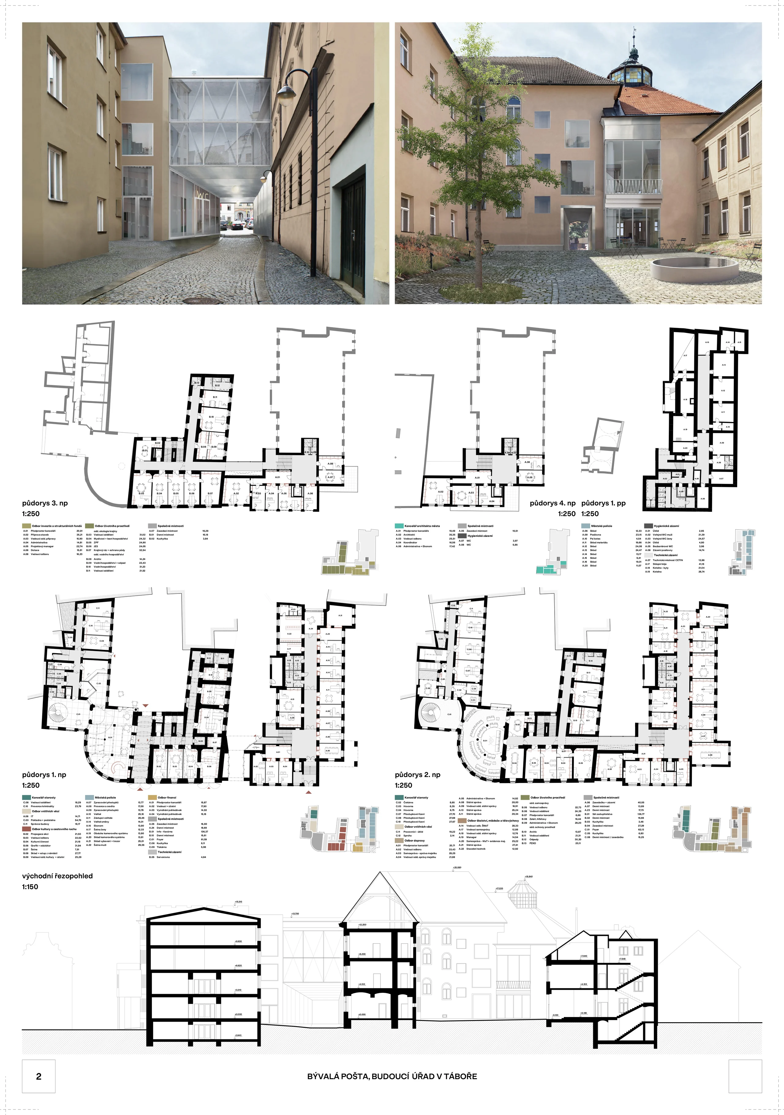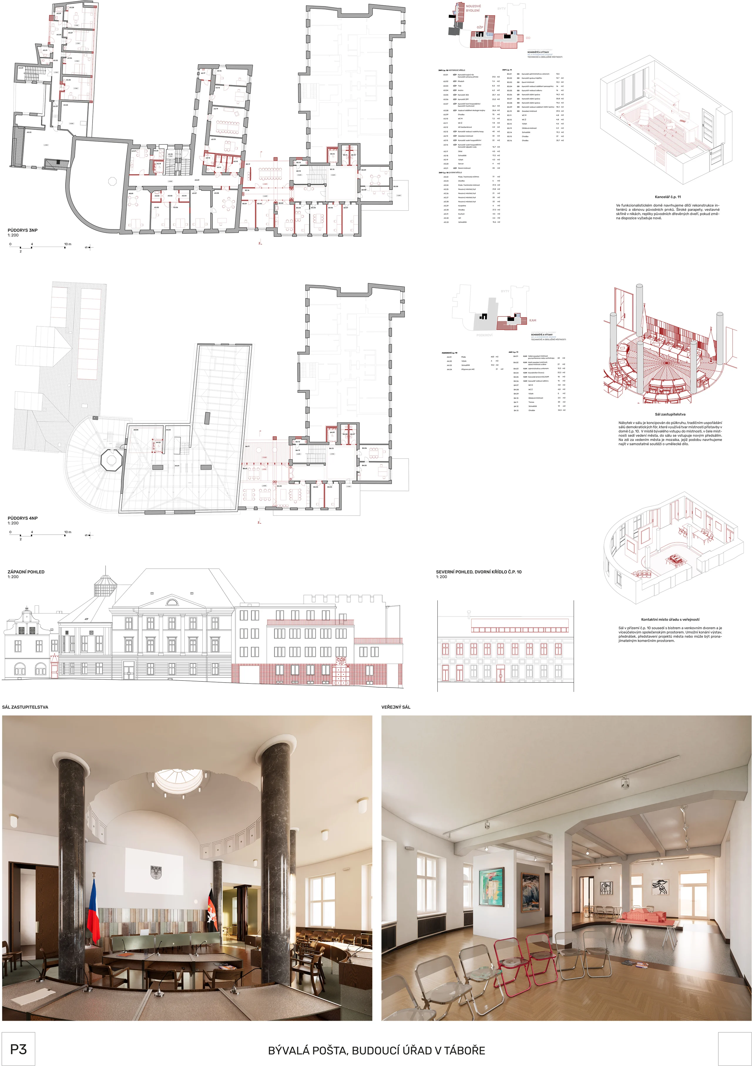 Porota ocenila: - celkový čitelný a přesvědčivý koncept návrhu - architektonické a materiálové řešení fasád objektu - jasný a čitelný názor na řešení interiéru, pracující s odhalenými konstrukčními prvky stropů - doplnění vnějšího stínění oken roletami , dotvářejícími charakteristický výraz objektu - možnou variabilitu horního a spodního prostoru bývalé přepážkové haly, která otevřela širokou diskusi o možném využití pro veřejnost - prověření umístění sálu zastupitelů a zprůchodnění napříč podlažím Porota považuje za méně vhodné řešení: - navržení proporce zasedacího sálu, které jsou na samé hranici funkčního uspořádání - funkční využití architektonicky akcentovaného druhého podlaží Petříkovy přístavby pro zasedací místnosti se nejeví adekvátní - výšky spojovacího krčku, přesahující současnou střechu a jeho materiálové řešení - umístění prostor pro kontakt s veřejností (hala v přízemí) mimo každodenní toky návštěvníků úřadu (pokladna, podatelna a většina odborů) - navržený rozsah exteriérových rolet, především na starším objektu, z pohledu památkové péče