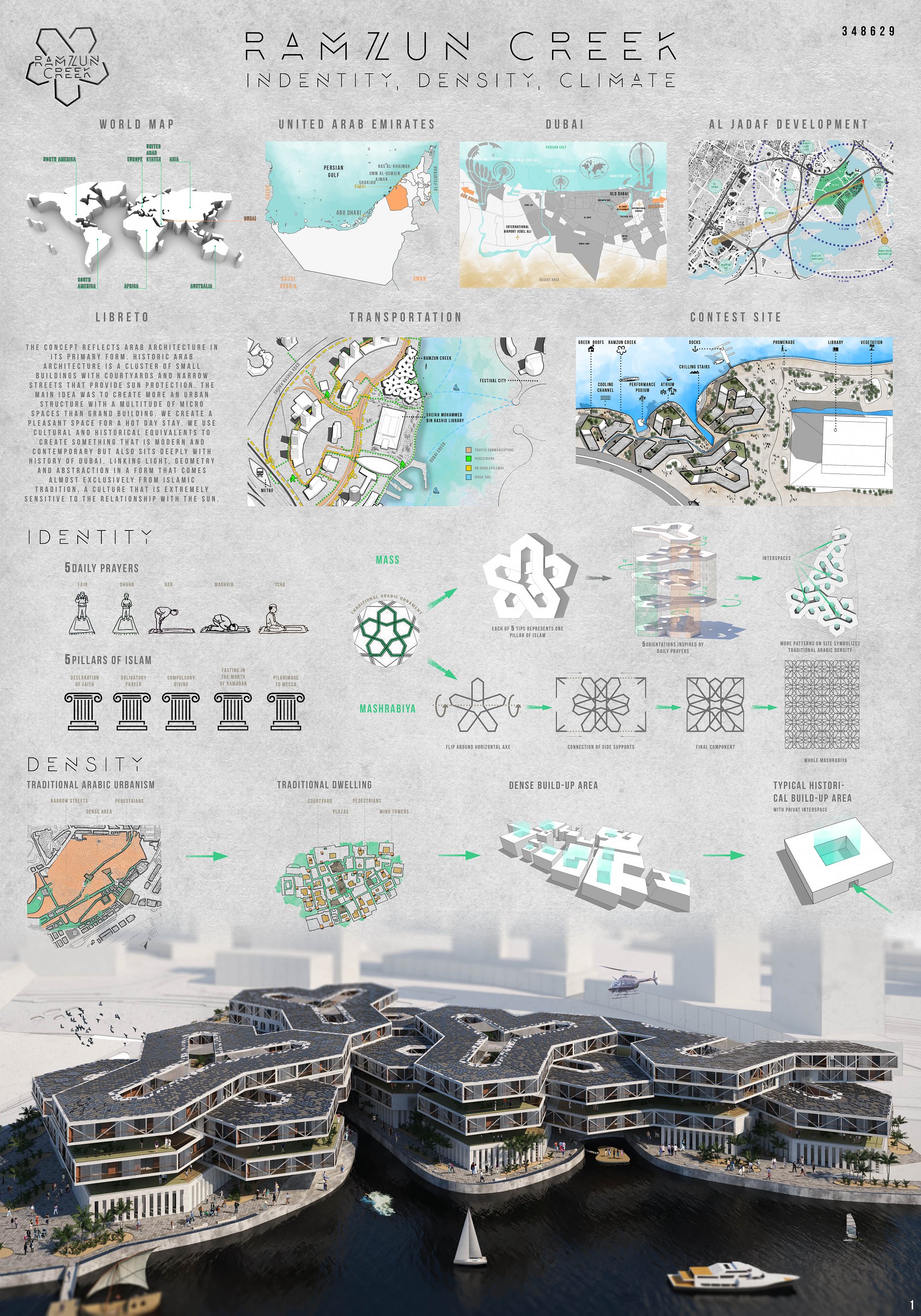 Rezidenčná zóna pre medzinárodnú študentskú súťaž bola situovaná do lokality Al Jaddaf, ktorá bola pôvodne nezastavaným púštnym miestom. Osídlenie tejto lokality nastalo až na konci 20. storočia v súvislosti s modernými zariadeniami pre výstavbu a prevádzku lodí. Kultúrna dedina v Al Jaddaf predstavuje územie, ktoré je rozdelené na niekoľko developerských sektorov. Zadanie v medzinárodnej súťaži rieši územie, ktoré predstavuje druhú fázu developerského projektu s plochou 15 ha. Navrhované riešenie by malo podľa požiadaviek predstaviteľov mesta poskytnúť svojim obyvateľom a návštevníkom dynamický a pulzujúci rozvoj daného územia s využitím jeho výhod vyplývajúcich z blízkosti vodnej plochy, histórie lokality, tradície lodiarstva a zo strategickej verejnej dopravy.