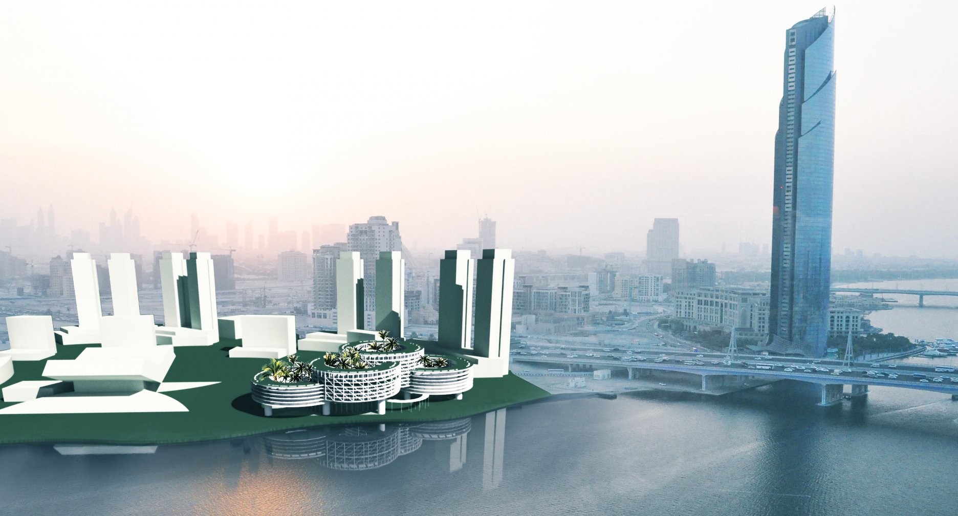 Výška jestvujúcich a navrhovaných rezidenčných domov je v danom území regulovaná vzhľadom na výhľady na vodnú plochu na východ. Stredne vysoké obytné rezidenčné domy sú situované spôsobom, aby umožnili priehľady z rezidenčných veží na západnej strane pozemku na park a vodnú hladinu. Výstavba pozdĺž pobrežia je nízka a odstupňovaná kvôli priehľadom a dosiahnutiu prijateľnej ľudskej mierky na úrovni pobrežnej promenády. Pobrežná promenáda je vnímaná ako primárna atrakcia spájajúca jednotlivé územné sektory kultúrnej dediny. Návrh má zabezpečiť pohodlný verejný peší prístup od podzemnej stanice metra priamo k vodnej ploche pomocou peších premostení, komfortných krytých peších koridorov až k prístavu s pôvodnými historickými plachetnicami (Dhow Center).