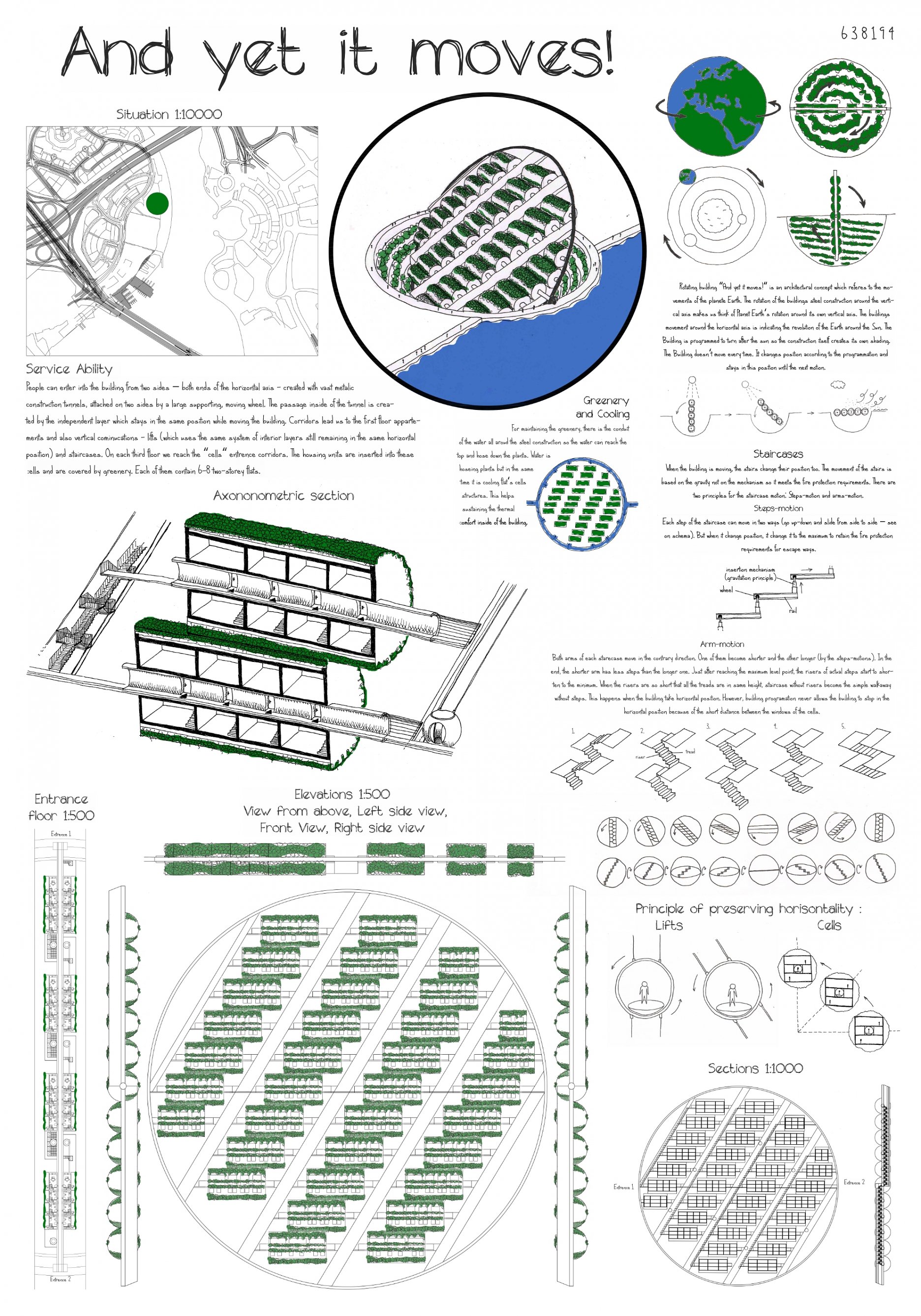 Z hodnotenia poroty od Ing. arch. Pavla Pokorného: V porote študentskej súťaže pôsobím už niekoľko rokov, ale nespomínam si z minulosti na zanietenejšiu a konfrontačnejšiu diskusiu porotcov ako sa odohrala na aktuálnom ročníku vďaka tomuto návrhu. Okamžite na sebe strhol pozornosť oldschoolovou grafikou (opätovne sme si potvrdili, akú silu má autentická ručná skica) a este viac nápadom (hoci tu ťažko nájsť primerané adjektívum, pretože interval hodnotenia bol od “šialený” až po “odvážny”). Či ste sa nakoniec po diskusii porotcov stali jeho fanúšikom alebo zatracovatelom, je nakoniec nedolezité. Za výborné považujem, ze mal (a stále má) v sebe potenciál iniciovať diskusiu, kam sa uberá myslenie v architektúre - to je najdôležitejšie. Rozprávajme sa!