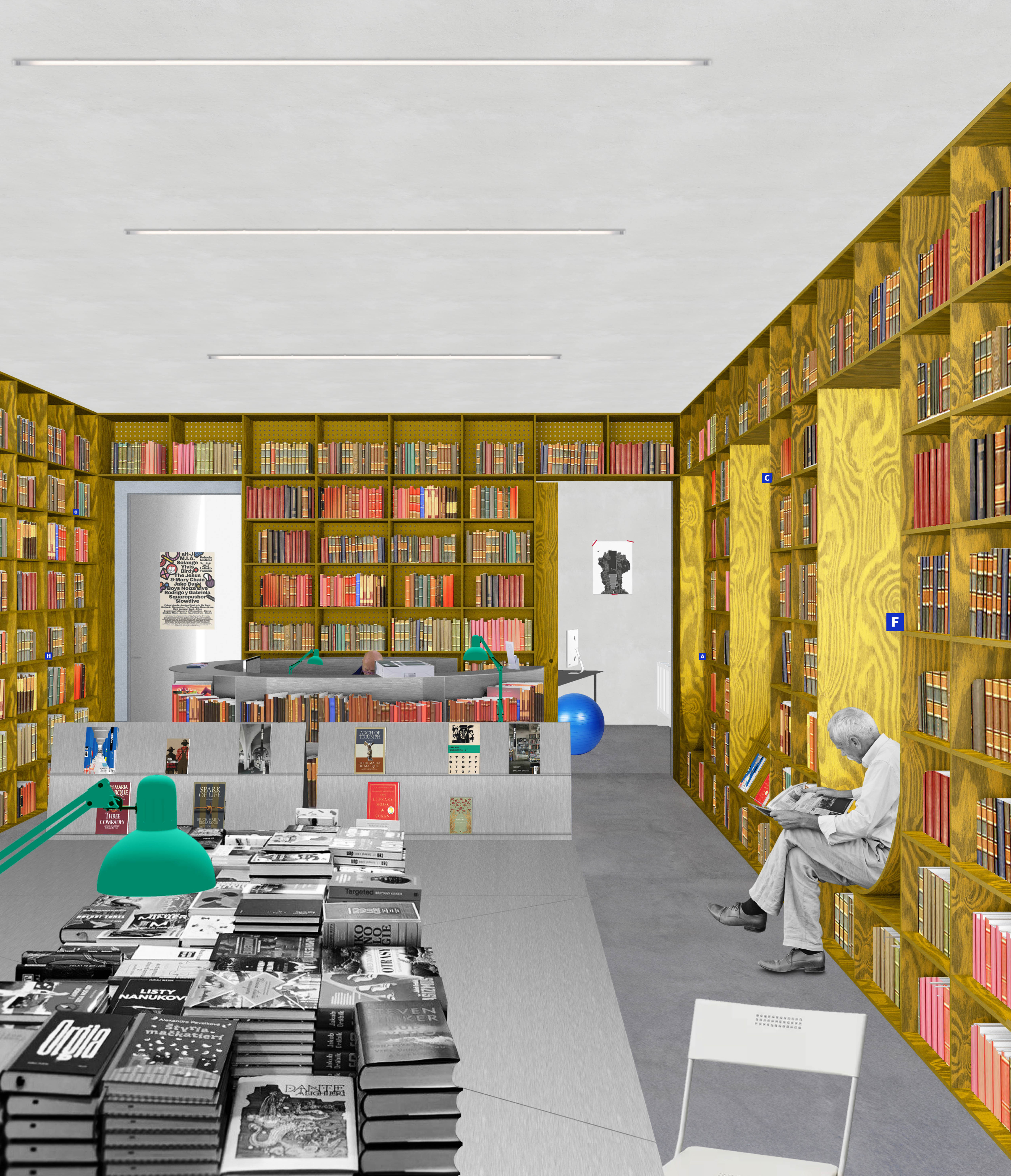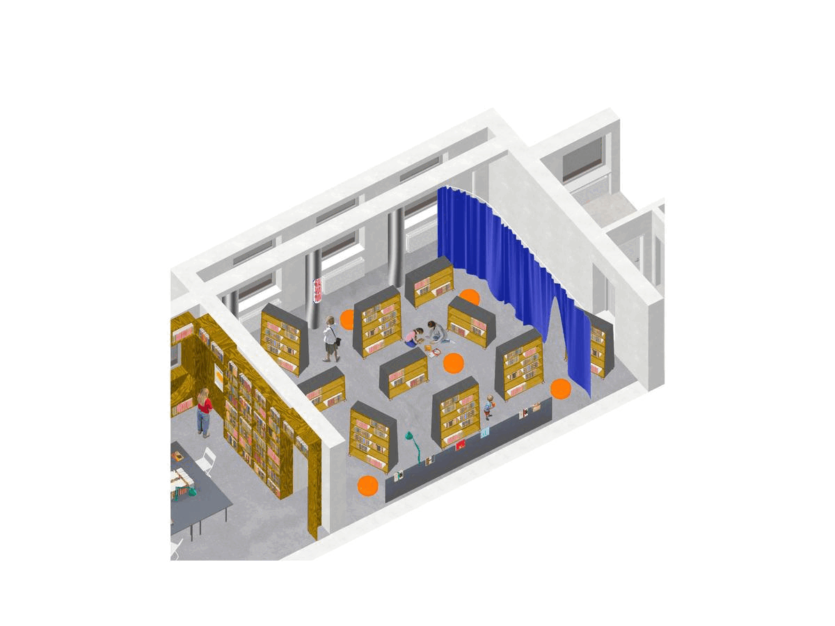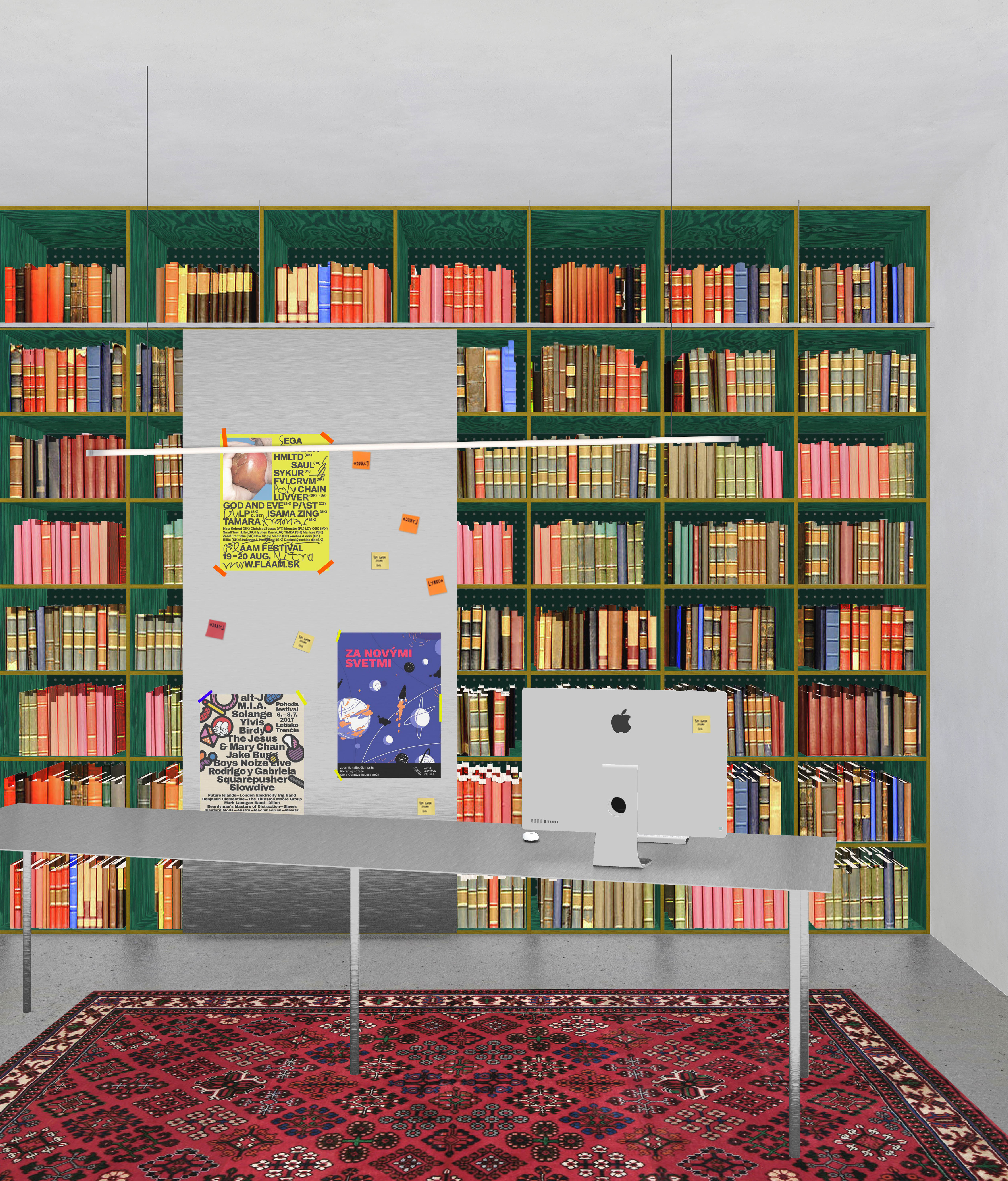 Návrh vychádza z konceptu “Wunderkammer”. Pri zariaďovaní interiéru to znamená v čo najväčšej miere využiť pre vybavenie plochy stien, aby sa uvoľnil samotný priestor. Autor takto pristupuje k zariadeniu hlavnej miestnosti knižnice. Tá je po celom obvode lemovaná regálovým systémom, ktorý tvorí základnú prezentáciu kníh. Okolo okenných otvorov sú doplnené v regáloch miesta na sedenie. Centrálne sú umiestnené len výpožičný pult, nižšie regále a stolový systém. Porota odporúča prehodnotiť materialitu návrhu. Stavebná morená borovicová preglejka s výraznou kresbou vyzerá síce na kolážach príťažlivo, no v kontexte solídnej materiality samotnej stavby kultúrneho domu, pôsobí rozpačito. Zvolená materialita bude mať za následok aj redukciu prirodzeného osvetlenia. Otázna je aj nutnosť stavebného zásahu do nosnej konštrukcie objektu. Miestnosť venovaná pre aktivity knižnice je ponechaná skôr v pôvodnom charaktere a je doplnená solitérnymi prvkami, ktoré umožňujú jednoducho meniť jej usporiadanie. Pozitívne vnímaná je práca s pôvodnými knižnými regálmi v danej miestnosti, z ktorých sa stali mobilné police. Návrh ako jediný pracuje s odlišnosťou a individuálnym potenciálom jednotlivých miestností (kancelária, čitáreň, miestnosť pre aktivity) a používa daný prístup pre jasnejšie programové definovanie priestorov. Táto odlišnosť zároveň umožňuje v prípade potreby etapizáciu realizácie. Návrh bohužiaľ s existujúcim umeleckým dielom vôbec nepočíta.