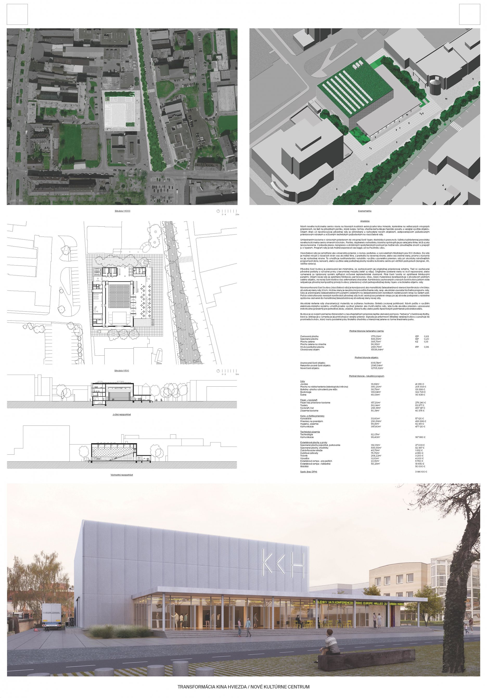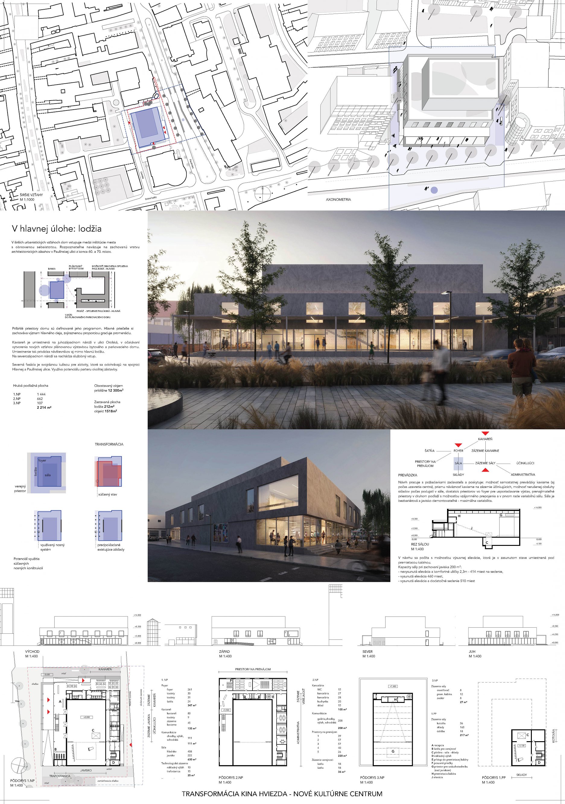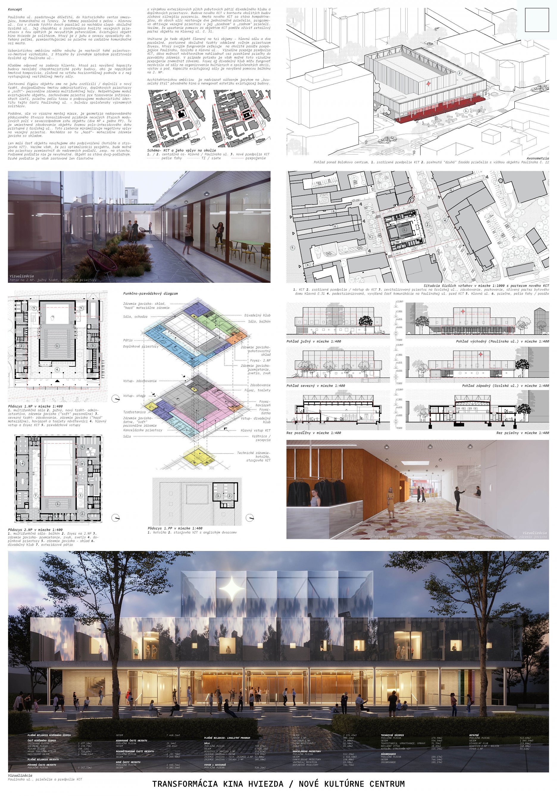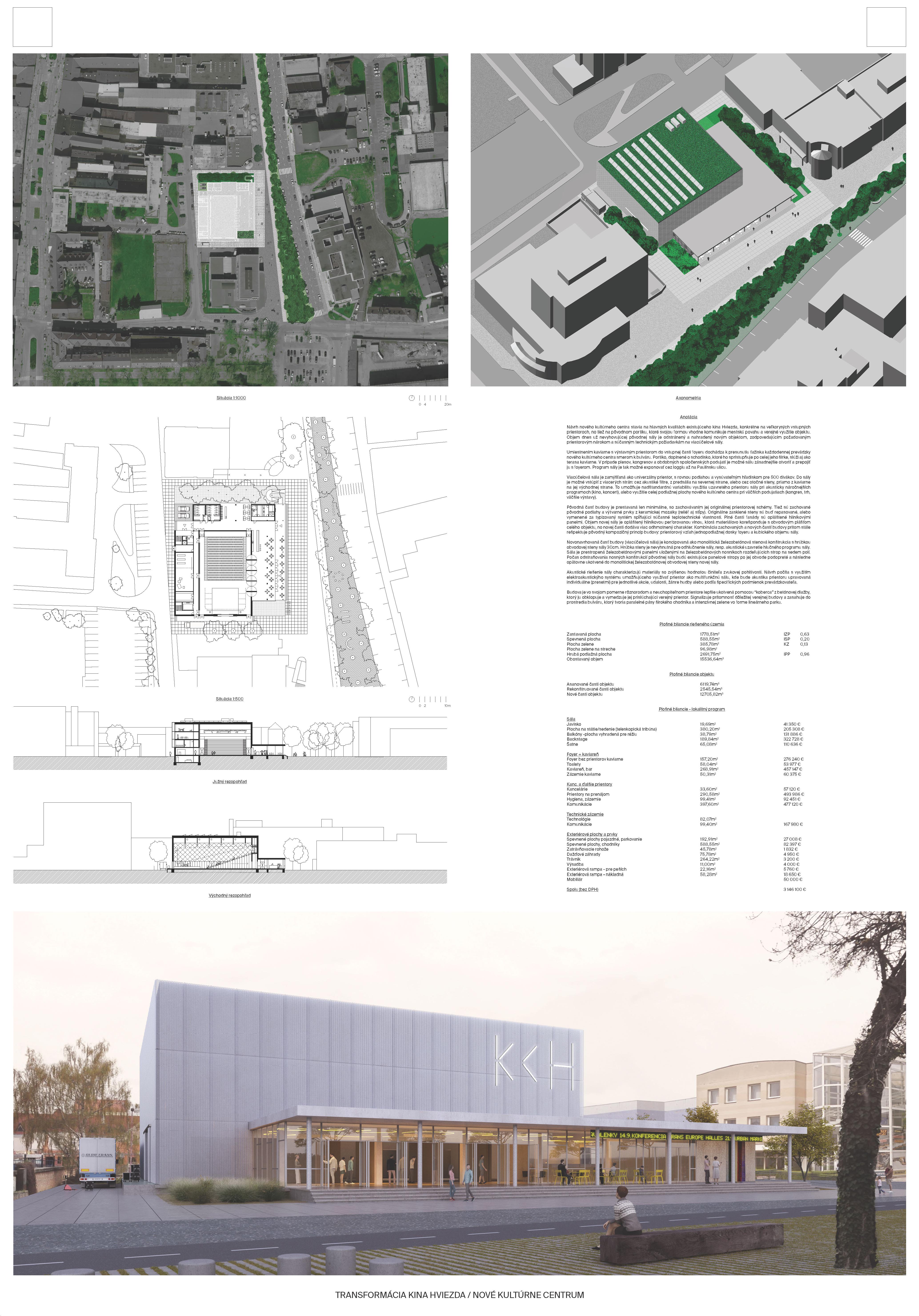 1. miesto (odmena 14 000 € + skicovné 6 000 €) návrh 49194 - ROAR architekti a TVAR architekti
