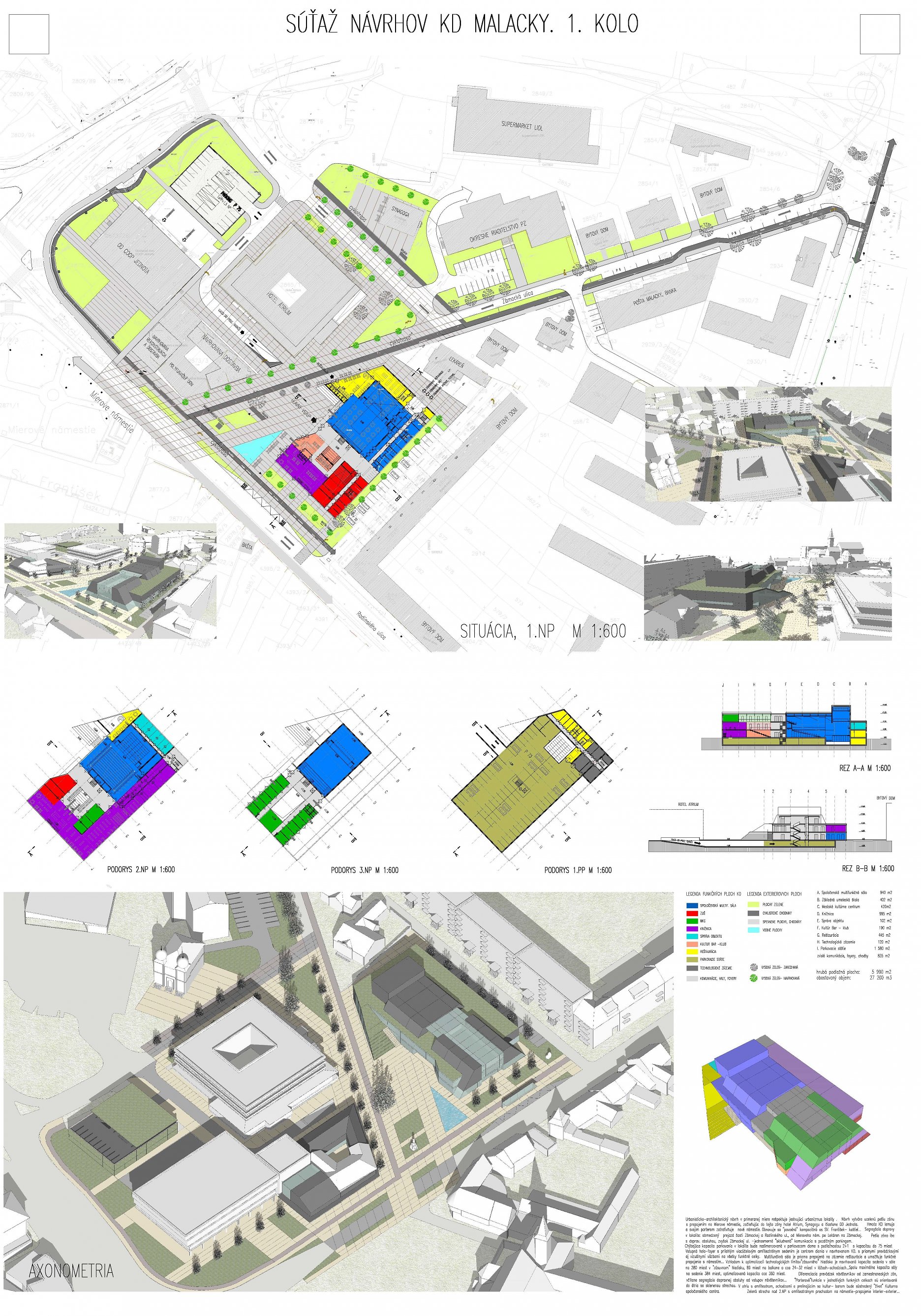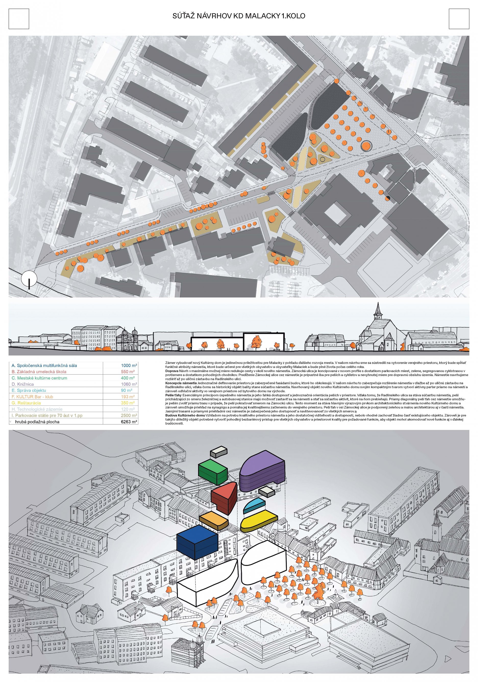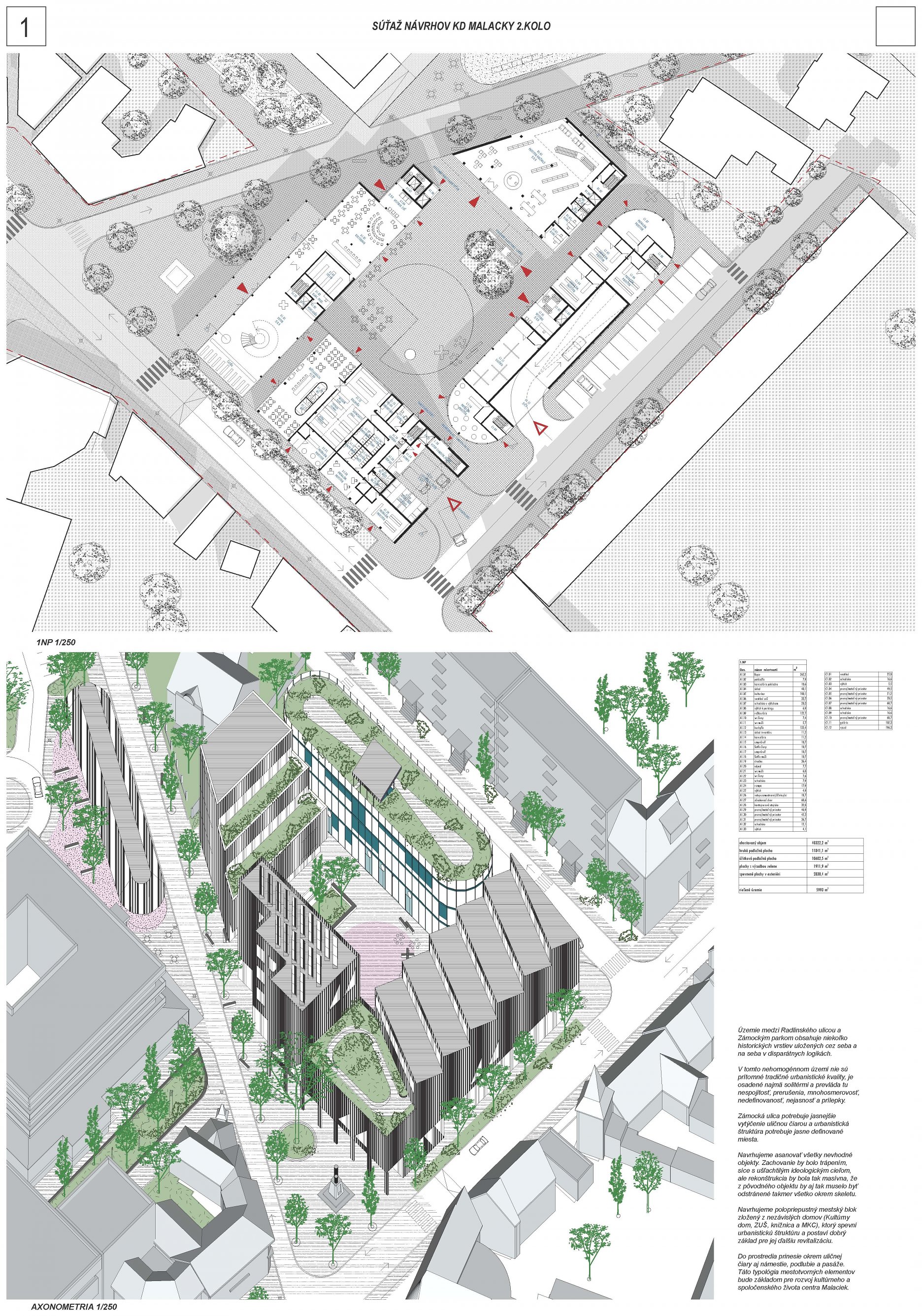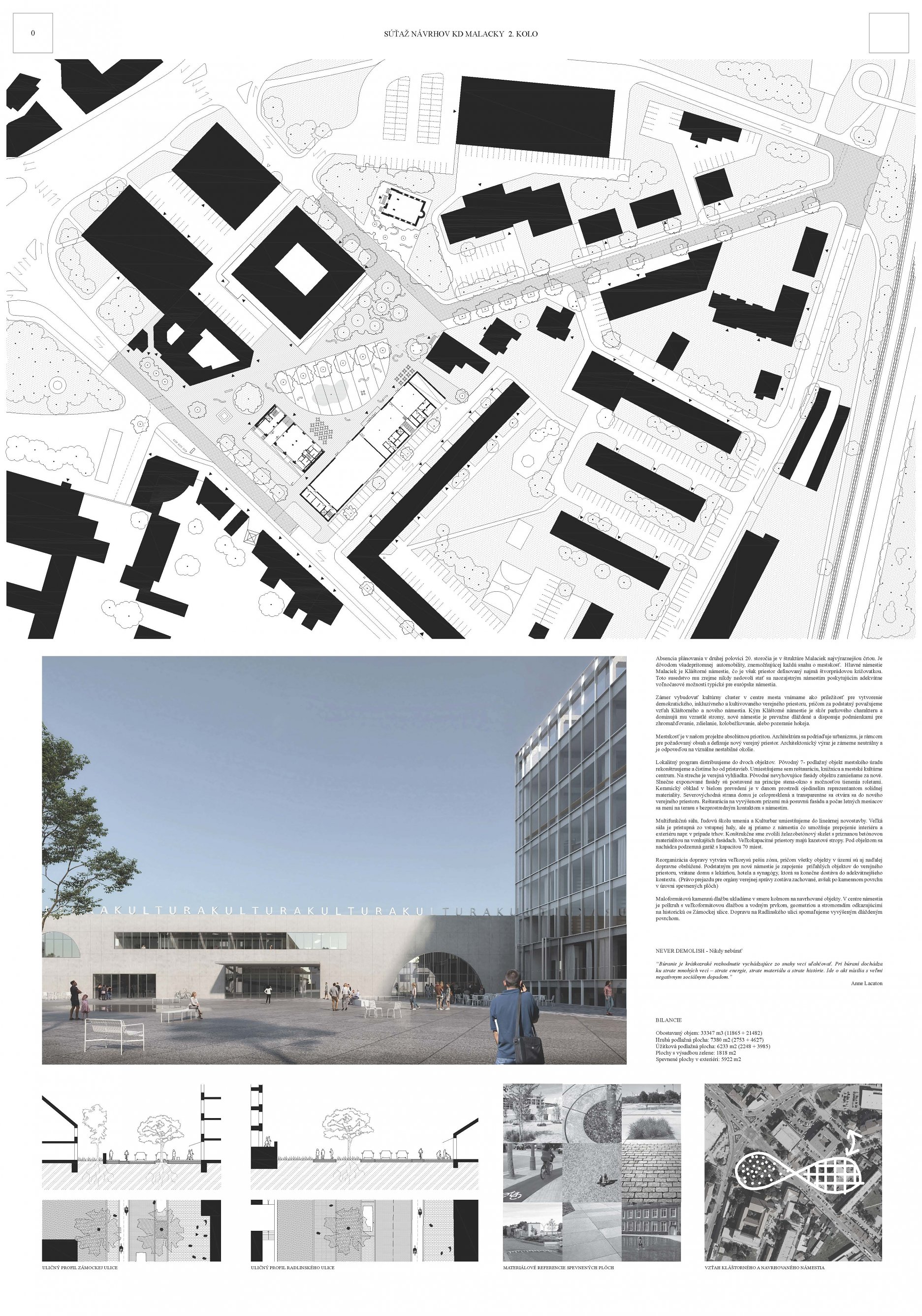 Mesto Malacky vyhlásilo koncom júla 2021 dvojkolovú urbanisticko-architektonickú súťaž návrhov na nový kultúrny dom s multifunkčnou spoločenskou sálou, základnou umeleckou školou, mestským kultúrnym centrom, reštauráciou a barom. Na pozemku pri križovatke Zámockej a Radlinského ulice v súčasnosti stojí bývalá budova mestského úradu (predtým sídlo spoločnosti Nafta Gbely). Víťazný návrh ateliéru N/A počíta s jej zbúraním, čo posilní výškovú dominantnosť kostola v centre mesta. Koncept delí funkcie do samostatných objektov kultúrneho domu a knižnice. Blok uzatvára parkovací dom.