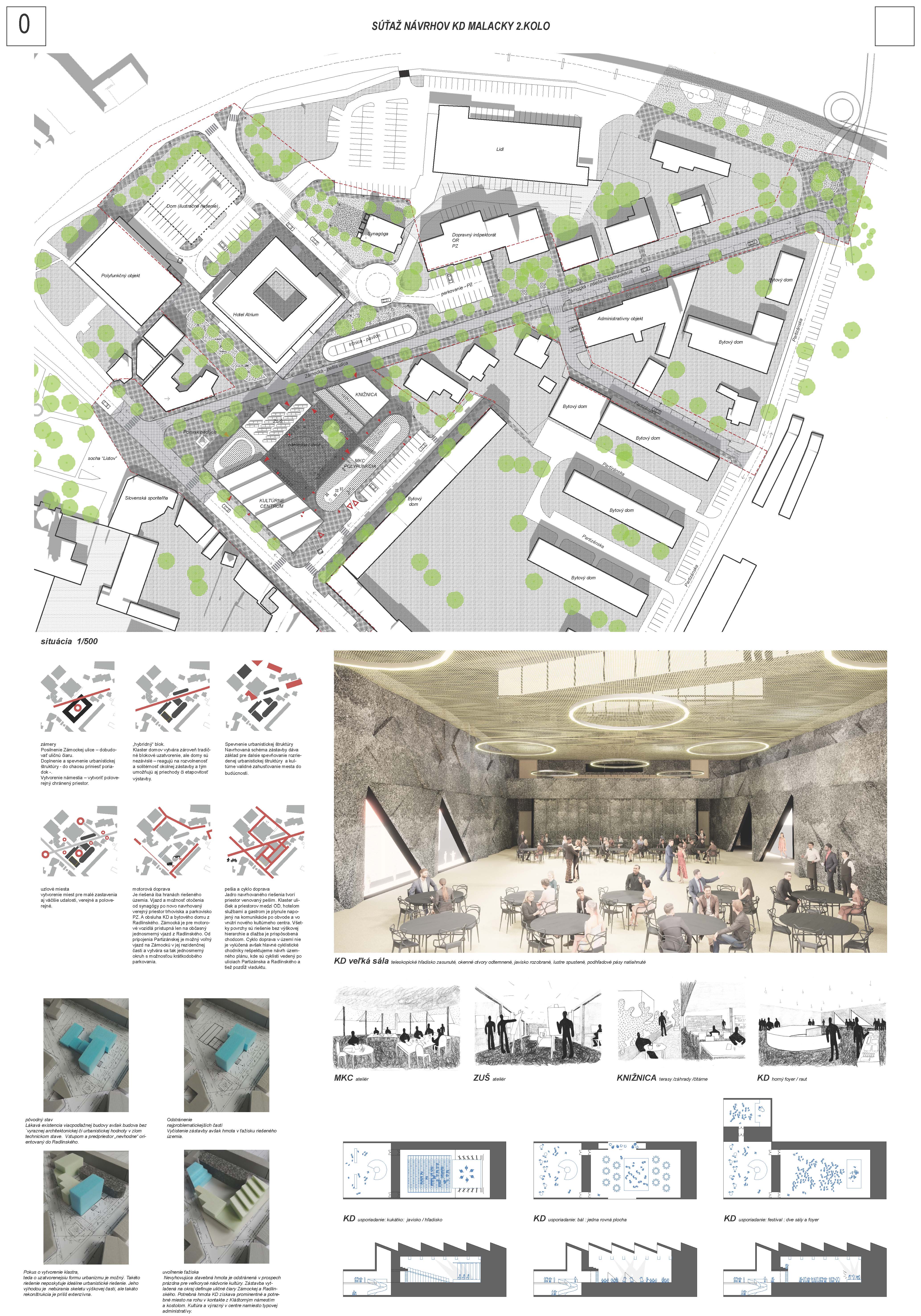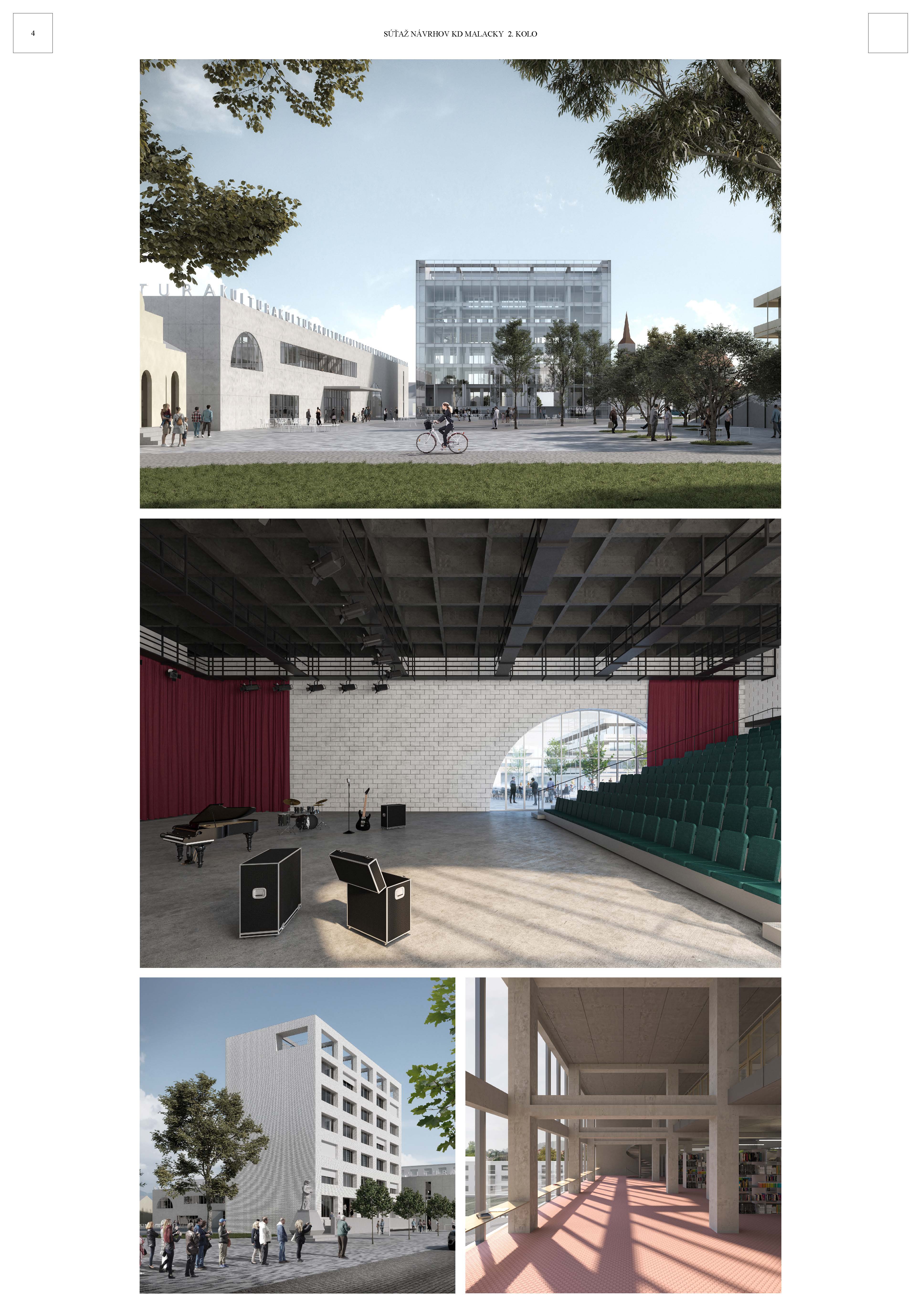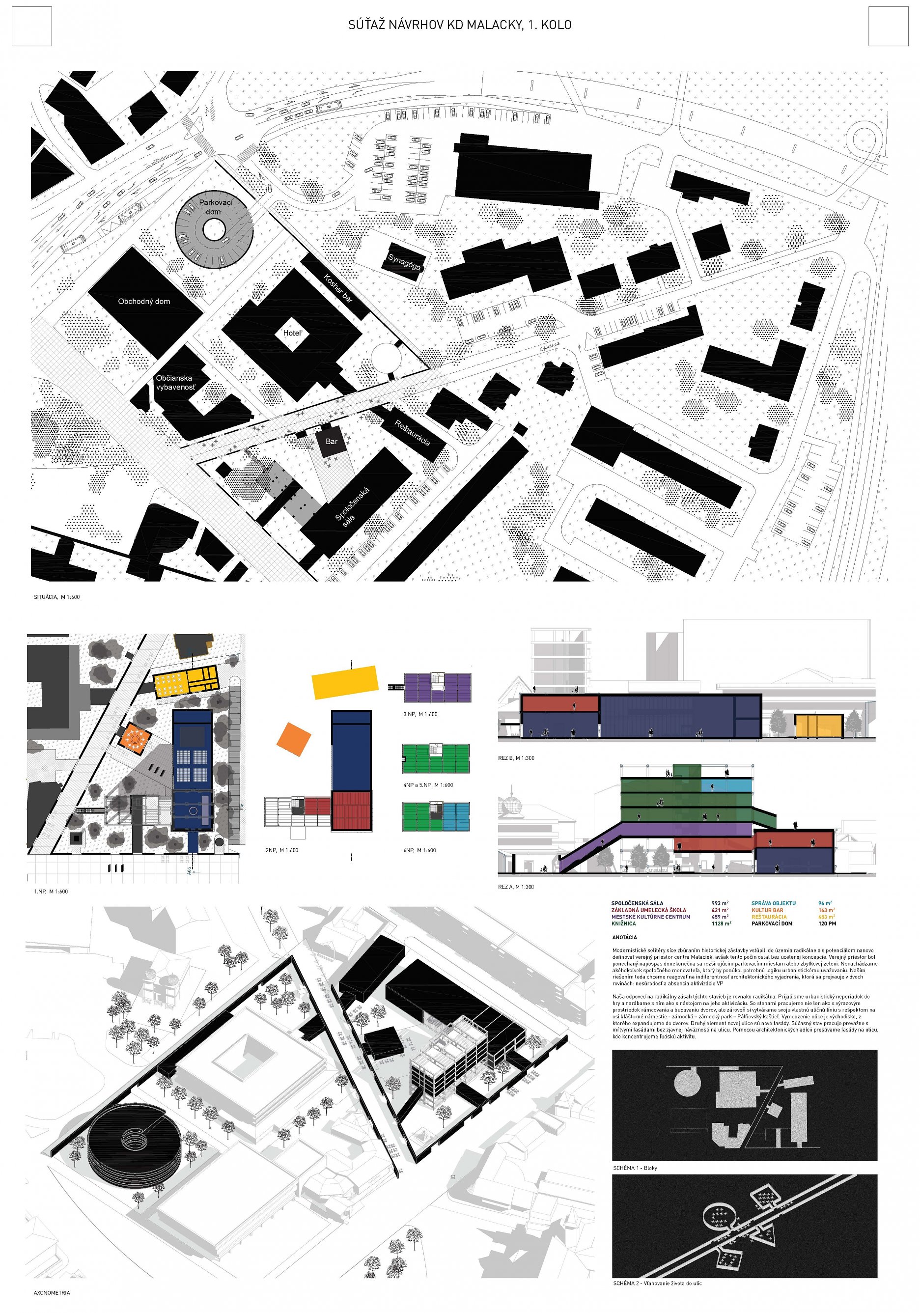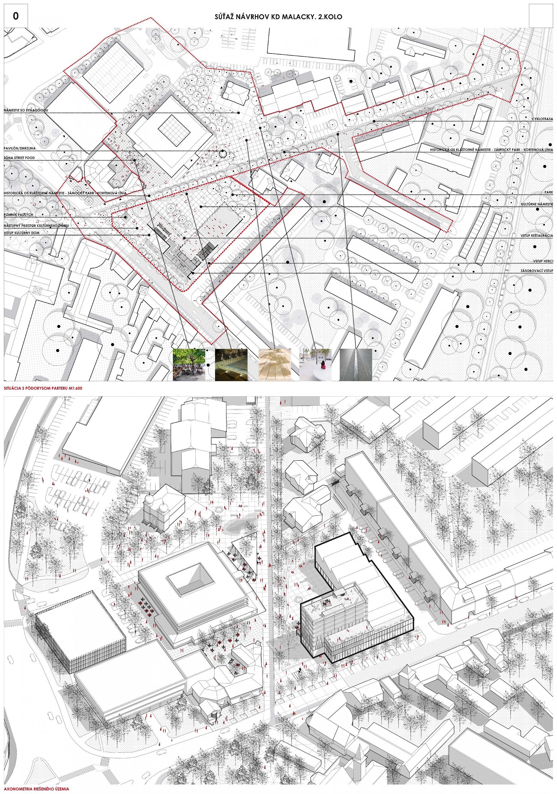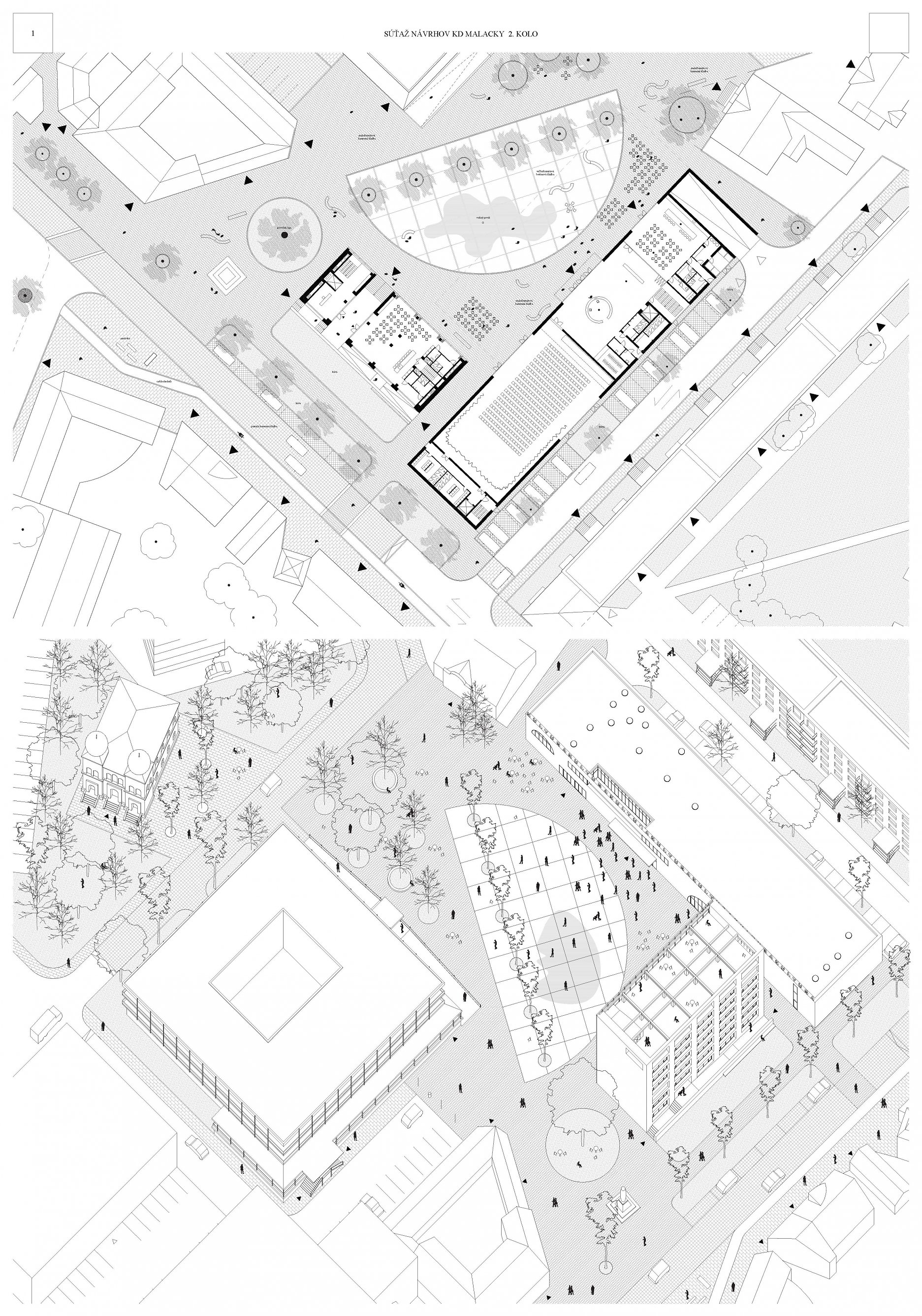 Mesto Malacky vyhlásilo koncom júla 2021 dvojkolovú urbanisticko-architektonickú súťaž návrhov na nový kultúrny dom s multifunkčnou spoločenskou sálou, základnou umeleckou školou, mestským kultúrnym centrom, reštauráciou a barom. Na pozemku pri križovatke Zámockej a Radlinského ulice v súčasnosti stojí bývalá budova mestského úradu (predtým sídlo spoločnosti Nafta Gbely). Víťazný návrh ateliéru N/A počíta s jej zbúraním, čo posilní výškovú dominantnosť kostola v centre mesta. Koncept delí funkcie do samostatných objektov kultúrneho domu a knižnice. Blok uzatvára parkovací dom.