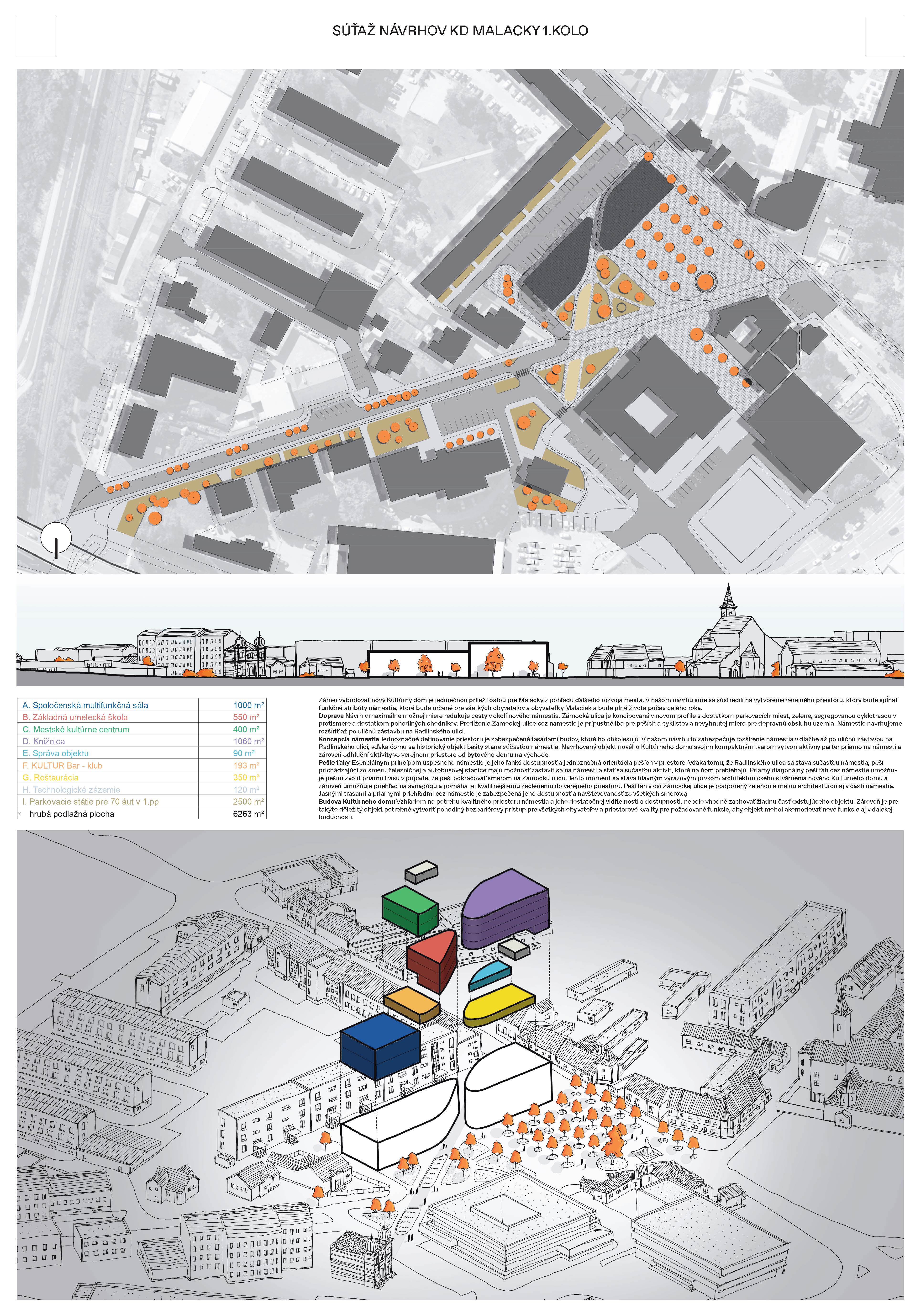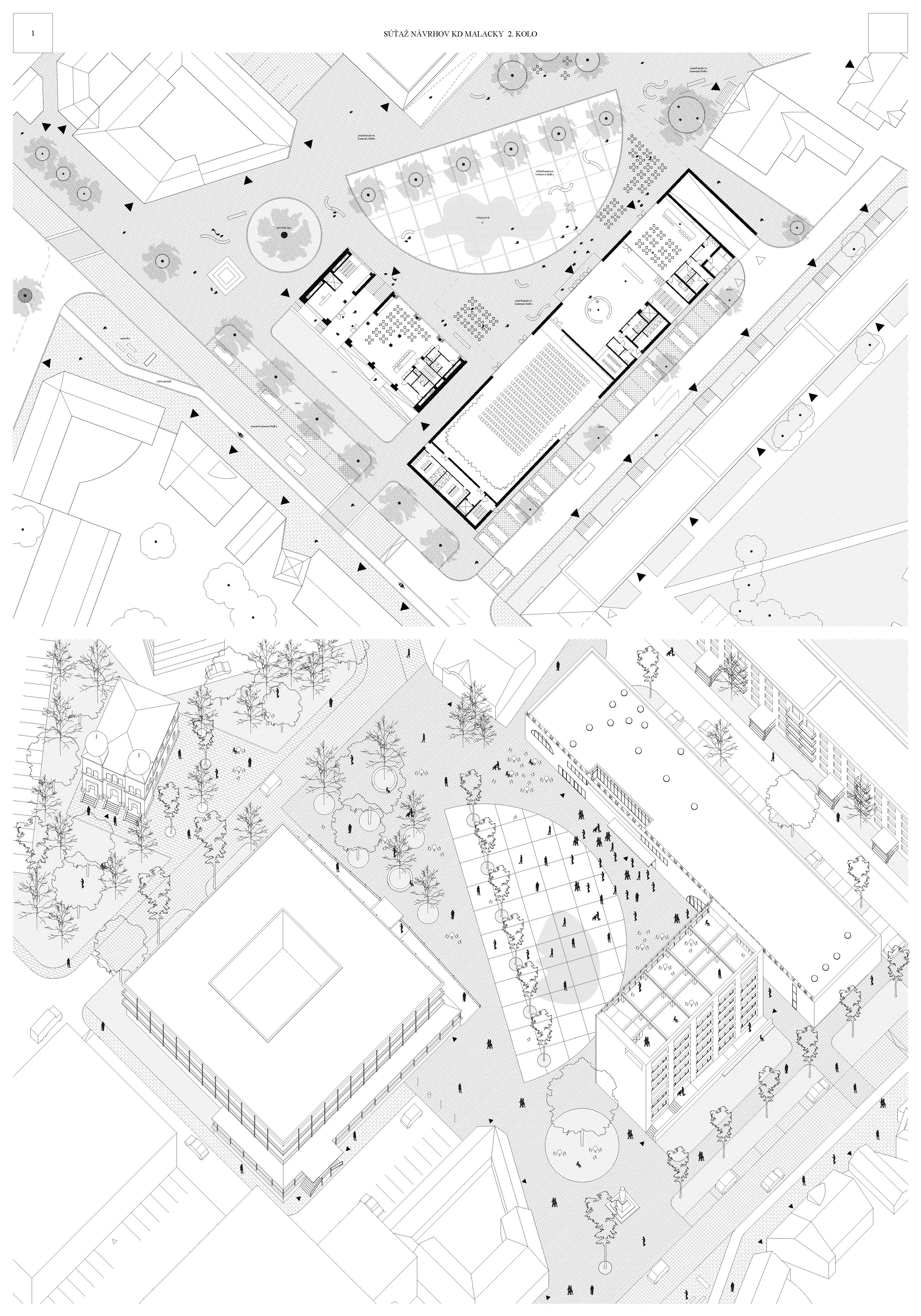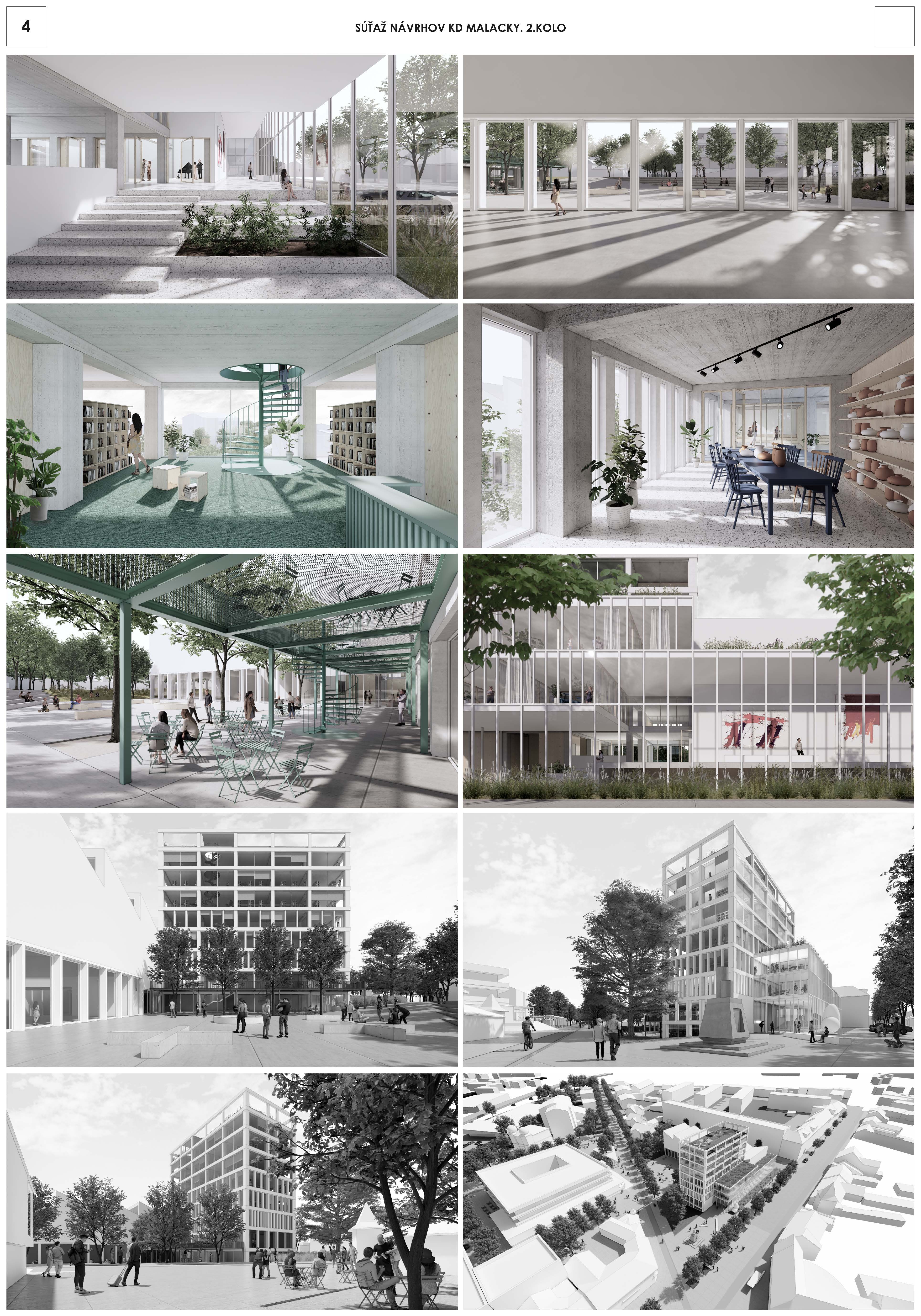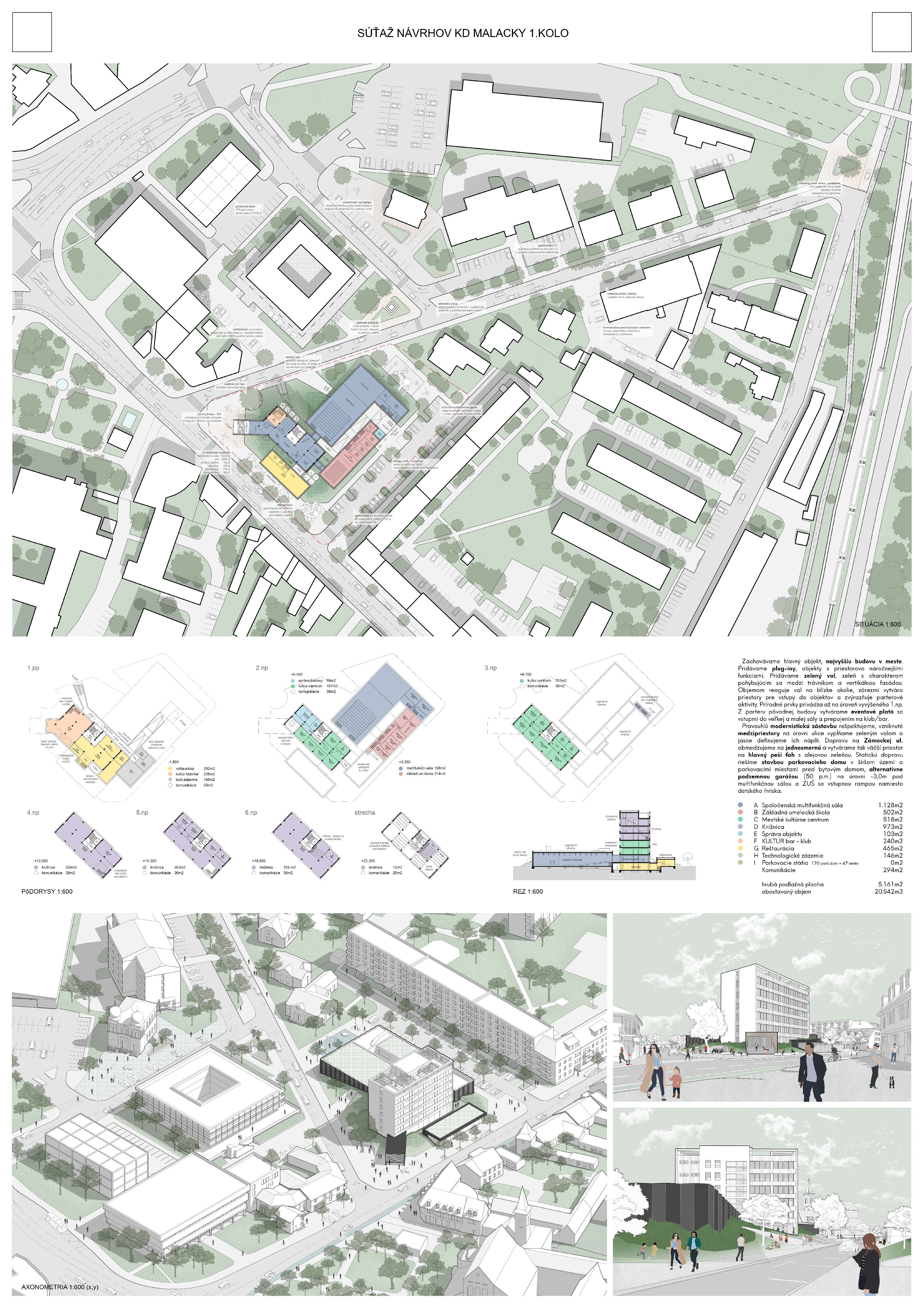 Mesto Malacky vyhlásilo koncom júla 2021 dvojkolovú urbanisticko-architektonickú súťaž návrhov na nový kultúrny dom s multifunkčnou spoločenskou sálou, základnou umeleckou školou, mestským kultúrnym centrom, reštauráciou a barom. Na pozemku pri križovatke Zámockej a Radlinského ulice v súčasnosti stojí bývalá budova mestského úradu (predtým sídlo spoločnosti Nafta Gbely). Víťazný návrh ateliéru N/A počíta s jej zbúraním, čo posilní výškovú dominantnosť kostola v centre mesta. Koncept delí funkcie do samostatných objektov kultúrneho domu a knižnice. Blok uzatvára parkovací dom.
