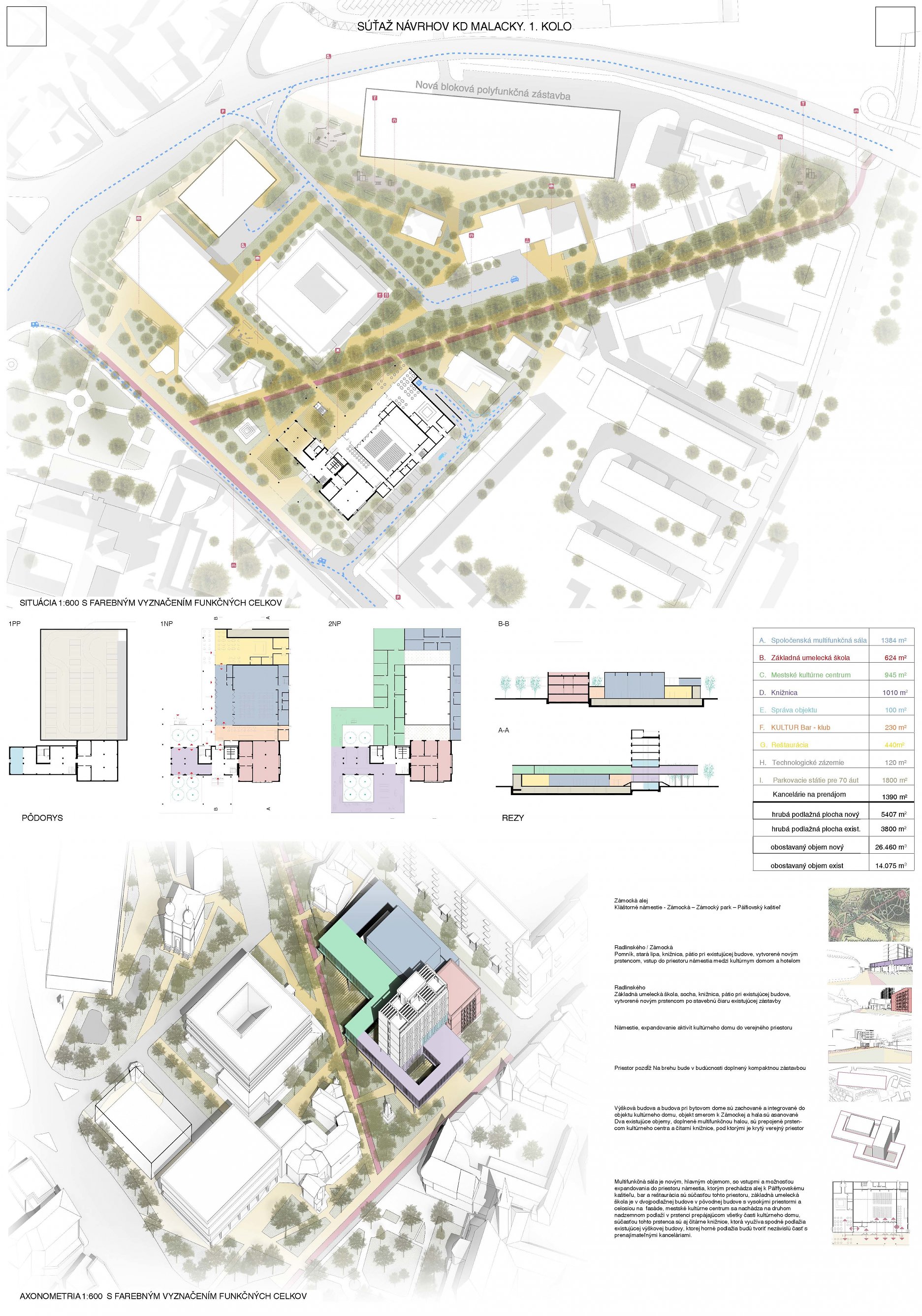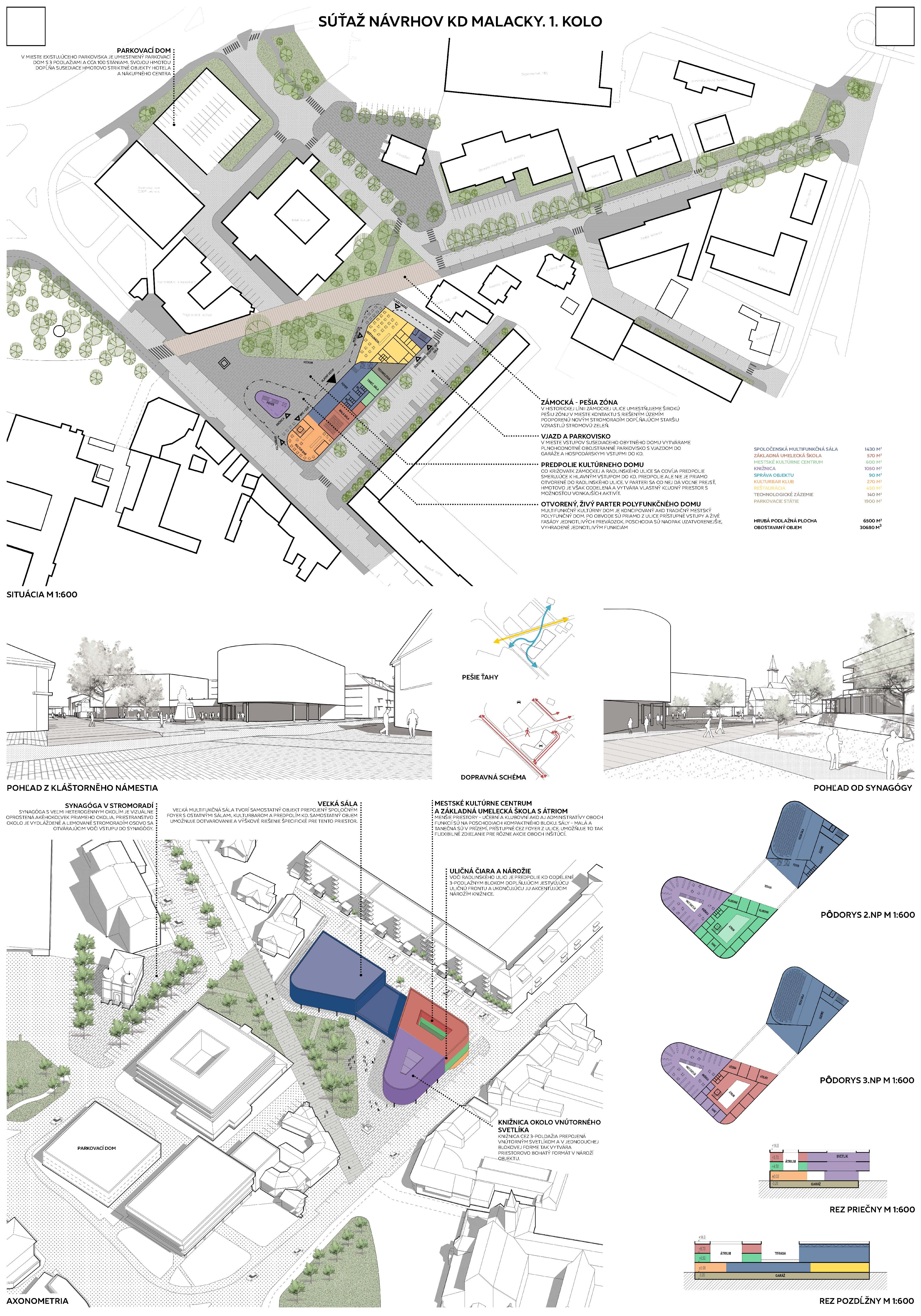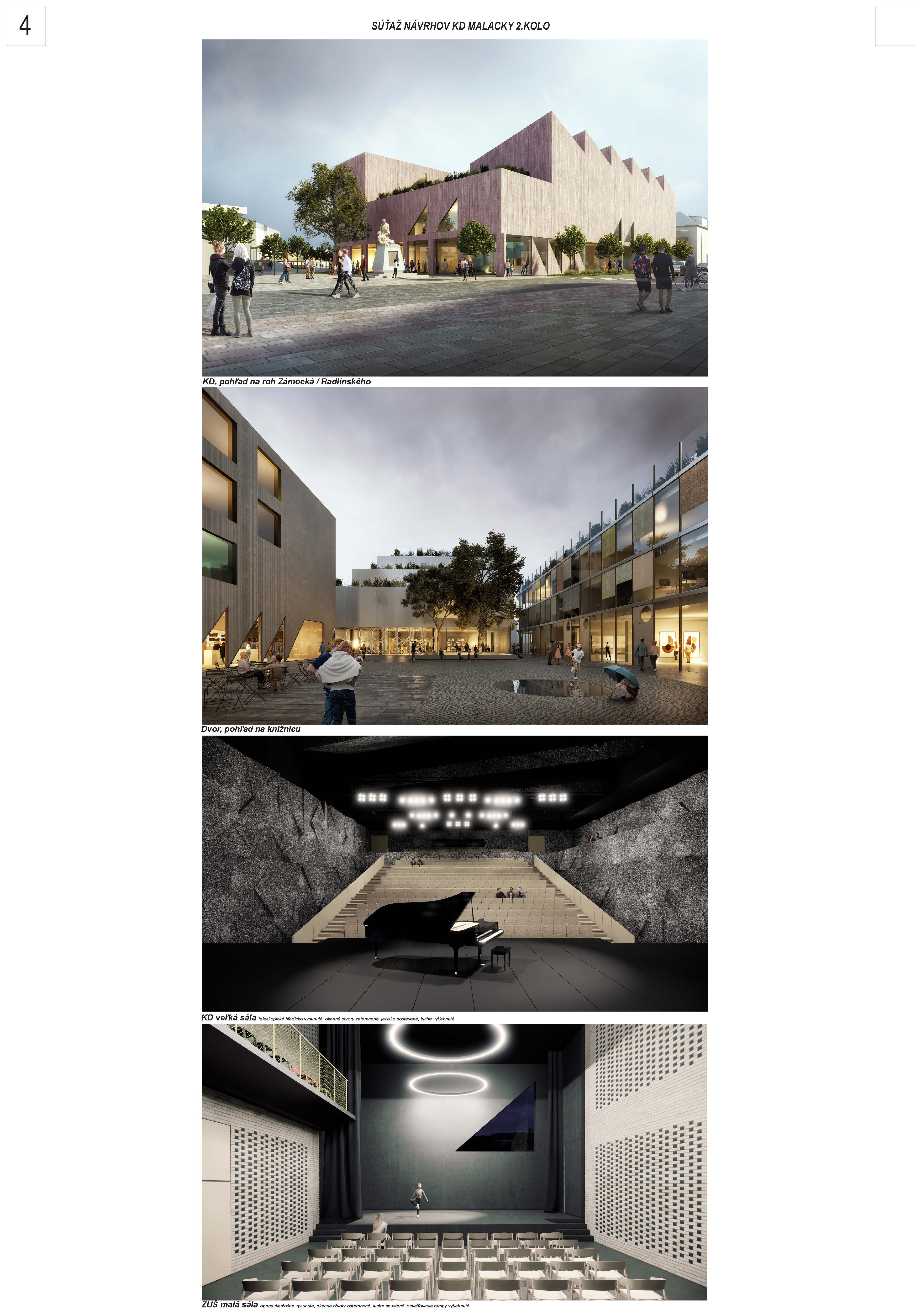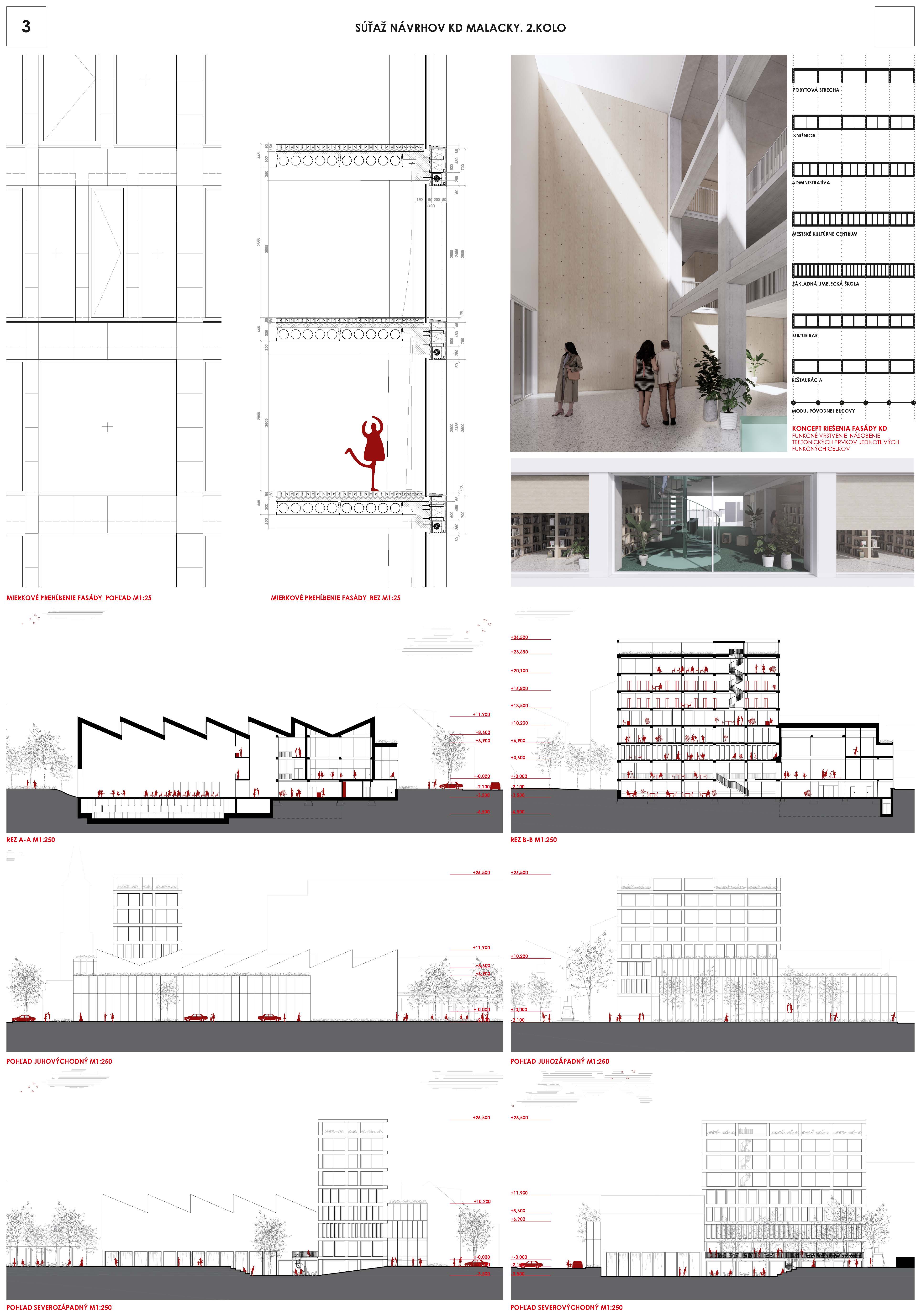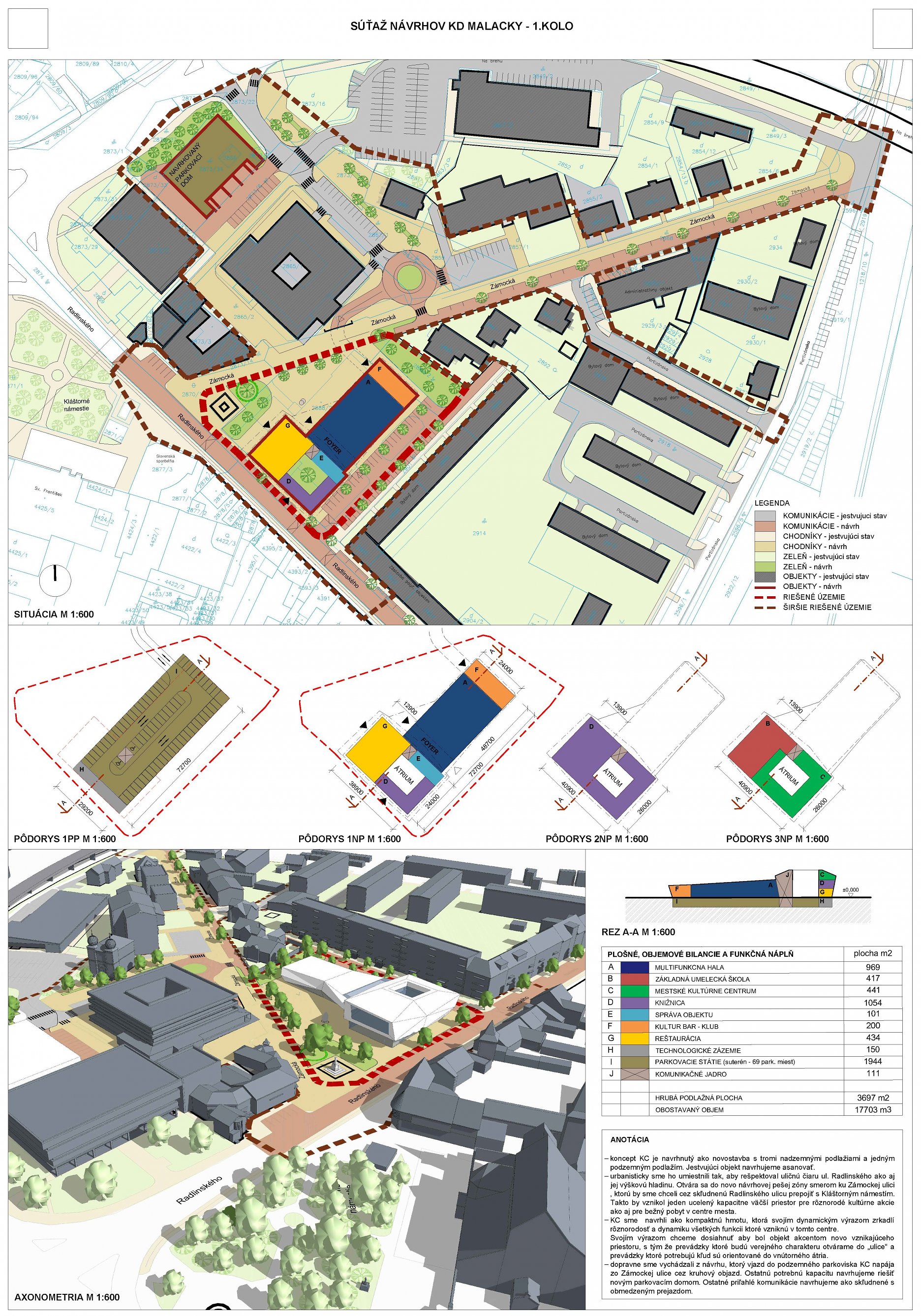 Mesto Malacky vyhlásilo koncom júla 2021 dvojkolovú urbanisticko-architektonickú súťaž návrhov na nový kultúrny dom s multifunkčnou spoločenskou sálou, základnou umeleckou školou, mestským kultúrnym centrom, reštauráciou a barom. Na pozemku pri križovatke Zámockej a Radlinského ulice v súčasnosti stojí bývalá budova mestského úradu (predtým sídlo spoločnosti Nafta Gbely). Víťazný návrh ateliéru N/A počíta s jej zbúraním, čo posilní výškovú dominantnosť kostola v centre mesta. Koncept delí funkcie do samostatných objektov kultúrneho domu a knižnice. Blok uzatvára parkovací dom.