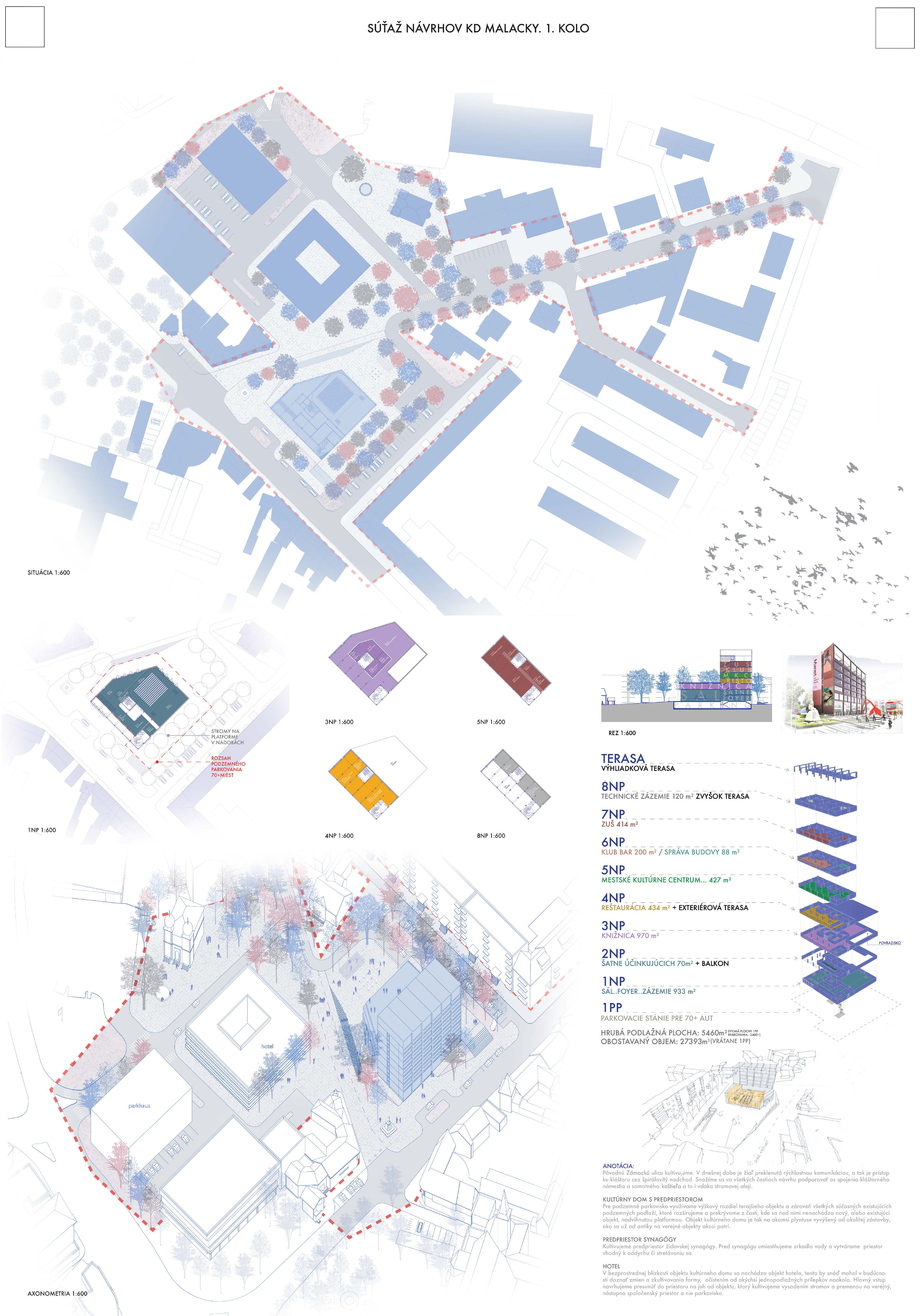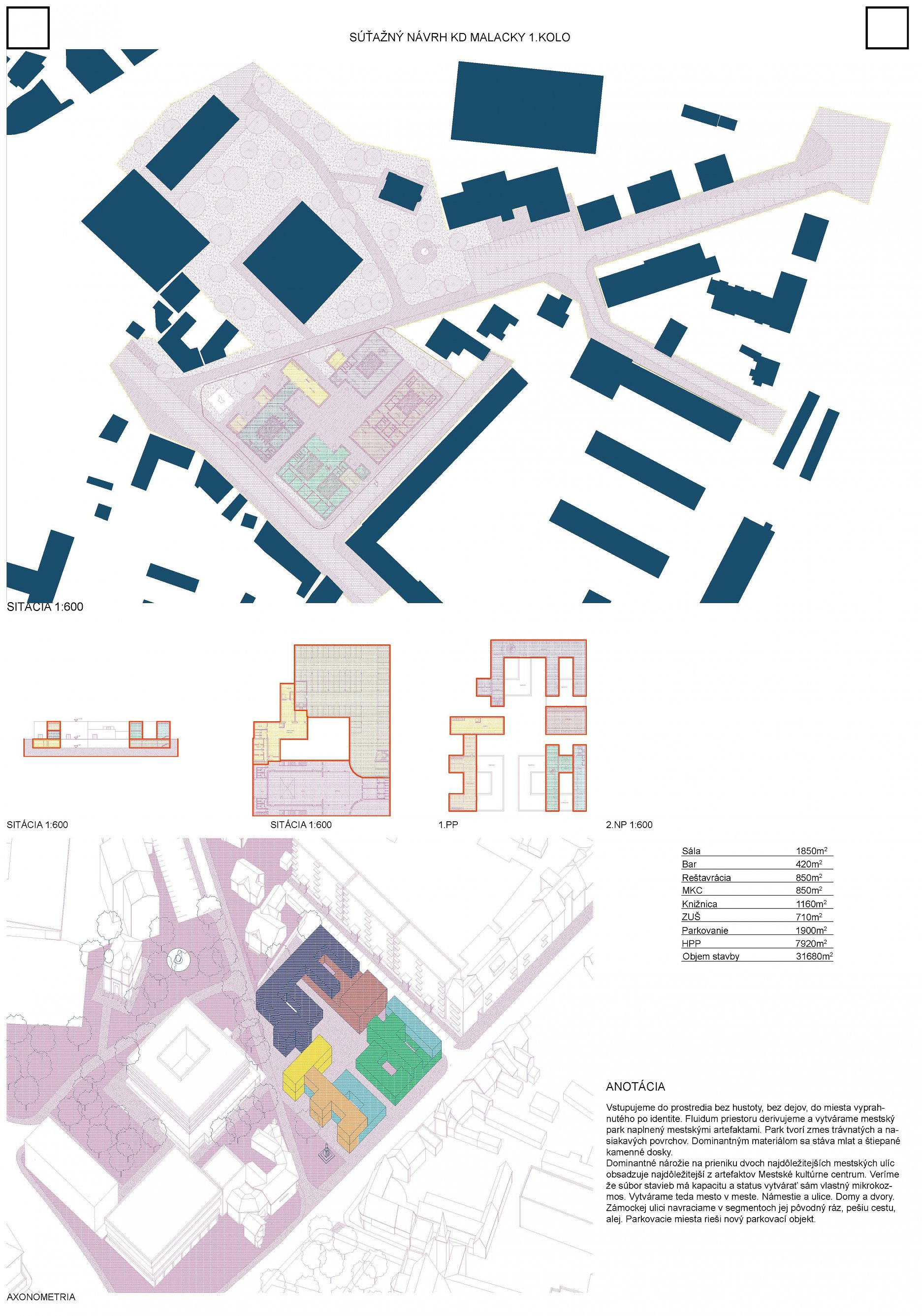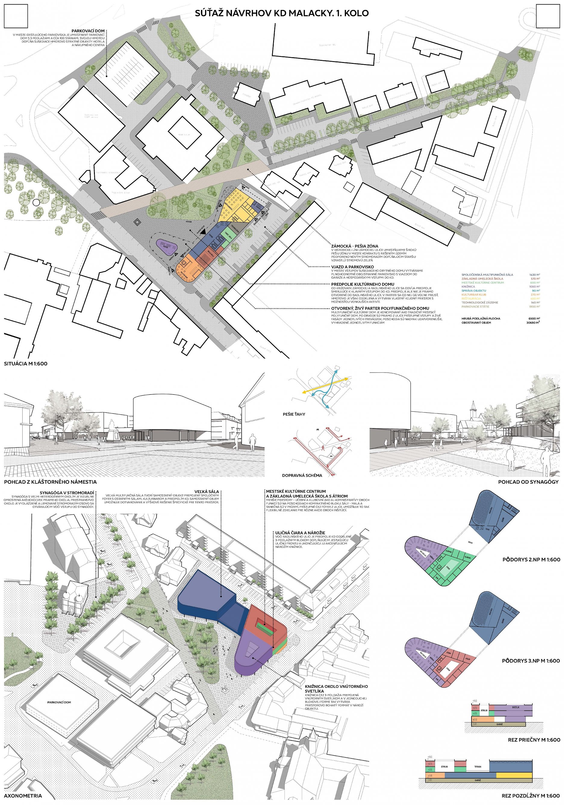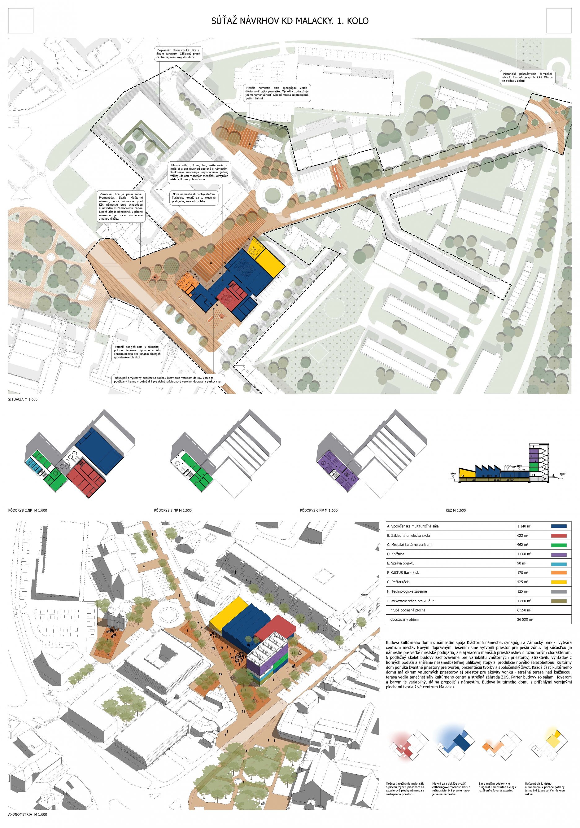 Mesto Malacky vyhlásilo koncom júla 2021 dvojkolovú urbanisticko-architektonickú súťaž návrhov na nový kultúrny dom s multifunkčnou spoločenskou sálou, základnou umeleckou školou, mestským kultúrnym centrom, reštauráciou a barom. Na pozemku pri križovatke Zámockej a Radlinského ulice v súčasnosti stojí bývalá budova mestského úradu (predtým sídlo spoločnosti Nafta Gbely). Víťazný návrh ateliéru N/A počíta s jej zbúraním, čo posilní výškovú dominantnosť kostola v centre mesta. Koncept delí funkcie do samostatných objektov kultúrneho domu a knižnice. Blok uzatvára parkovací dom.