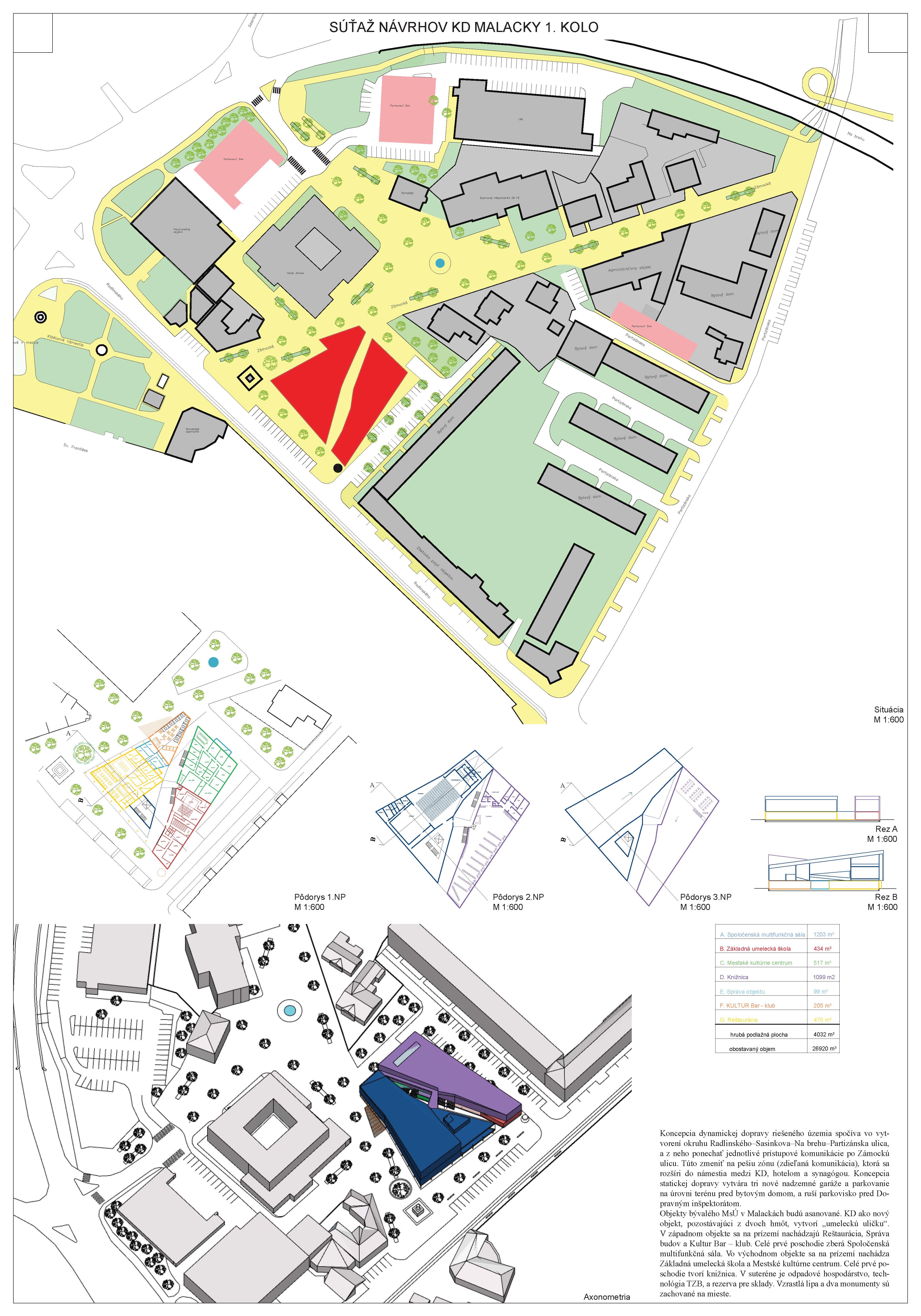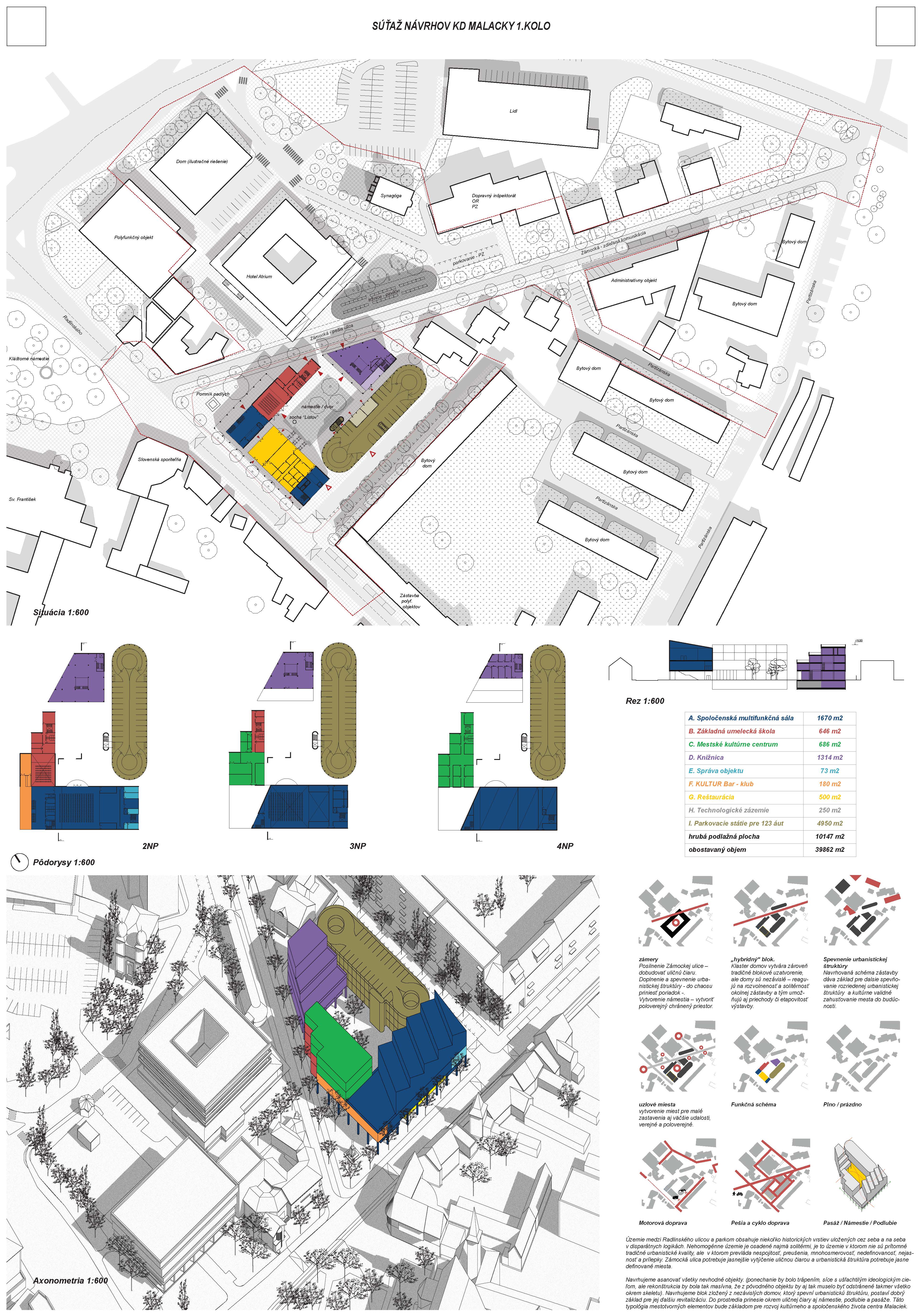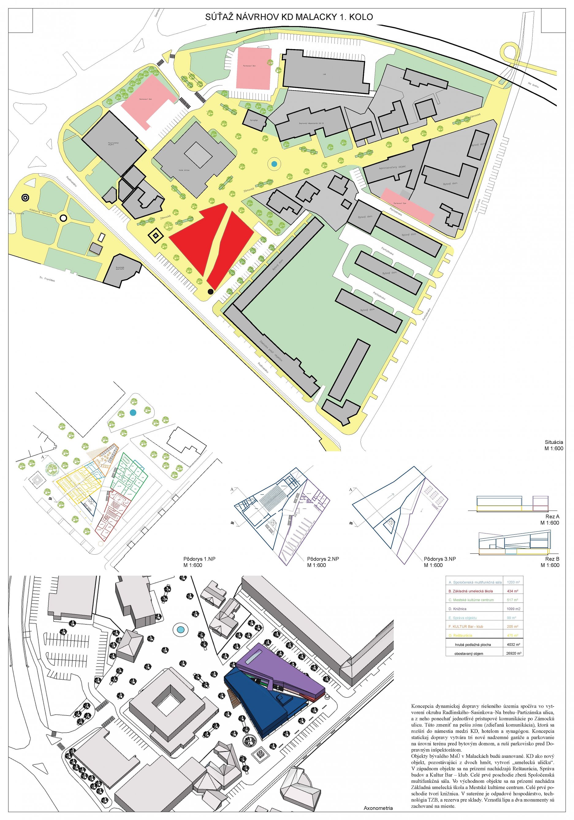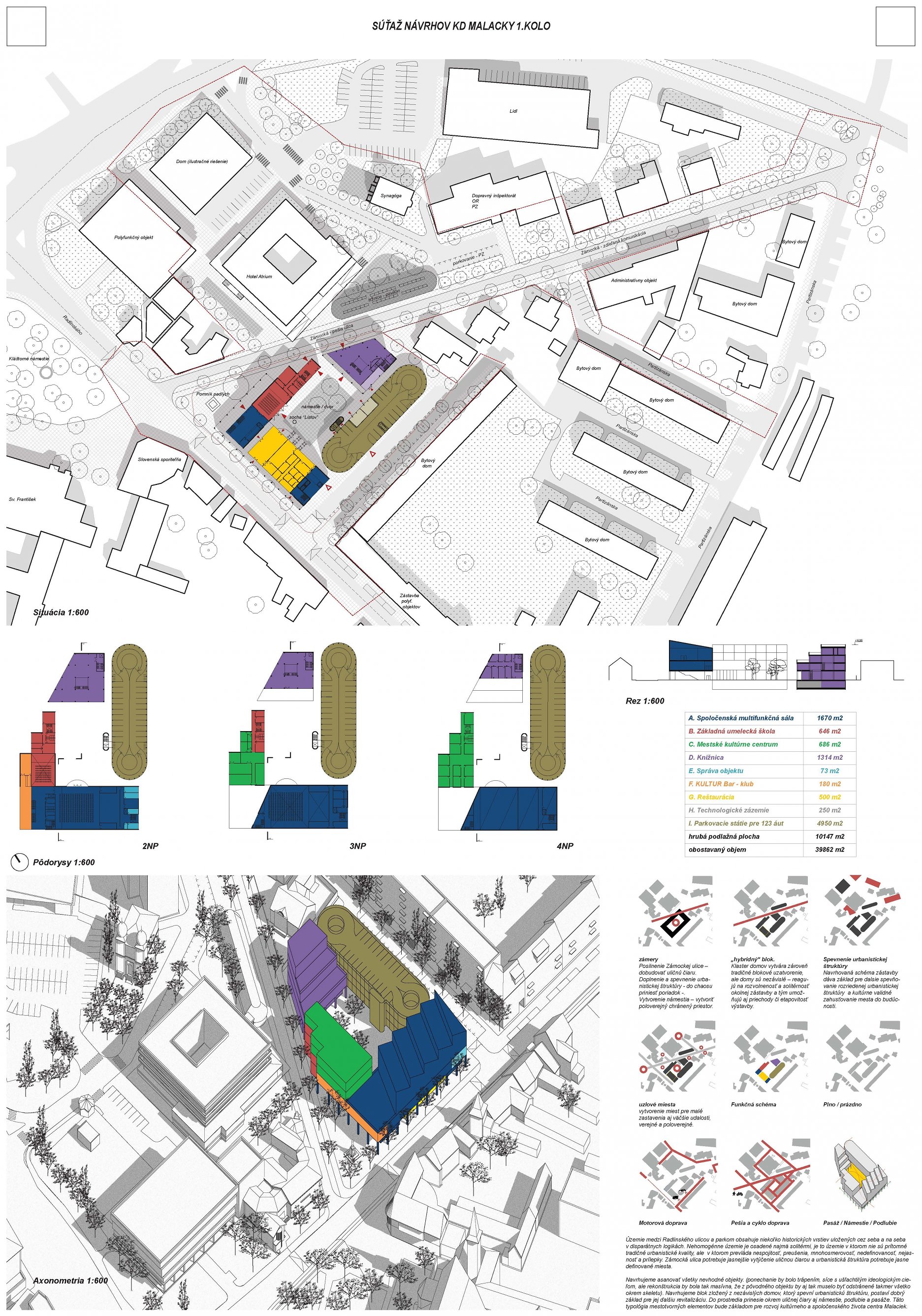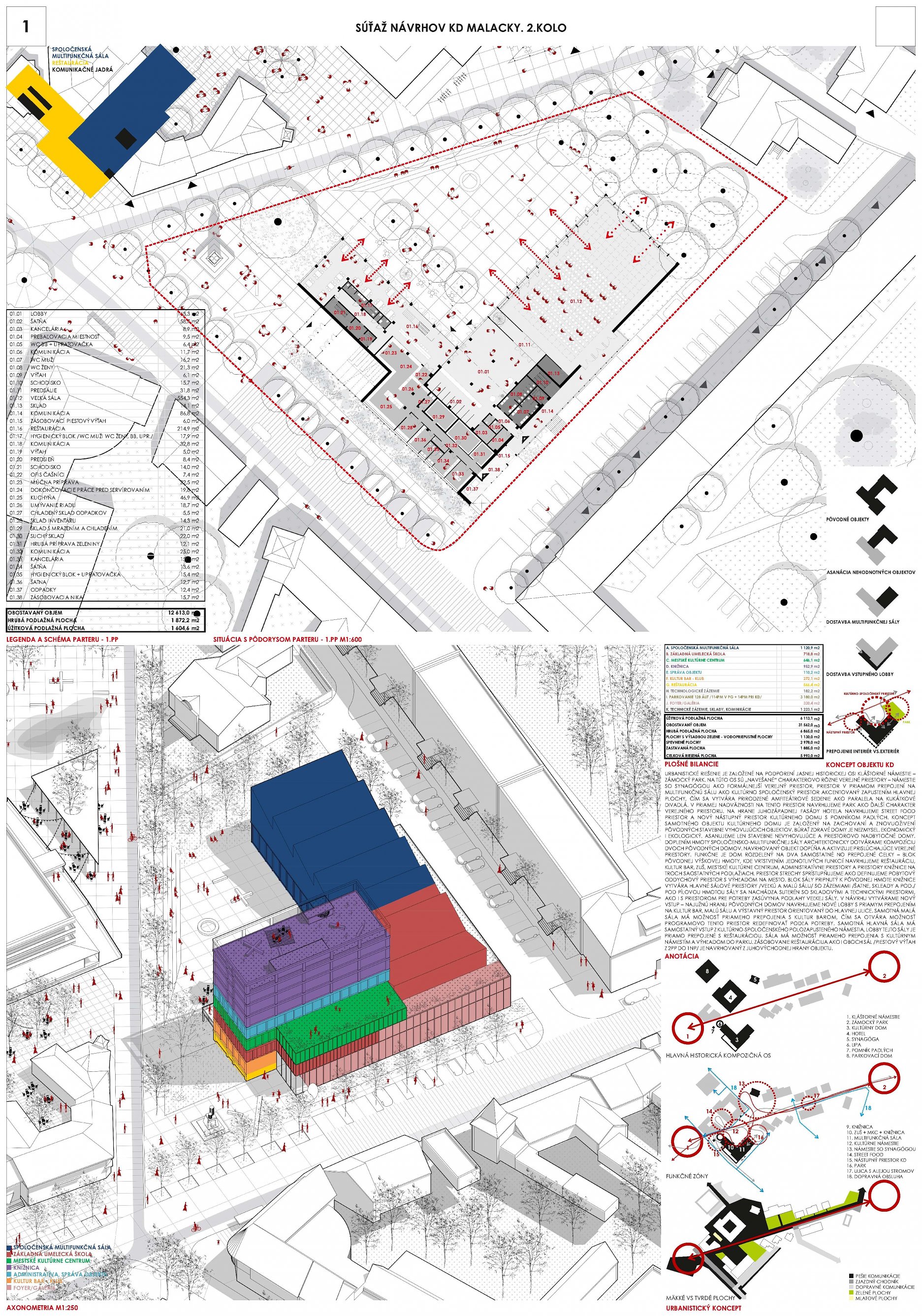 Mesto Malacky vyhlásilo koncom júla 2021 dvojkolovú urbanisticko-architektonickú súťaž návrhov na nový kultúrny dom s multifunkčnou spoločenskou sálou, základnou umeleckou školou, mestským kultúrnym centrom, reštauráciou a barom. Na pozemku pri križovatke Zámockej a Radlinského ulice v súčasnosti stojí bývalá budova mestského úradu (predtým sídlo spoločnosti Nafta Gbely). Víťazný návrh ateliéru N/A počíta s jej zbúraním, čo posilní výškovú dominantnosť kostola v centre mesta. Koncept delí funkcie do samostatných objektov kultúrneho domu a knižnice. Blok uzatvára parkovací dom.