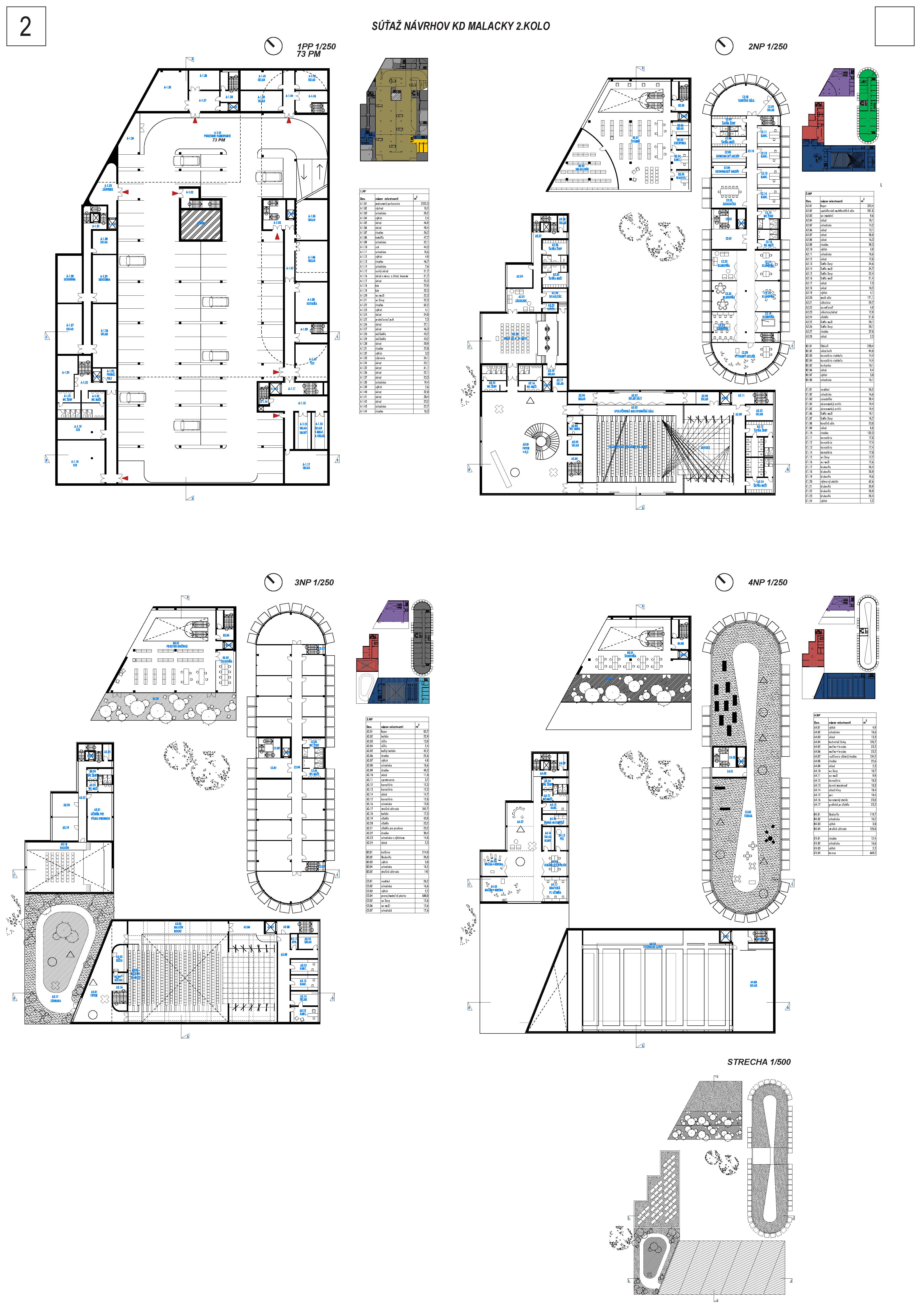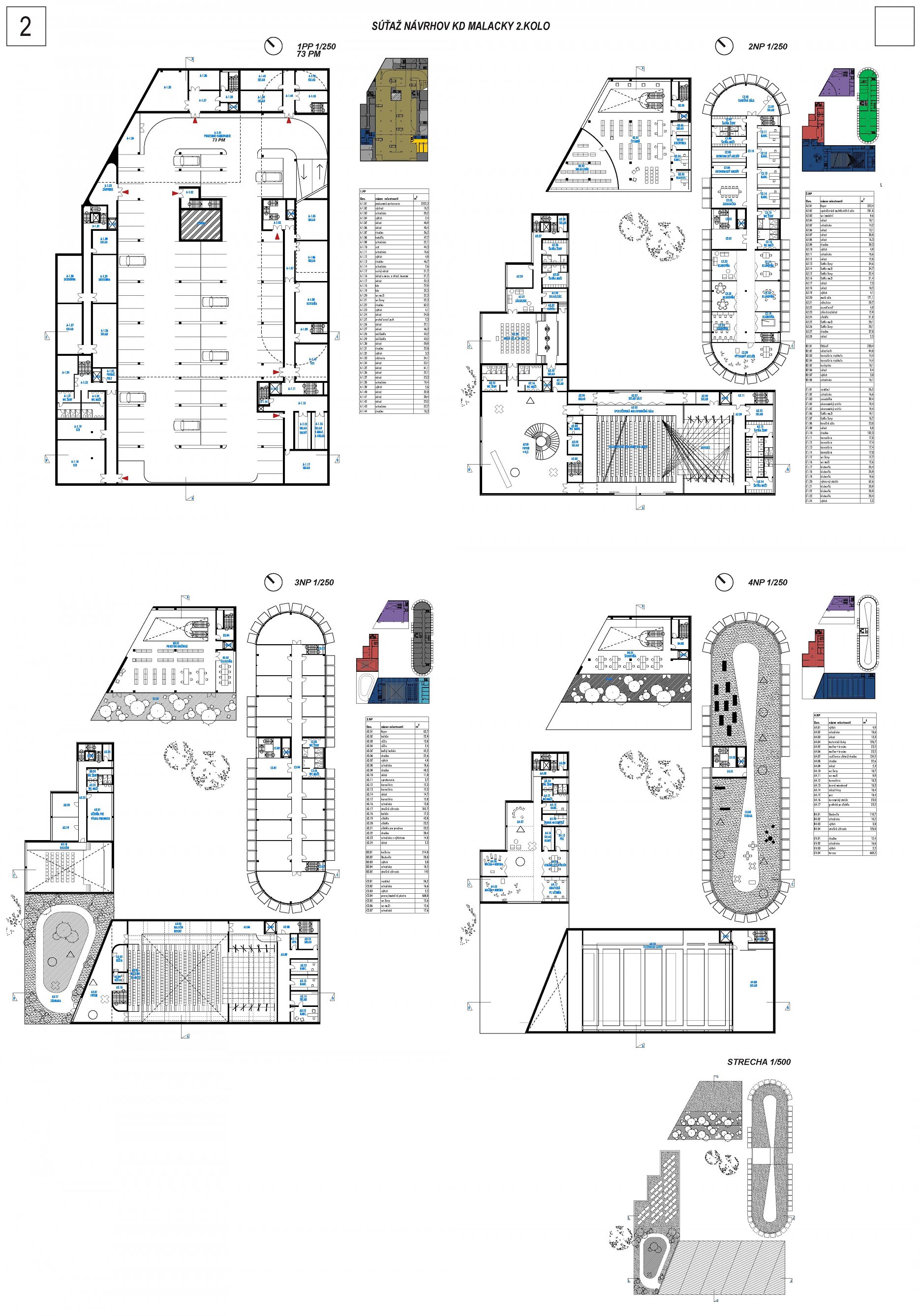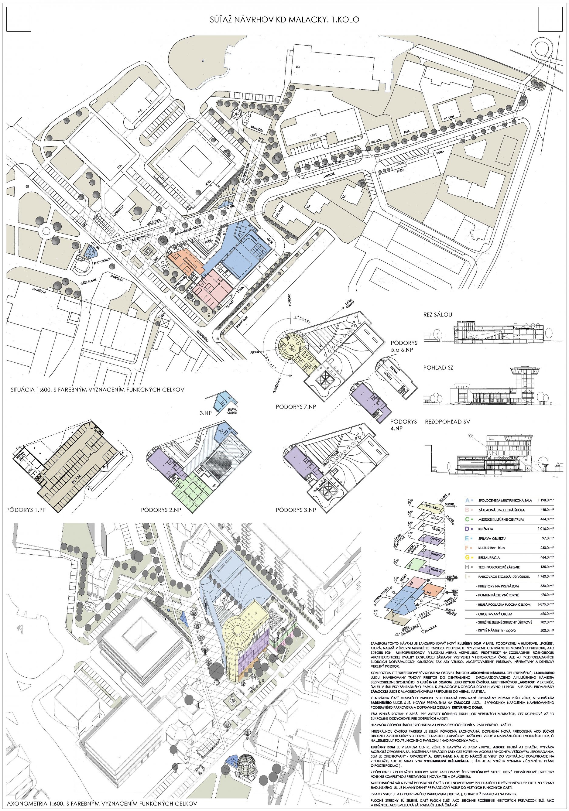 Návrh v porovnaní s prvým kolom figúru kultúrneho centra zjednodušil do pôdorysného tvaru písmena L –tak vzniká plocha nástupného plató ktorá sa orientuje na kompozičnú os zámockej ulice. Plató je artikulované znížením oproti nivelete Zámockej ulice. Zároveň sa znížením tejto nivelety dostane jestvujúce pozemné podlažie výškového domu zo severnej strany fasády na parter.