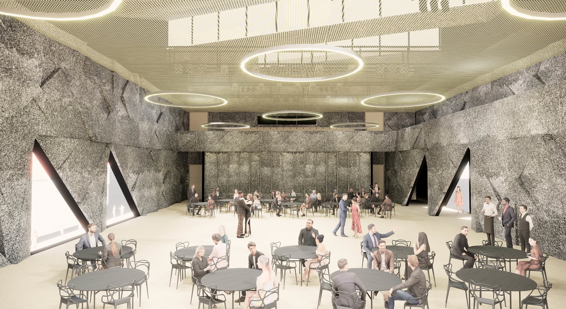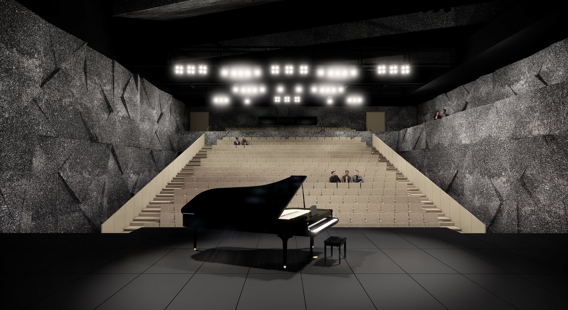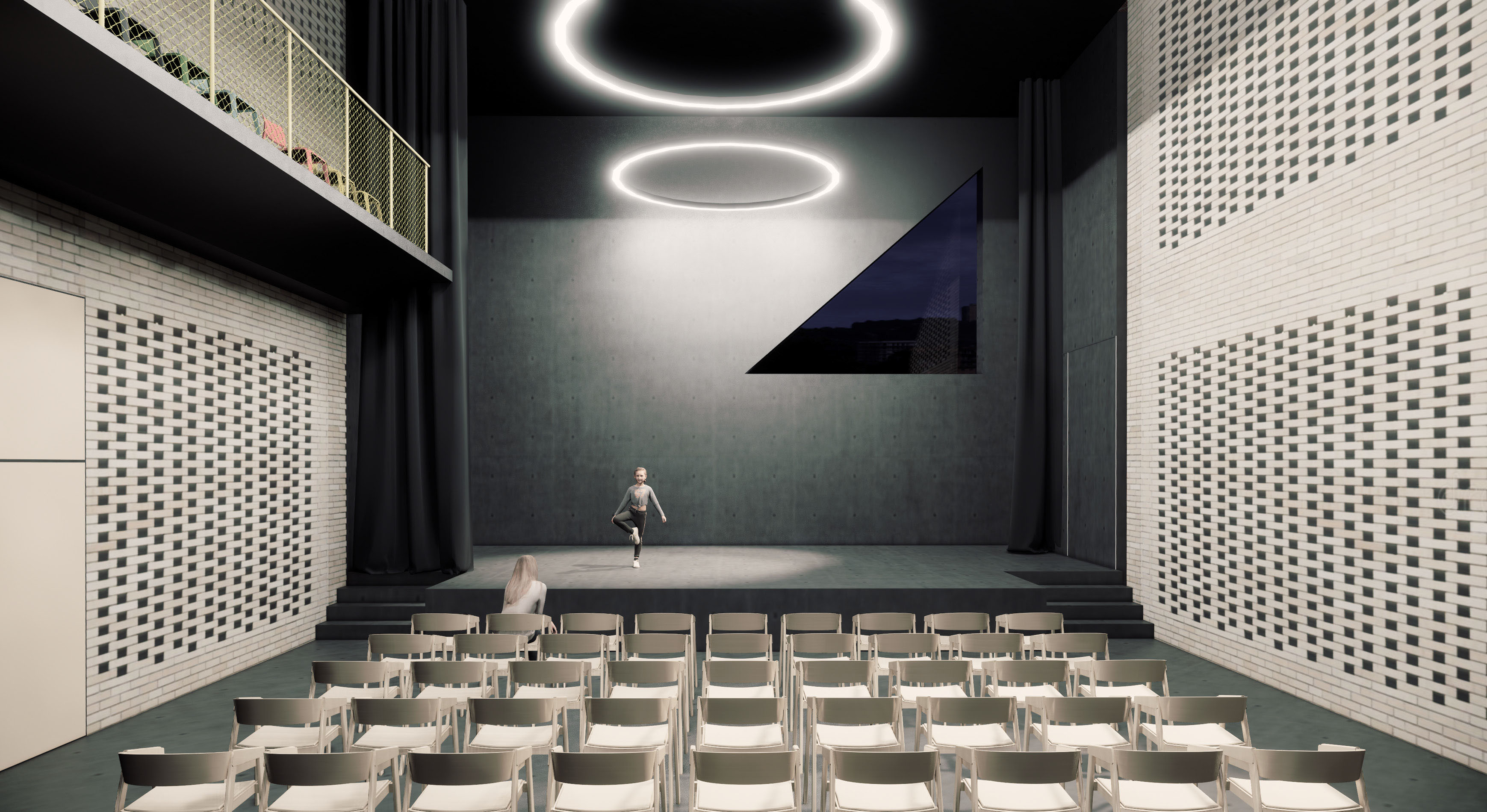 Do takto vytvoreného plató je potom orientovaný aj foyer hlavnej sály, samotná sála a taktiež prevádzka kaviarne.