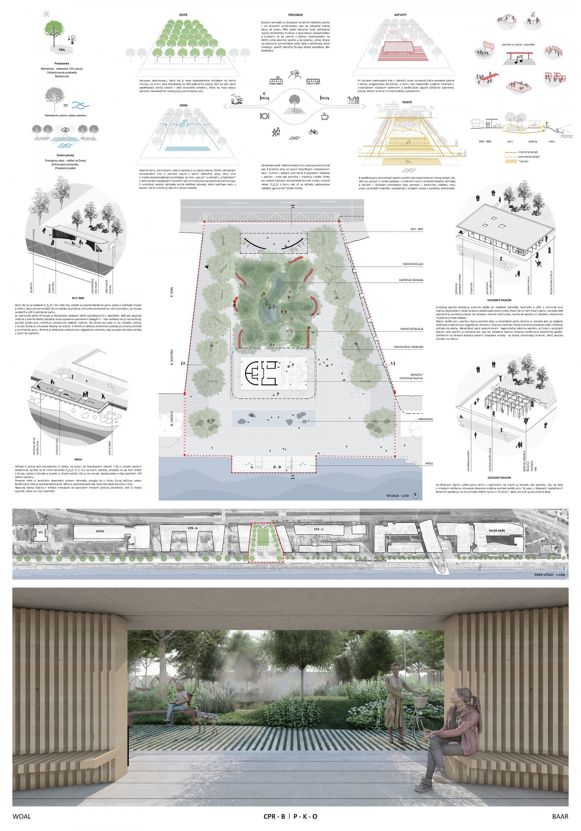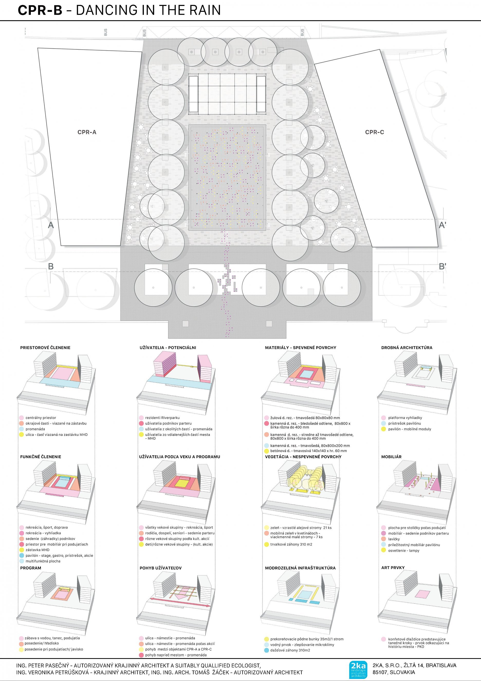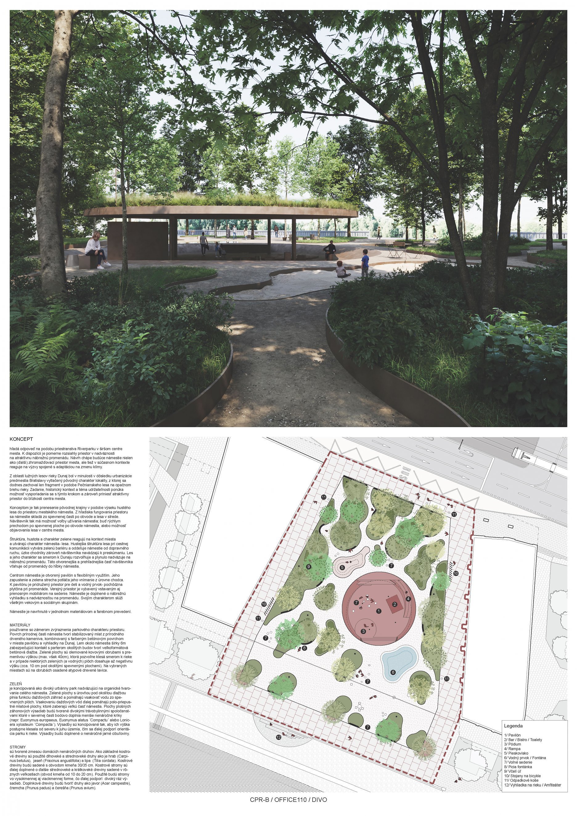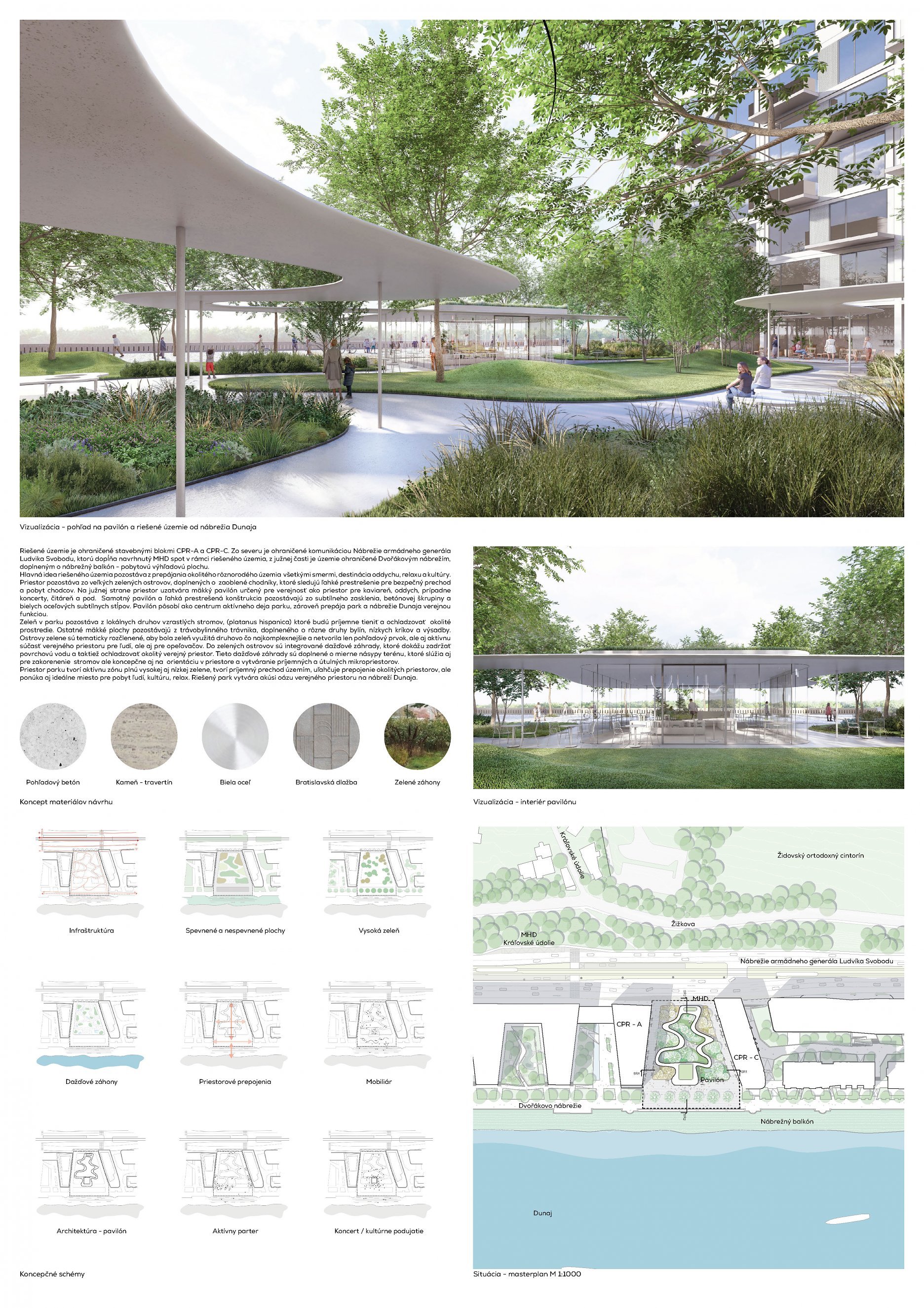 "Prišlo nám nesmierne dôležité chápať priestor v širšom kontexte. Pracovať s motívom kontinuálneho pohybu po nábreží a vytvoriť priestor, kde keď chcem, môžem ísť ďalej pozdĺž nábrežia, alebo ma ten priestor vtiahne dovnútra do akejsi oázy pokoja pri rieke," dopĺňa Tomáš Hanáček.