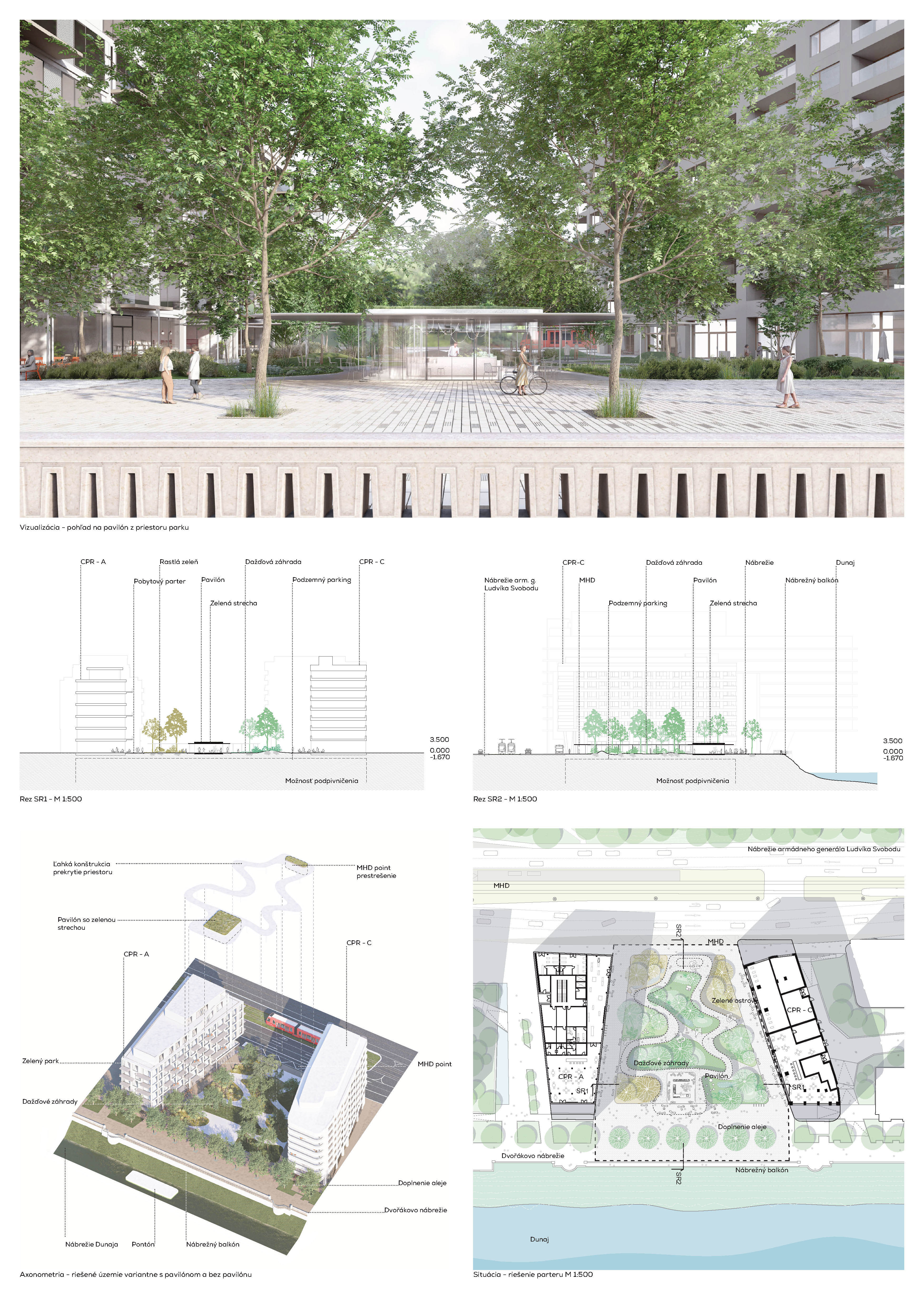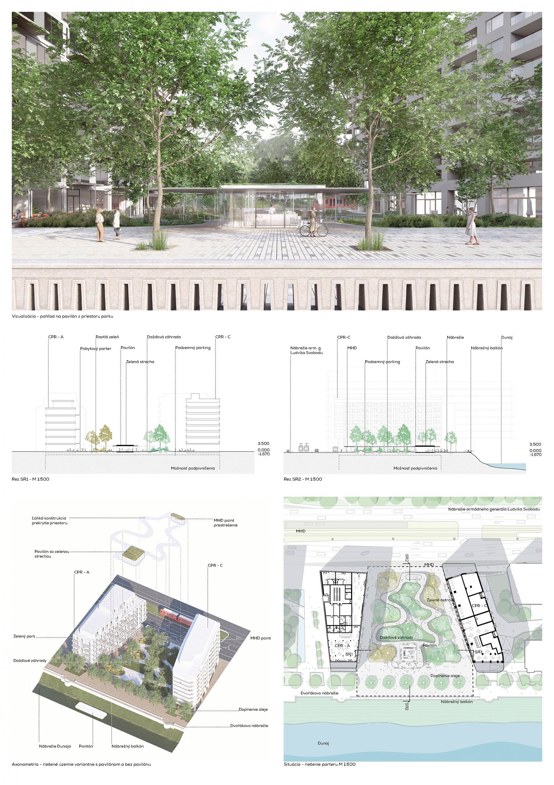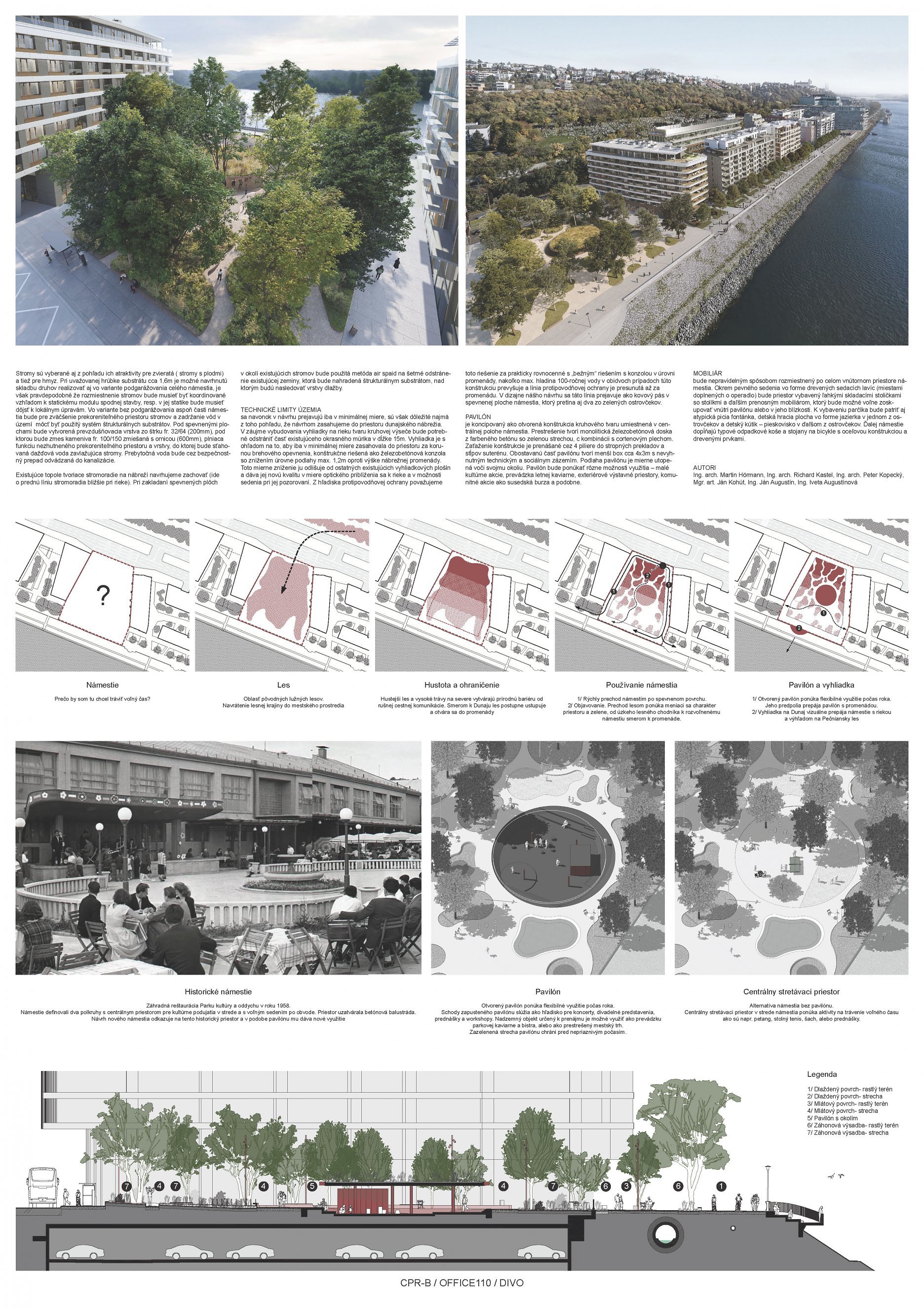 "Návrh, ktorý komisia odporúča, je silný v jednotlivých funkciách. Ich skĺbením vytvára vysokú užívateľskú flexibilitu. Zároveň nekopíruje, ale dopĺňa program okolitých objektov, ktoré všetky budú mať živé vnútrobloky a samotnej dunajskej promenády. Kombinácia prírodných prvkov vytvára zaujímavú mestskosť a zároveň príťažlivosť pre pobyt aj rôzne aktivity. Takýto priestor nepotrebuje ´návod na použitie´, autori vytvorili veľmi intuitívny koncept,“ opisuje návrh Peter Gero.