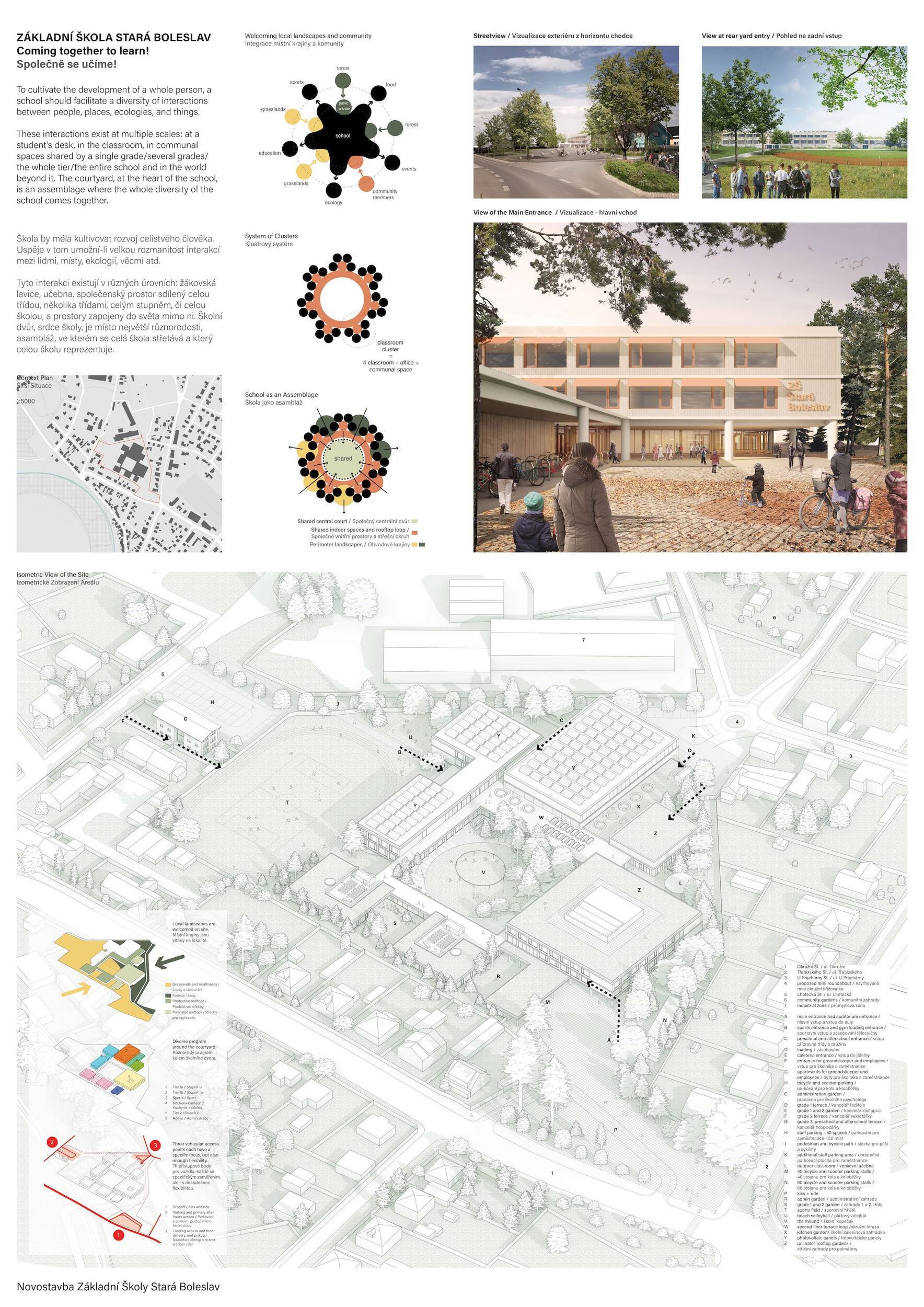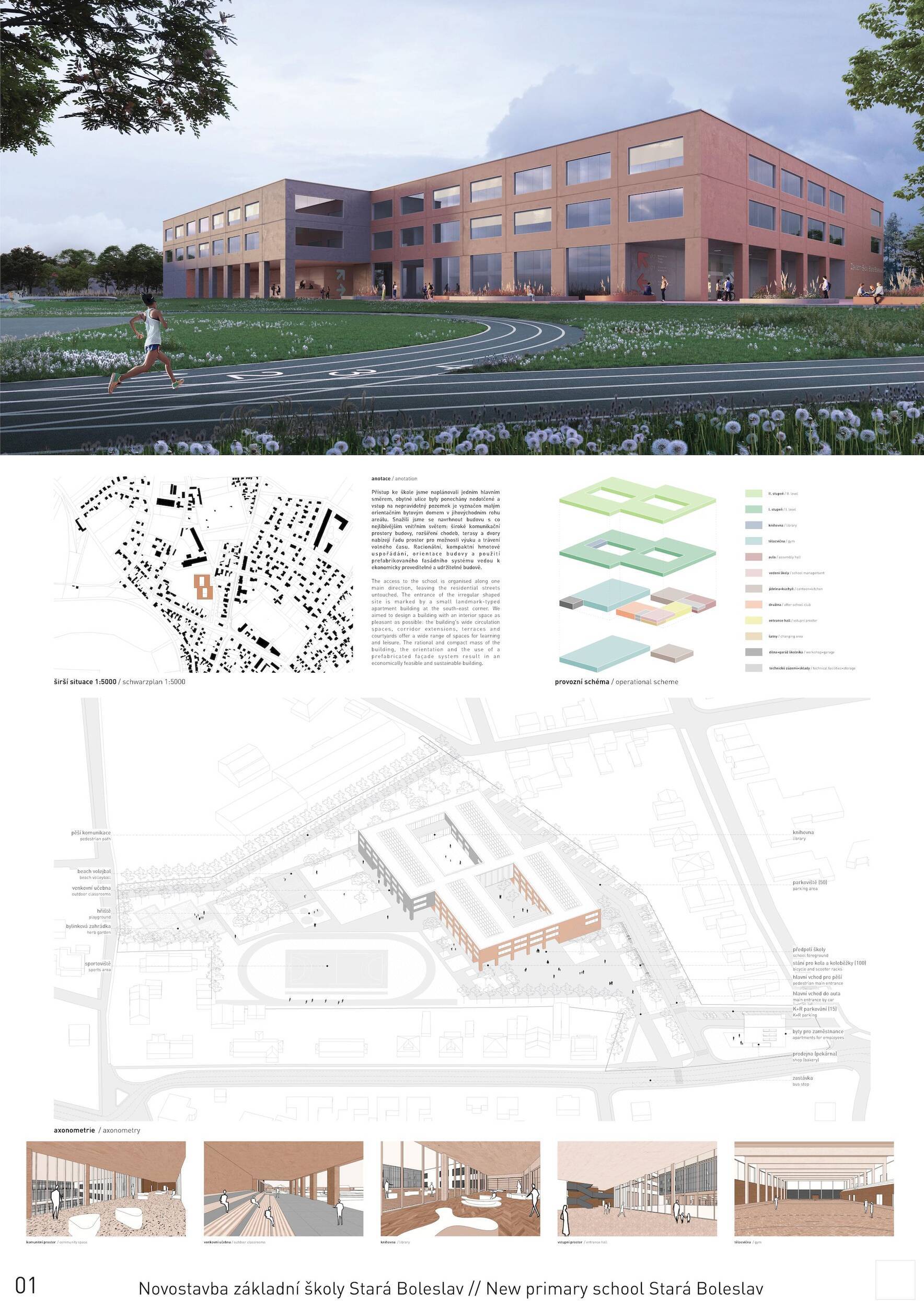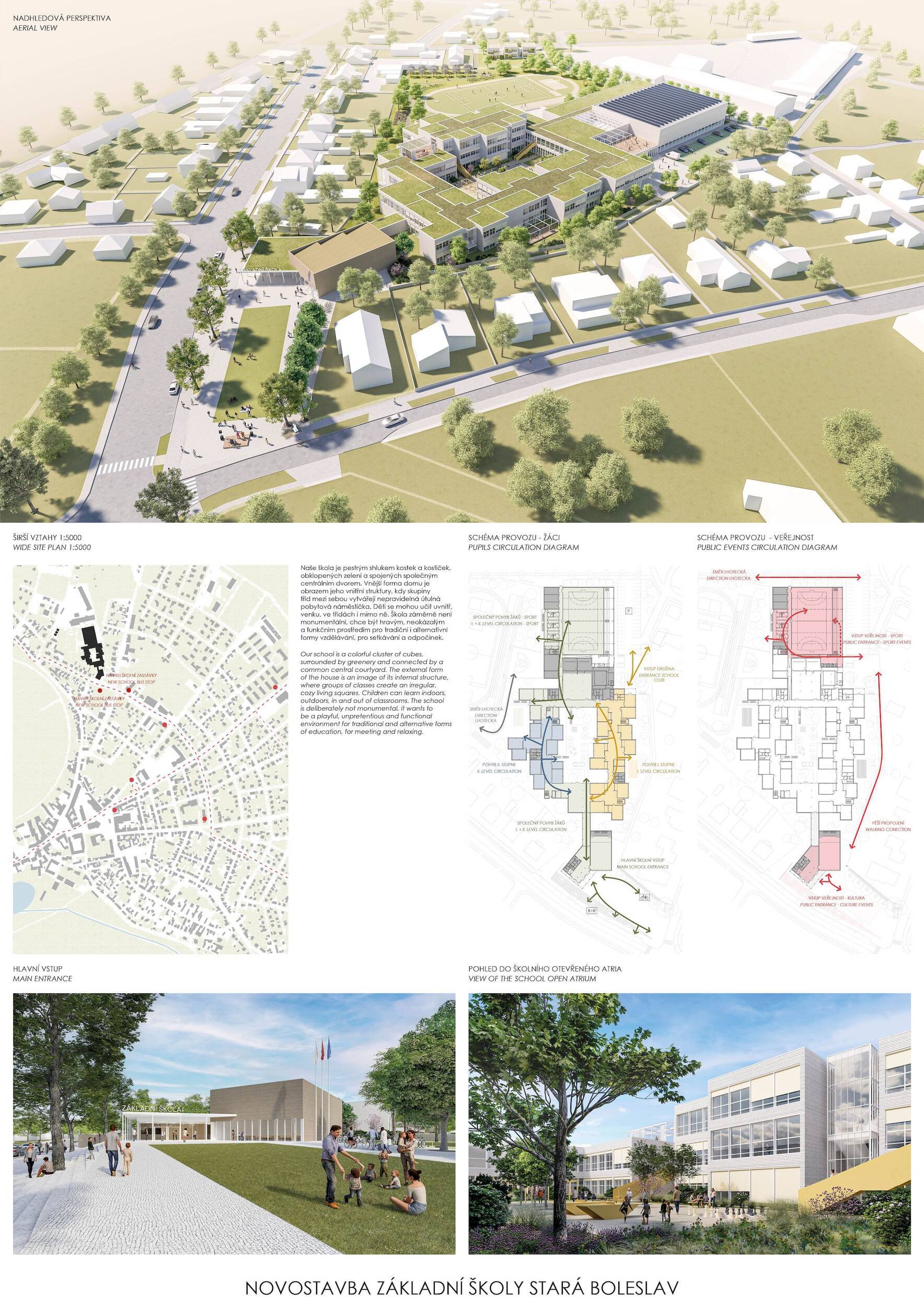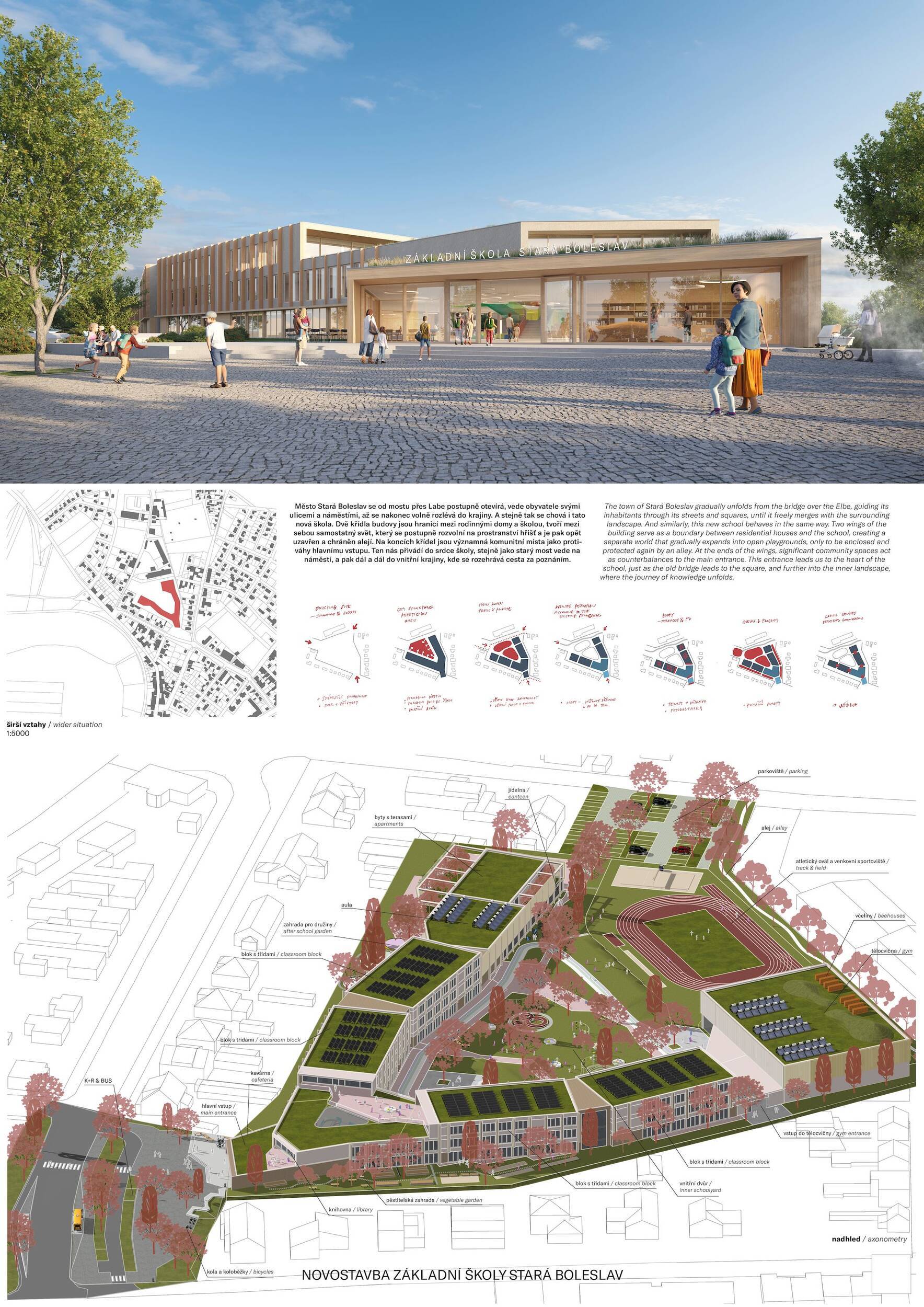 Sedemnásťtisícové stredočeské mesto Brandýs nad Labem-Stará Boleslav vyhlásilo v apríli 2023 jednokolovú otvorenú súťaž návrhov na novú základnú školu. Úlohou súťažiacich bolo navrhnúť novostavbu s kapacitou 4 x 9 tried, I. a II. stupňa. Návrh mal počítať nielen s vytvorením priestoru pre výučbu, šport a trávenie voľnočasových aktivít 900 detí, ale tiež s obohatením kultúrneho a športového života mesta.
