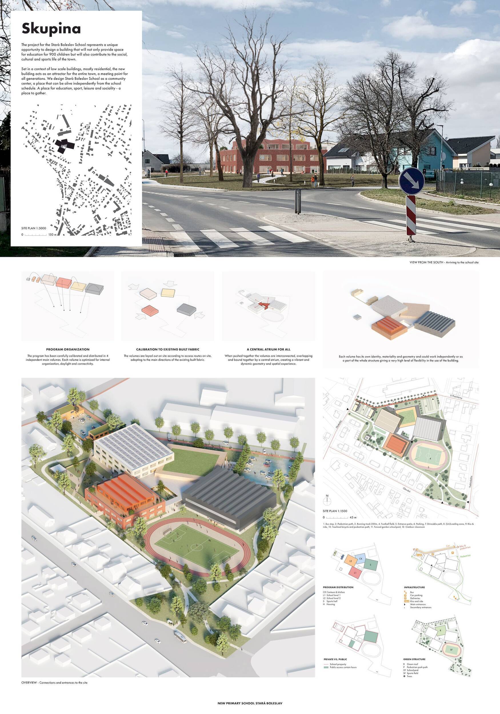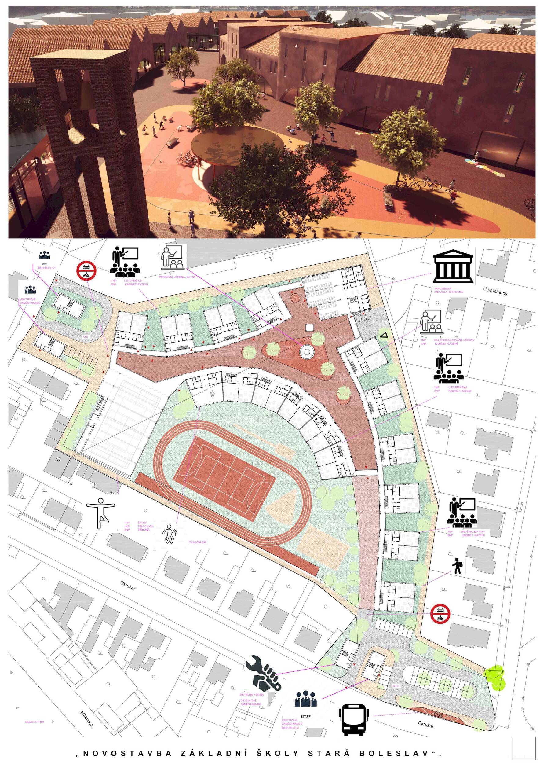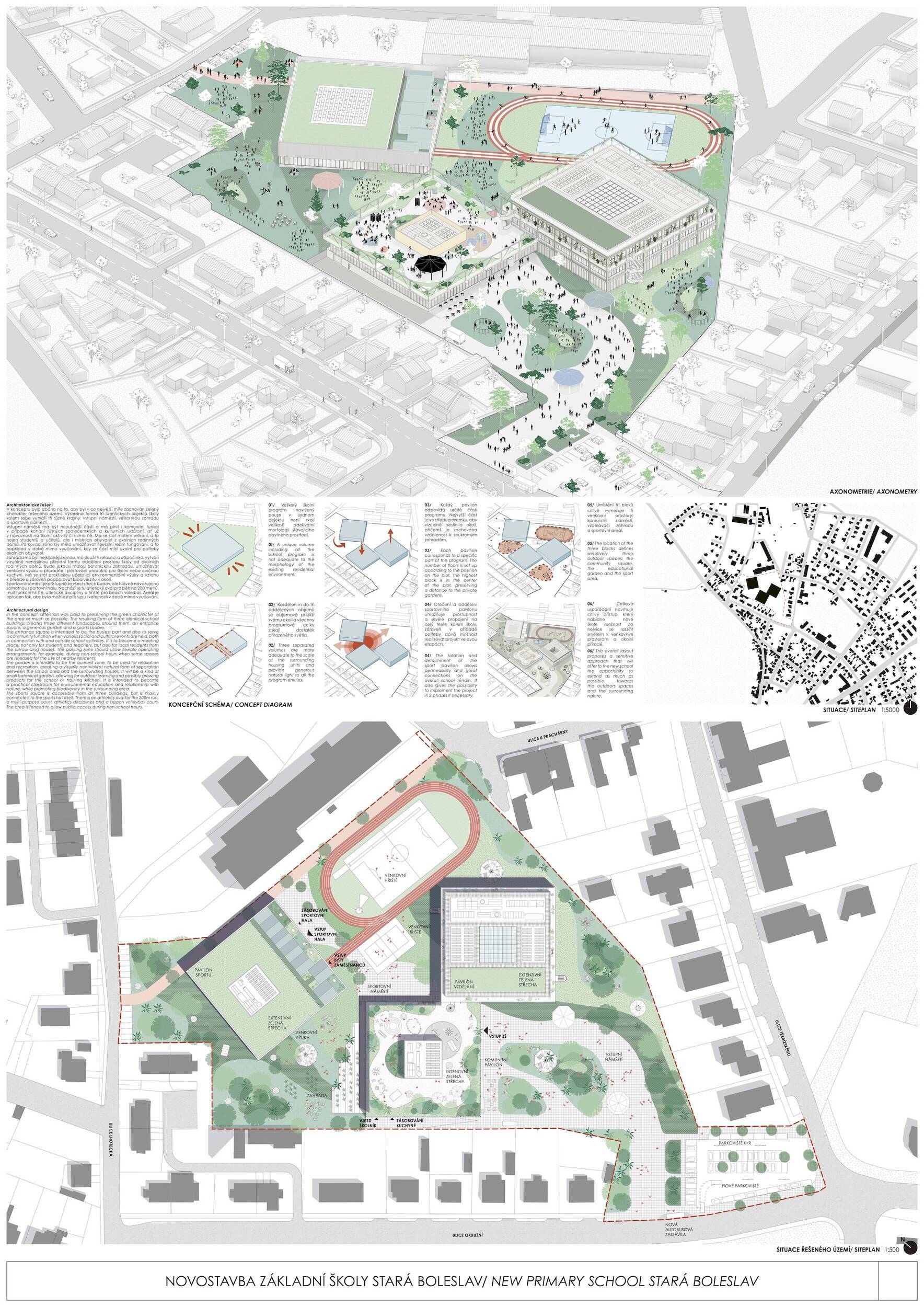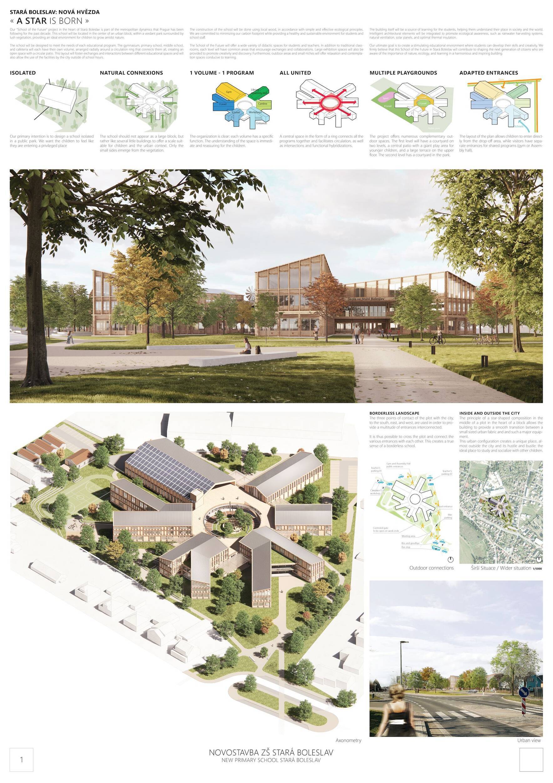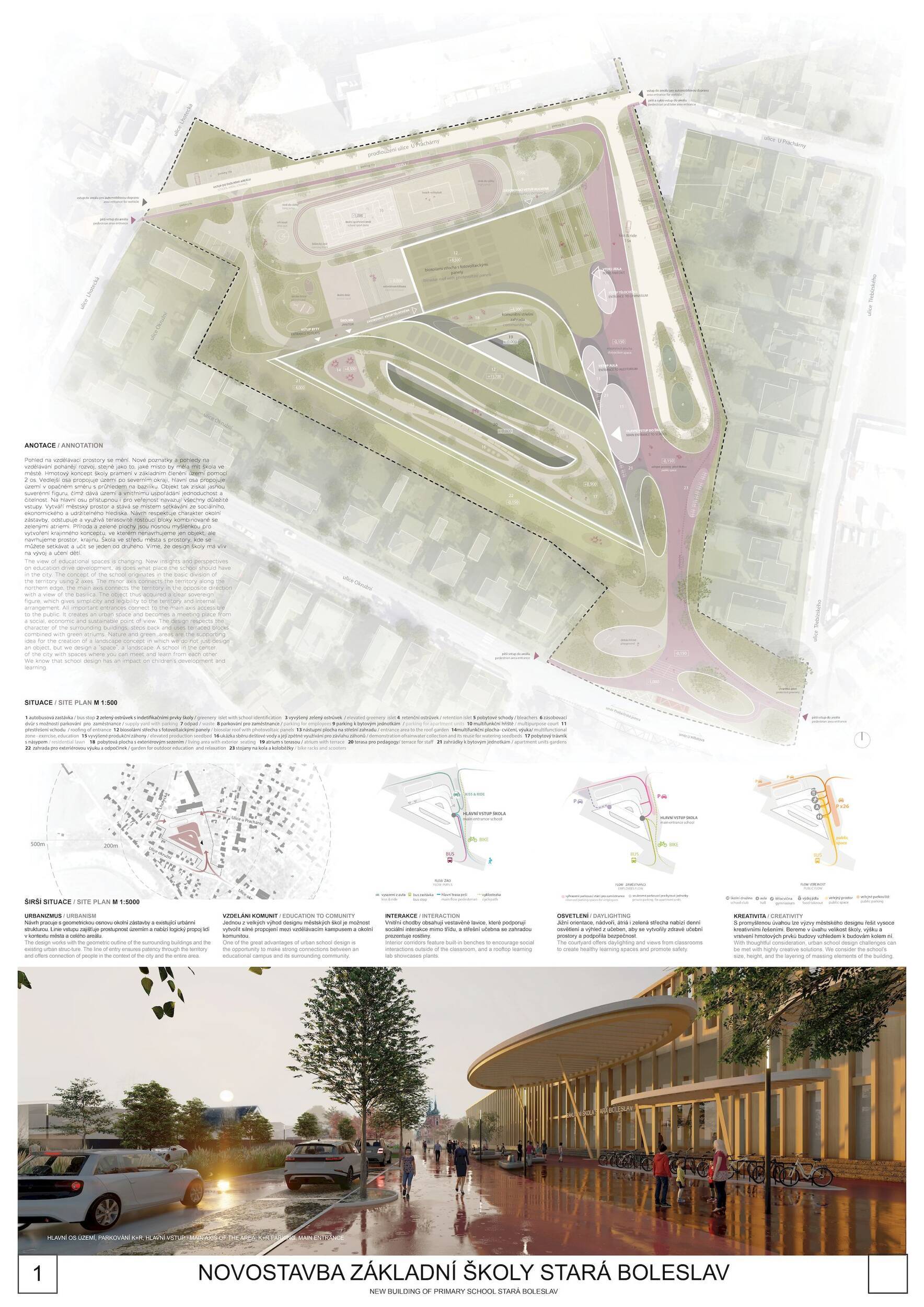 Sedemnásťtisícové stredočeské mesto Brandýs nad Labem-Stará Boleslav vyhlásilo v apríli 2023 jednokolovú otvorenú súťaž návrhov na novú základnú školu. Úlohou súťažiacich bolo navrhnúť novostavbu s kapacitou 4 x 9 tried, I. a II. stupňa. Návrh mal počítať nielen s vytvorením priestoru pre výučbu, šport a trávenie voľnočasových aktivít 900 detí, ale tiež s obohatením kultúrneho a športového života mesta.