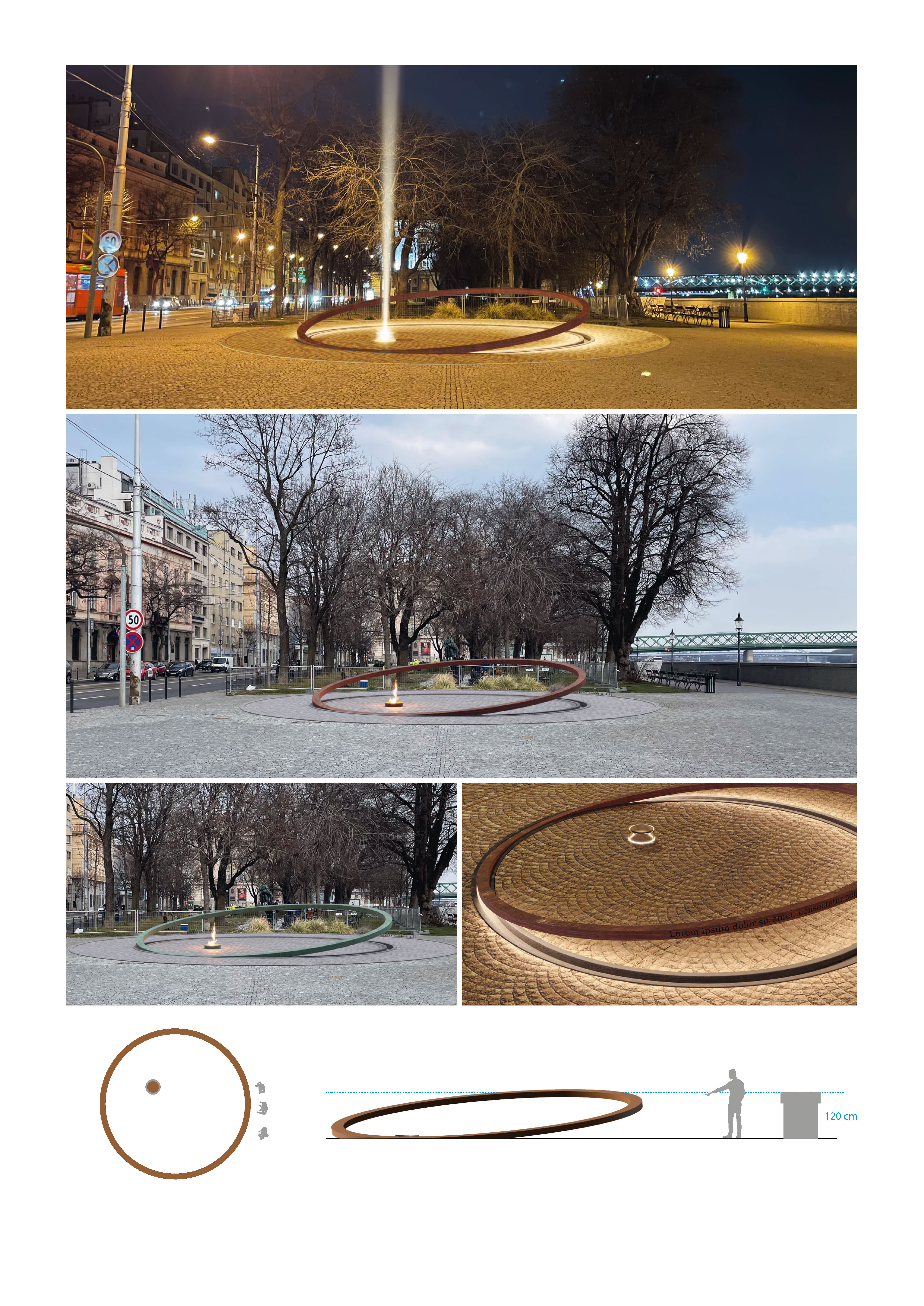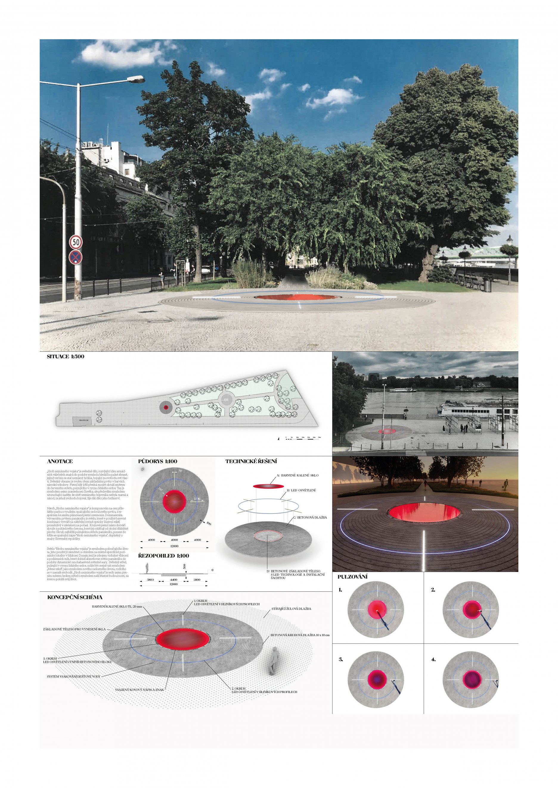 Urbanisticko-architektonicky presýtené nábrežie nezaťažujeme masívnymi sochárskymi hmotami a architektonickými prvkami. Zvolili sme minimalistické riešenie ľahkého objektu.
