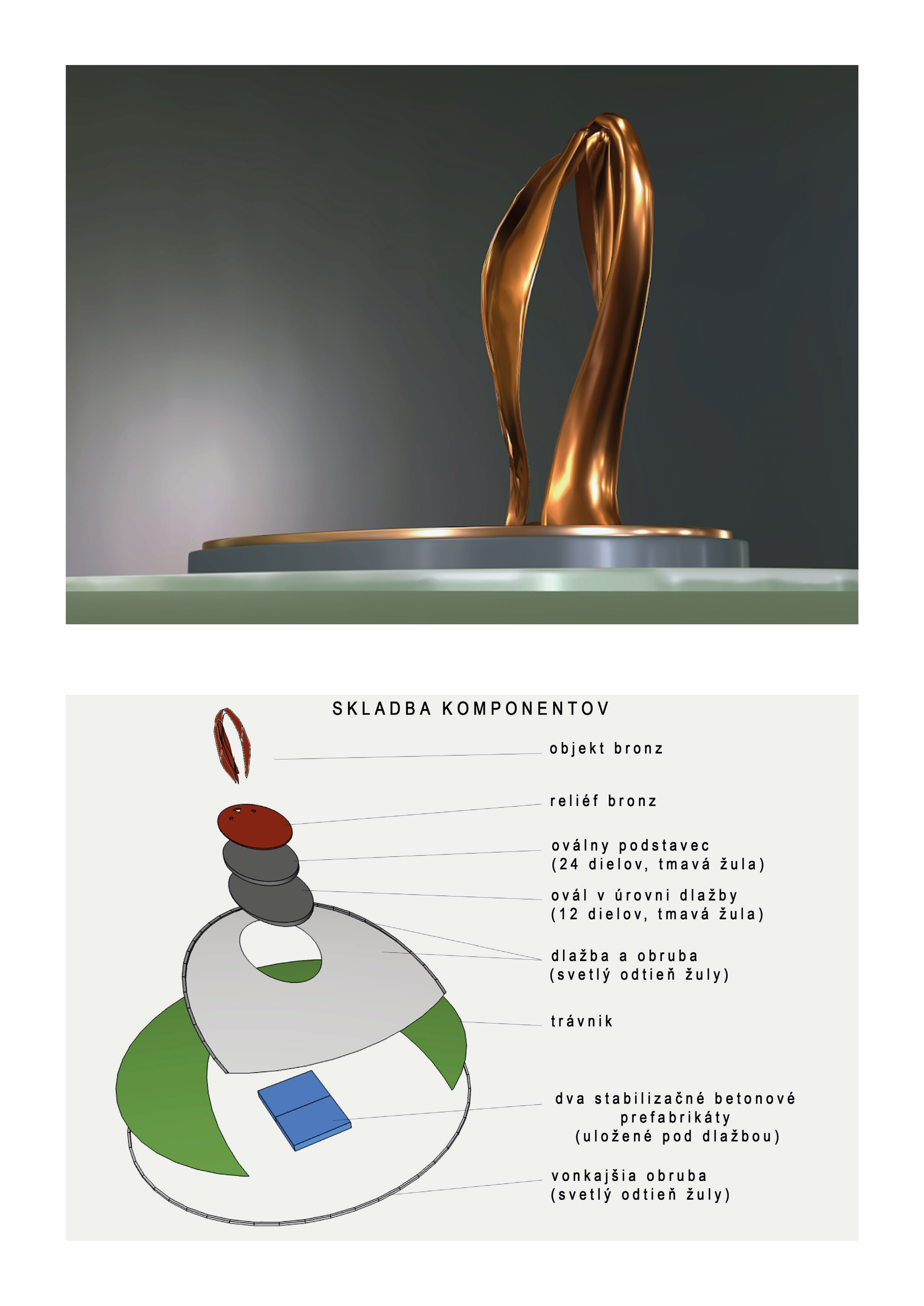 Našou ambíciou teda nie je vložiť sochu osobitej formy do verejného priestoru, ale samotný verej-ný priestor poňať sochársky a povýšiť ho tak na miesto pietne, obsahujúce všetky potrebné atribúty na vytvorenie spomienkovej atmosféry, na miesto príležitostne slávnostné, ako aj na miesto oddychové a pobytové, priamo účastné na skvalitnení vnímania a cítenia priestoru pre návštevníkov či okoloidúcich.