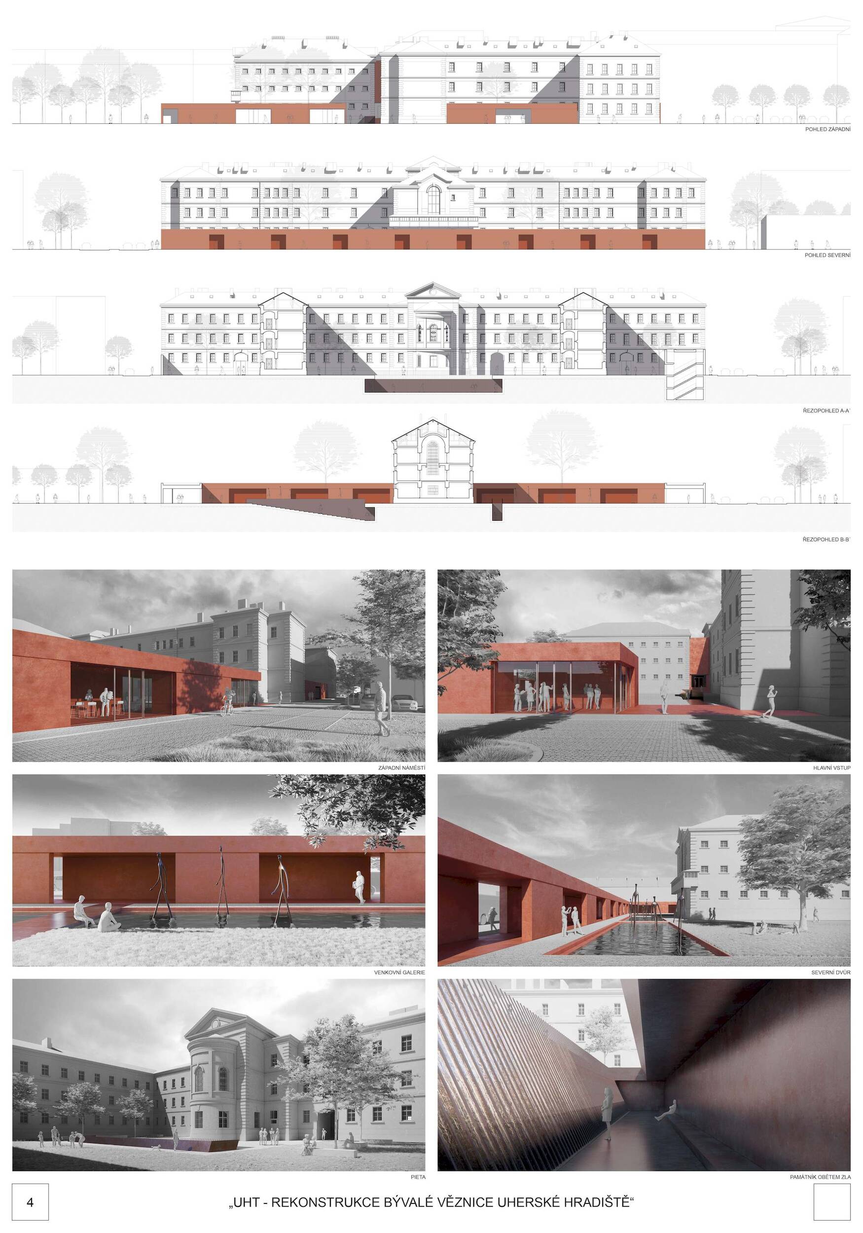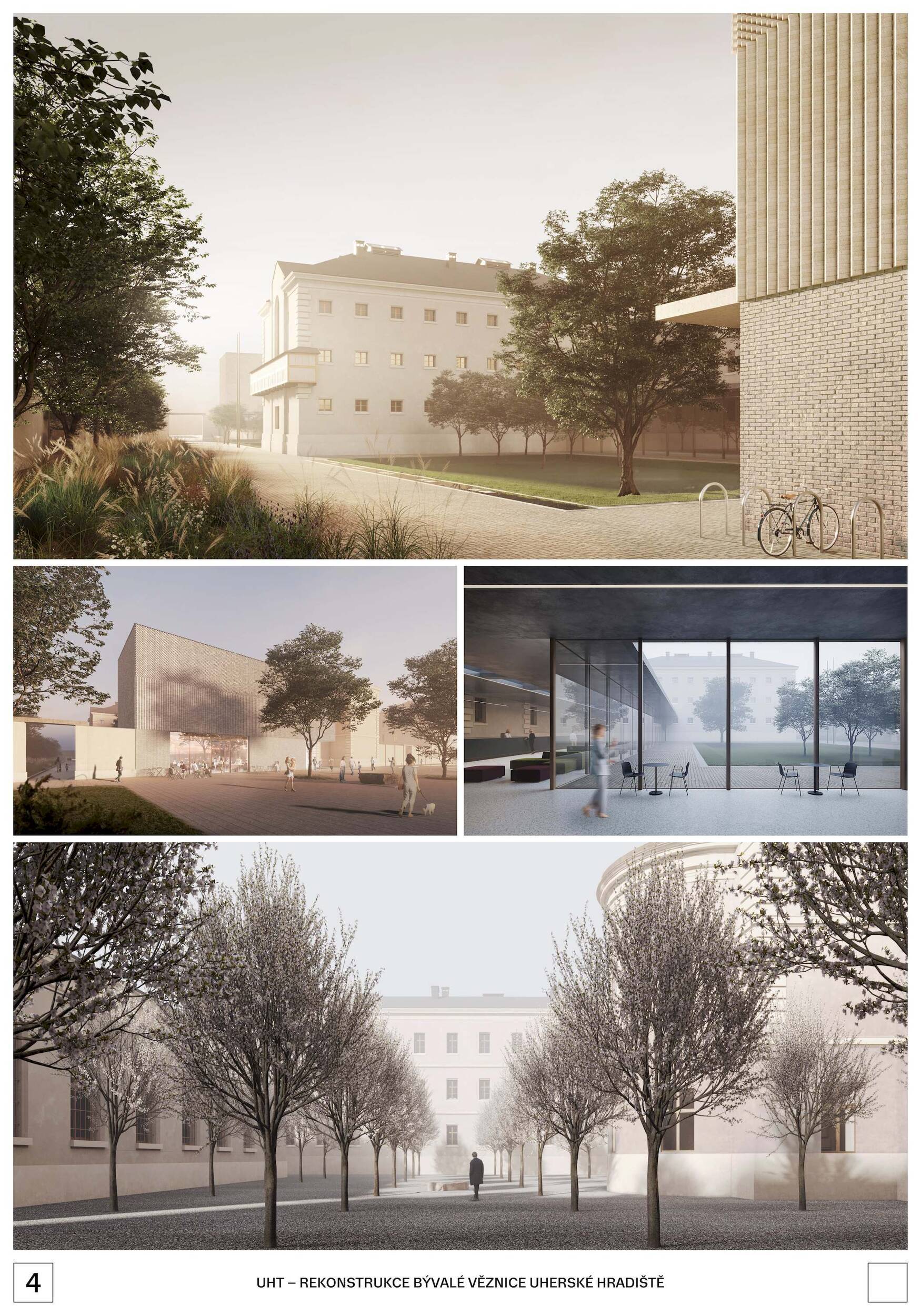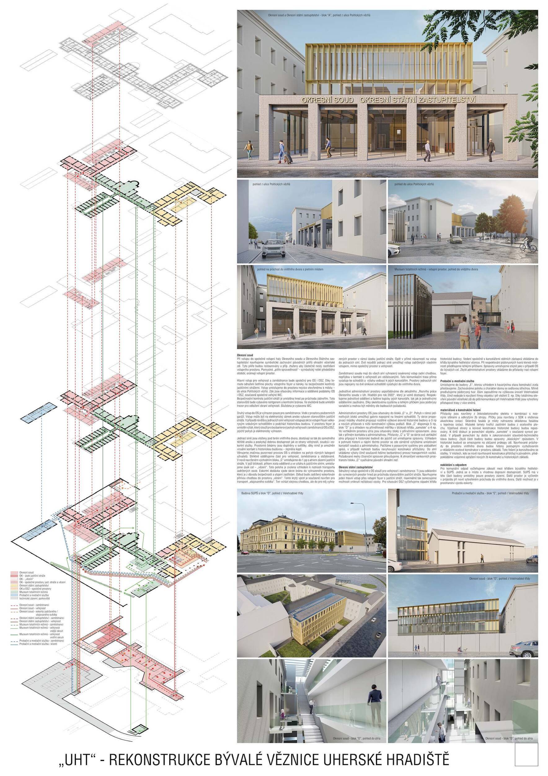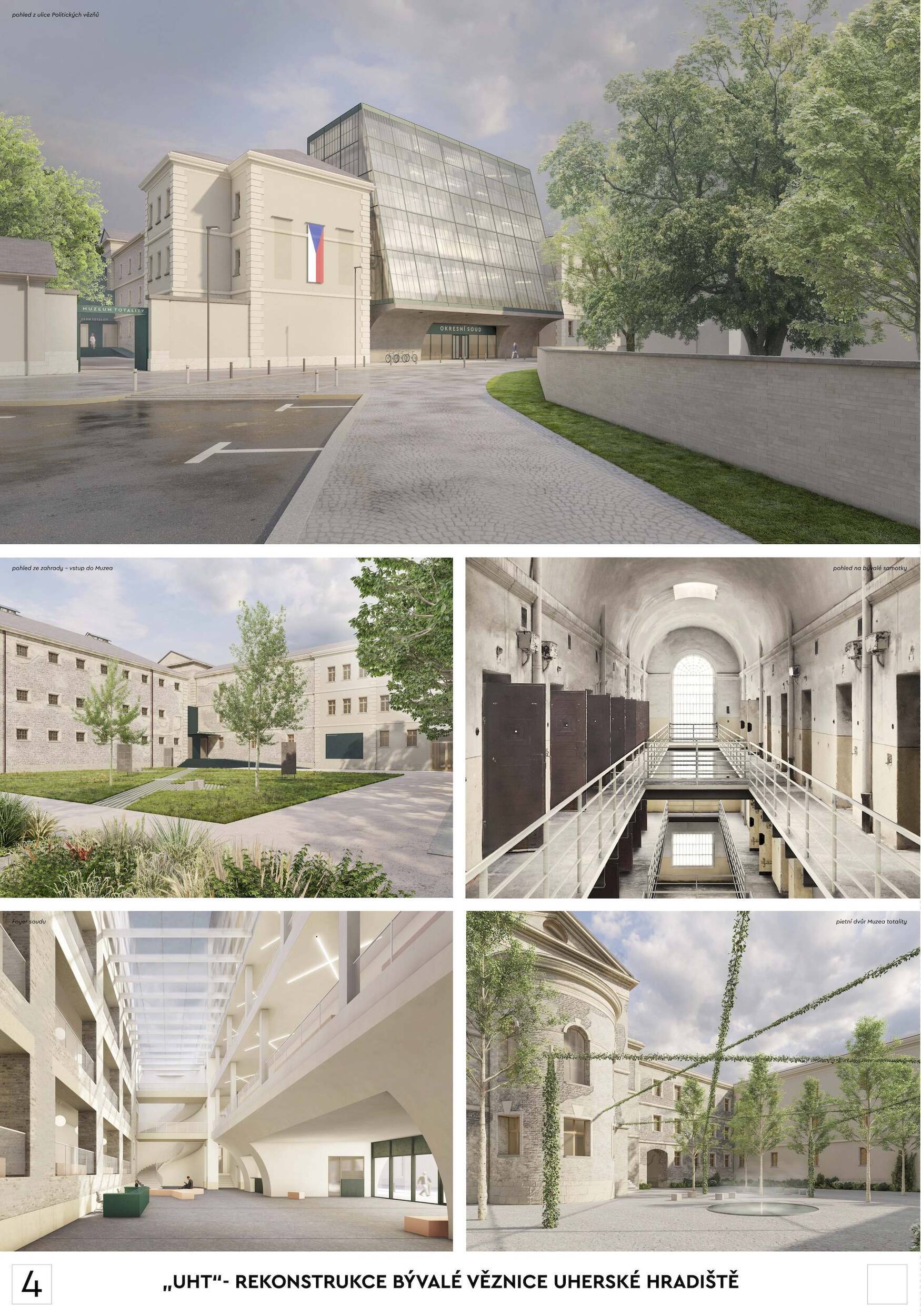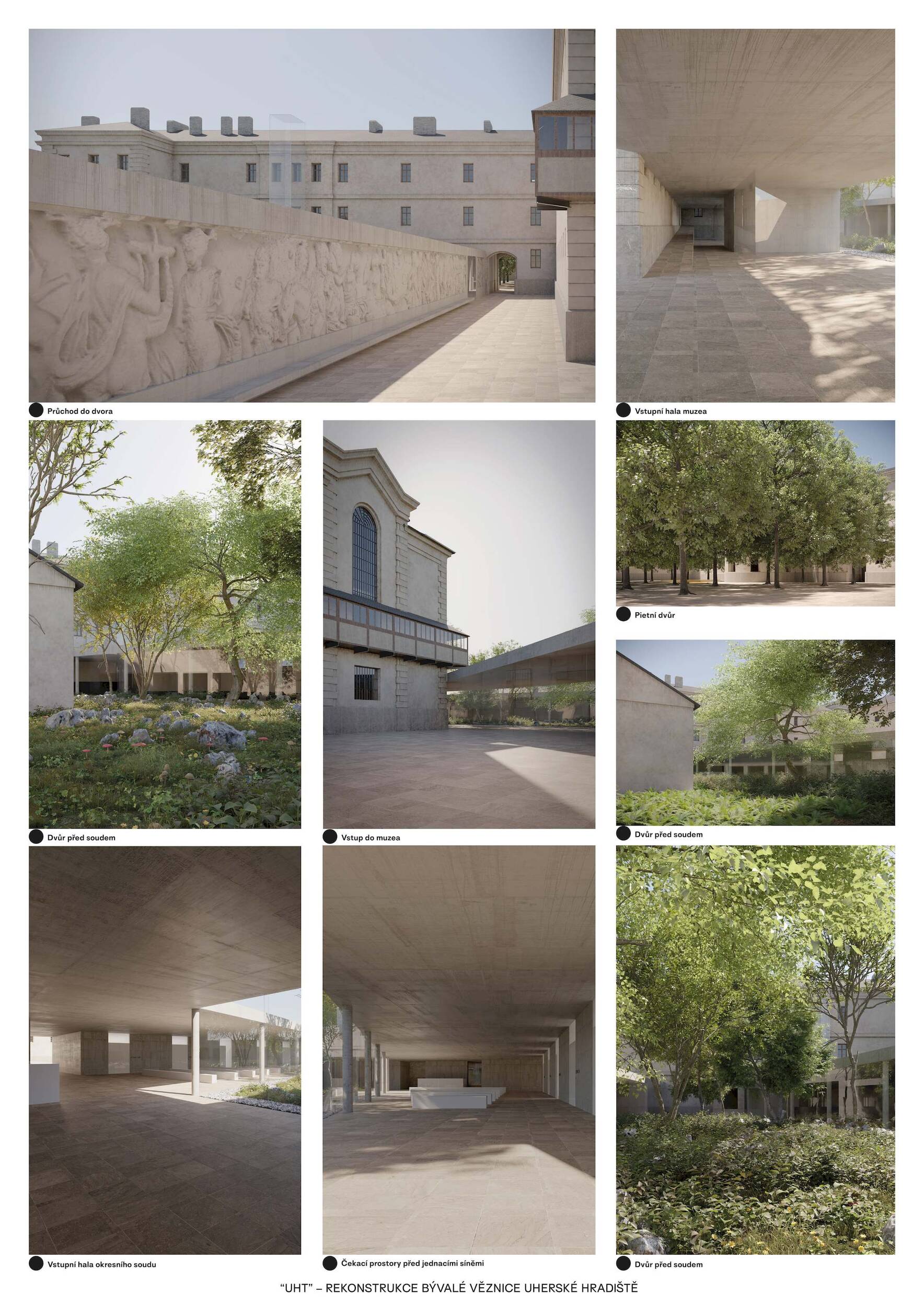 Originální koncept pojetí perimetru ohradní stěny přinášející nové funkce městu a dávající silnější potenciál využití dvora. Idea prostupující muzeální osy považuje porota za jednu z nejsilnějších stránek tohoto návrhu. Citlivými dostavbami autoři nechávají vyniknout památkově chráněný monumentální objekt a jemnými gesty ho zlidšťují. Porota považuje za nedostatečné řešené vstupní prostory veřejných částí i některé provozní vazby v objektu. Návrh přináší autorské řešení venkovních částí expozic, které by vhodně sloužily pro účely muzea. Historickou budovu nechává vyznít a chová se k ní citlivě, i když by formou přidávání veřejných funkcí mohl dosáhnout důstojnějších vstupních ploch. Návrh patří k ekonomicky přiměřeným návrhům. Kapacitně podhodnocené dispoziční a provozní řešení instituce soudnictví. Koncept jednacích síní umístěných nad sebou a s nedostatečným předsálím a problematickou bezbariérovou dostupností se zdál být nejslabším místem návrhu. Také společná spisovna pro soud i státní zastupitelství je od soudní budovy provozně oddělena, což bylo budoucím uživatelem vyhodnoceno jako problematické řešení. Veřejně přístupné prostory interiéru, svou snahou vměstnat se do stávajících rozměrů objektu, neodpovídají současným standardům a řada jednacích místností neodpovídá svou velikostí zadání stavebního programu. Není prezentována podoba dostavby spisovny do ul. Velehradské.