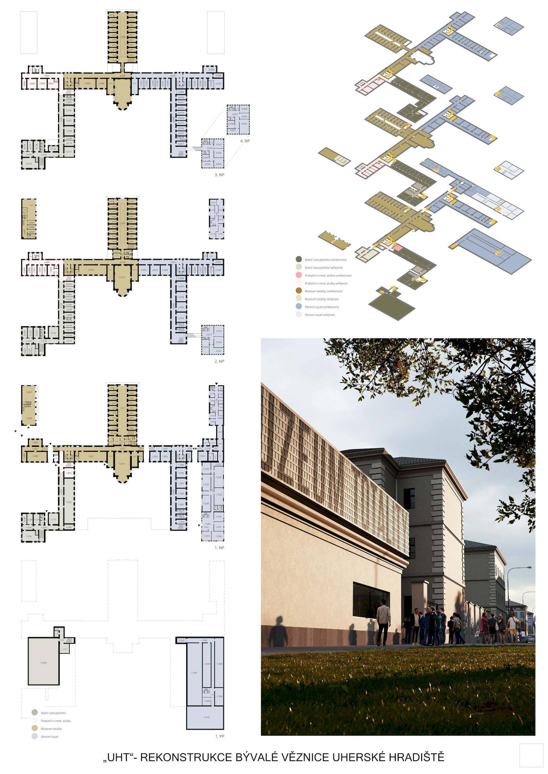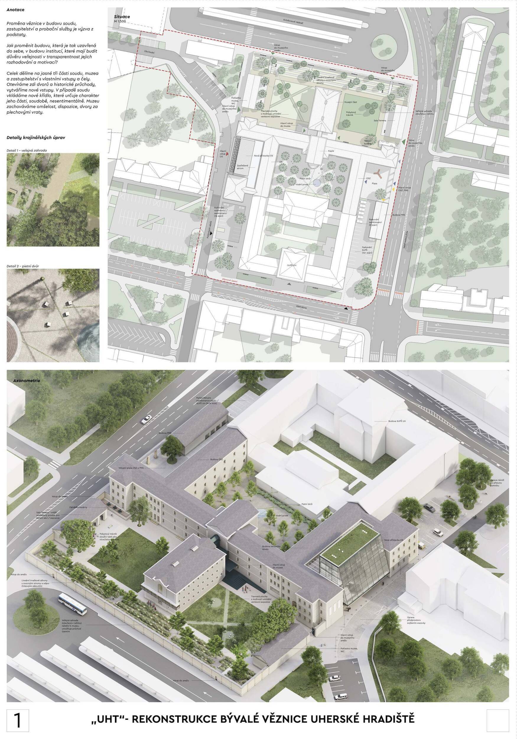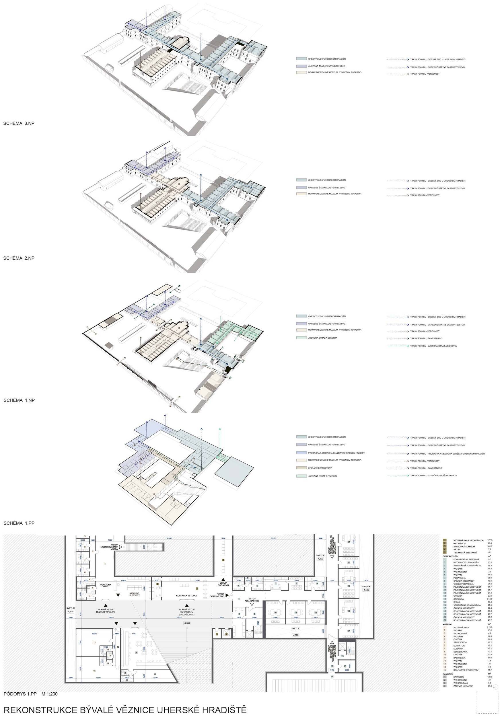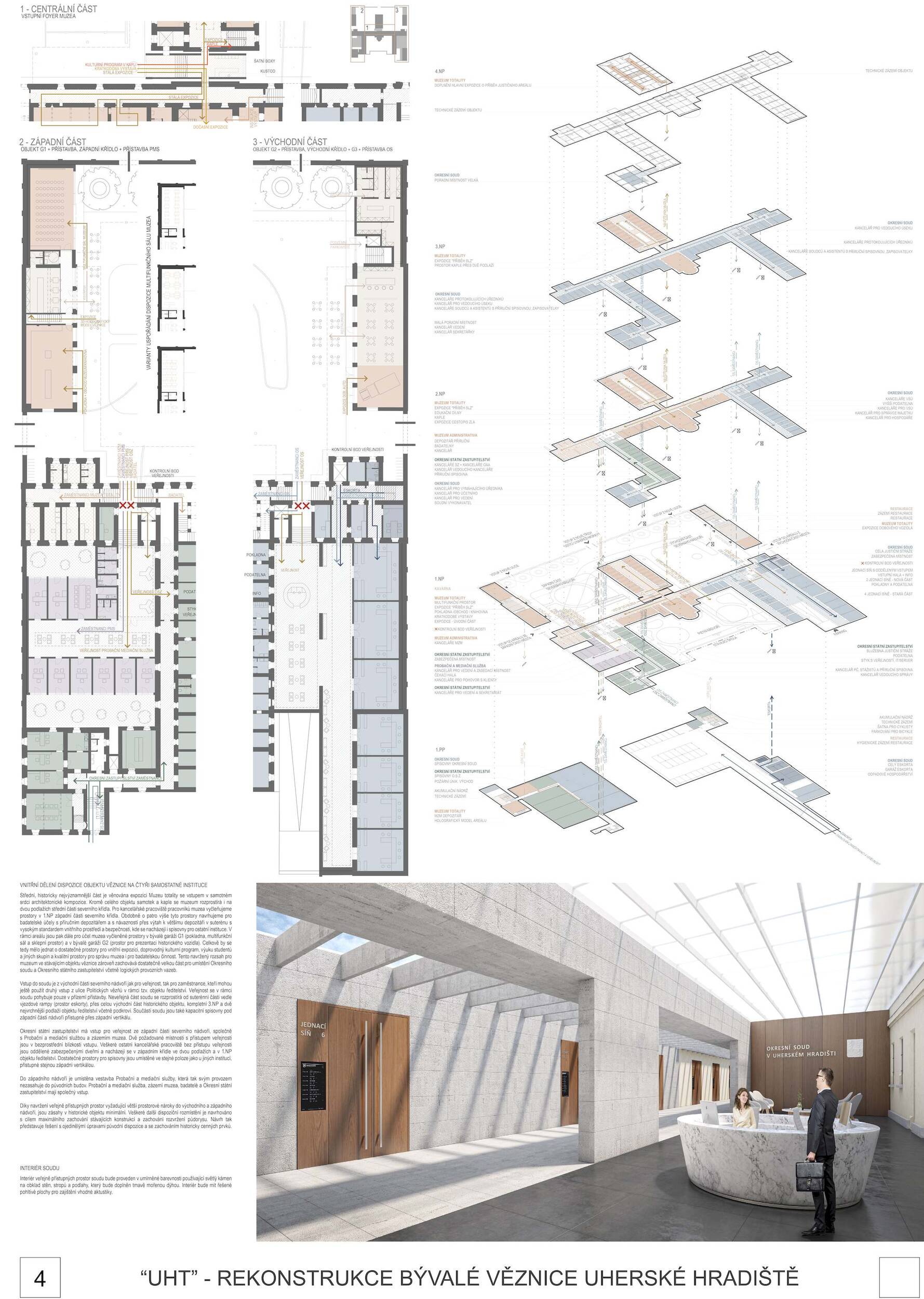 Originální koncept pojetí perimetru ohradní stěny přinášející nové funkce městu a dávající silnější potenciál využití dvora. Idea prostupující muzeální osy považuje porota za jednu z nejsilnějších stránek tohoto návrhu. Citlivými dostavbami autoři nechávají vyniknout památkově chráněný monumentální objekt a jemnými gesty ho zlidšťují. Porota považuje za nedostatečné řešené vstupní prostory veřejných částí i některé provozní vazby v objektu. Návrh přináší autorské řešení venkovních částí expozic, které by vhodně sloužily pro účely muzea. Historickou budovu nechává vyznít a chová se k ní citlivě, i když by formou přidávání veřejných funkcí mohl dosáhnout důstojnějších vstupních ploch. Návrh patří k ekonomicky přiměřeným návrhům. Kapacitně podhodnocené dispoziční a provozní řešení instituce soudnictví. Koncept jednacích síní umístěných nad sebou a s nedostatečným předsálím a problematickou bezbariérovou dostupností se zdál být nejslabším místem návrhu. Také společná spisovna pro soud i státní zastupitelství je od soudní budovy provozně oddělena, což bylo budoucím uživatelem vyhodnoceno jako problematické řešení. Veřejně přístupné prostory interiéru, svou snahou vměstnat se do stávajících rozměrů objektu, neodpovídají současným standardům a řada jednacích místností neodpovídá svou velikostí zadání stavebního programu. Není prezentována podoba dostavby spisovny do ul. Velehradské.