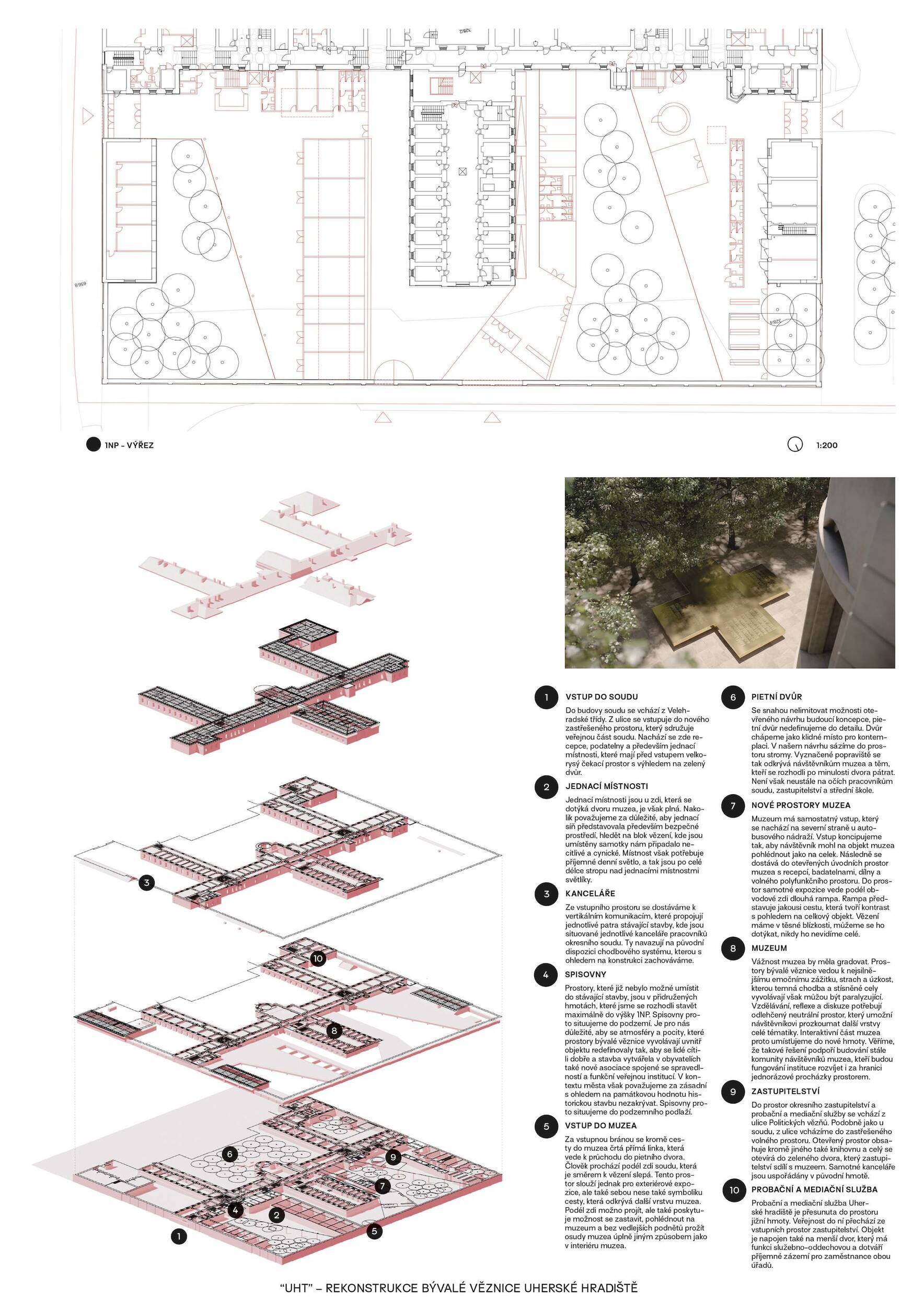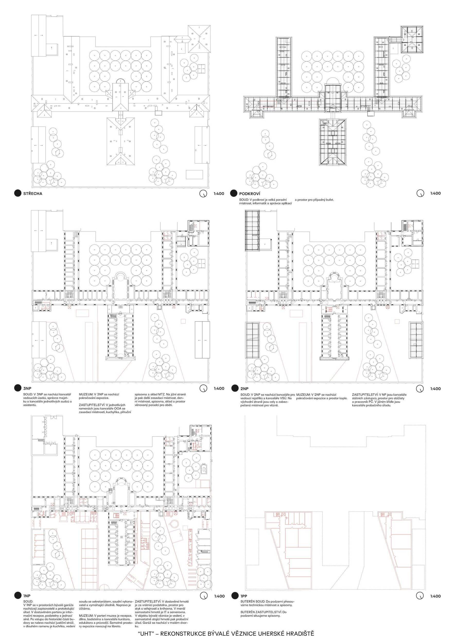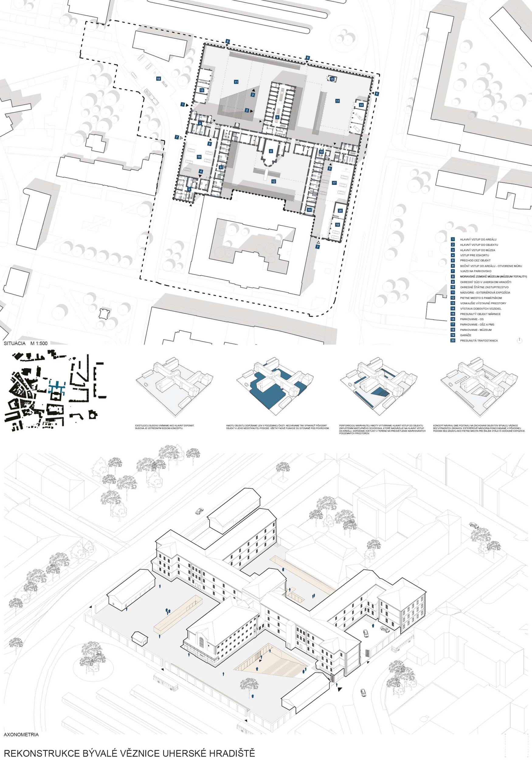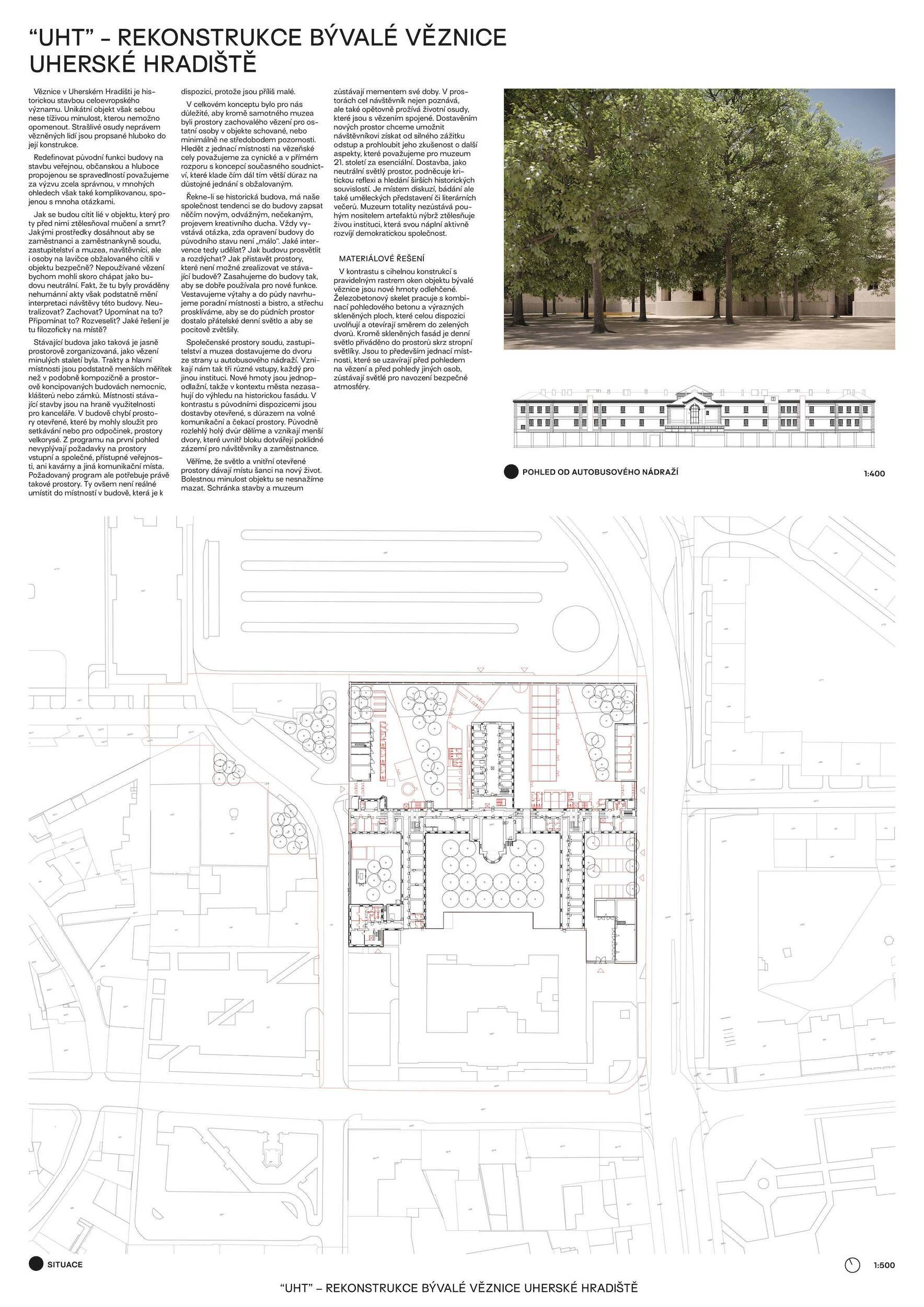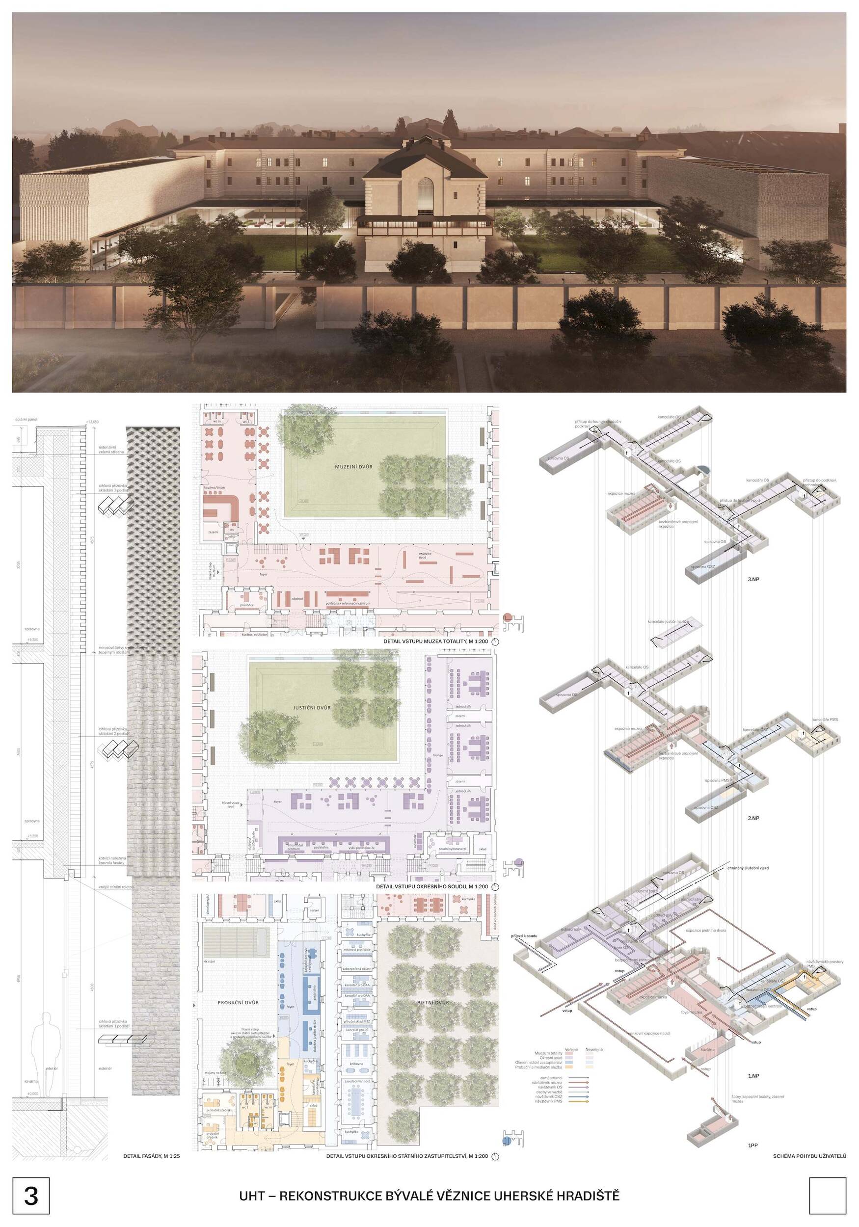 Originální koncept pojetí perimetru ohradní stěny přinášející nové funkce městu a dávající silnější potenciál využití dvora. Idea prostupující muzeální osy považuje porota za jednu z nejsilnějších stránek tohoto návrhu. Citlivými dostavbami autoři nechávají vyniknout památkově chráněný monumentální objekt a jemnými gesty ho zlidšťují. Porota považuje za nedostatečné řešené vstupní prostory veřejných částí i některé provozní vazby v objektu. Návrh přináší autorské řešení venkovních částí expozic, které by vhodně sloužily pro účely muzea. Historickou budovu nechává vyznít a chová se k ní citlivě, i když by formou přidávání veřejných funkcí mohl dosáhnout důstojnějších vstupních ploch. Návrh patří k ekonomicky přiměřeným návrhům. Kapacitně podhodnocené dispoziční a provozní řešení instituce soudnictví. Koncept jednacích síní umístěných nad sebou a s nedostatečným předsálím a problematickou bezbariérovou dostupností se zdál být nejslabším místem návrhu. Také společná spisovna pro soud i státní zastupitelství je od soudní budovy provozně oddělena, což bylo budoucím uživatelem vyhodnoceno jako problematické řešení. Veřejně přístupné prostory interiéru, svou snahou vměstnat se do stávajících rozměrů objektu, neodpovídají současným standardům a řada jednacích místností neodpovídá svou velikostí zadání stavebního programu. Není prezentována podoba dostavby spisovny do ul. Velehradské.