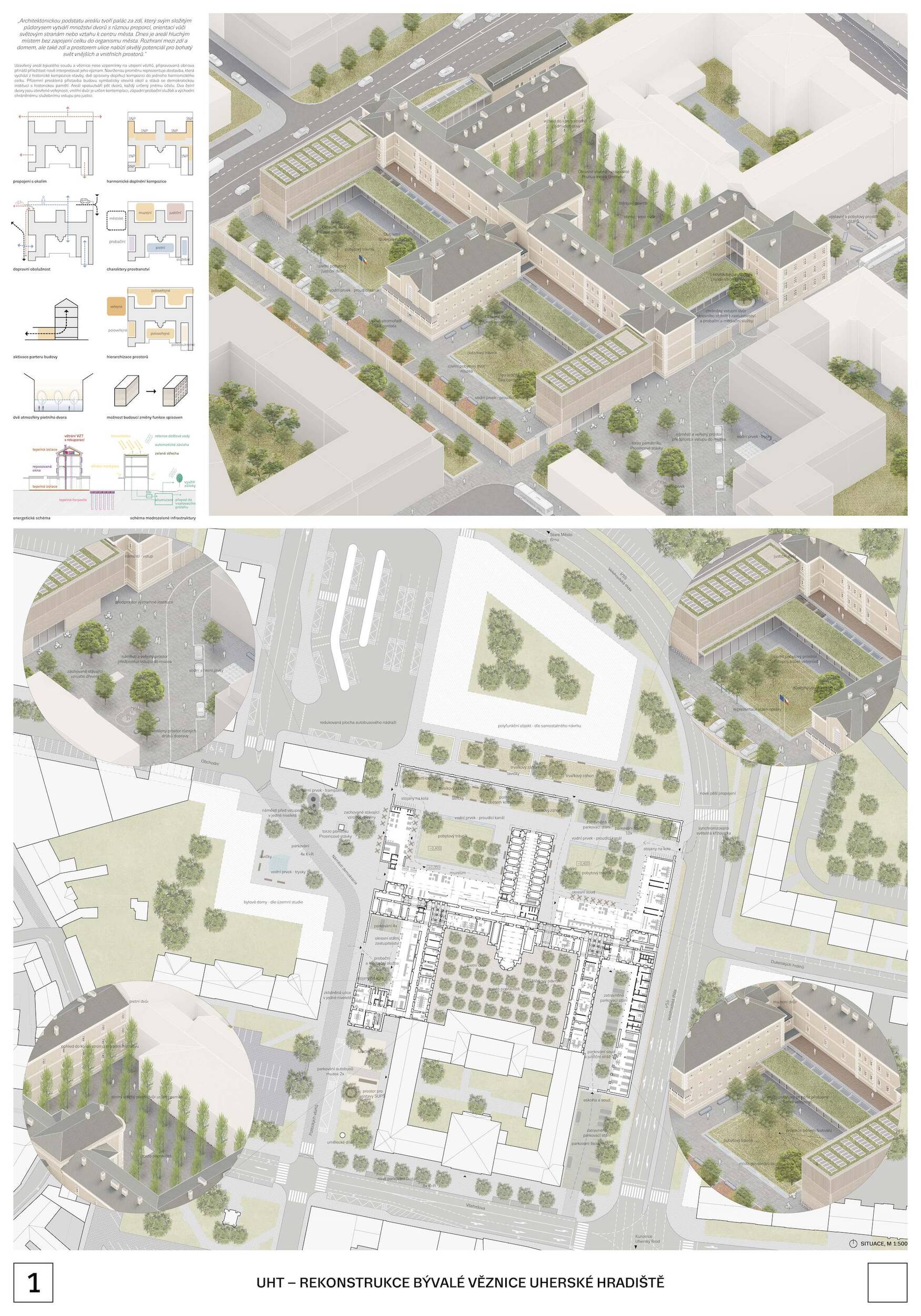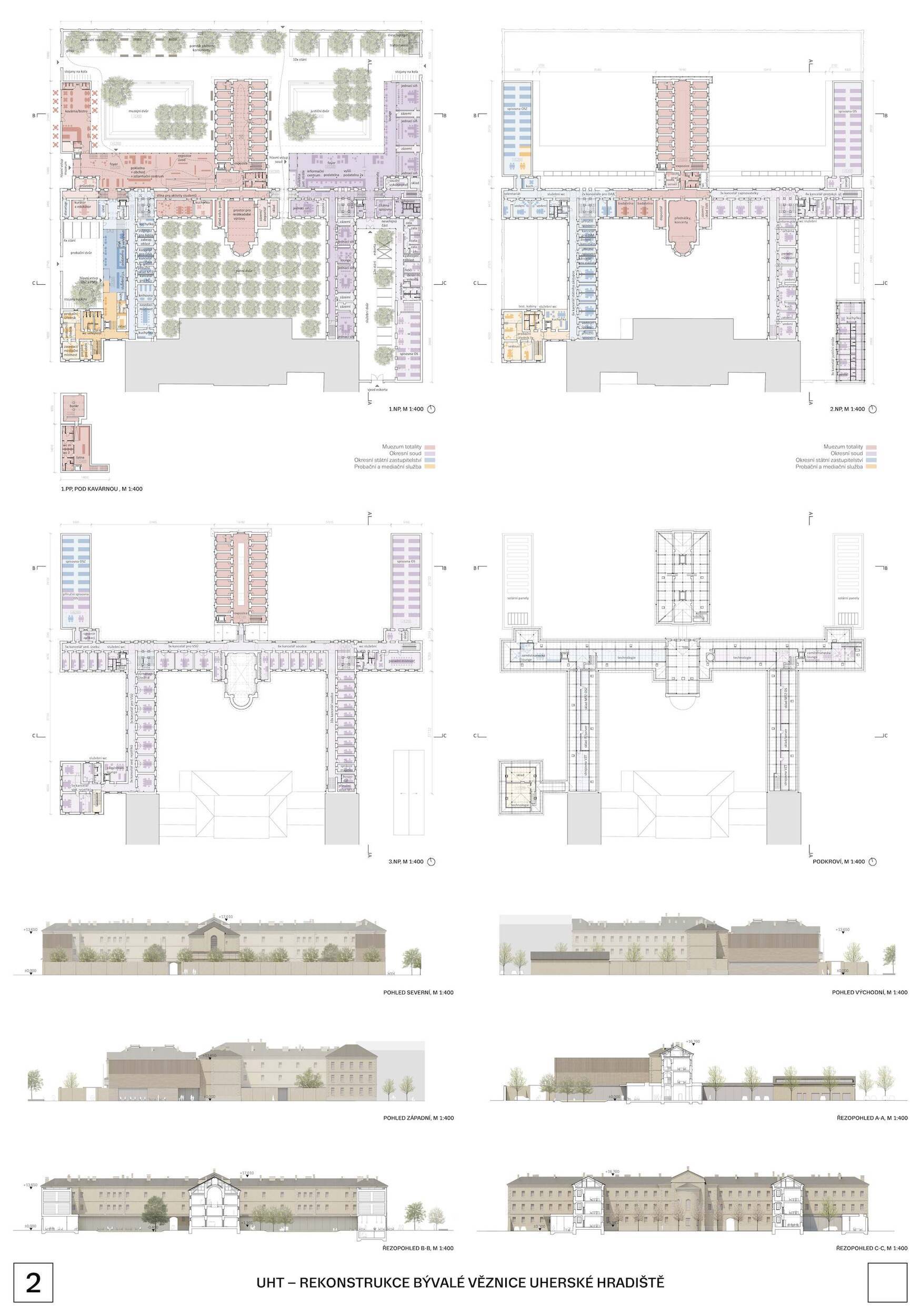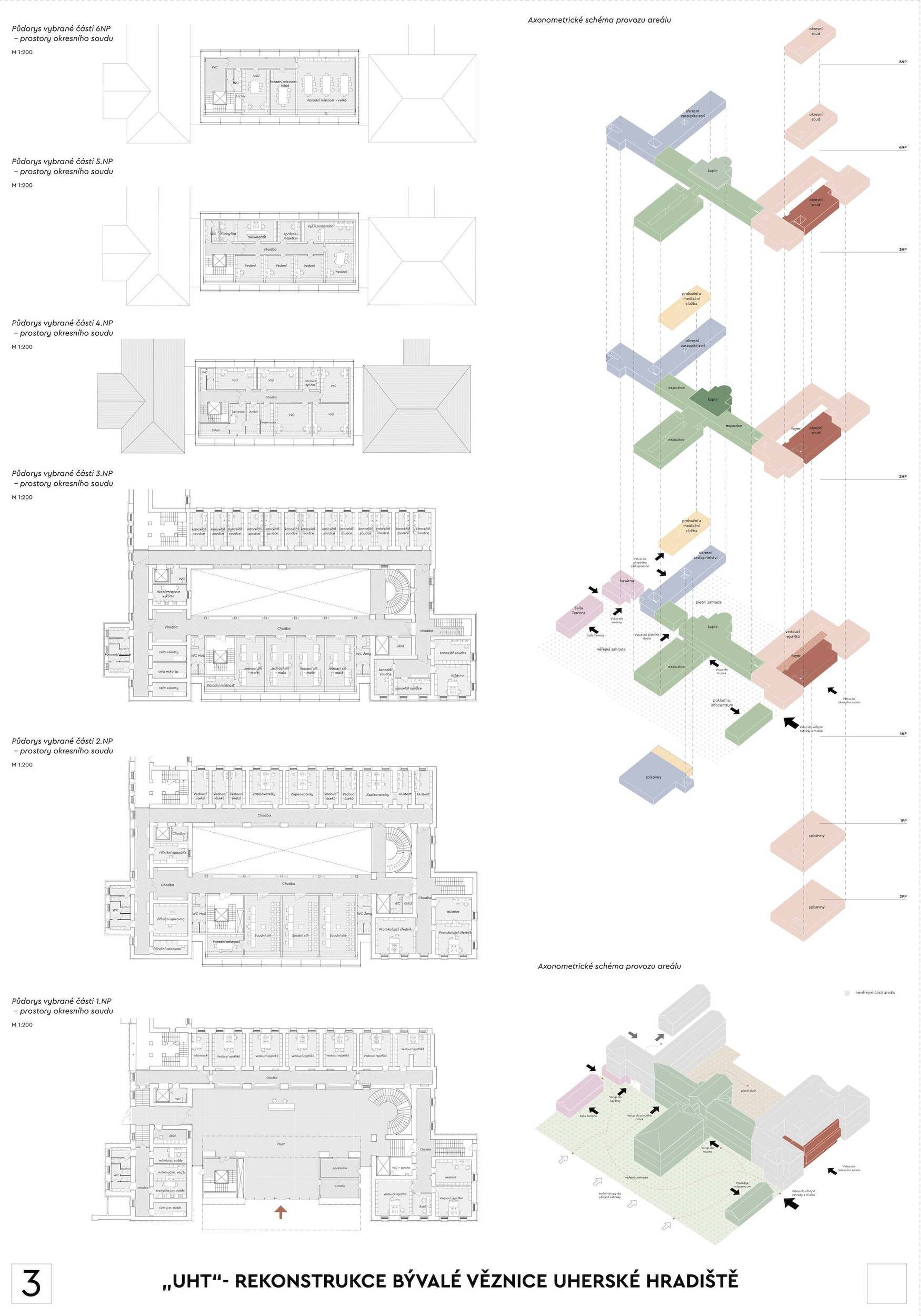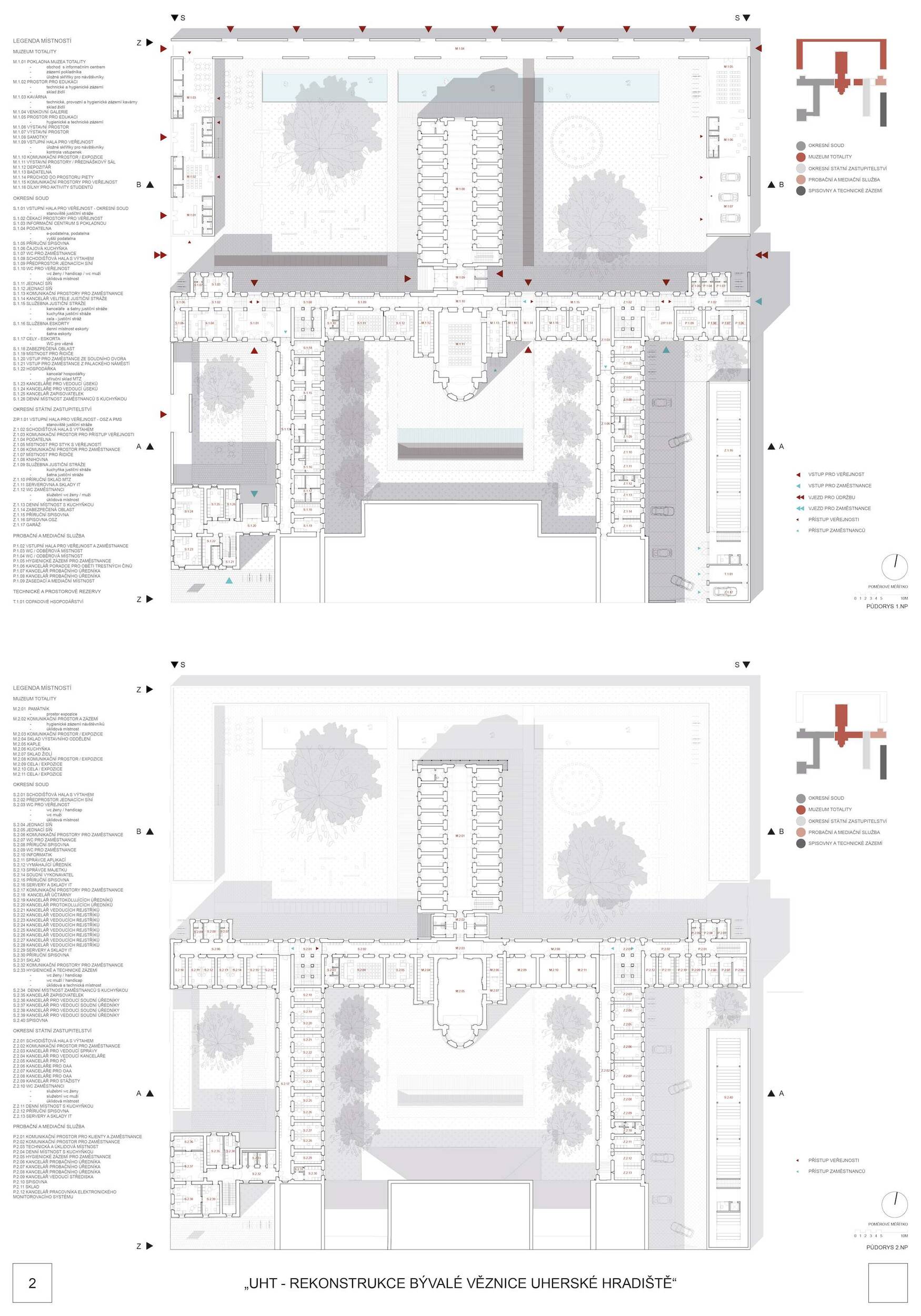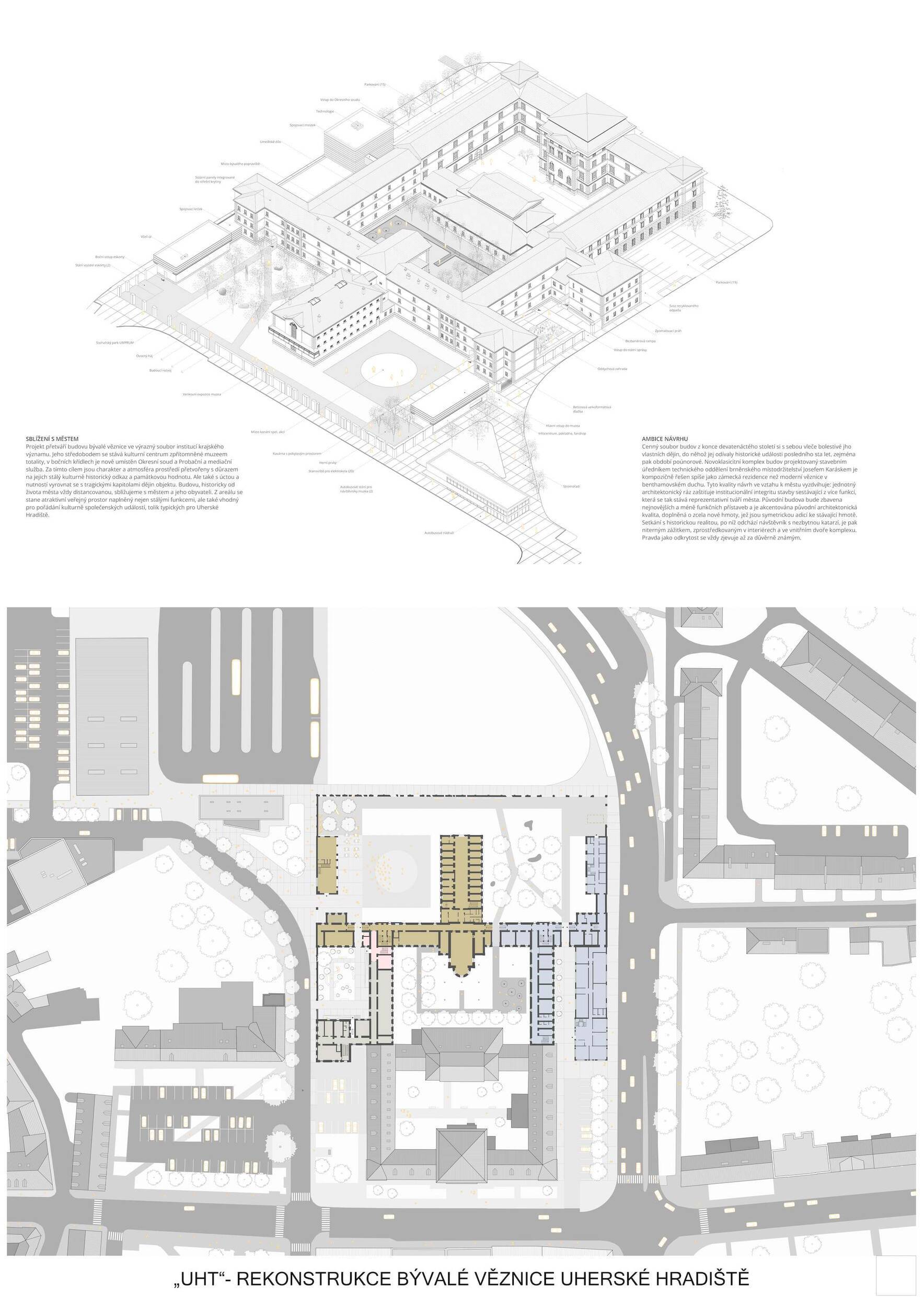 Originální koncept pojetí perimetru ohradní stěny přinášející nové funkce městu a dávající silnější potenciál využití dvora. Idea prostupující muzeální osy považuje porota za jednu z nejsilnějších stránek tohoto návrhu. Citlivými dostavbami autoři nechávají vyniknout památkově chráněný monumentální objekt a jemnými gesty ho zlidšťují. Porota považuje za nedostatečné řešené vstupní prostory veřejných částí i některé provozní vazby v objektu. Návrh přináší autorské řešení venkovních částí expozic, které by vhodně sloužily pro účely muzea. Historickou budovu nechává vyznít a chová se k ní citlivě, i když by formou přidávání veřejných funkcí mohl dosáhnout důstojnějších vstupních ploch. Návrh patří k ekonomicky přiměřeným návrhům. Kapacitně podhodnocené dispoziční a provozní řešení instituce soudnictví. Koncept jednacích síní umístěných nad sebou a s nedostatečným předsálím a problematickou bezbariérovou dostupností se zdál být nejslabším místem návrhu. Také společná spisovna pro soud i státní zastupitelství je od soudní budovy provozně oddělena, což bylo budoucím uživatelem vyhodnoceno jako problematické řešení. Veřejně přístupné prostory interiéru, svou snahou vměstnat se do stávajících rozměrů objektu, neodpovídají současným standardům a řada jednacích místností neodpovídá svou velikostí zadání stavebního programu. Není prezentována podoba dostavby spisovny do ul. Velehradské.