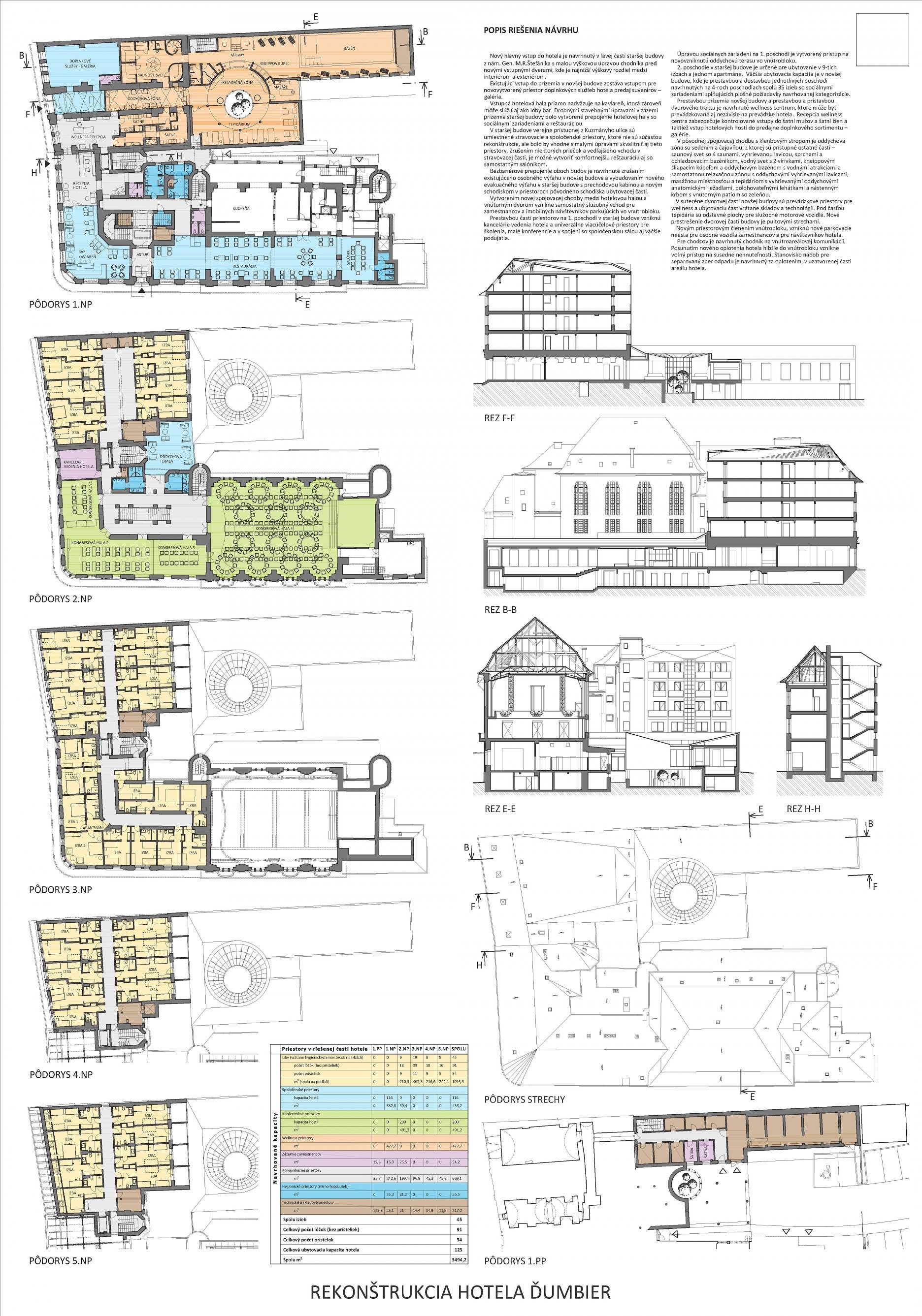 Návrh pracuje s novotvarom v dvorovej časti, no jeho forma je príliš kontrastná - hmota navrhnutá vo dvore je priveľká, vlastne prekryla v tejto časti secesnú fasádu, ktorú je práve naopak vhodné ukázať. Priestory wellness sa javia ako predimenzované (priestor bazénu čiastočne cez dve podlažia). Naproti tomu je navrhnutých priveľa prenajímateľných priestorov, o ktoré obstarávateľ nemá záujem. Riešenie dvorovej fasády NKP je vo veľkom kontraste s hmotou objektu a tiež s uličnou fasádou NKP.