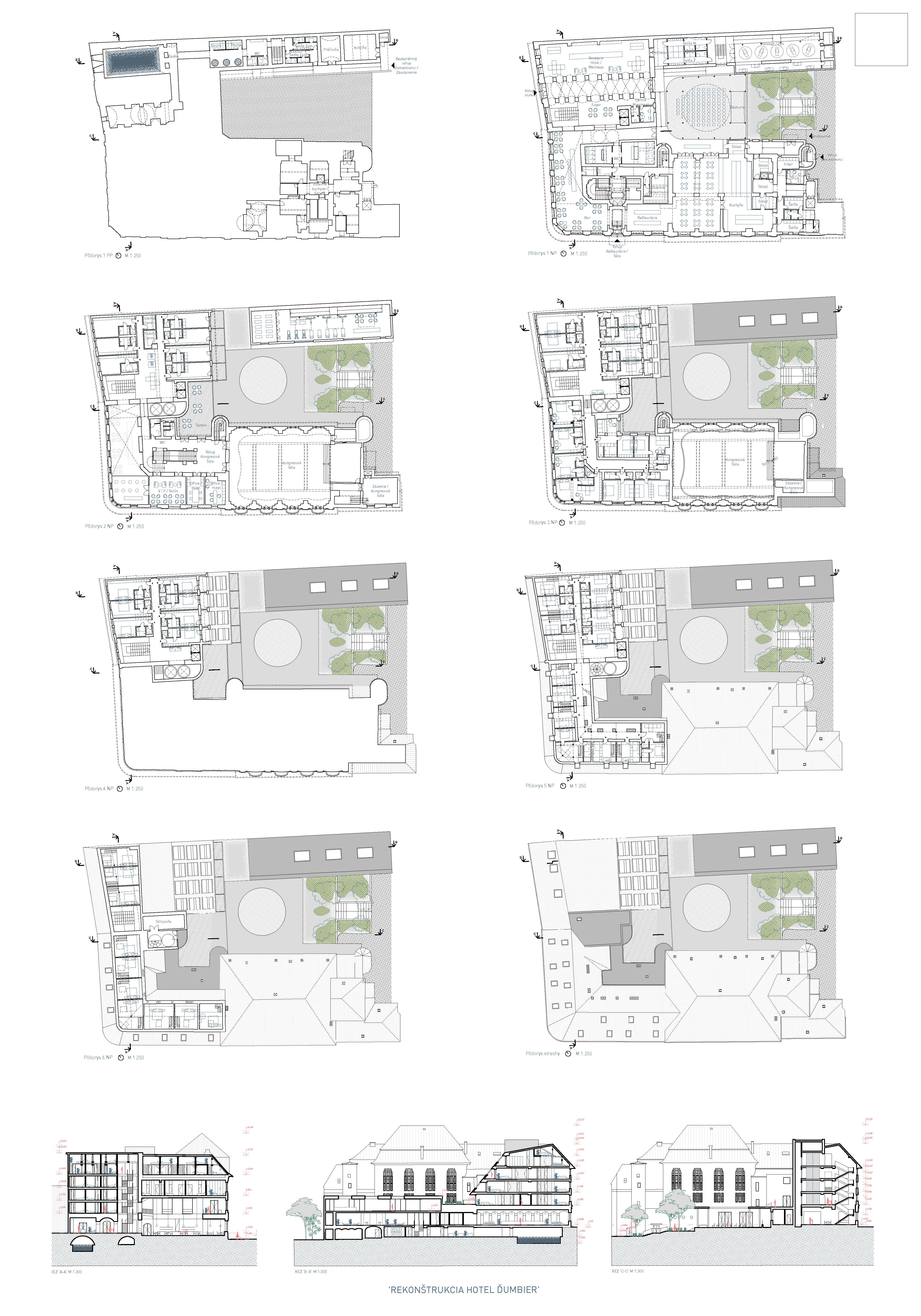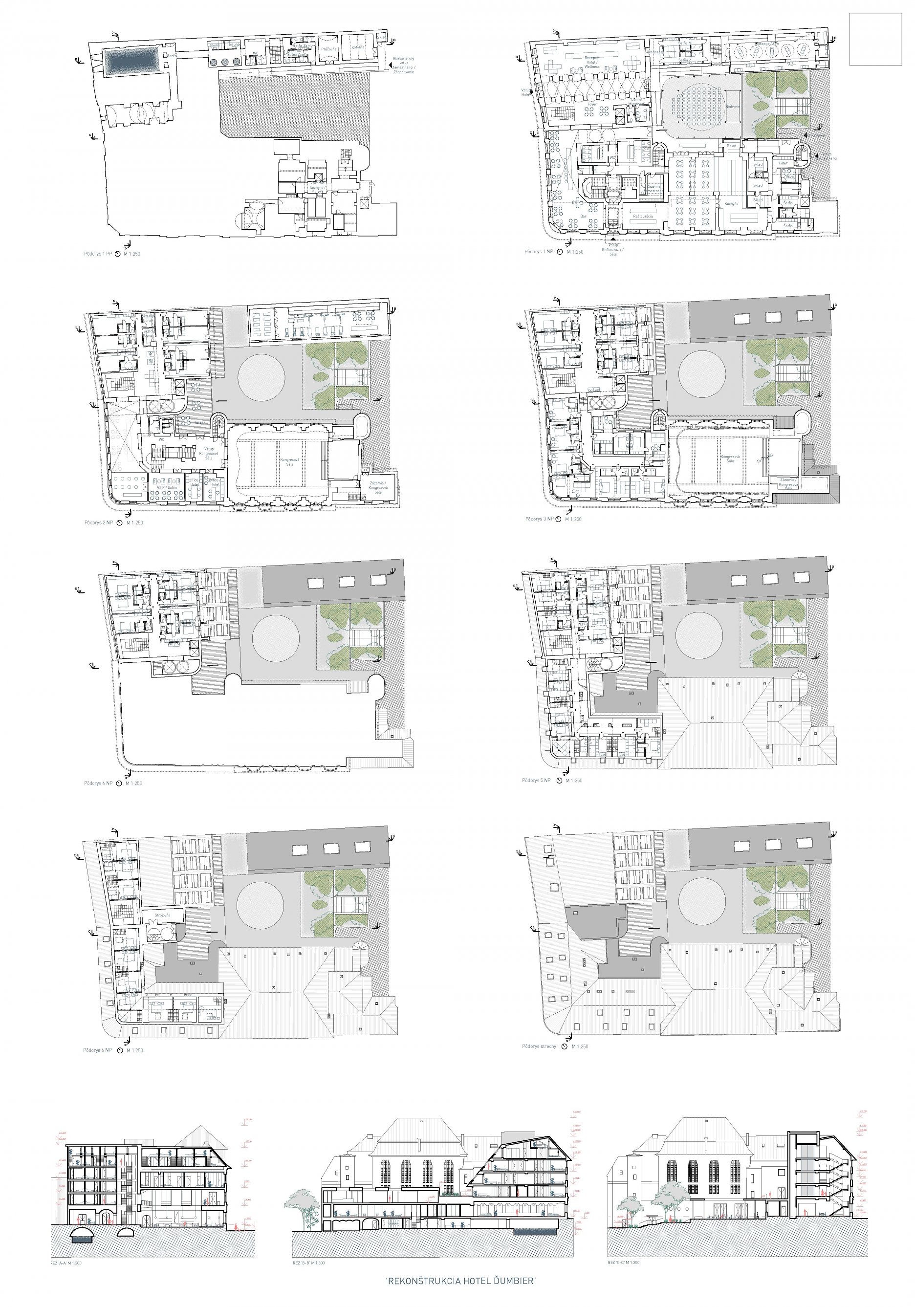 Návrh vyniká kultivovaným a striedmym architektonickým výrazom. Autori vyčistili nádvorie od nevhodných prístavieb a nahradili pôvodnú nesúrodú stupňovitú južnú fasádu západného hotelového traktu pravidelne rastrovanou zvislou fasádou. Porota pozitívne hodnotí vytvorenie príjemného nádvoria v úrovni terénu ako aj strešnej terasy nad západným krídlom. Celkové hmotové riešenie má merítko a tým nepôsobí v prostredí dvorného traktu invazívne, ale zjednocujúco. Prevádzka wellness je vhodne umiestnená do dvorového krídla bývalého meštianskeho domu a svojím minimalistickým výrazom vhodne dopĺňa historicky hodnotnú dvornú fasádu secesného krídla hotela. Oddelenie traktu wellness potenciálne umožňuje jeho použitie aj prípadným pasantným návštevníkom. Pozitívom návrhu je obnovenie pôvodného vstupu do kaviarne z nárožia budovy a prehľadné dispozičné riešenie, ktoré úpravou umiestnenia kuchyne veľmi prívetivo spája priestory kaviarne / reštaurácie s nádvorím. Porota a zástupcovia mesta kladne hodnotili aj vytvorenie prepojenia námestia a nábrežia cez poloverejný priestor hotela. Návrh je zároveň ekonomicky primerane efektívny (dobré dispozičné riešenie vo vzťahu k zabratej úžitkovej ploche). Porota jednohlasne označila tento návrh ako víťazný.
