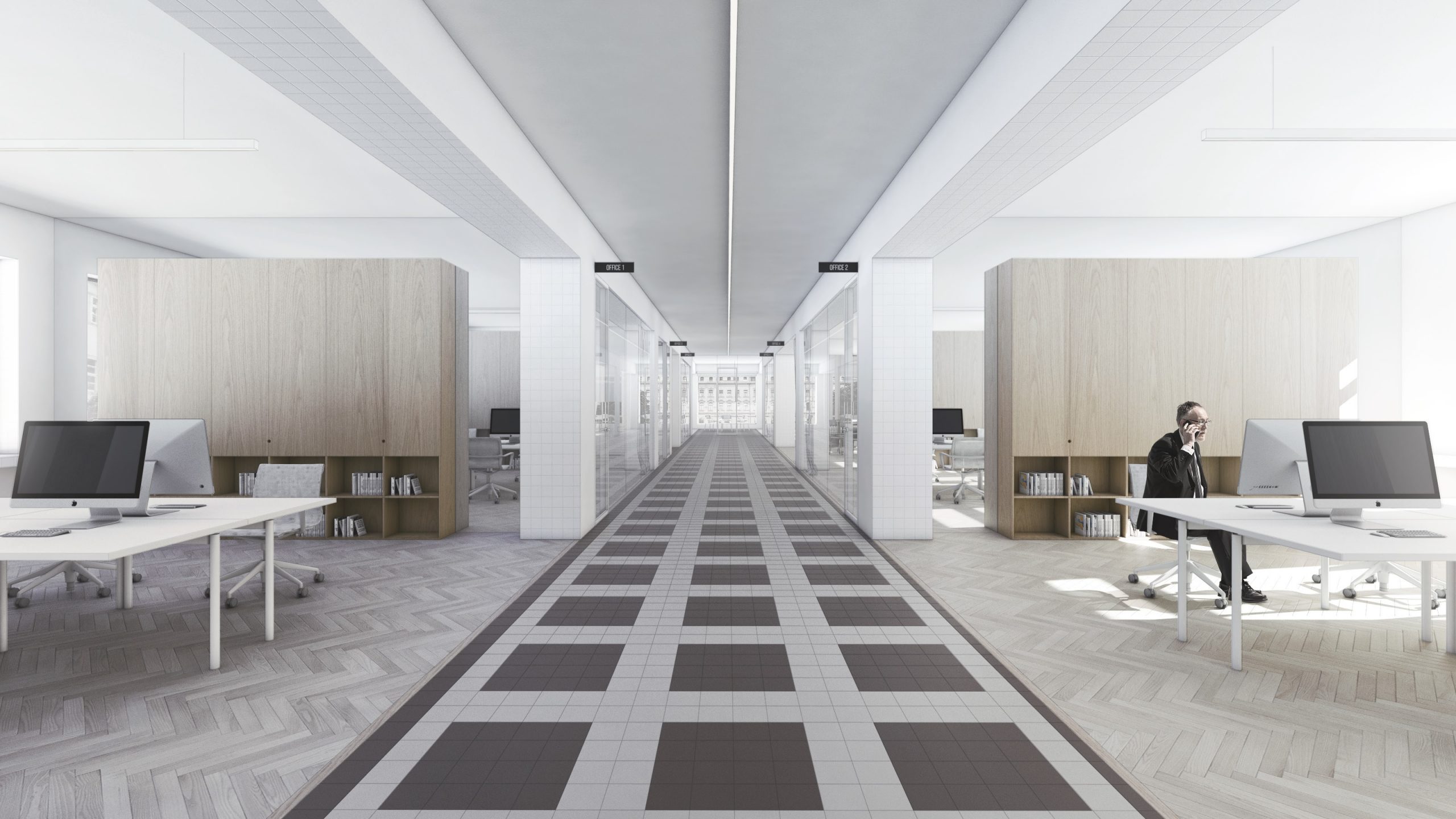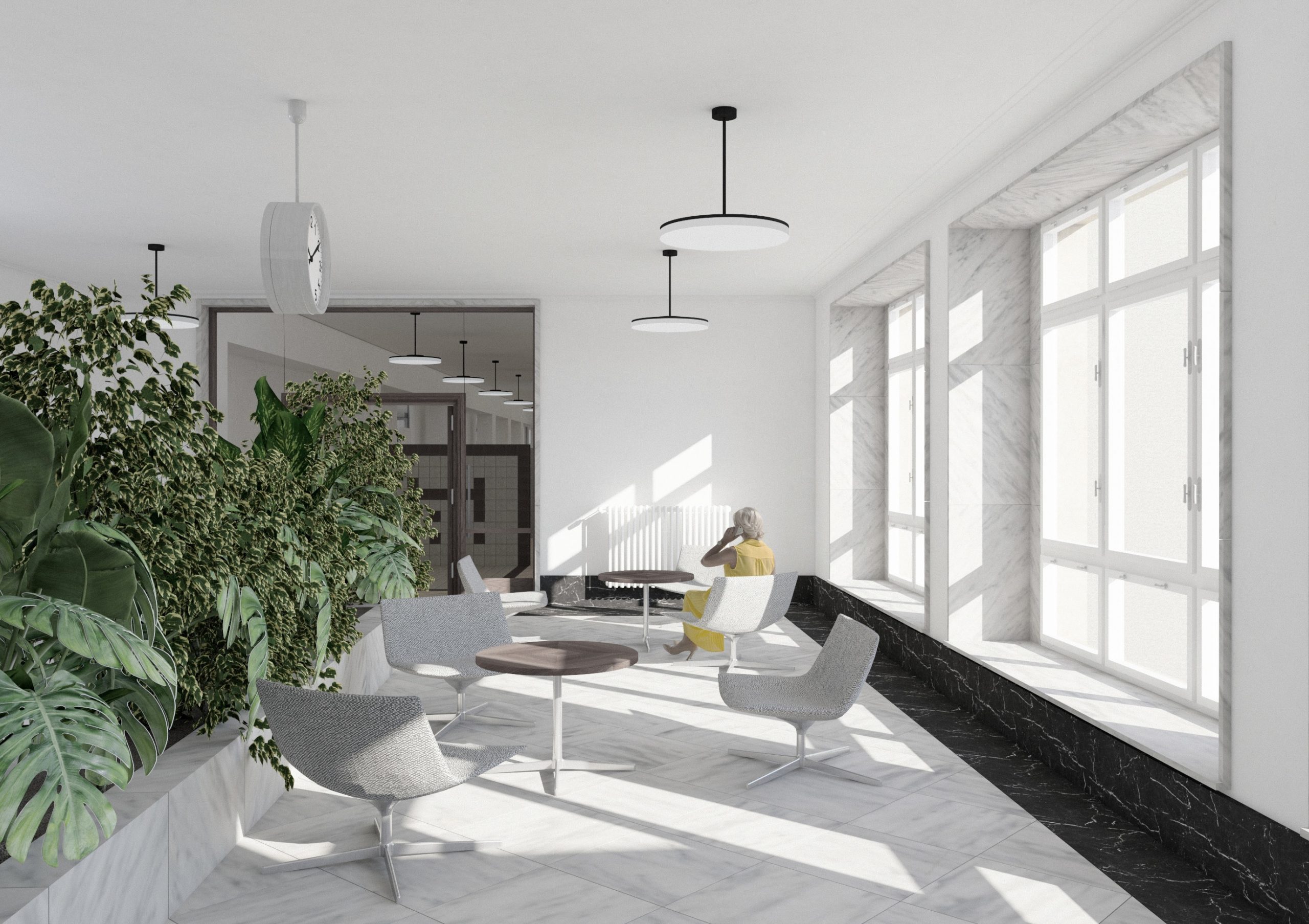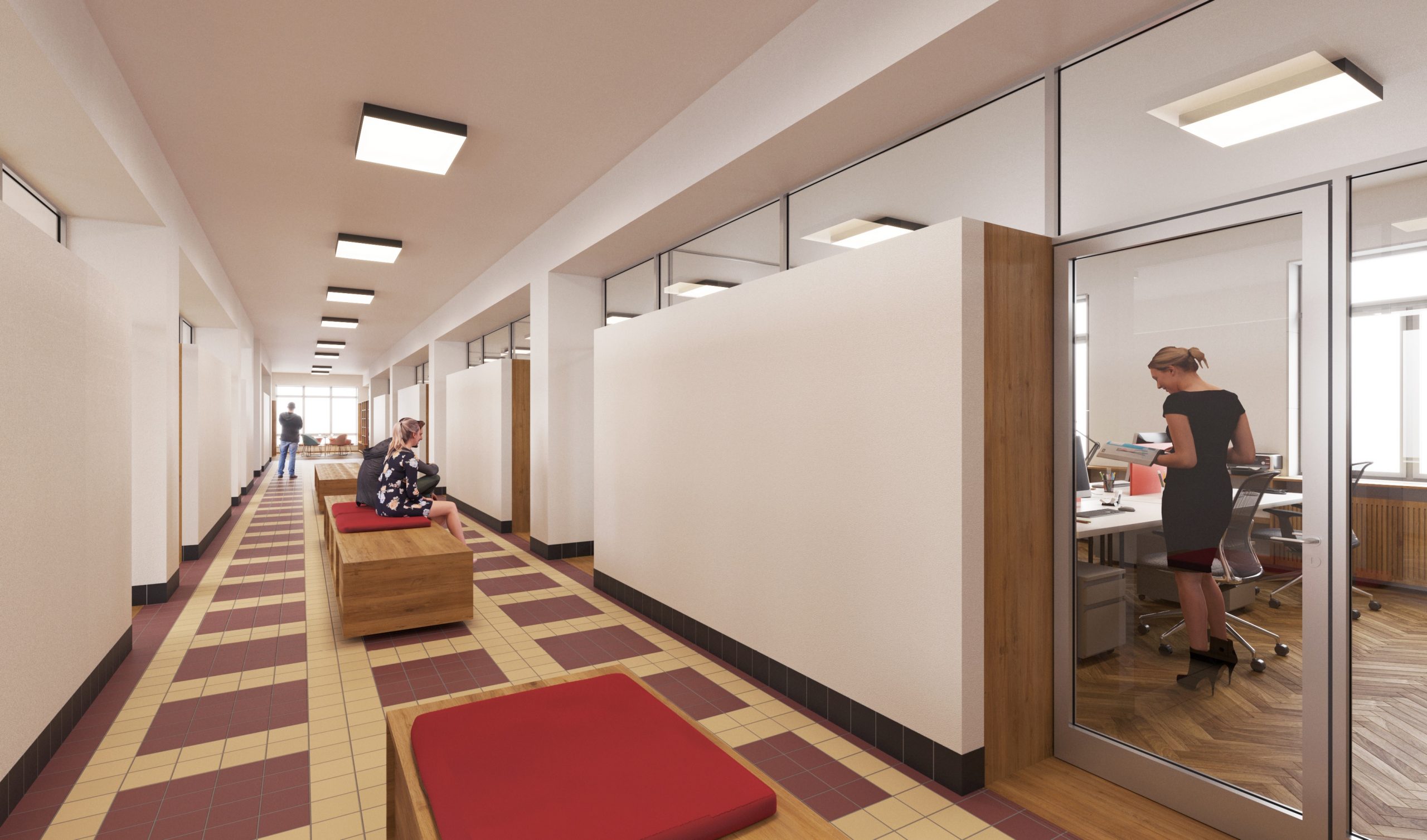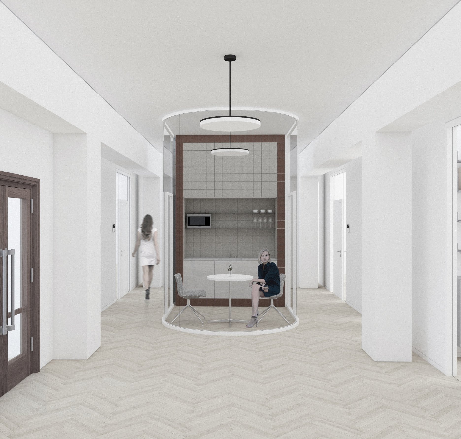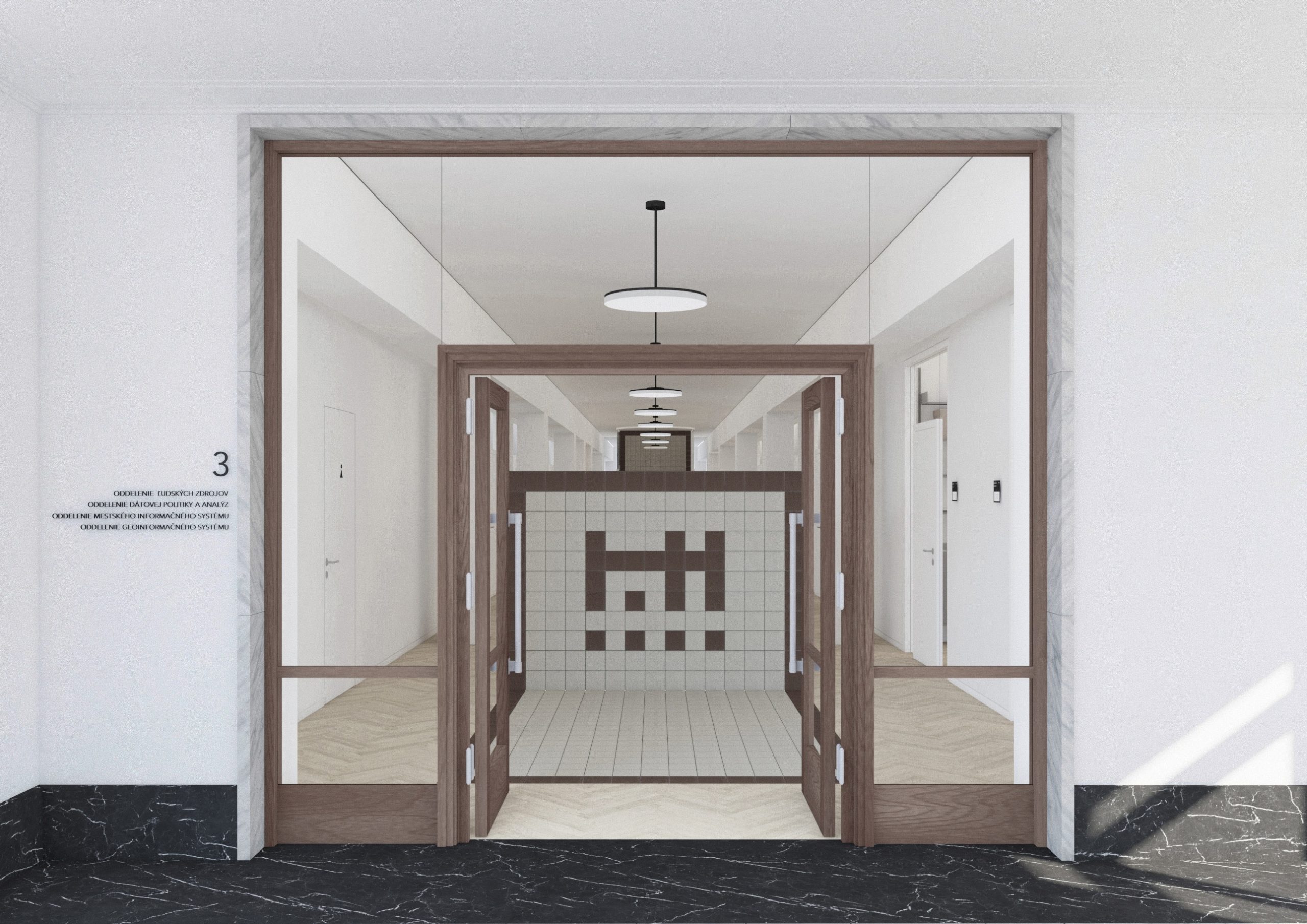 Návrh pracuje s budovou architekta E. Belluša ponechaním pôvodného členenia objektu a konštrukcií. Návrh zaujal variabilitou riešenia kancelársky priestorov, ktoré ponúkajú rôzne mierky pracovných priestorov pre zamestnancov. Autori ponúkli aj škálu doplnkových priestorov pre rôznu formu a obsah práce. Porota vníma ako pozitívum situovanie časti kuchynky v zadnej časti traktu. Riešenie spoločnej chodby doplnením o sedenie, ktoré je zároveň aj úložným priestorom, sa javí ako málo využiteľný priestor a otázne je jeho reálne využitie pri bežnom chode magistrátu. Koridor chodby preto pôsobí skôr ako čakáreň a zdá sa, akoby potenciál tohto priestoru nebol využitý napr. na konzultácie alebo neformálne stretávanie sa zamestnancov. Riešenie priestoru pri recepcii pôsobí nevhodne v nadväznosti na jednotlivé funkcie priestoru. Autori neadekvátne riešili bezbariérovosť priestorov prostredníctvom robustných rámp. Rovnako je na zváženie farebnosť a výber typových prvkov mobiliáru doplňujúcich spoločné priestory- spojovaciu časť medzi traktami.