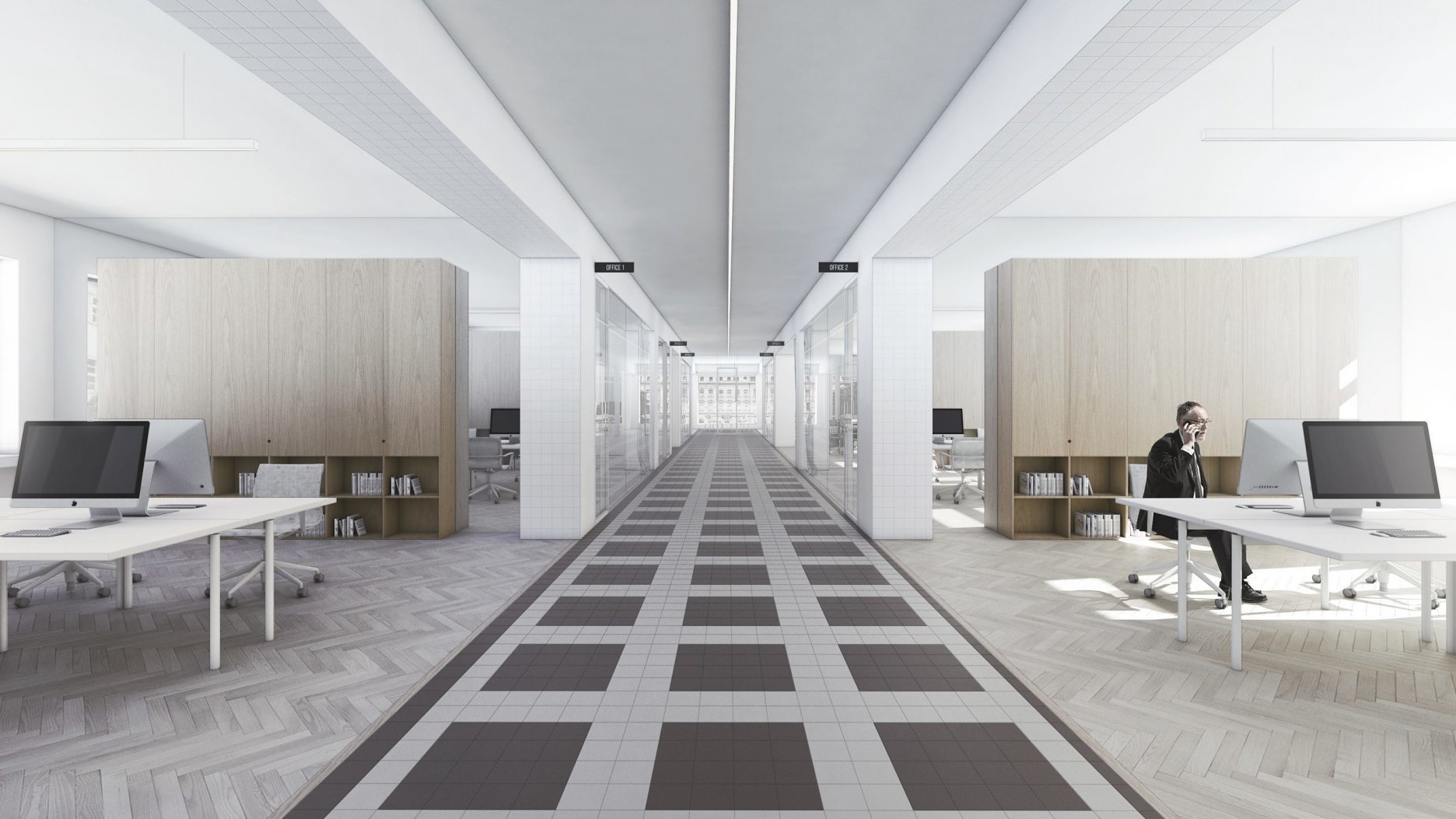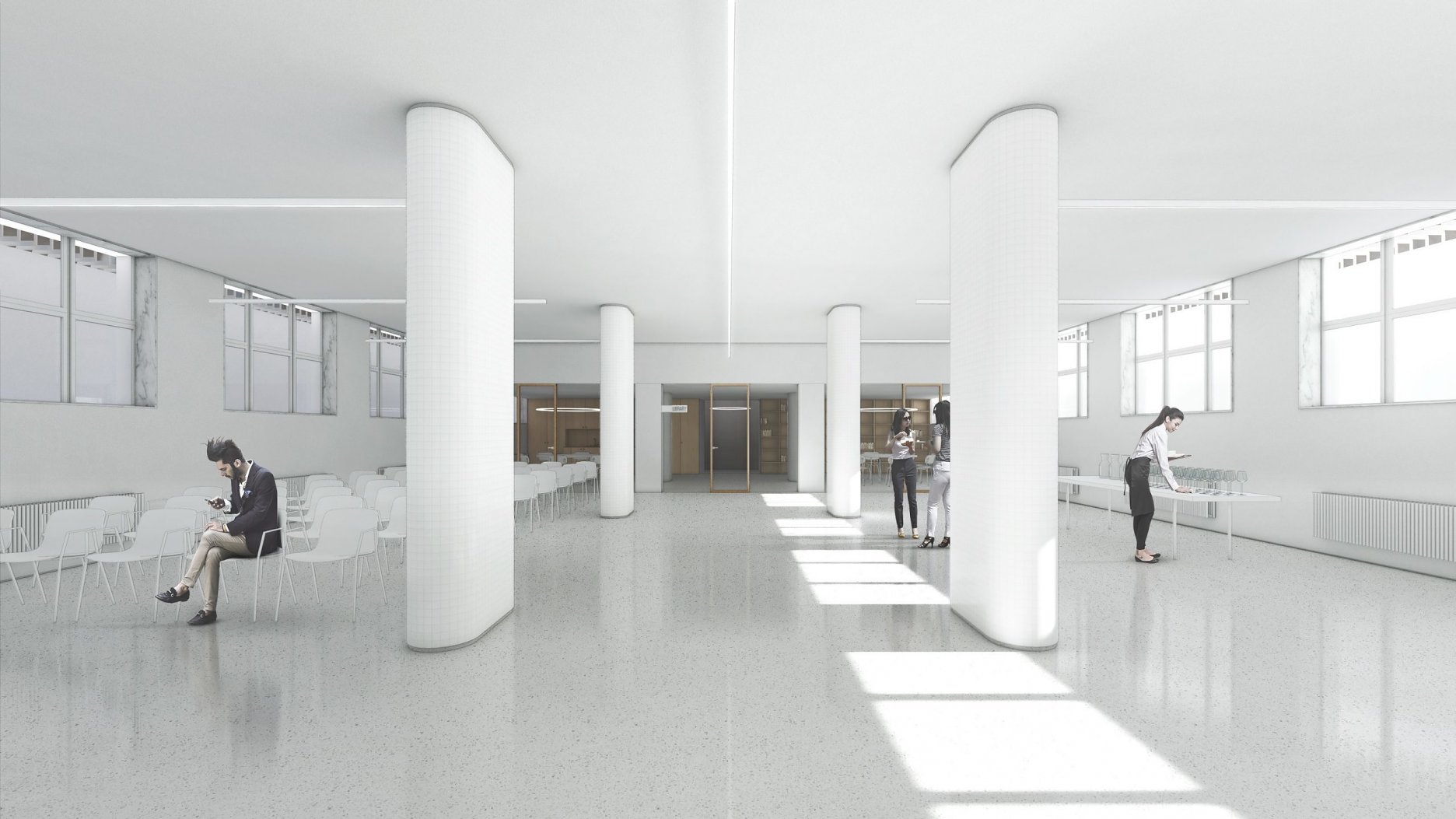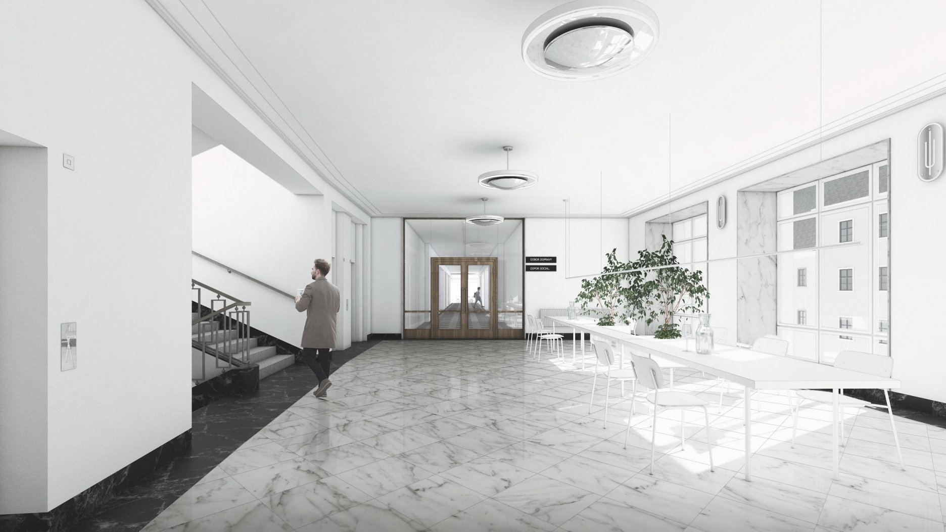 Na prvý pohľad je architektonické stvárnenie budovy citlivé a reprezentatívne, čo je kritérium, ktoré má prislúchať budove Magistrátu hlavného mesta. Spojovacia hala na vyšších podlažiach je využitá na konzultačné účely. Ich situovanie v tejto časti ponúka novú zasadaciu zónu, (určenú aj na stretávanie sa s obyvateľmi). Otázna je úmernosť zásahu, použitie materiálov, použitie nových objemov, sterilita a riešenie akustiky. Administratívne krídla na 3. a 4. NP ponechávajú v pôvodnom členení, kancelárie otvárajú do chodby, niektoré sú oddelené presklenou zástenou, doplnenou len striedmym závesom, ktorý v prípade koncentrovanej práce dokáže utlmiť rušivé vplyvy z chodby. Kancelárie sa dajú ale flexibilne prispôsobiť meniacej sa kapacitnej situácii magistrátu , avšak toto riešenie sa zdá technicky a finančne náročnejšie. Architekti síce zaujímavo pracujú s priestormi kancelárií avšak koridor chodby ostáva nevyužitý, čo vníma porota ako negatívum. V návrhu absentujú rôzne druhy zasadacích miestností, priestor na telefonovanie a priestor na samostatnú sústrednú prácu. Porota však oceňuje citlivú a dômyselnú prácu s priestorom strešnej časti, ktorá by mohla slúžiť ako ďalší exteriérový priestor určený zamestnancom. Autori veľmi dobre pracovali s dvorom a dávajú Z návrhu je cítiť snahu o “vyčistenie a upratanie” vstupného priestoru od vizuálnych nánosov, unifikujú informačný systém. Porota oceňuje zakomponovanie pôvodnej materiality v podlahách a vyjadrenie sa k bezbariérovosti objektu na všetkých podlažiach. Otázna je však robustnosť a citlivosť tohto riešenia. Porota napriek tomu diskutovala o potenciáli poskytnutých riešení. Zásadným sa jej zdal ale sterilný prístup autorov. Otázna je samotná realizovateľnosť riešenia vzhľadom na finančnú náročnosť návrhu.