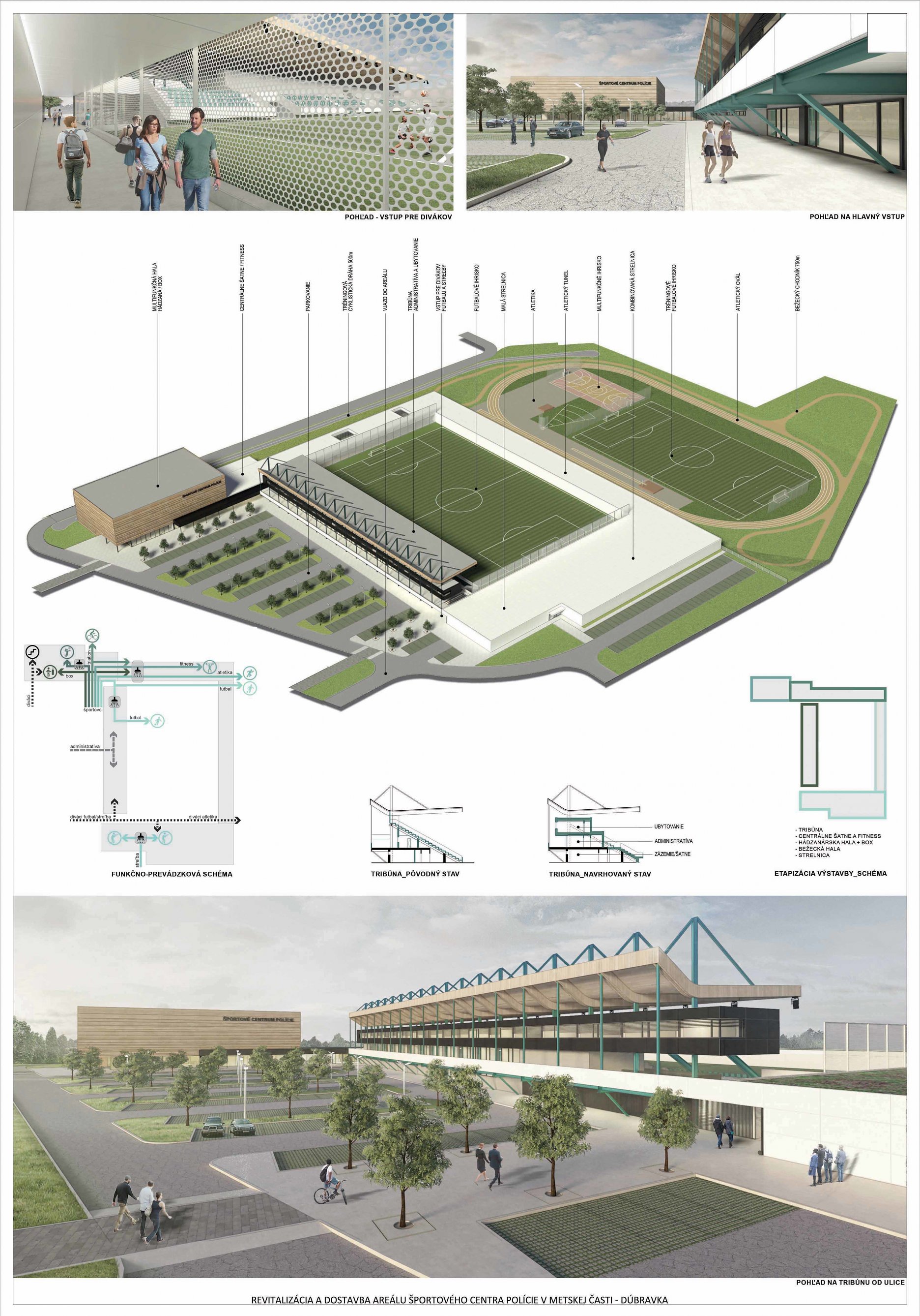 Športové centrum polície vyhlásilo koncom mája kombinovanú architektonicko-urbanistickú, anonymnú, jednokolovú súťaž návrhov. Predmetom súťaže návrhov bolo spracovanie architektonického návrhu/štúdie za účelom revitalizácie a dostavby areálu Športového centra polície. Autorom pôvodného návrhu objektu športového centra je Vladimír Bahna, ktorý bol súčasne členom poroty súťaže.