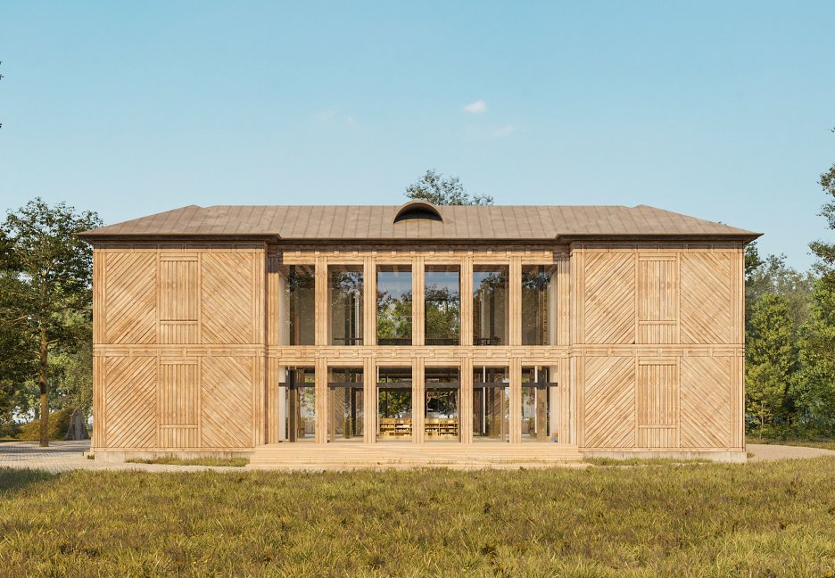 "The building of Omuli School is stunning. Because of its simplicity, elegance, and spacious park around it. We loved pictures from its construction, where the structure material – wood, is making the fantastic texture. Since the building is now seriously damaged, we decided to recover that beauty and add a new structure inside, so the façade of the School can stay as an old/new envelope.