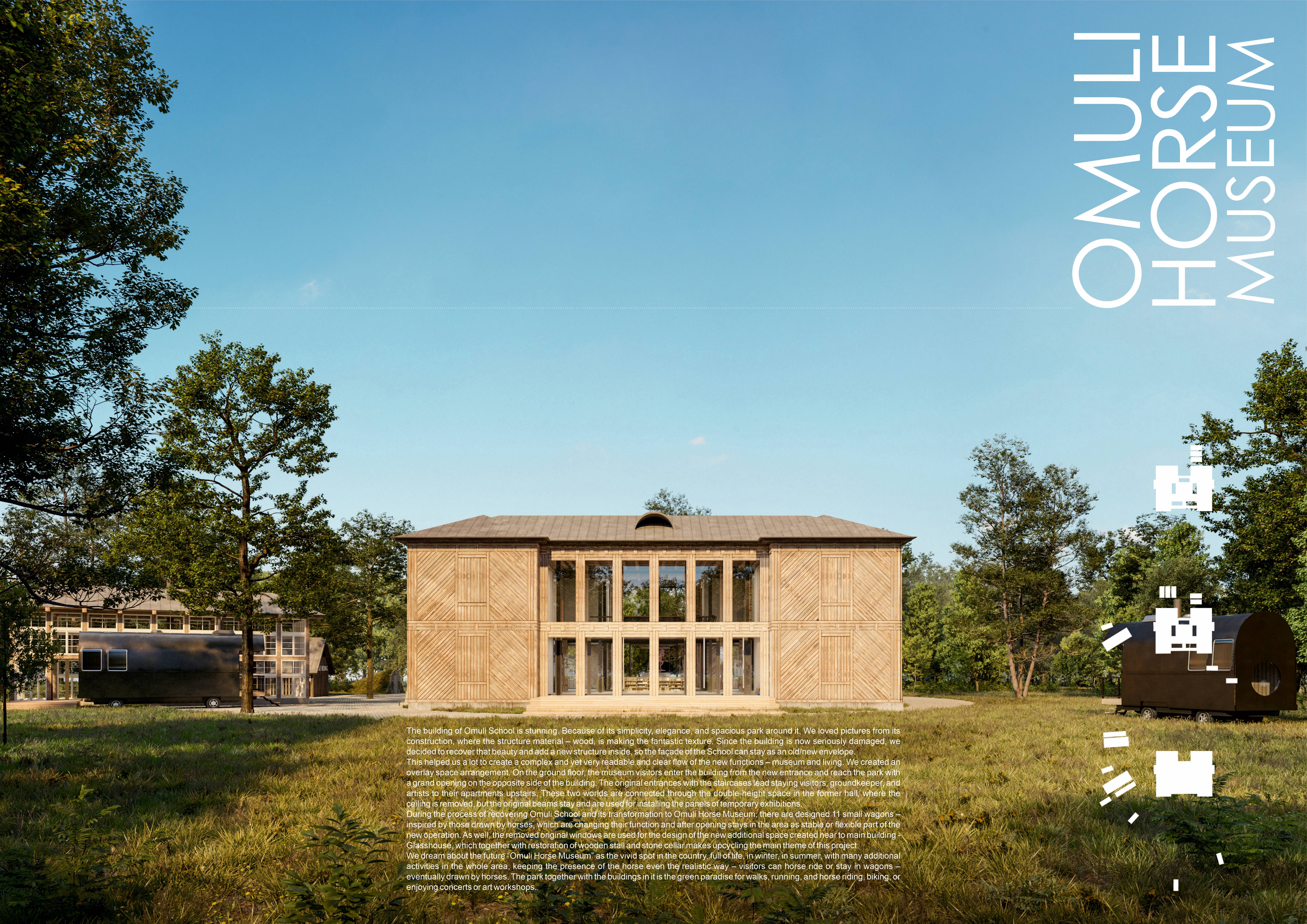 Medzinárodnú súťaž The Omuli Museum of the Horse competition pripravilo a zastrešilo zoskupenie Bee Breeders, ktoré patrí na medzinárodnej úrovni medzi najväčších profesionálnych organizátorov architektonických súťaží. Cieľom vyhlasovateľa bolo nájsť najvhodnejšie riešenie konverzie historickej budovy školy z roku 1936 na múzeum. Nová expozícia má návštevníkom priblížiť históriu miestnych plemien koní a prírodný kontext rezervácie Vidzeme. Chránené krajinná oblasť na severe Litvy spadá do zoznamu UNESCO. Primárnu funkciu múzea má doplniť ubytovanie a ateliér. Budúca rekonštrukcia počíta s realizáciou vo viacerých etapách. Zaujímavosťou je, že predaj budovy bývalej školy v Omuli sa nedávno zapísal ako prvá realitná transakcia prostredníctvom blockchainu v severnej Európe. "Súťaž bola pre nás nesmierne osviežujúci pracovný proces, vynikajúce bolo zadanie aj organizátori," dopĺňa Eliška Turanská.
