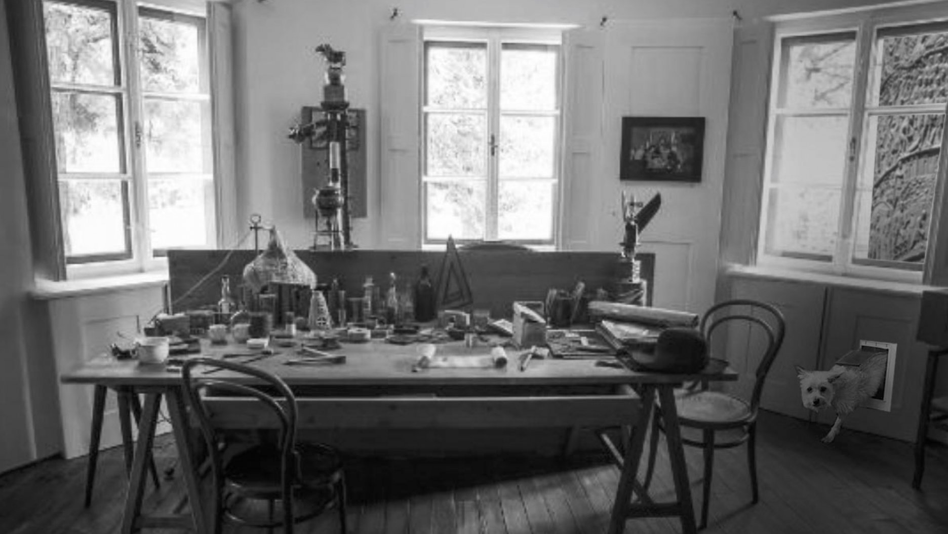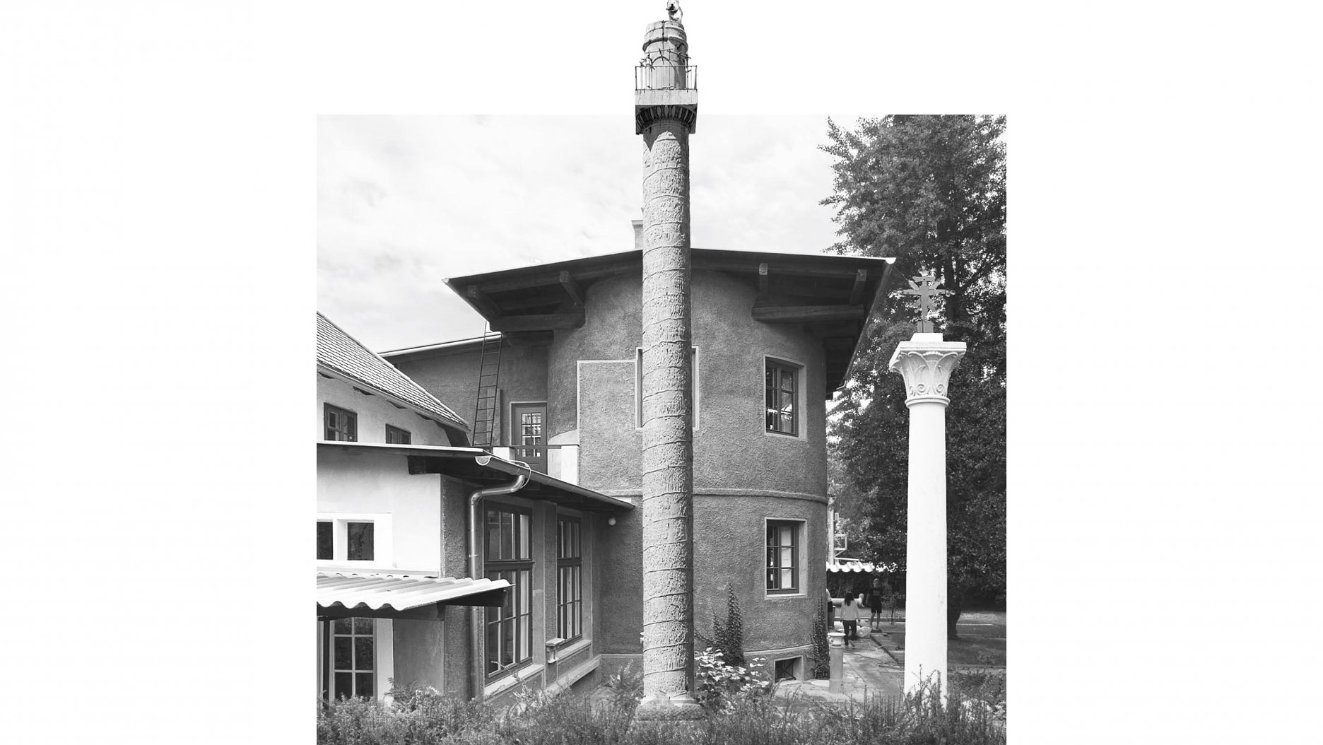 Návrh je na pomezí domu a vzpomínky, boudy a sloupu. Propojen s Plečnikovým domem, zahradou a celkovou situací. Pán a pes mají dům vedle sebe.