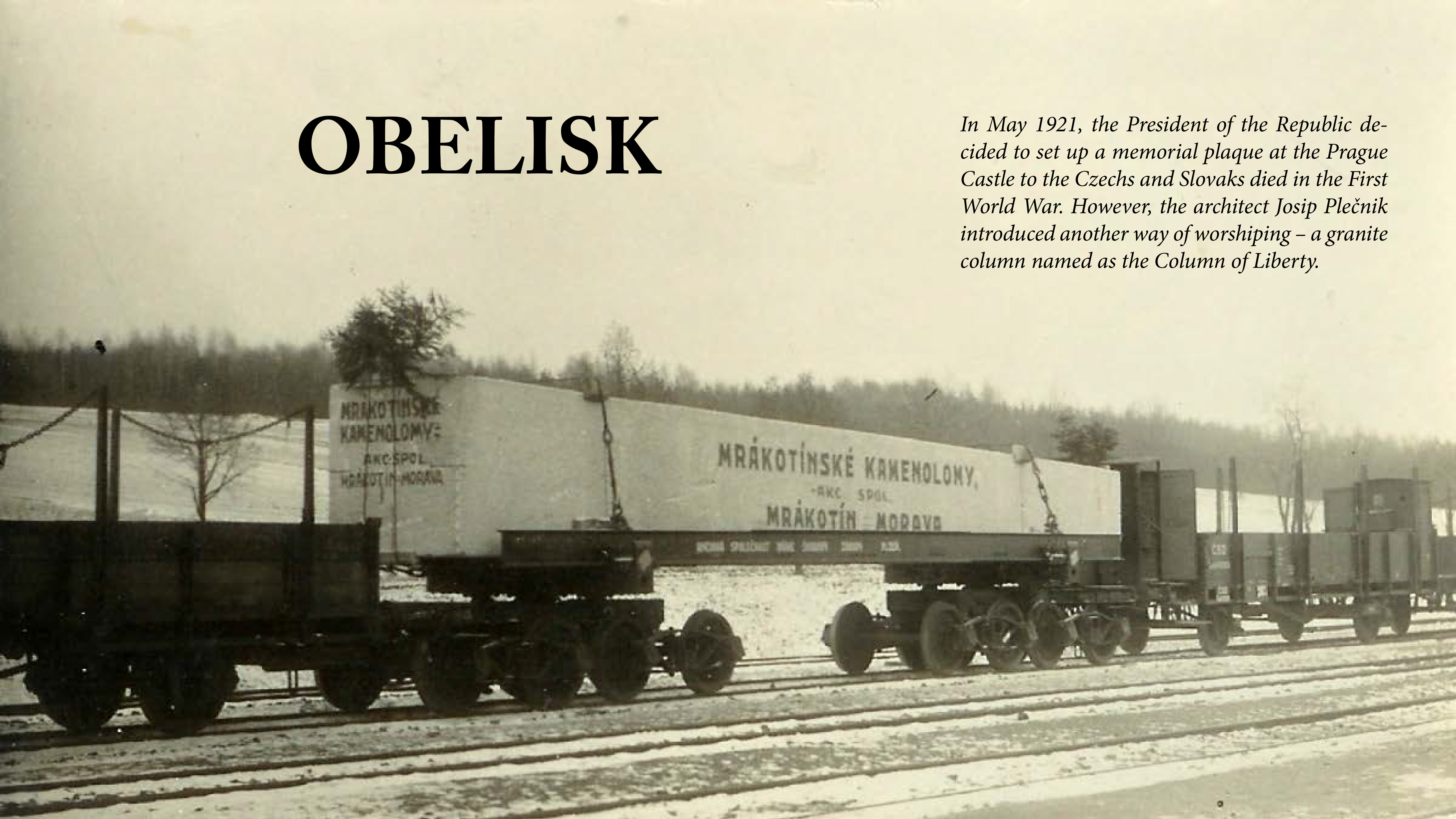 V květnu 1921 se prezident republiky rozhodl na Pražském Hradě zasadit pamětní desku Čechům a Slovákům padlým během první světové války, nicméně architekt Josip Plečnik Masarykovi představil jiný způsob uctění památky a to monolitový žulový sloup - Sloup svobody.