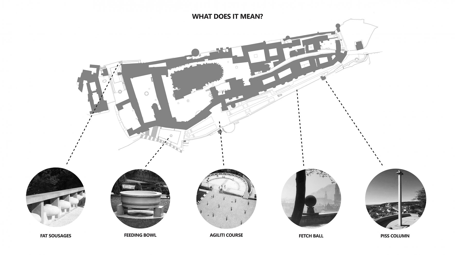 Rozhodli jsme se definovat univerzální činnosti, které jsou pro každého psa důležité, které rád dělá a kterými si každodenně prochází. Šest těchto příhod tvoří architekturu Sivkova mausolea. Určujícím navigačním nástrojem je smyslové vnímání psa. Řazení jednotlivých prostor mausolea je akcentováno osamělým sloupem, jenž je nabídnut k pravidelnému označkování a který vede psa dál.