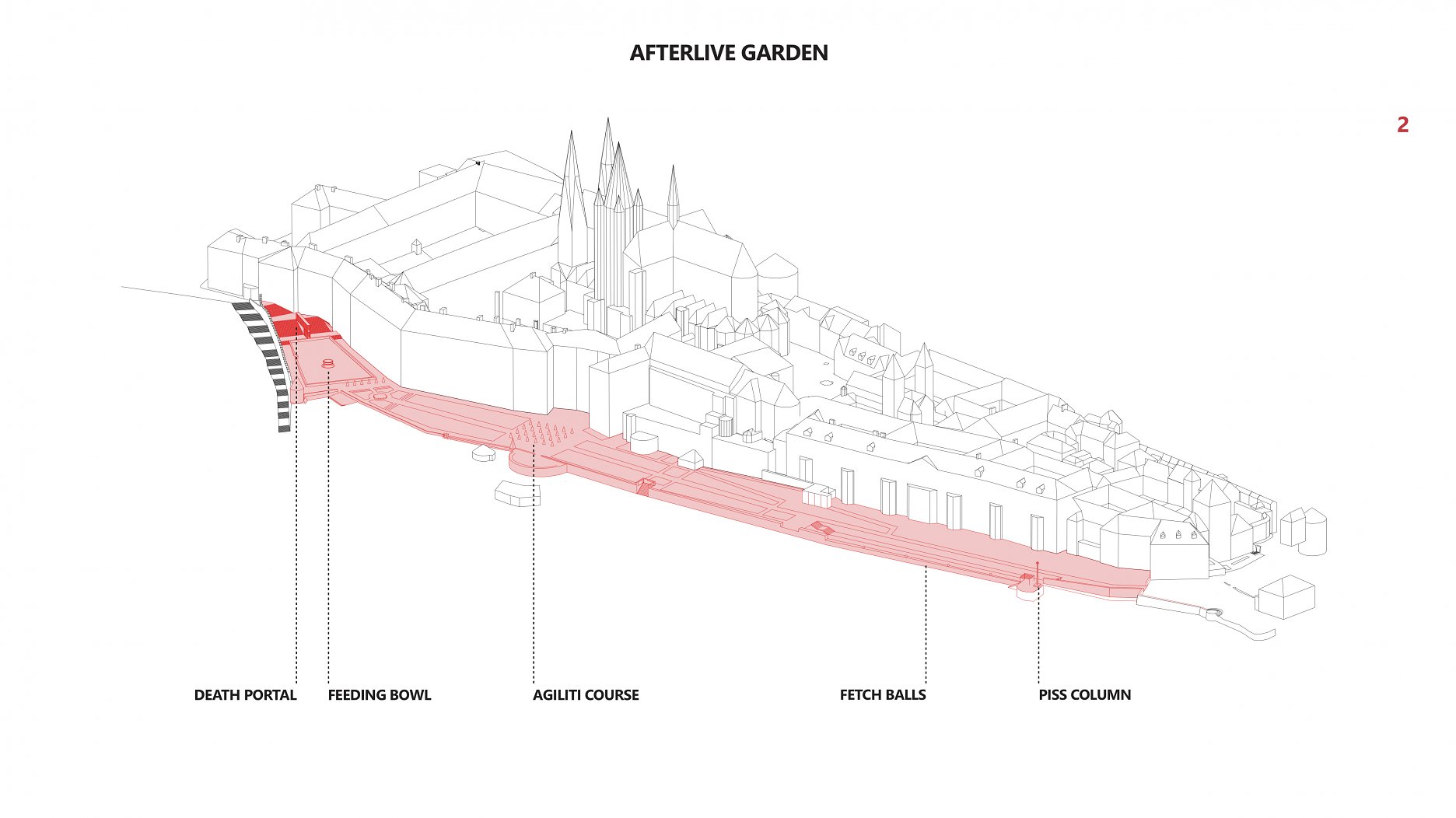 During a thorough research of our client´s life, we found out that Sivko had a massive influence on its master´s work. This is clearly visible mostly in Plečnik´s interventions in Paradise garden on Prague Castle. With the knowledge of architect´s obsession with Egyptian aesthetics, suddenly we are able to see the monumental netherworld that is build in those gardens. We took the challenge to uncover the symbolic behind all these stone artifacts and join them into afterlife narrative. In the end we made the decision to try to complete the master´s work by adding an underworld portal from Sivko´s tomb.