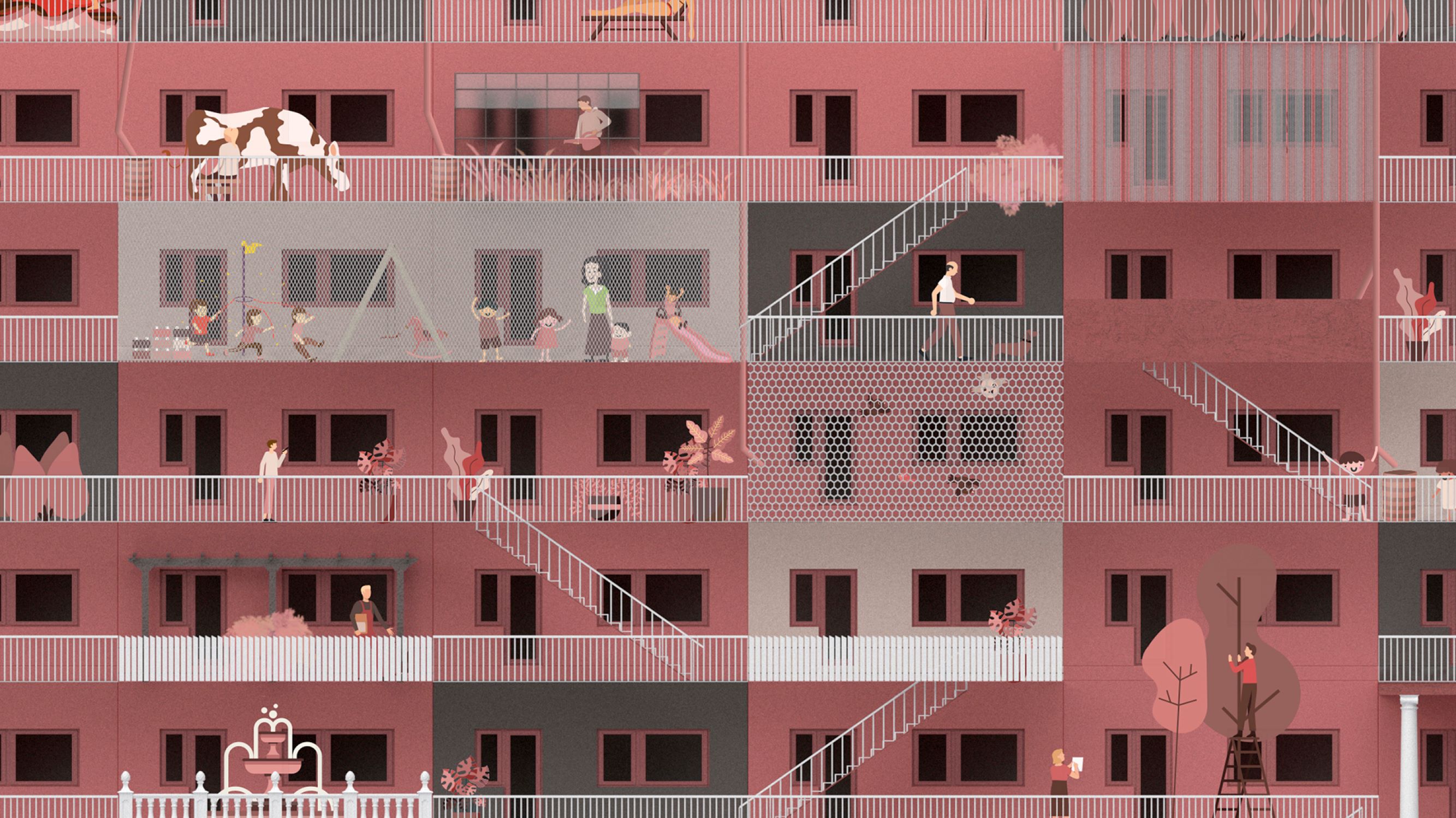 Aktuálny spoločenský presah vykazujú aj ďalšie ocenené projekty. Druhé miesto patrí študentom z brnianskej Fakulty architektúry VUT, ktorí pracovali s panelovými domami. Navrhli vonkajší plášť predzáhradiek a pavlače, podporujúce sociálne kontakty obyvateľov.