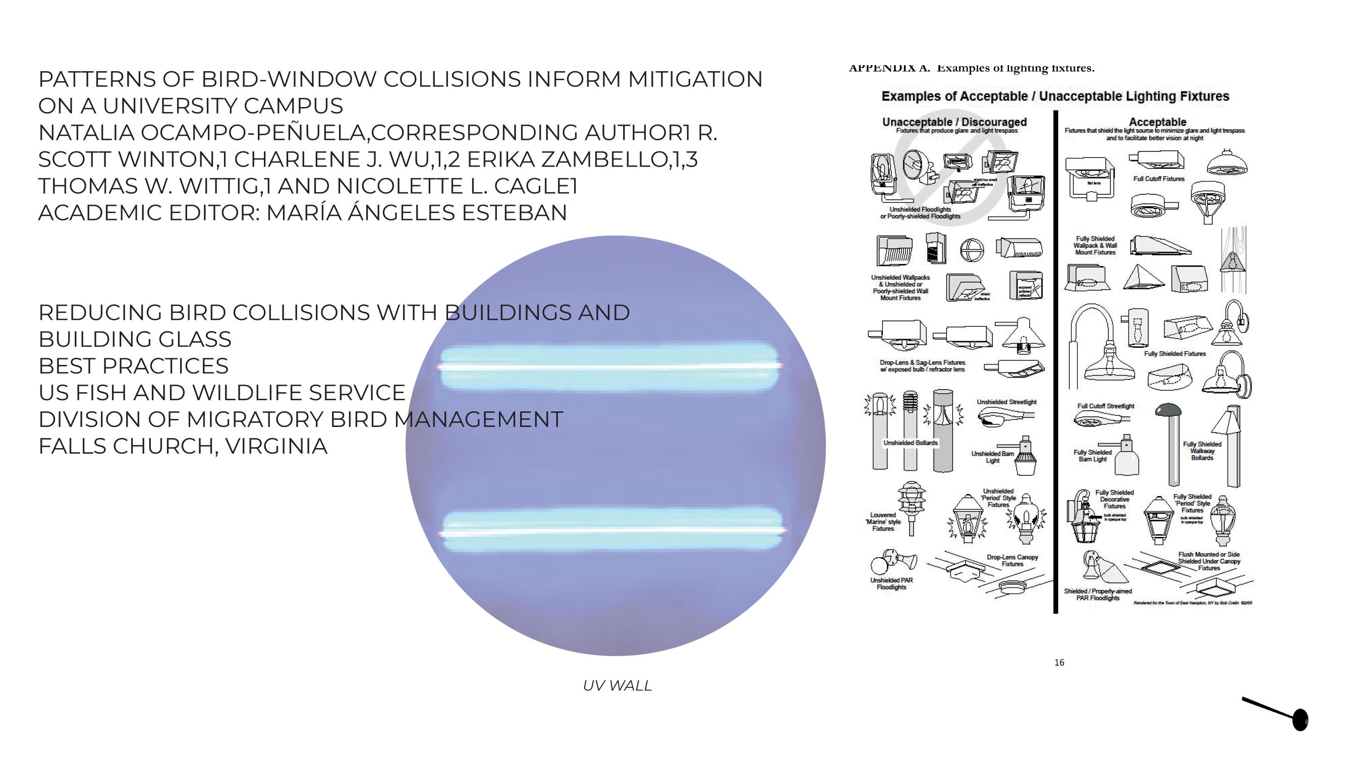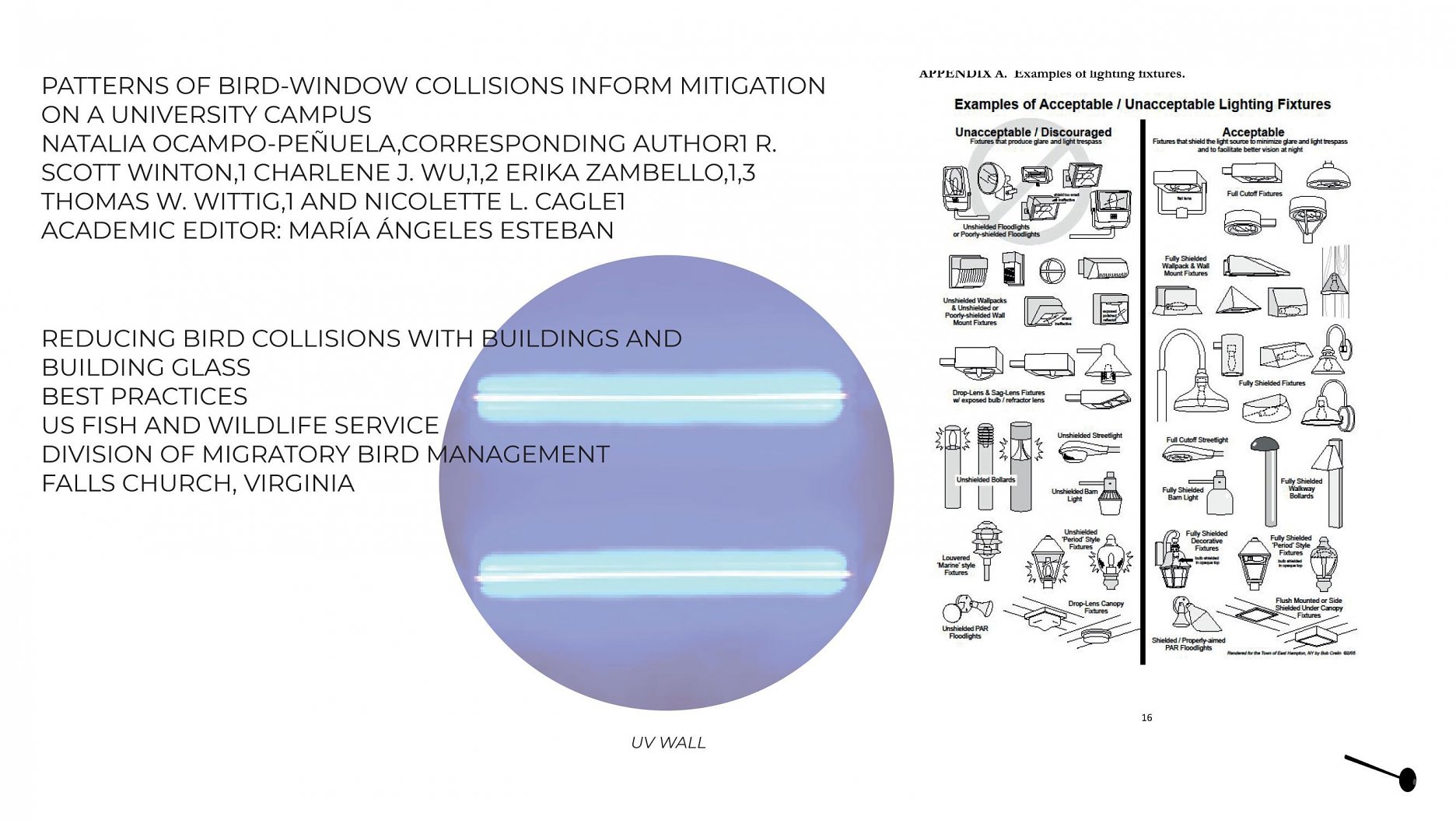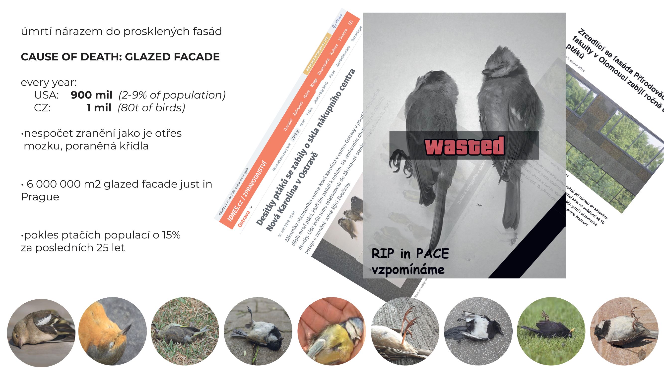 “'Největším problémem jsou reflexní plochy prosklených budov. Už v současné době je totiž díky skleněným plochám úhyn ptactva poměrně výrazný. Podle kvalifikovaných odhadů na území Spojených států takhle ročně zemře 900 milionů ptáků. V Česku jde dle České společnosti ornitologické zhruba o jeden milion.'