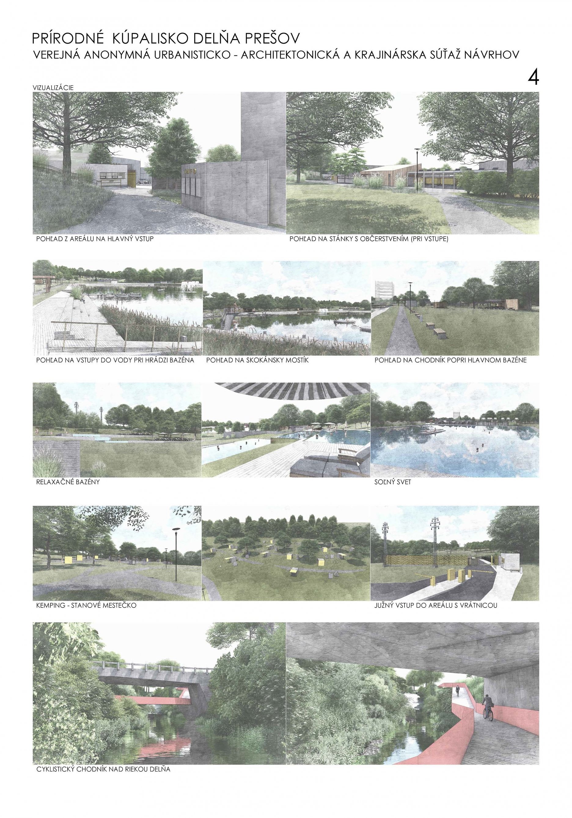 Hodnotenie poroty: Návrh vychádza z kvalitnej analýzy vzťahov v území, ponúka podrobne spracovaný koncept areálu s akcentáciou pôvodnej a dotvorenej prírodno-krajinárskej zložky prostredia. Logicky radí jednotlivé funkčné celky, v rámci ktorých vytvára lokálne komunikačné a prevádzkové uzly naviazané na hlavnú i vedľajšie pešie a obslužné trasy. Navrhuje bohatú škálu rôznych relaxačno-oddychových, športových, edukačných a environmentálnych prvkov a atrakcií, pričom vhodne využíva morfológiu terénu. Do prirodzene najvyššej polohy územia situuje vyhliadkovú vežu. Ako nie celkom postačujúce sa javí južné dopravné napojenie areálu vrátane riešenia statickej dopravy a redukcia kempingu iba na menšiu chatovú zostavu. Ihriská a športoviská sú dimenzované v návrhu veľkoryso, avšak nie s optimálnou orientáciou. Problematická môže byť tiež náročnosť prestavby objektu Rusalka. Vstupný objekt je riešený v prostom až nenápadnom dizajne. V návrhu nie je celkom doriešená dopravná obslúžiteľnosť jednotlivých prevádzok, najmä pri vstupnej časti do areálu.