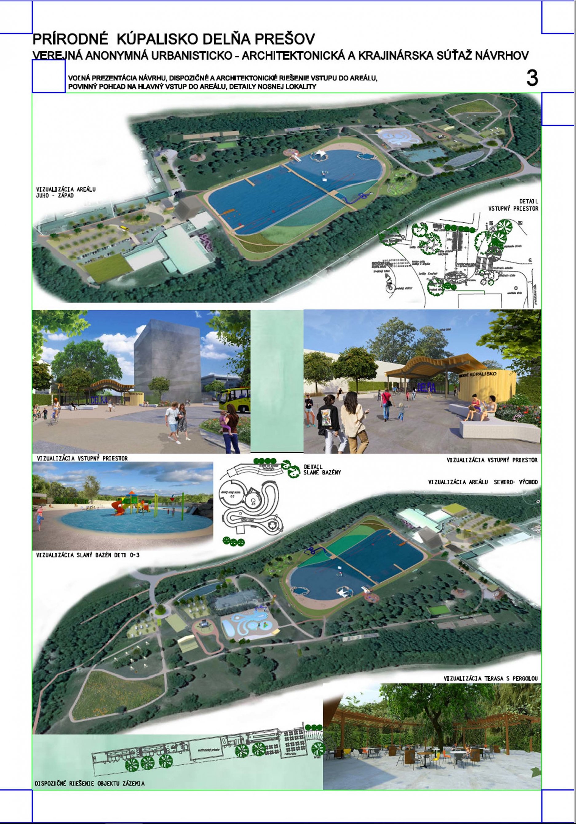 Hodnotenie poroty: Návrh dopĺňa do areálu atrakcie, soľný svet, kaskádové bazény s masážnym povrchom a i., ktoré sú cielené pre rôznorodé skupiny rekreantov, k športoviskám dopĺňa tribúny pre divákov. Nie celkom jednoznačne definuje jednotlivé druhy dopravy v území a segregáciu automobilovej dopravy a pešieho pohybu v areáli kúpaliska. Vo východnej časti areálu nenavrhuje potrebné zariadenie statickej dopravy, chýba zadefinovanie peších prepojení. Za problematické možno považovať situovanie kempingu v SV časti areálu vs. blízkosť hlavného pódia. Za pozitívum možno označiť snahu autorov vytvárať a formovať pomocou vysokej zelene priestor, čo je v tomto prostredí vhodné. Absentuje podrobnejšie riešenie hlavného nástupu do areálu. Chýba zokruhovanie peších trás okolo hlavnej vodnej nádrže. Ďalšie dopravené prepojenie nad riečkou Delňa západne od akvaparku nie je potrebné a realizácia návrhu by sa ním zbytočne predražila.
